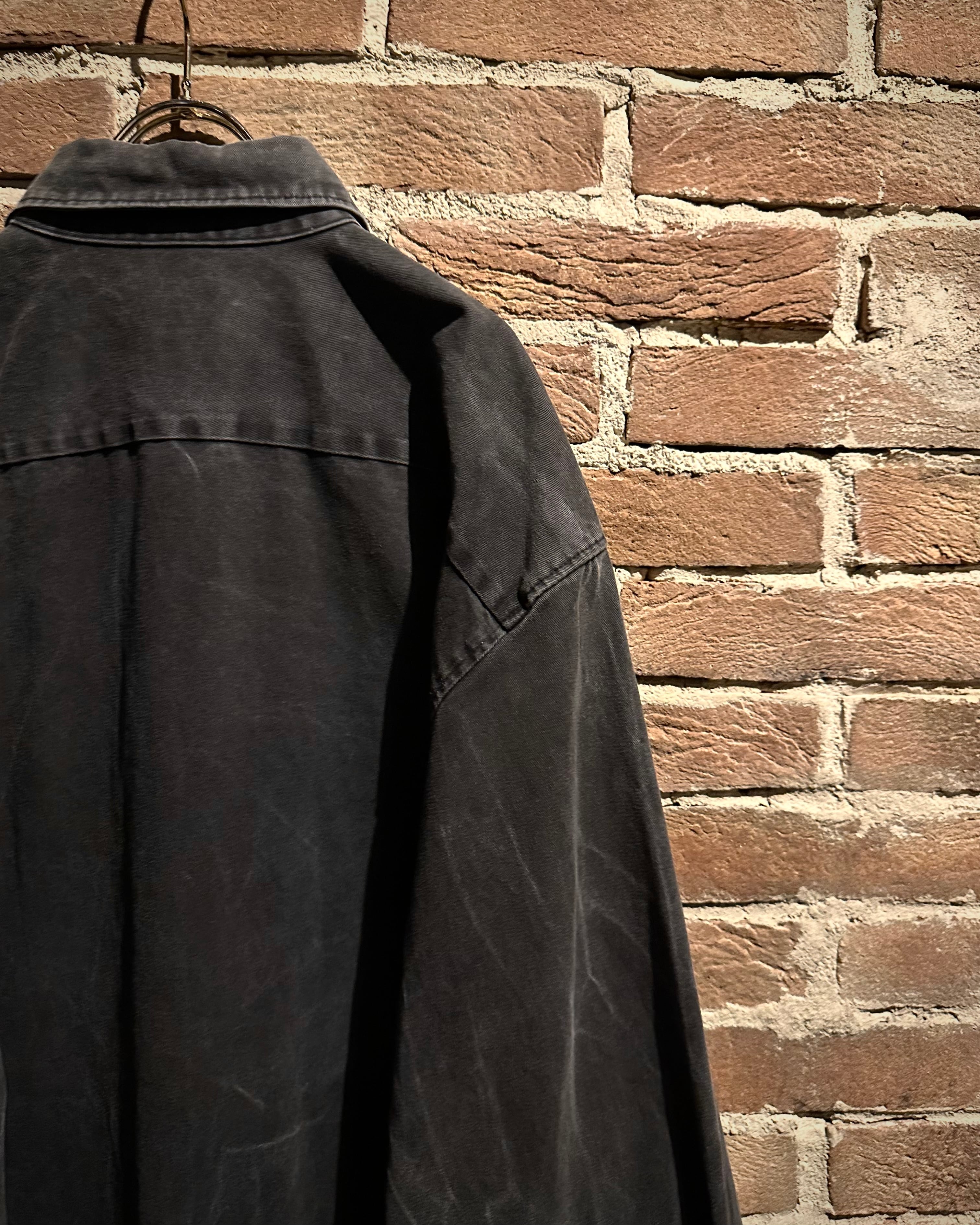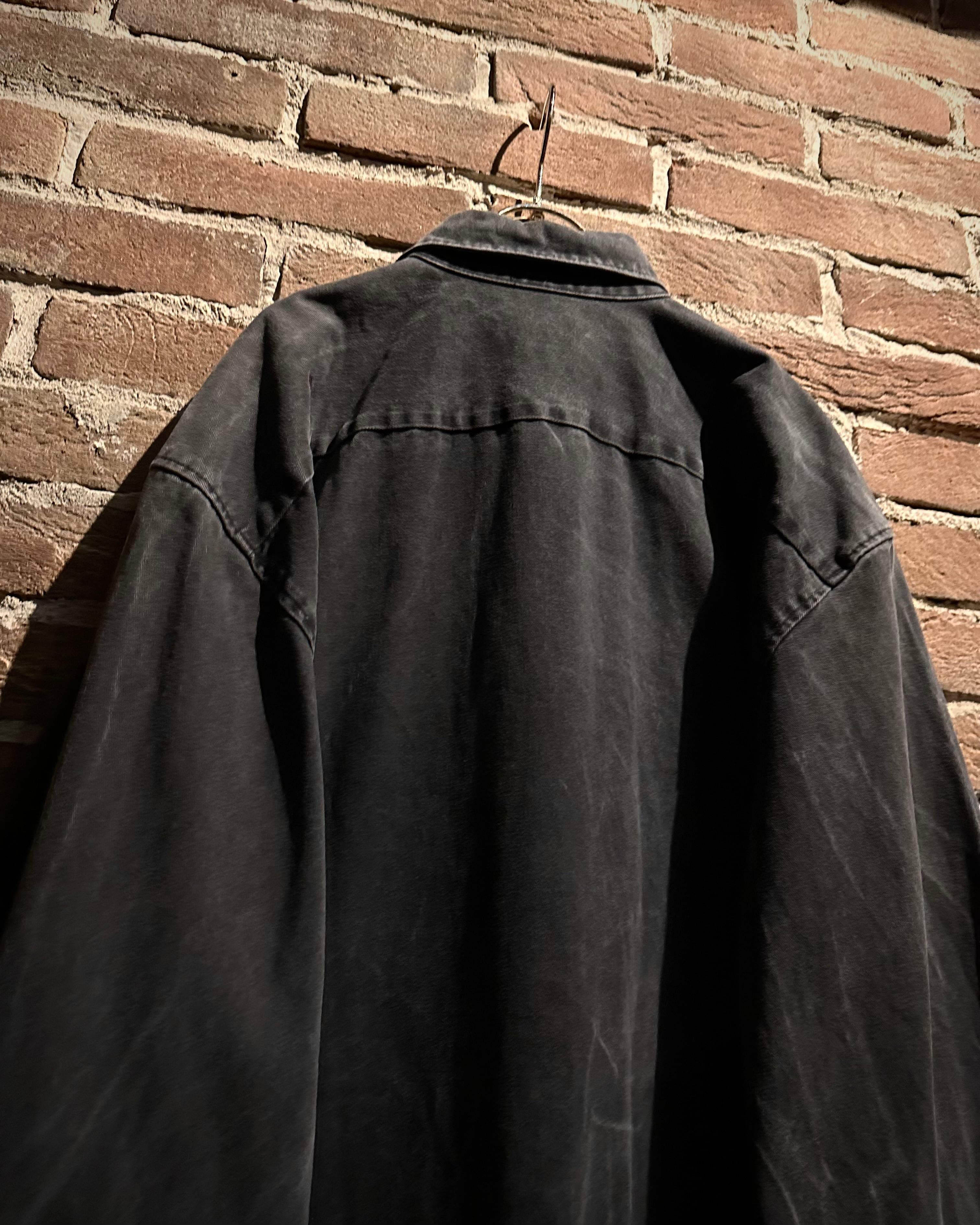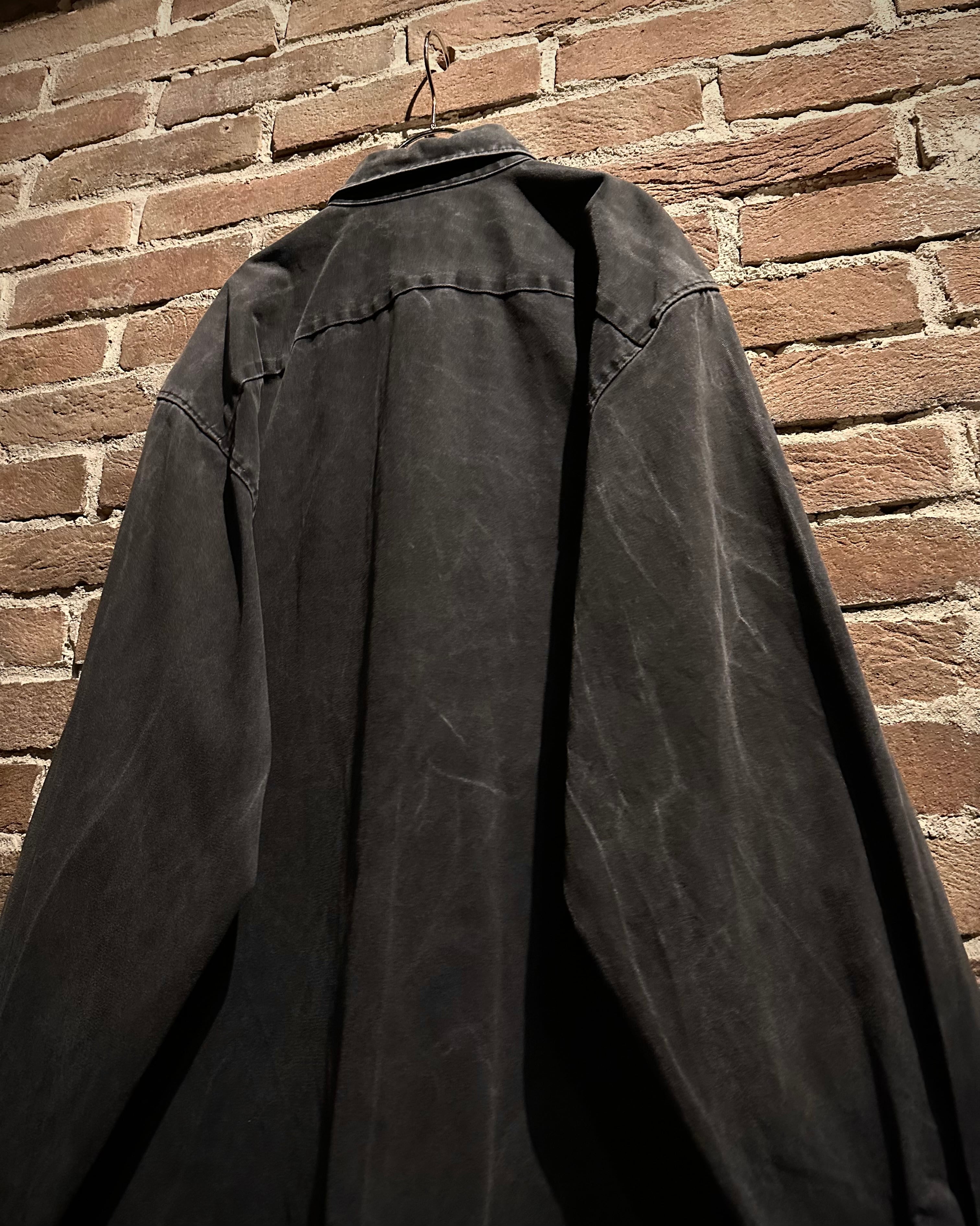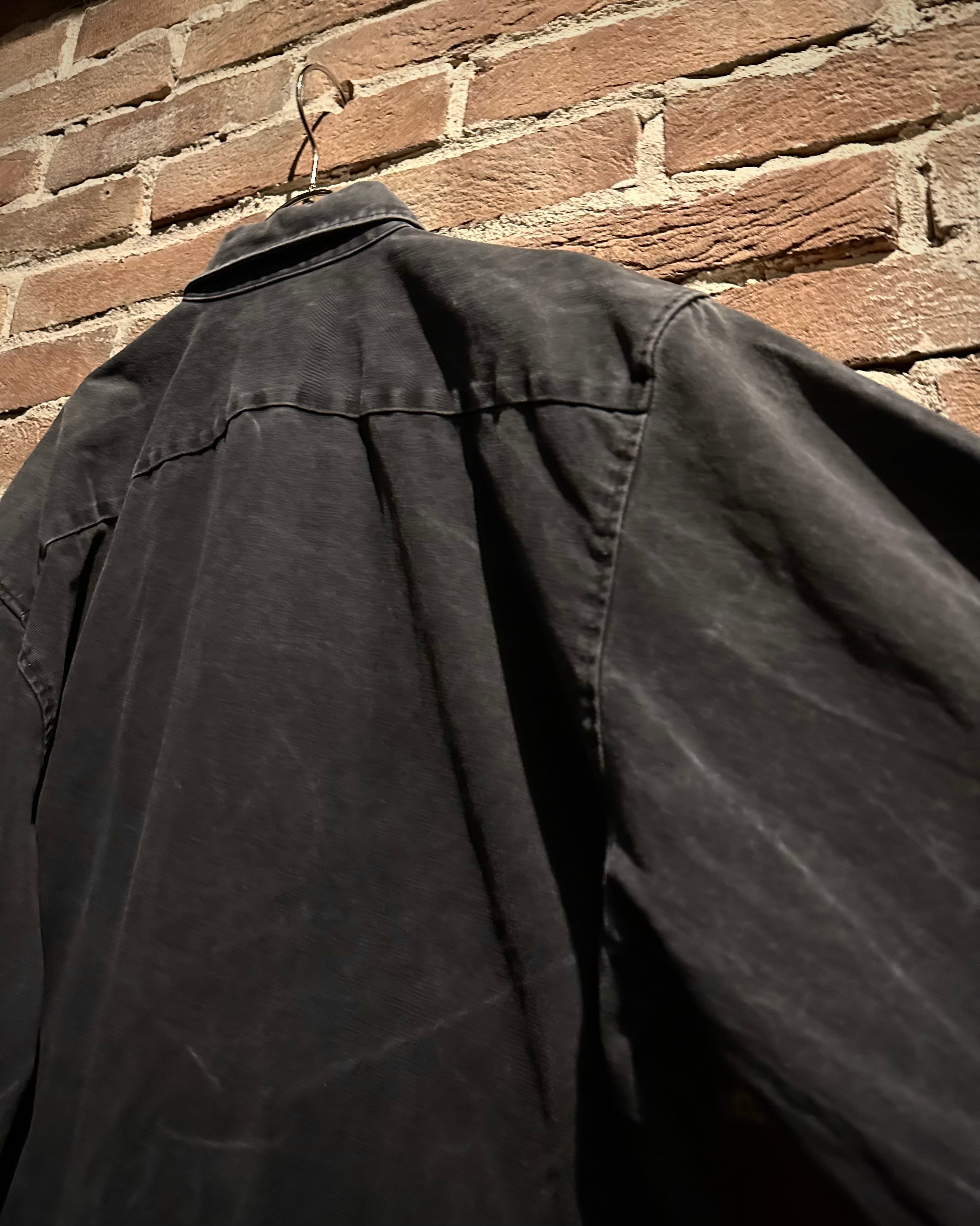 ボディにはフェード感のあるブラックデニムを採用。アタリやムラ感が全体に奥行きを与え、無骨さの中にどこか退廃的なムードを漂わせます。
