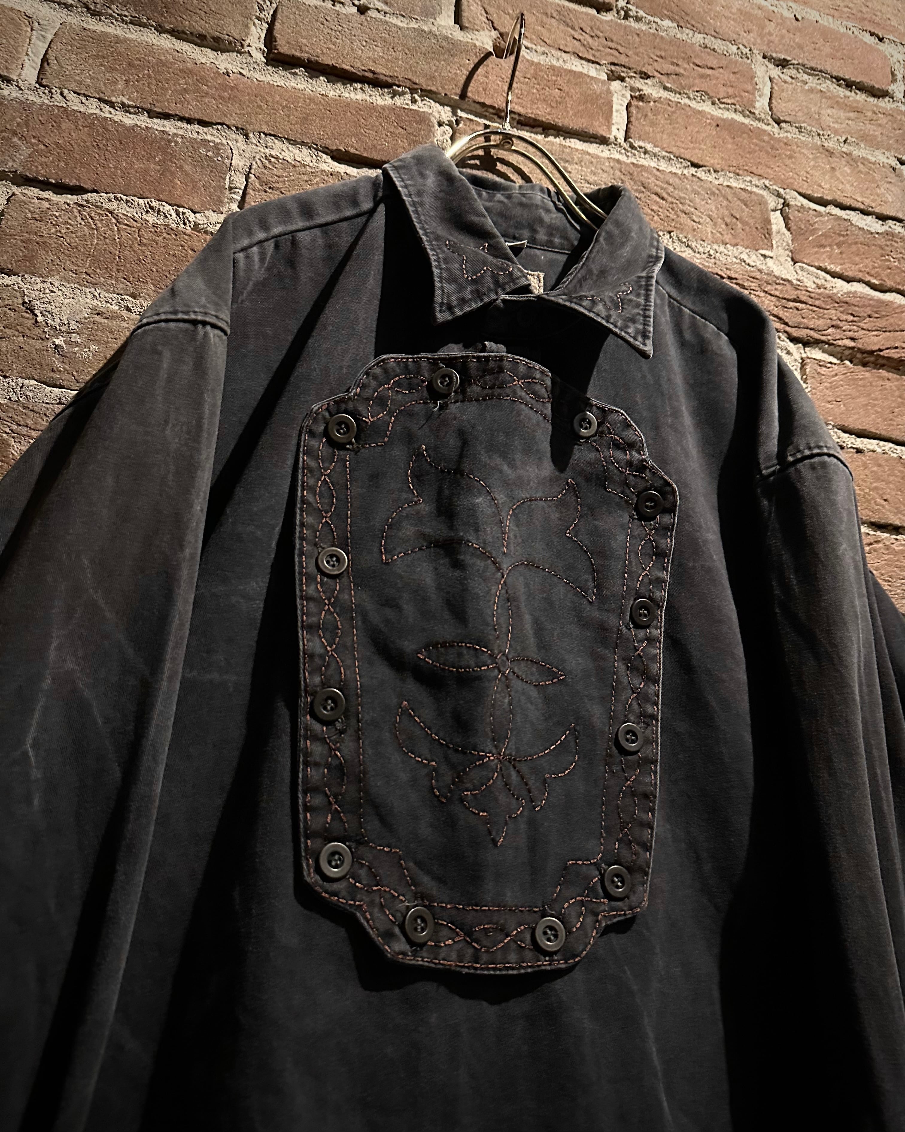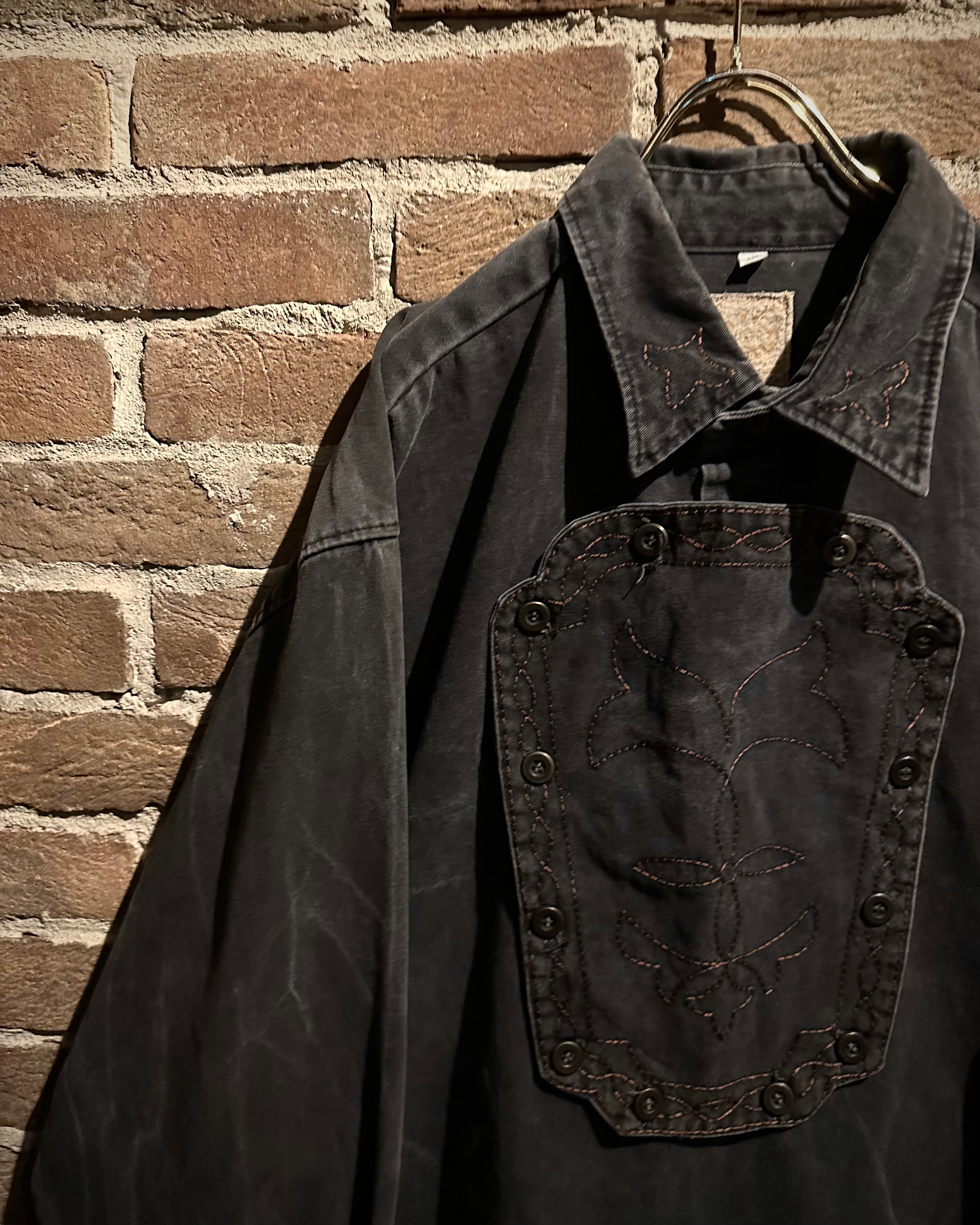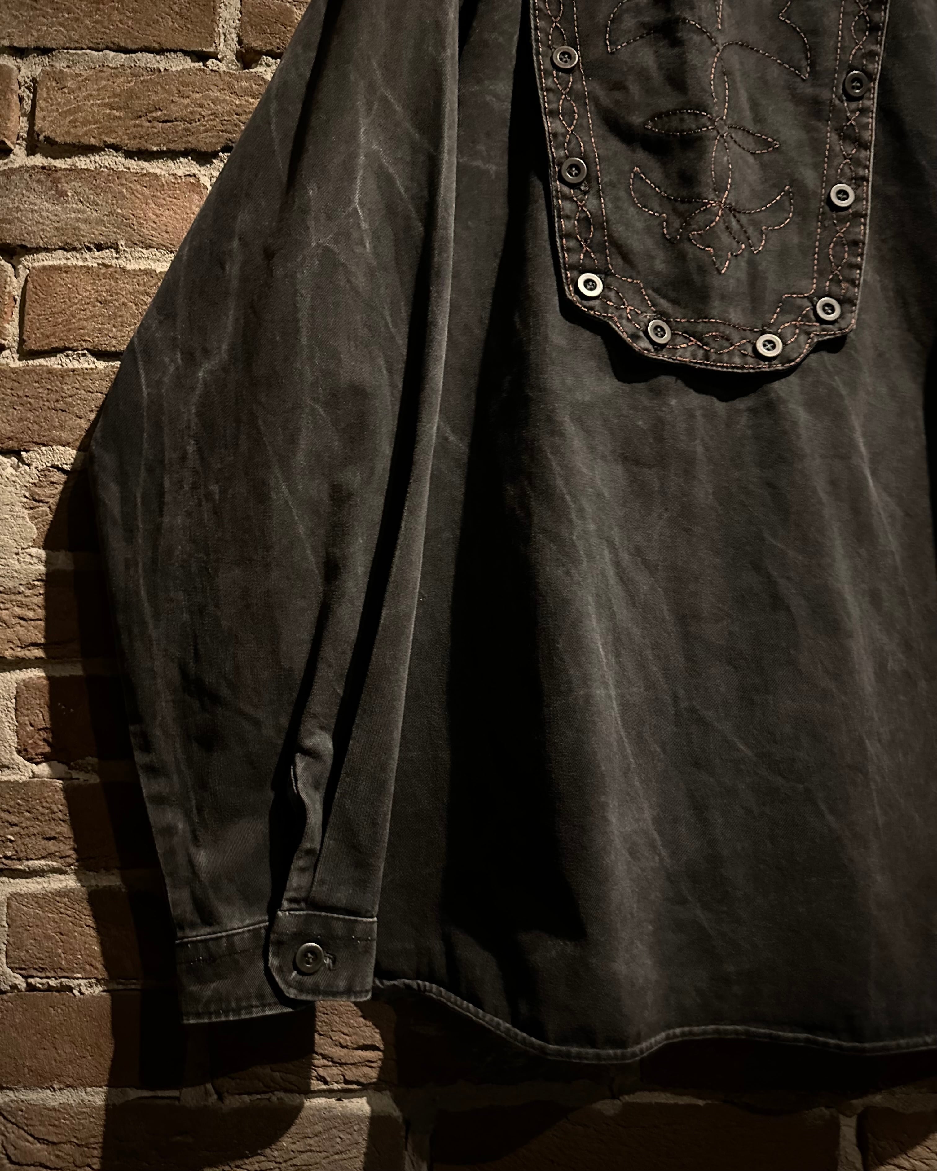 デニムの無骨さとウエスタン刺繍の装飾美を融合させた、完成度の高いキャバルリーシャツです。