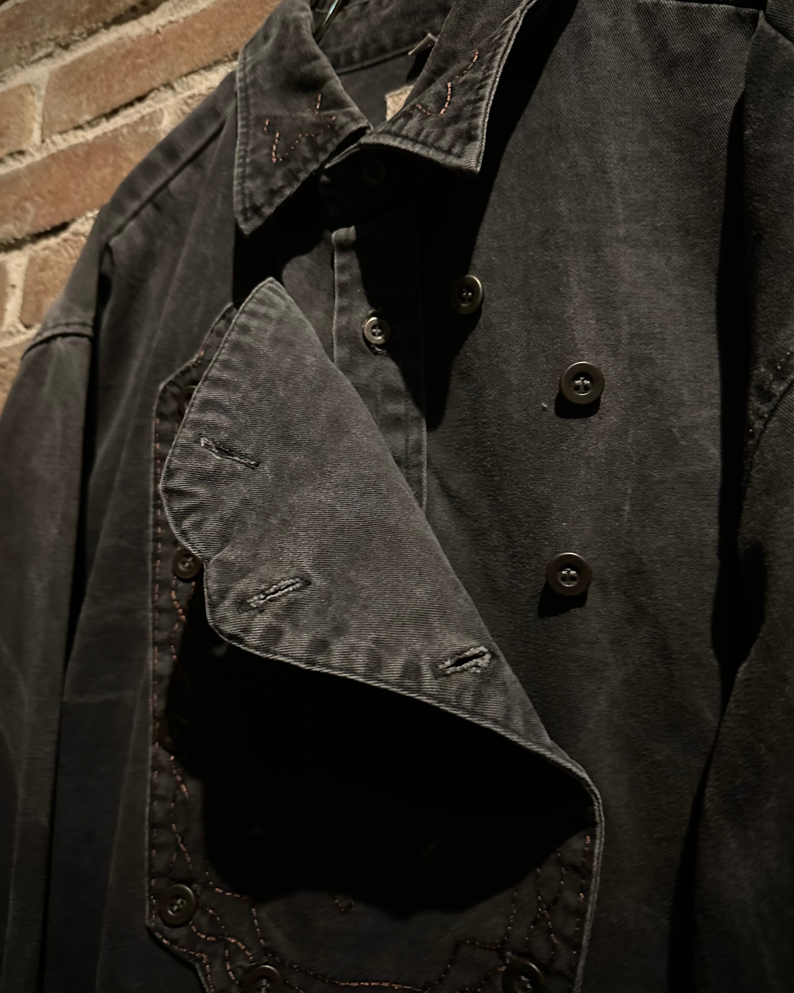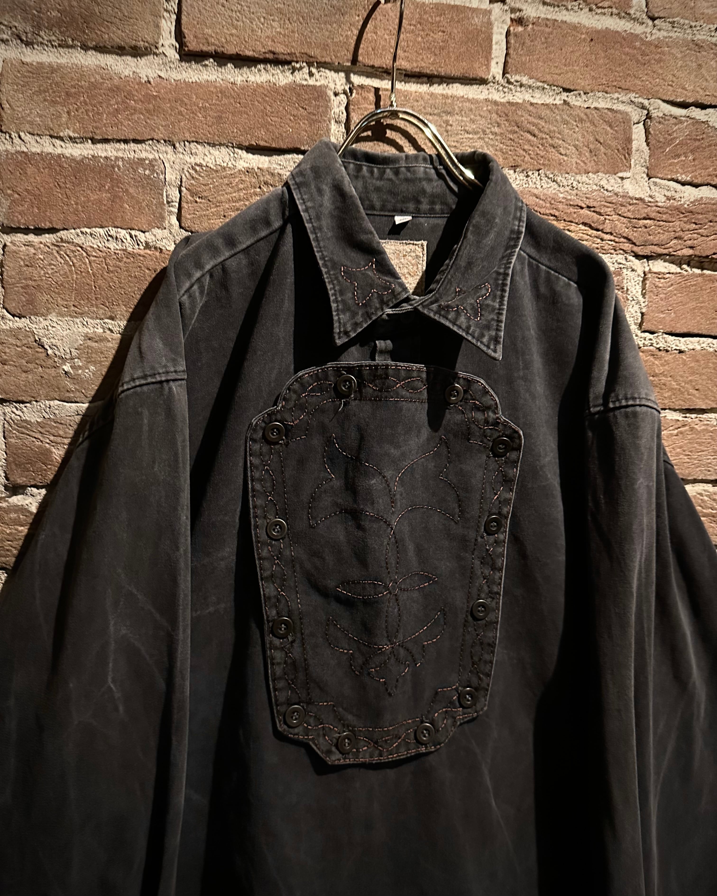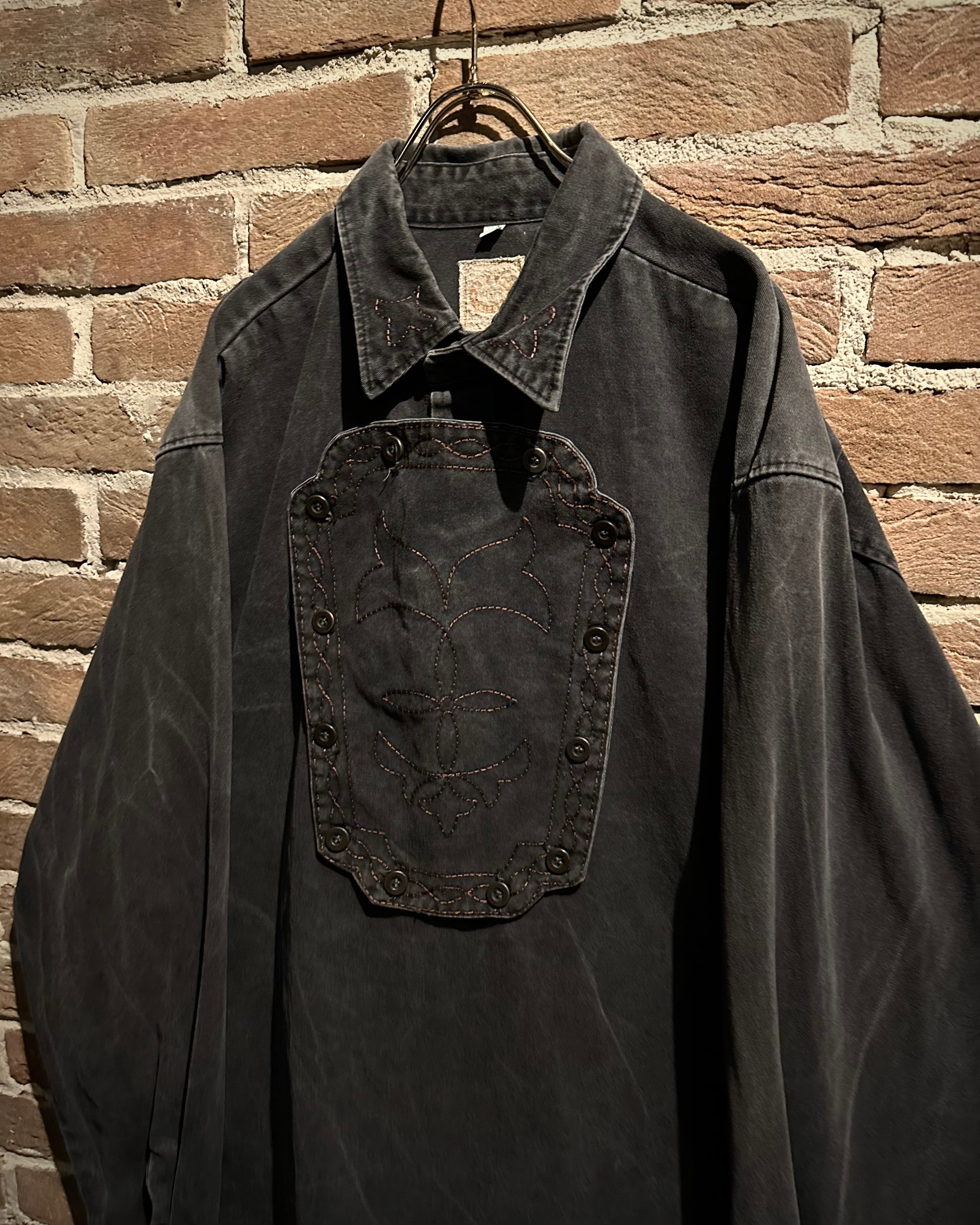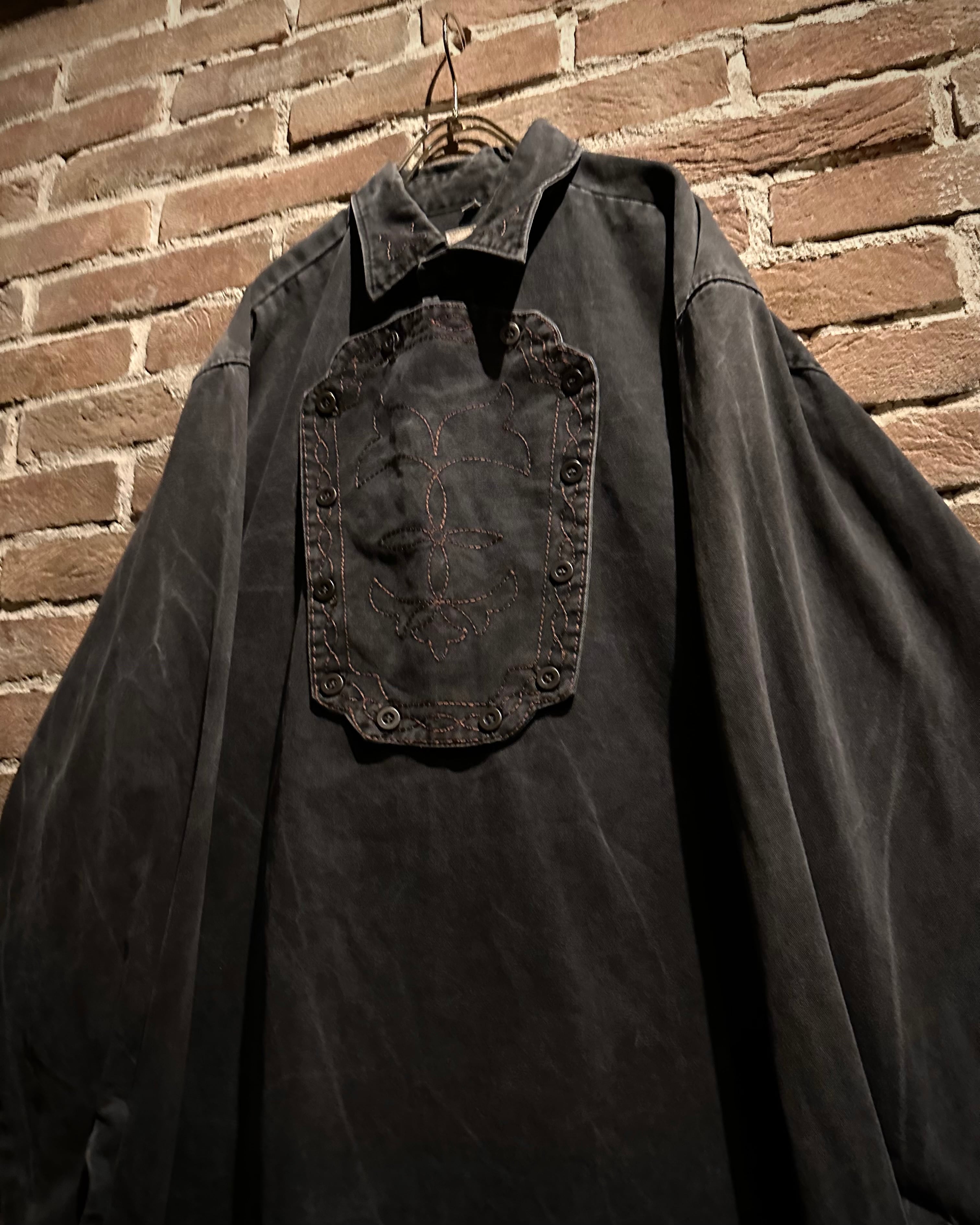 デニムの無骨さとウエスタン刺繍の装飾美を融合させた、完成度の高いキャバルリーシャツです。