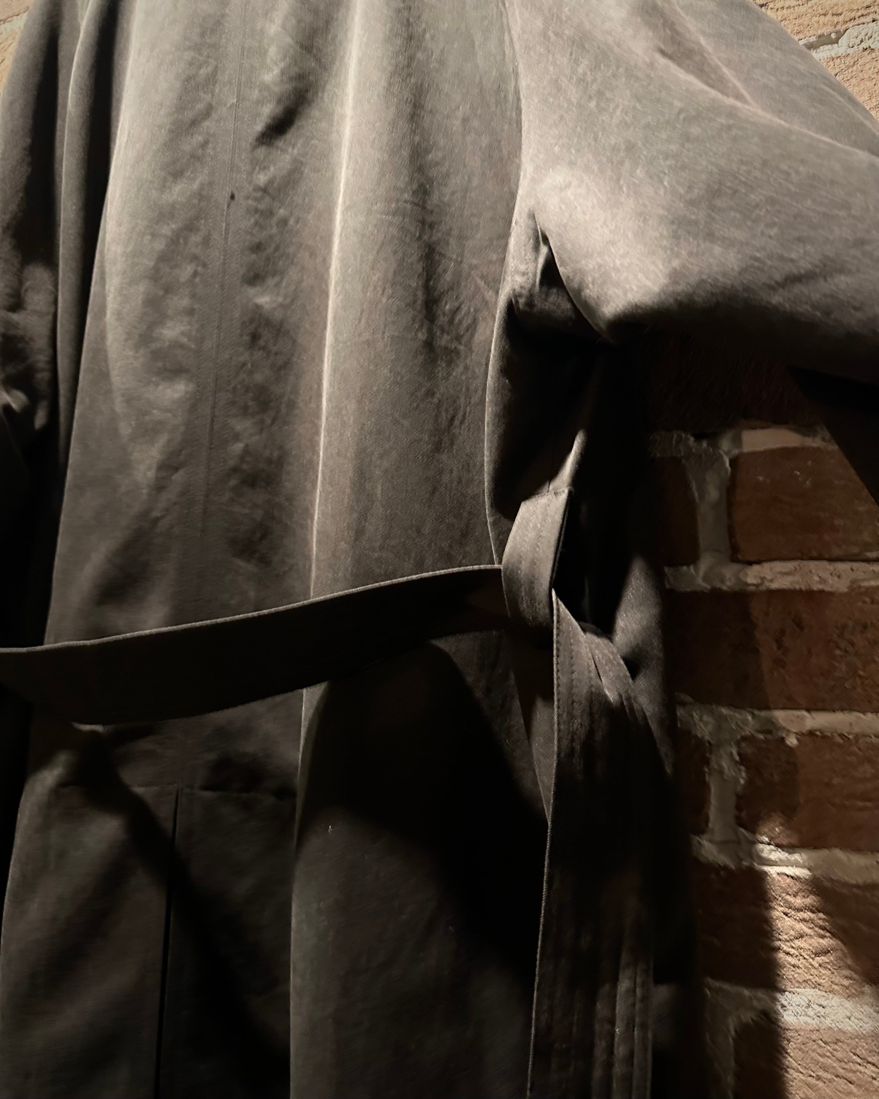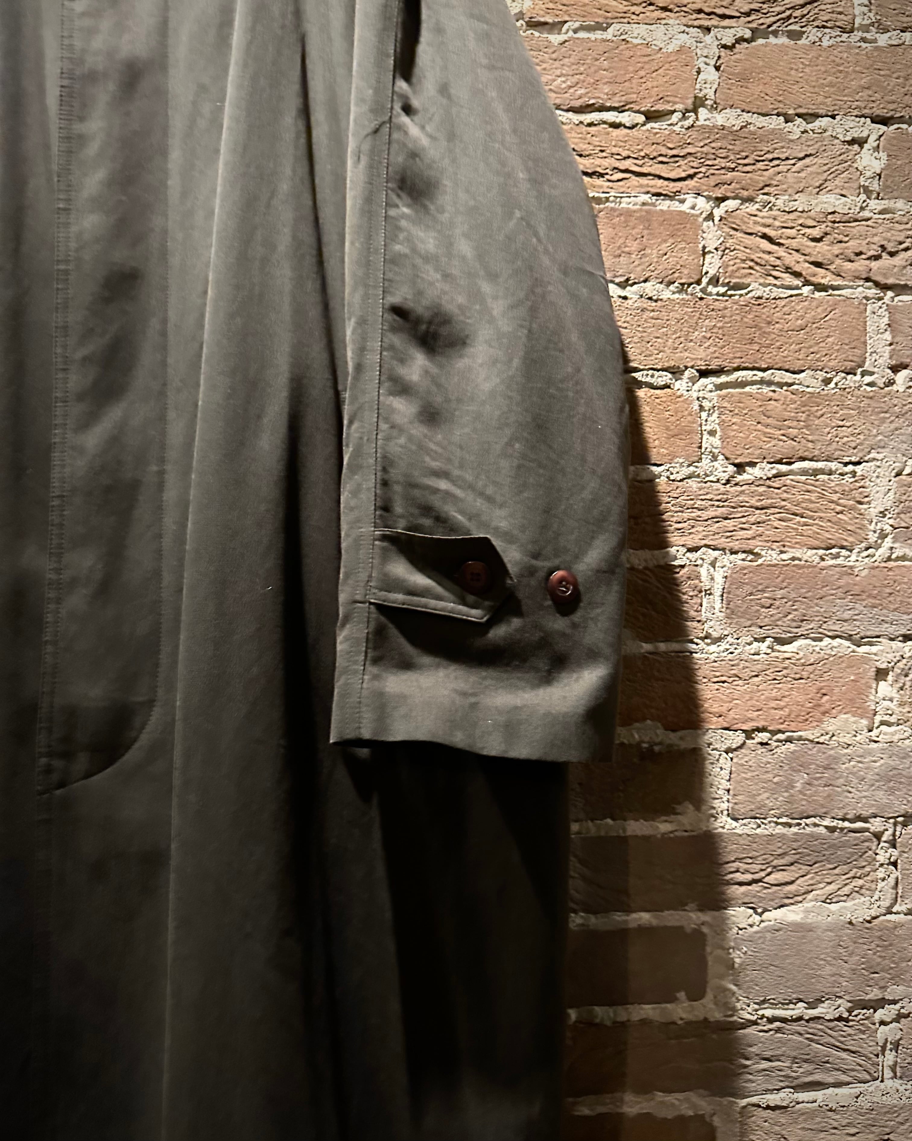 フロントは比翼仕立て。すっきりとしたステンカラーやラグランスリーブによる肩馴染みの良さなど、クラシックなディテールを存分に堪能できます。ウエストにはベルトを備え、シルエットに変化を付けられるのも魅力。