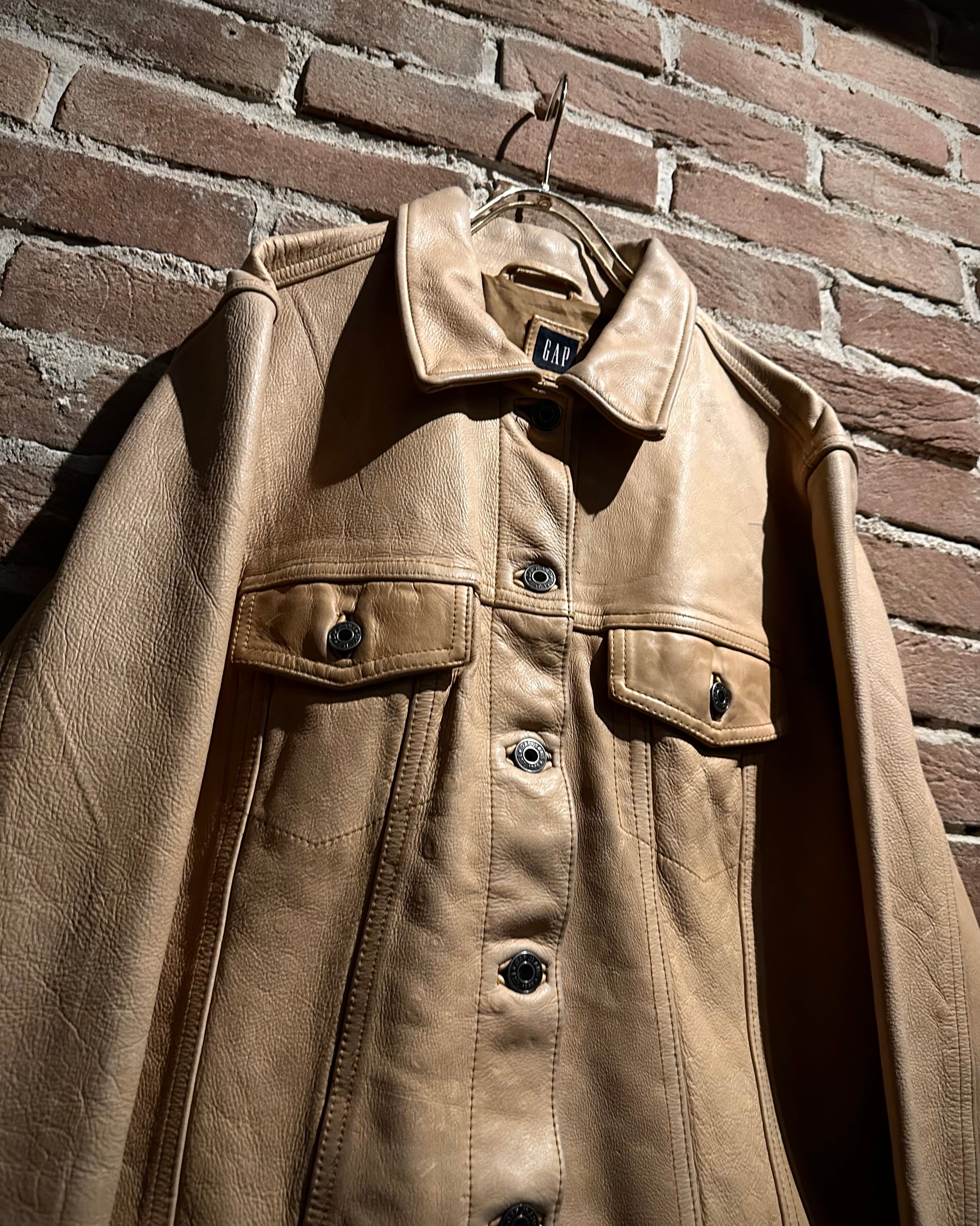古着市場において年々評価を高め続ける“OLD GAP”より、完成度の高いレザートラッカージャケット。