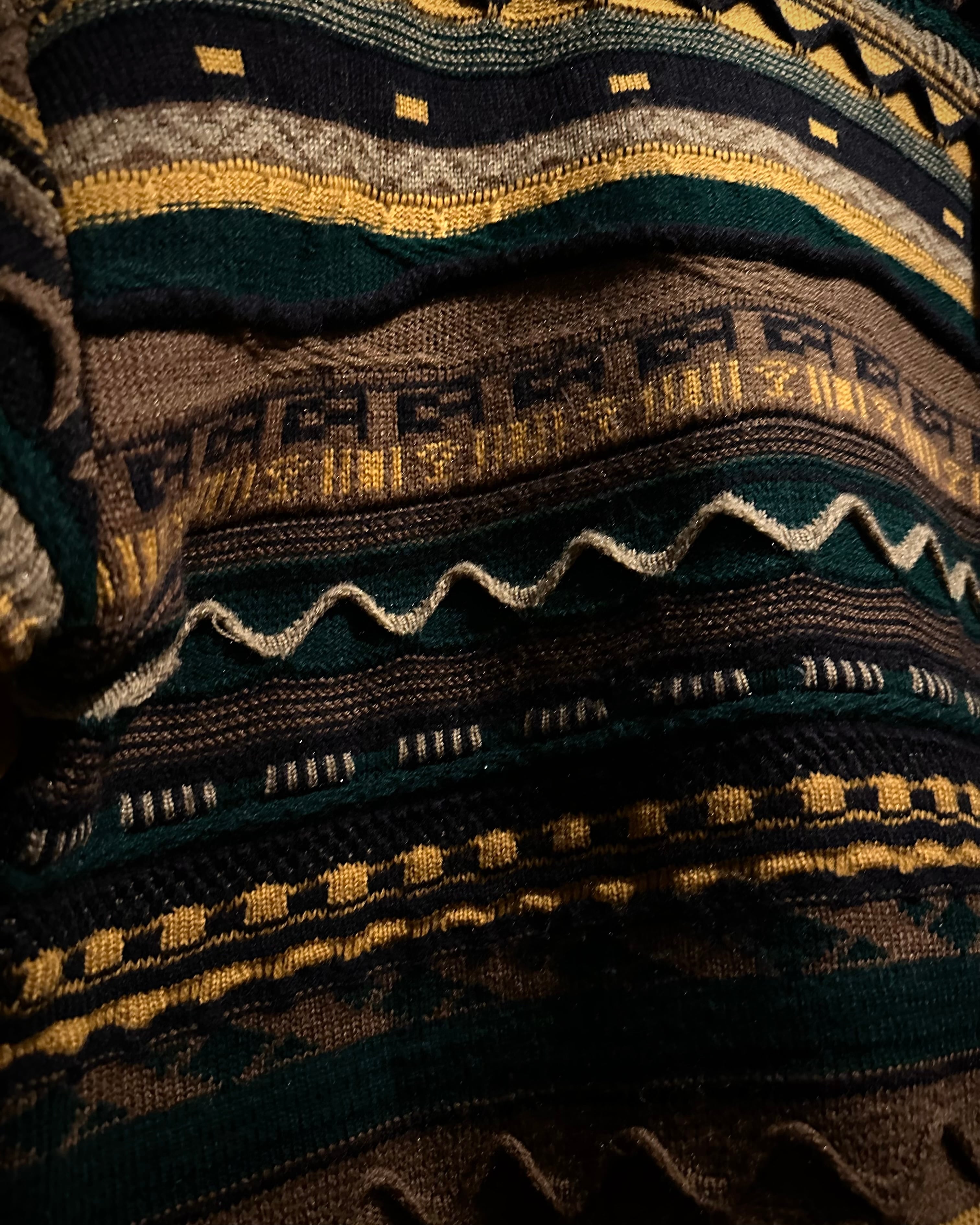 立体的に編み立てられた3Dニットボディをベースに、フロントへ上質なレザーを大胆にドッキング。マスタードイエローの切り替えと深みのあるグリーンレザーを幾何学的に配し、抽象的でアートピースのようなデザインへと昇華しています。