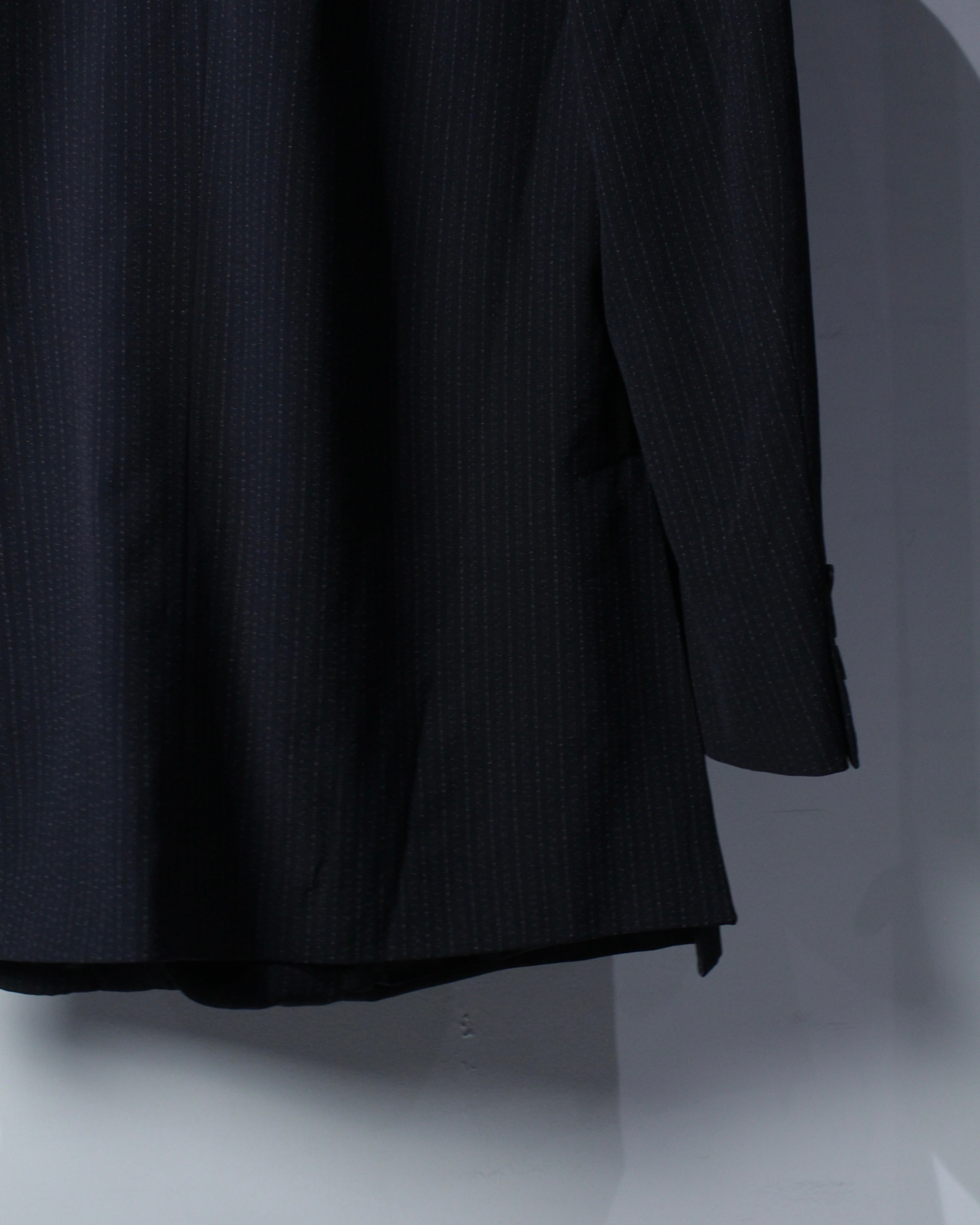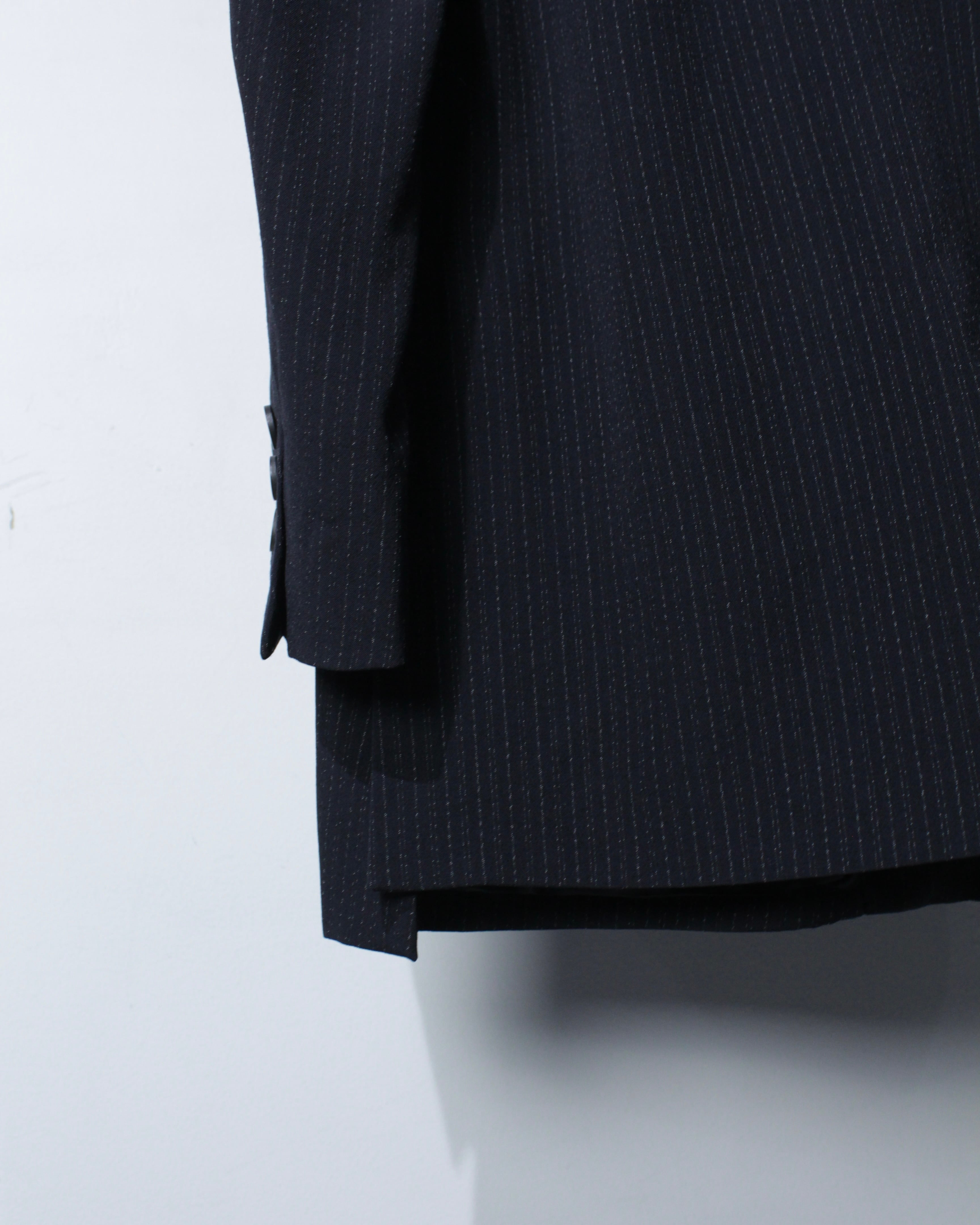 フロントは4つボタン仕様。大振りのボタンバランスも絶妙で、縦のラインを強調しながら全体をシャープに引き締めます。