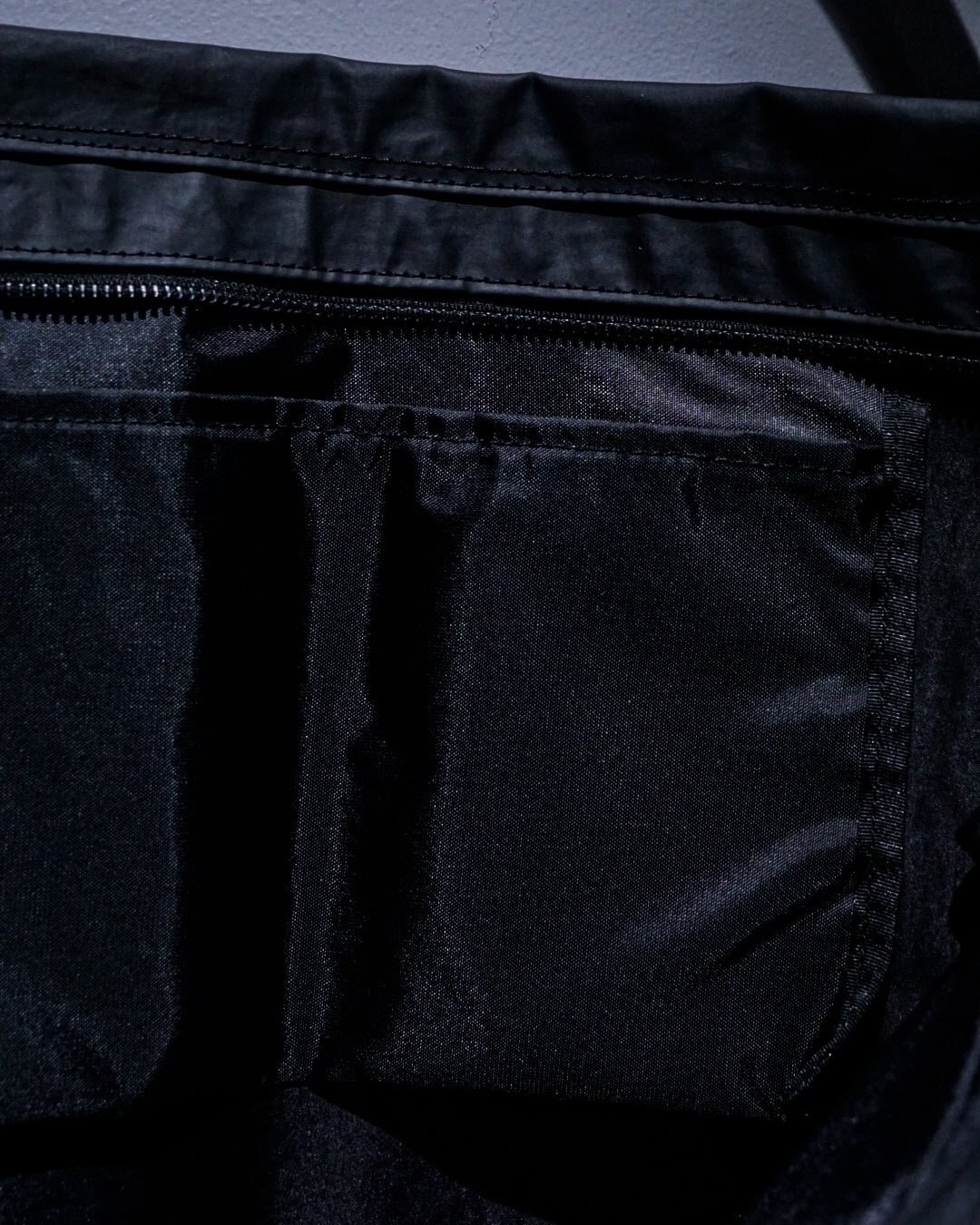 開閉はダブルジップ仕様。内装には両面サイドポケットを配置し、四分割と二分割の収納構造を採用しており、細やかな整理が可能な設計となっています。