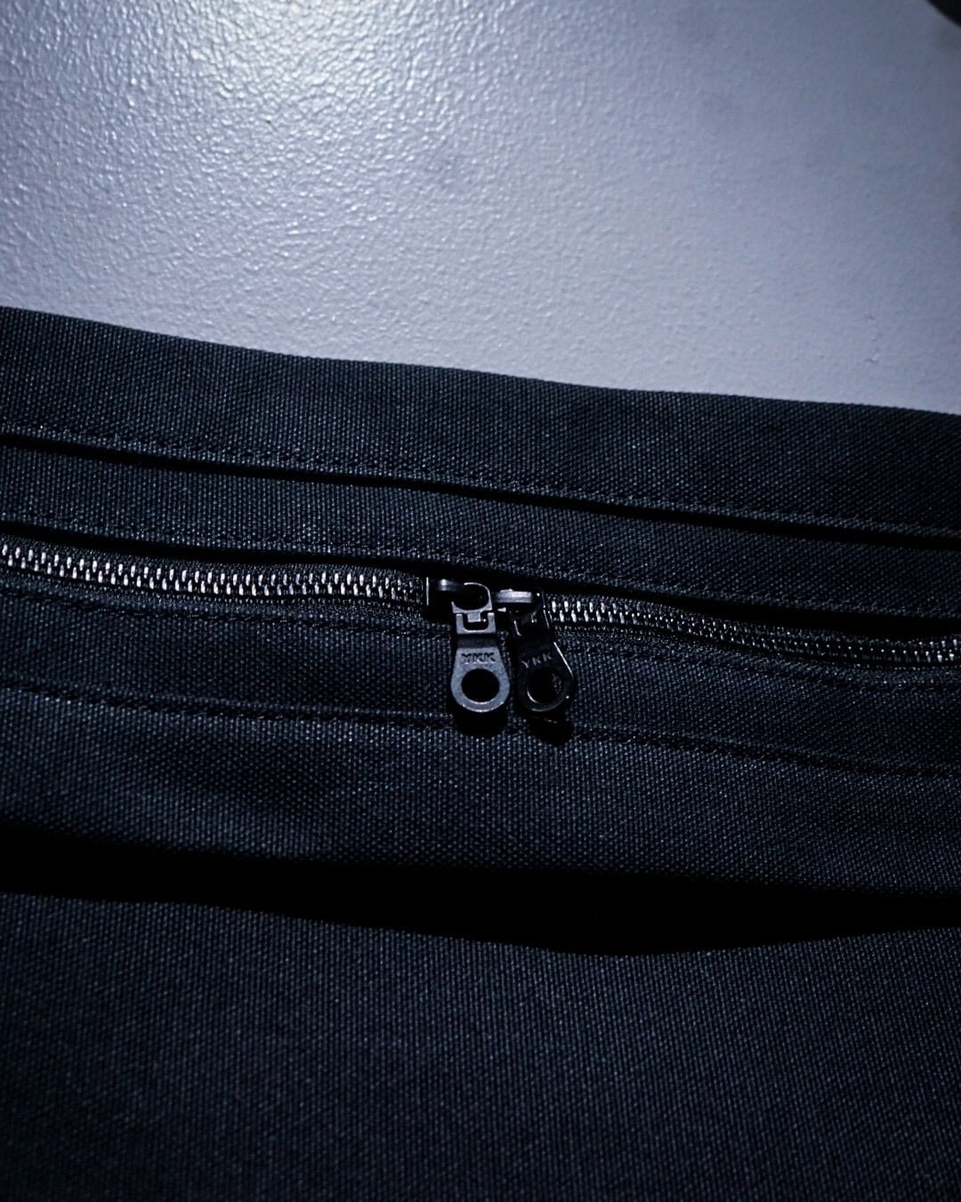 開閉はダブルジップ仕様。内装には両面サイドポケットを備え、片側は四分割、もう片側は二分割に構成されており、細やかな整理が可能な設計となっています。