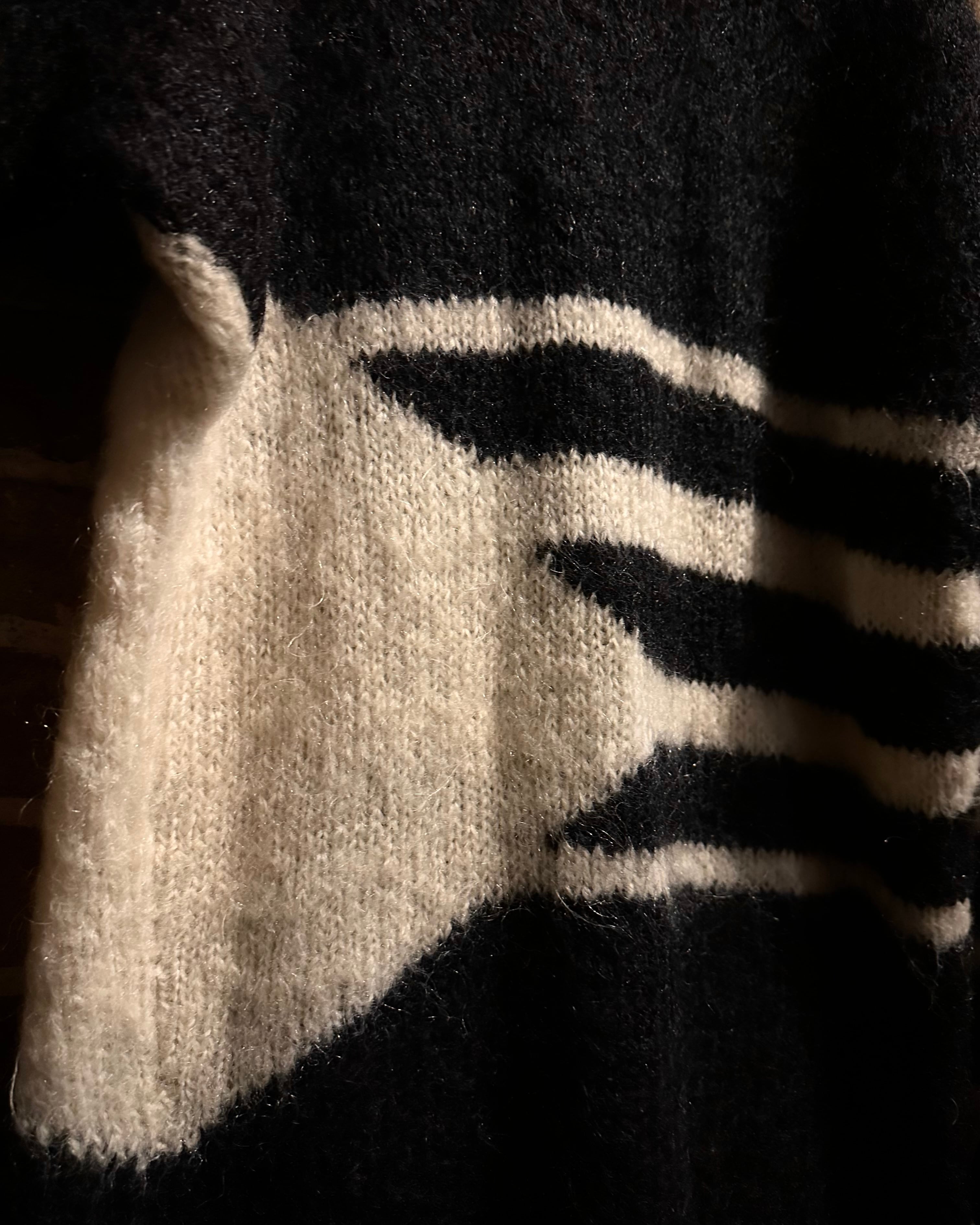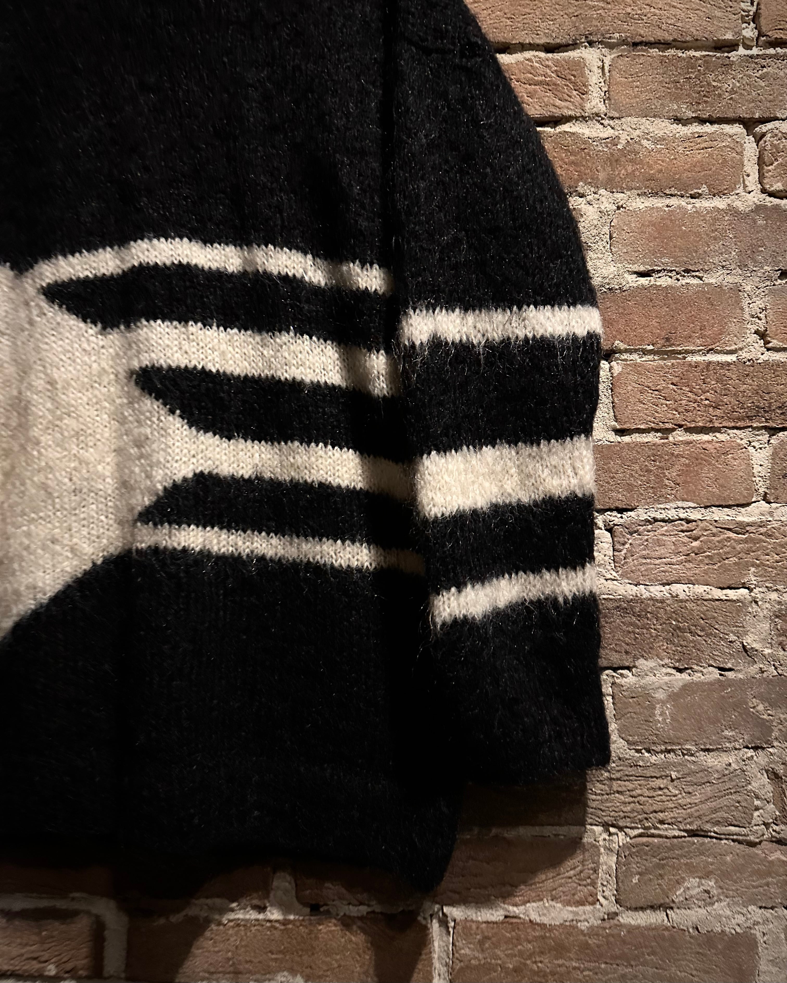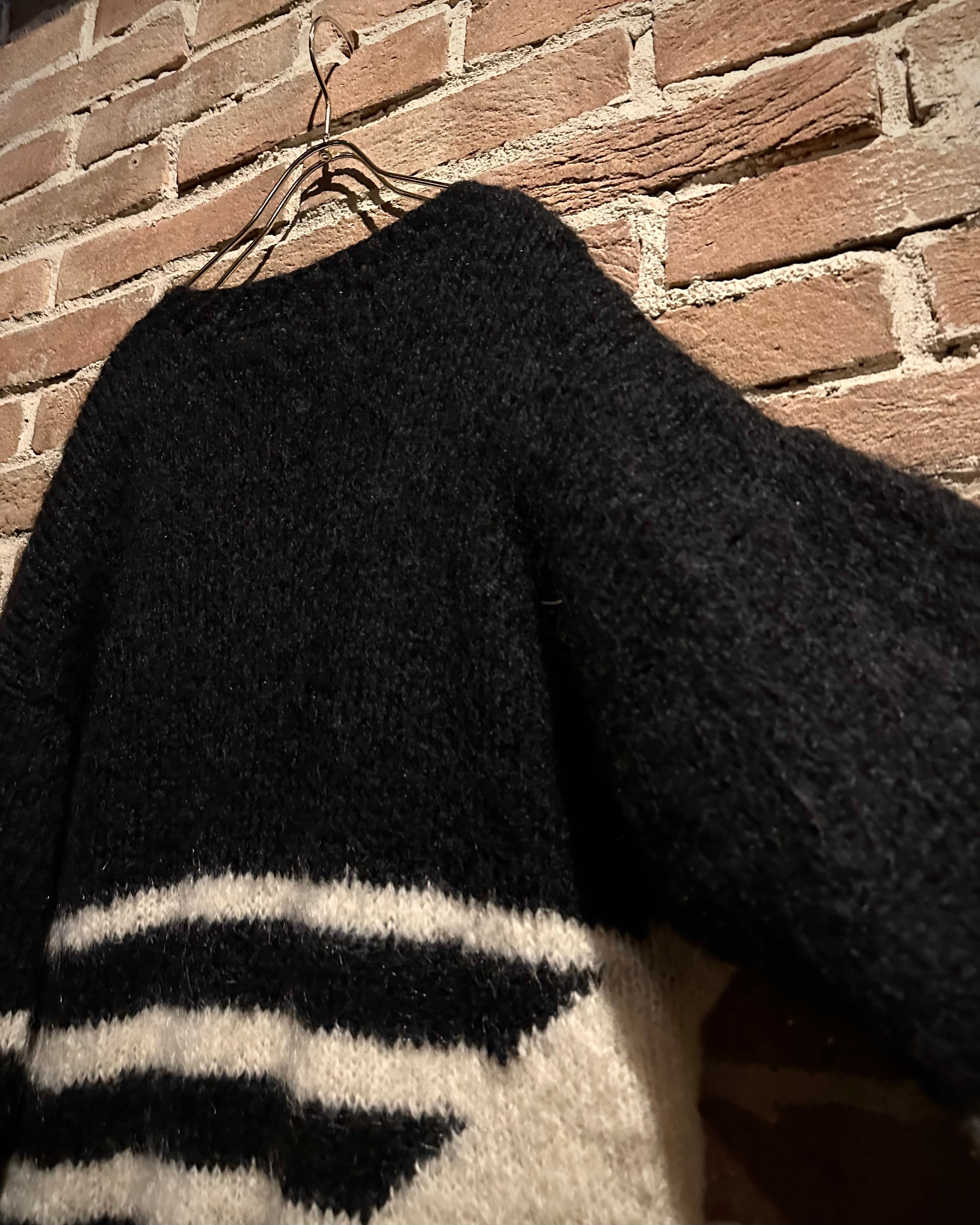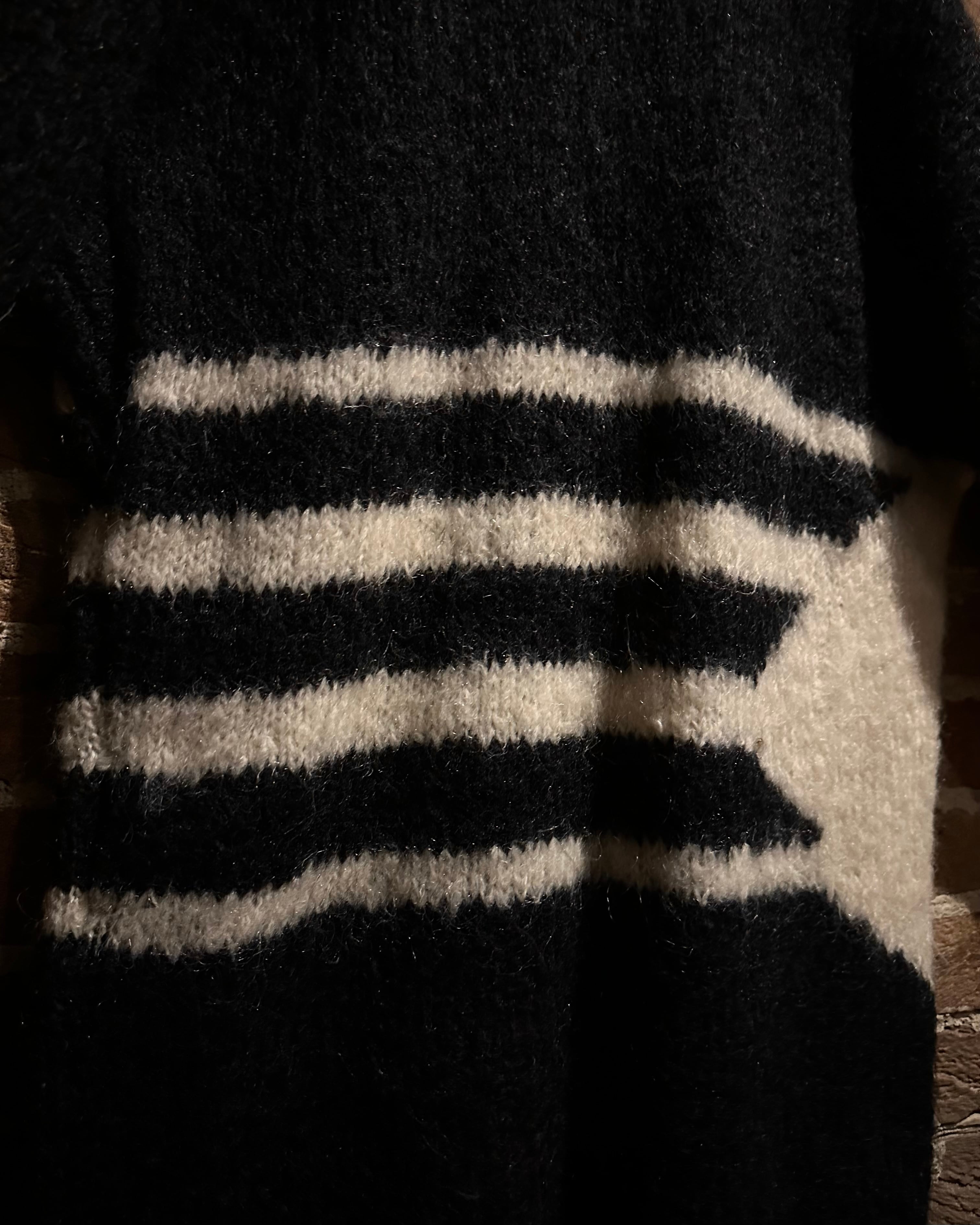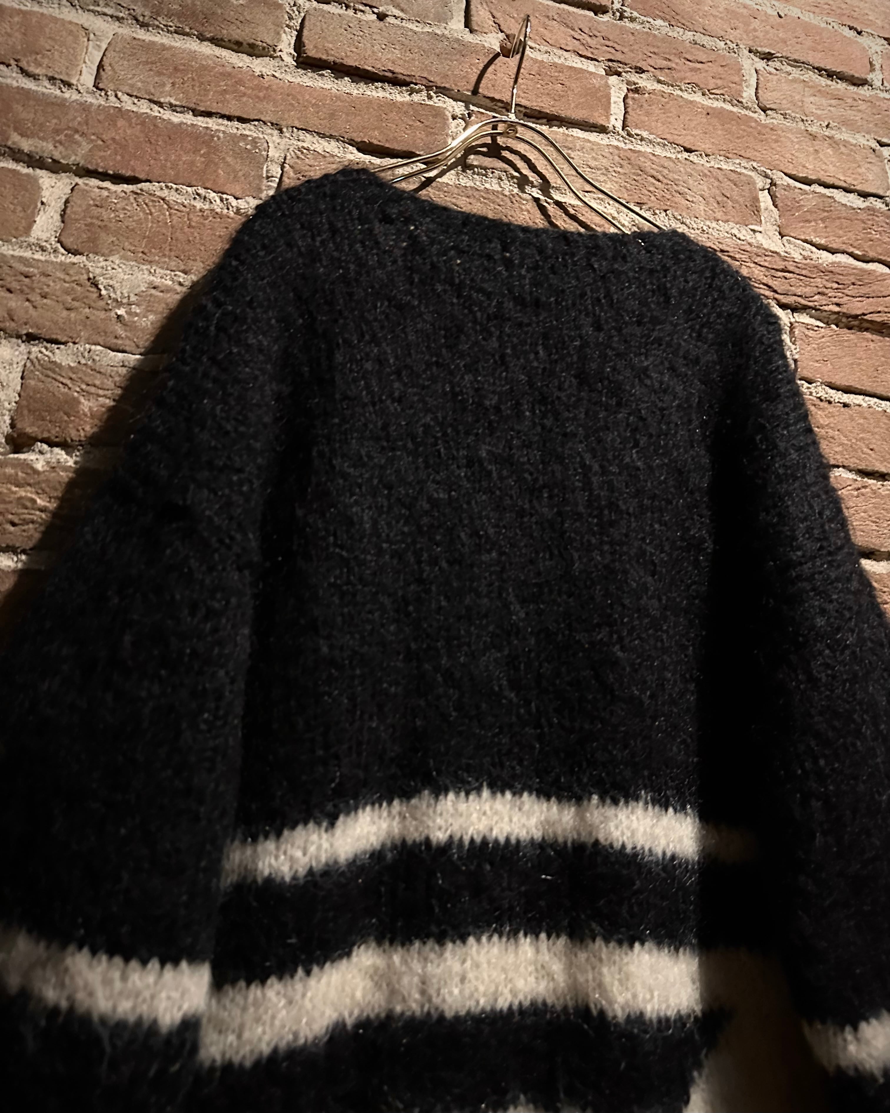 デザイン性と素材の良さがしっかりと伝わる、完成度の高いモヘアブレンドニットです。