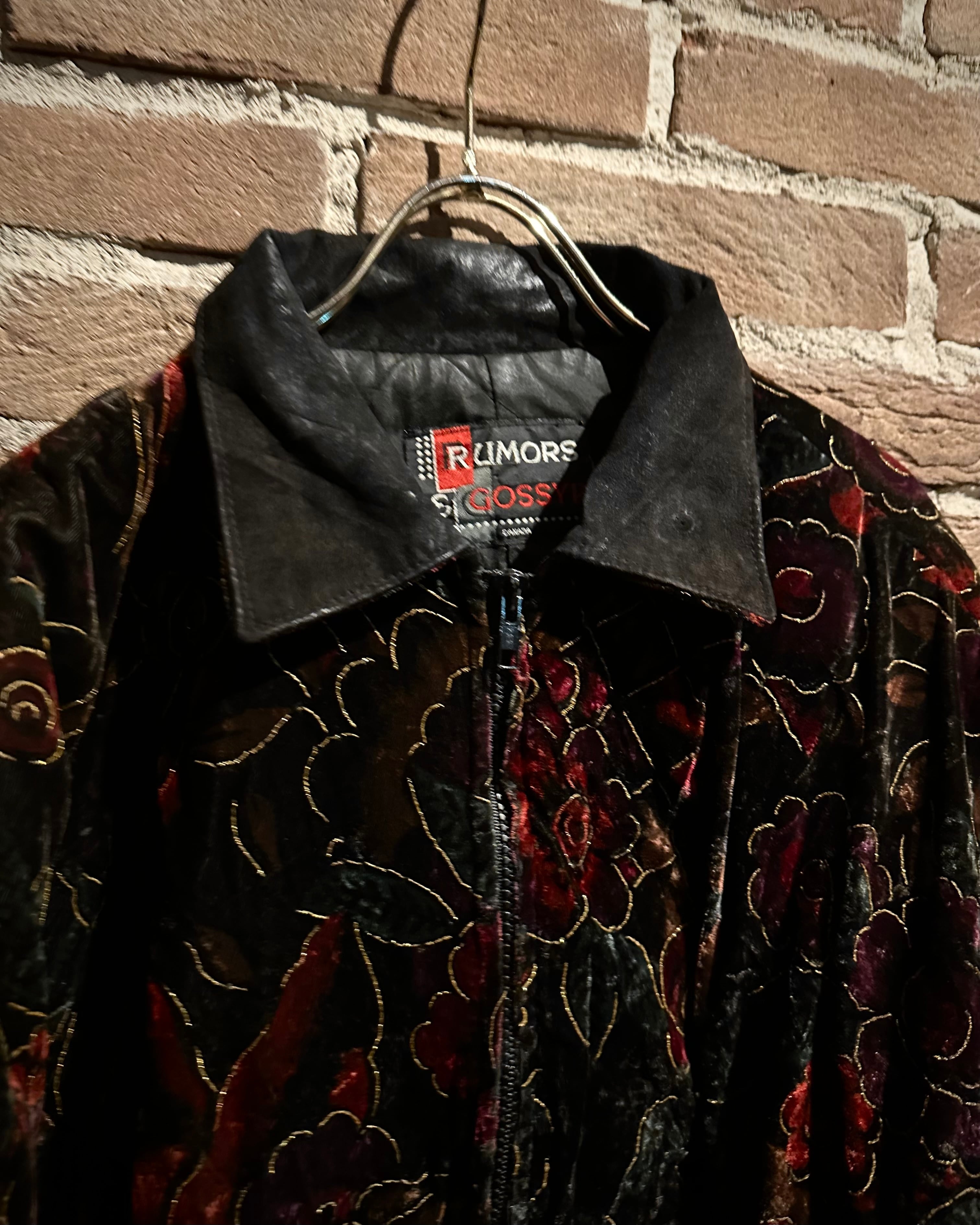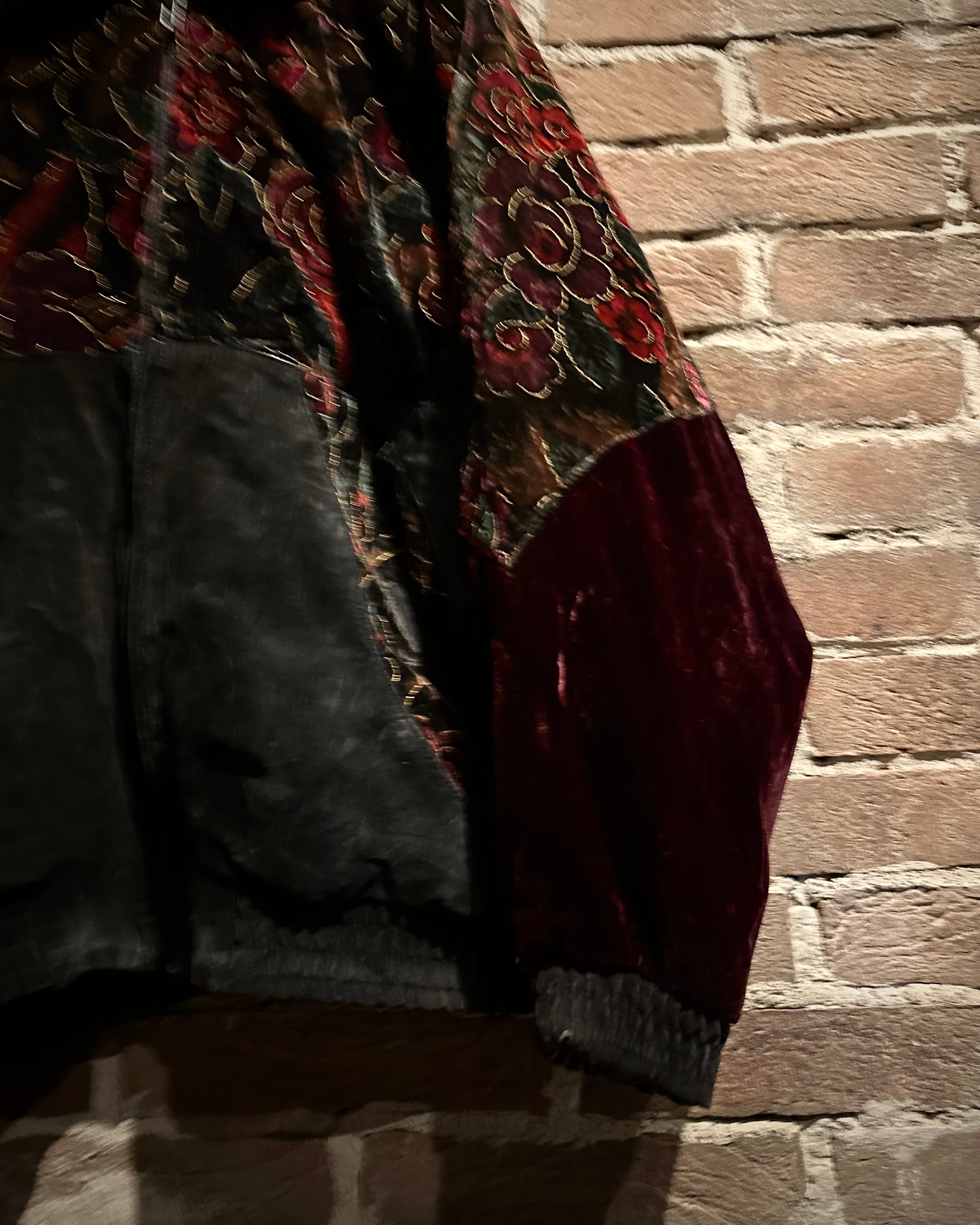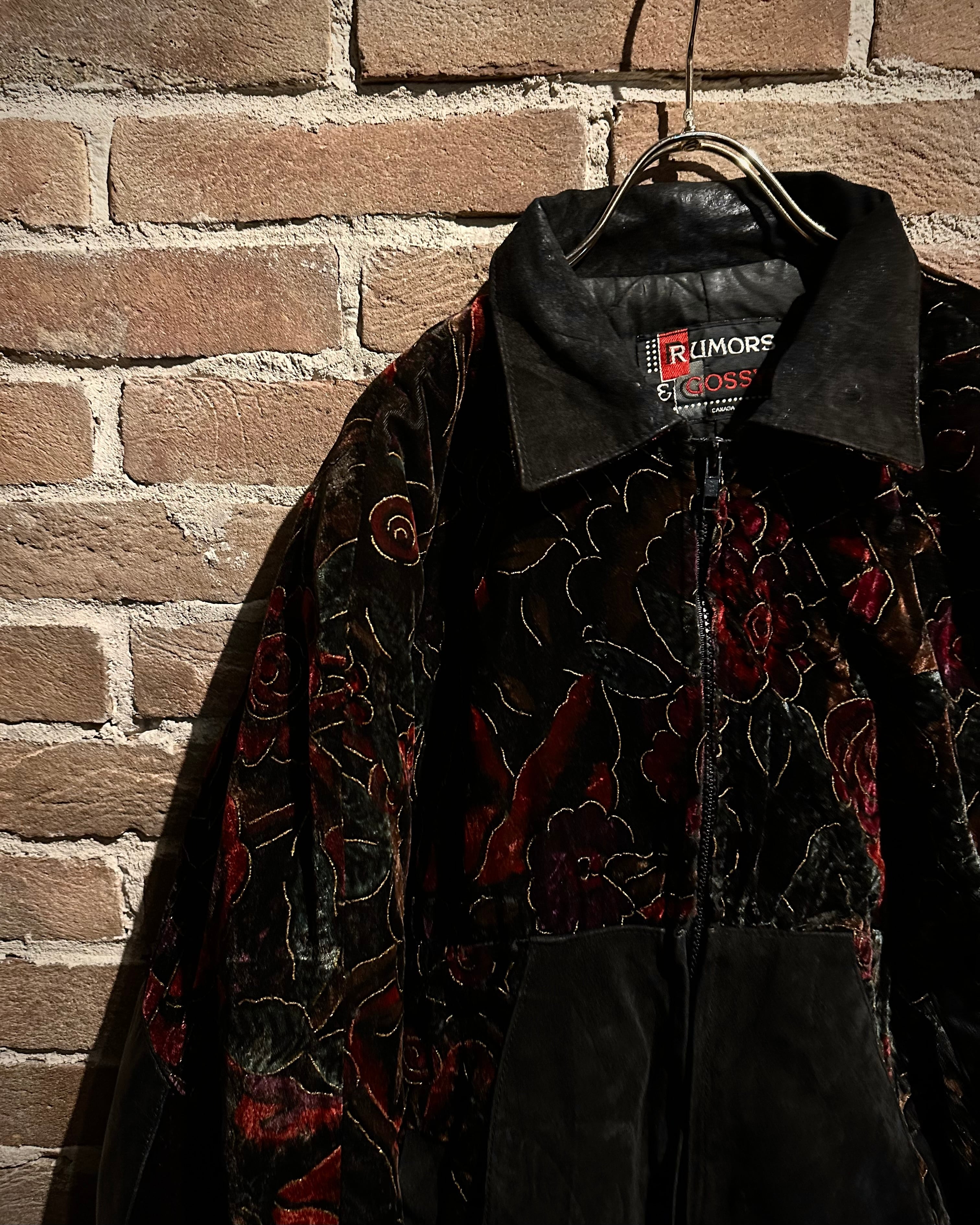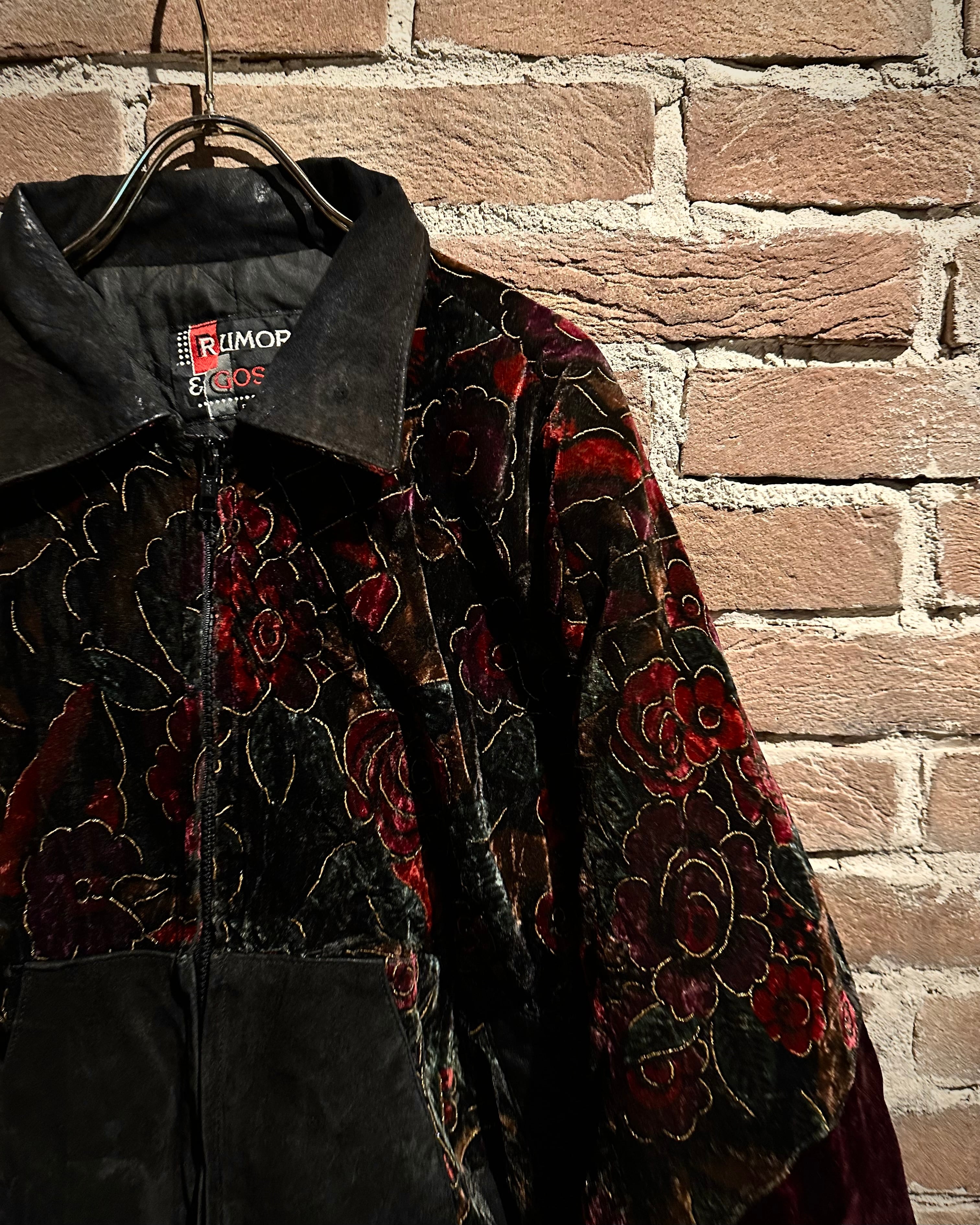 重厚なレザーと妖艶な薔薇柄ベロアを大胆に切り替えた、存在感抜群のスペシャルピース。