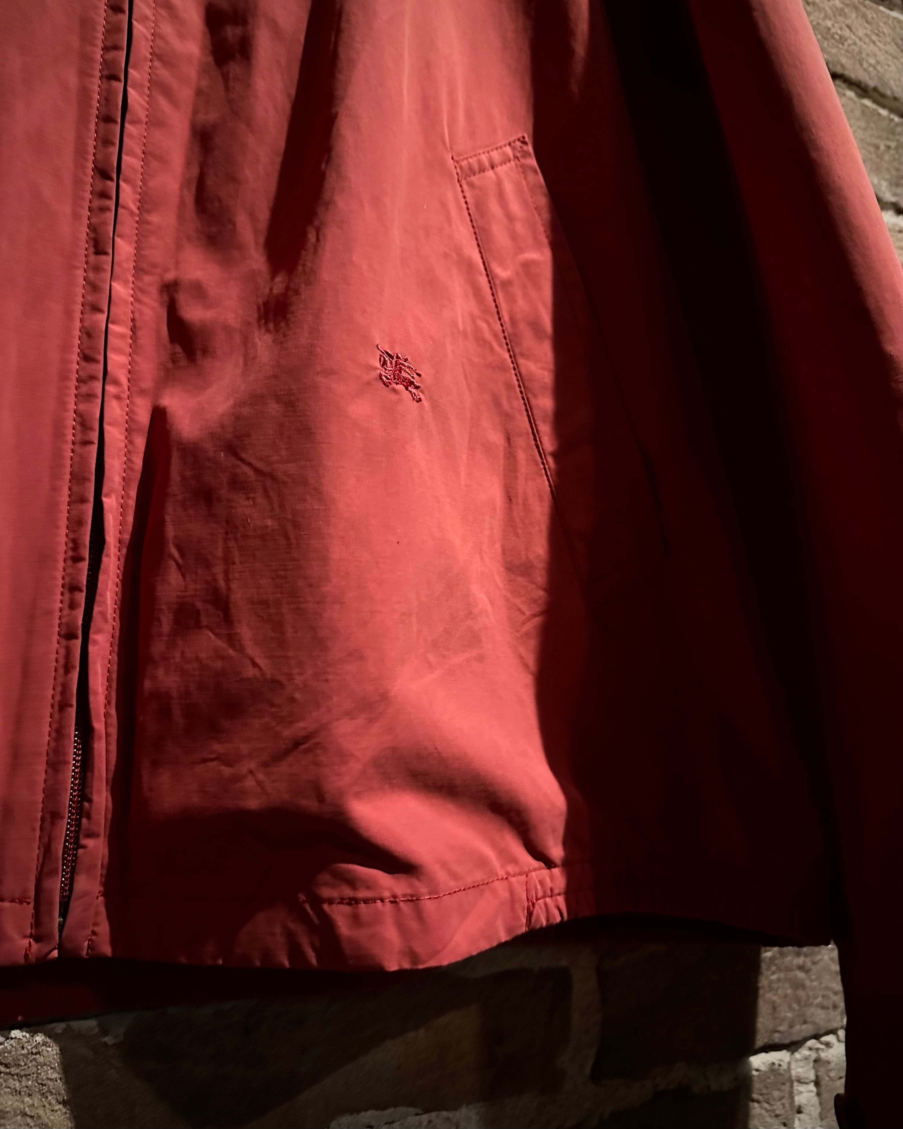 フェード感のあるレッドが印象的な1着。コットン×ポリアミド混紡のシェルは、しなやかさと程よいハリを兼備し、奥行きのある色味がスタイリングに確かな存在感を与えます。
