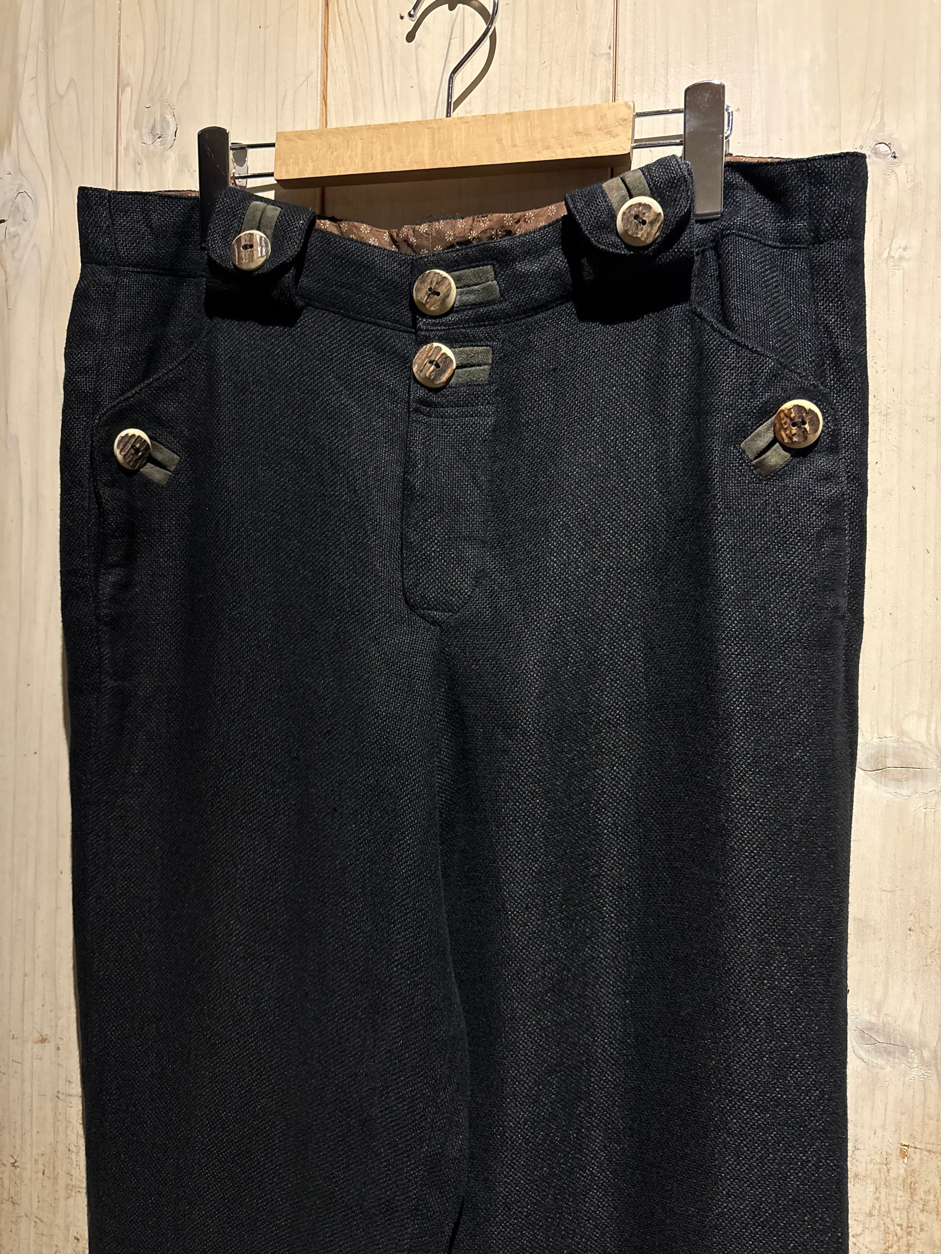 ヨーロッパの民族衣装をルーツに持つ、ヘビーリネンのチロリアンパンツ。