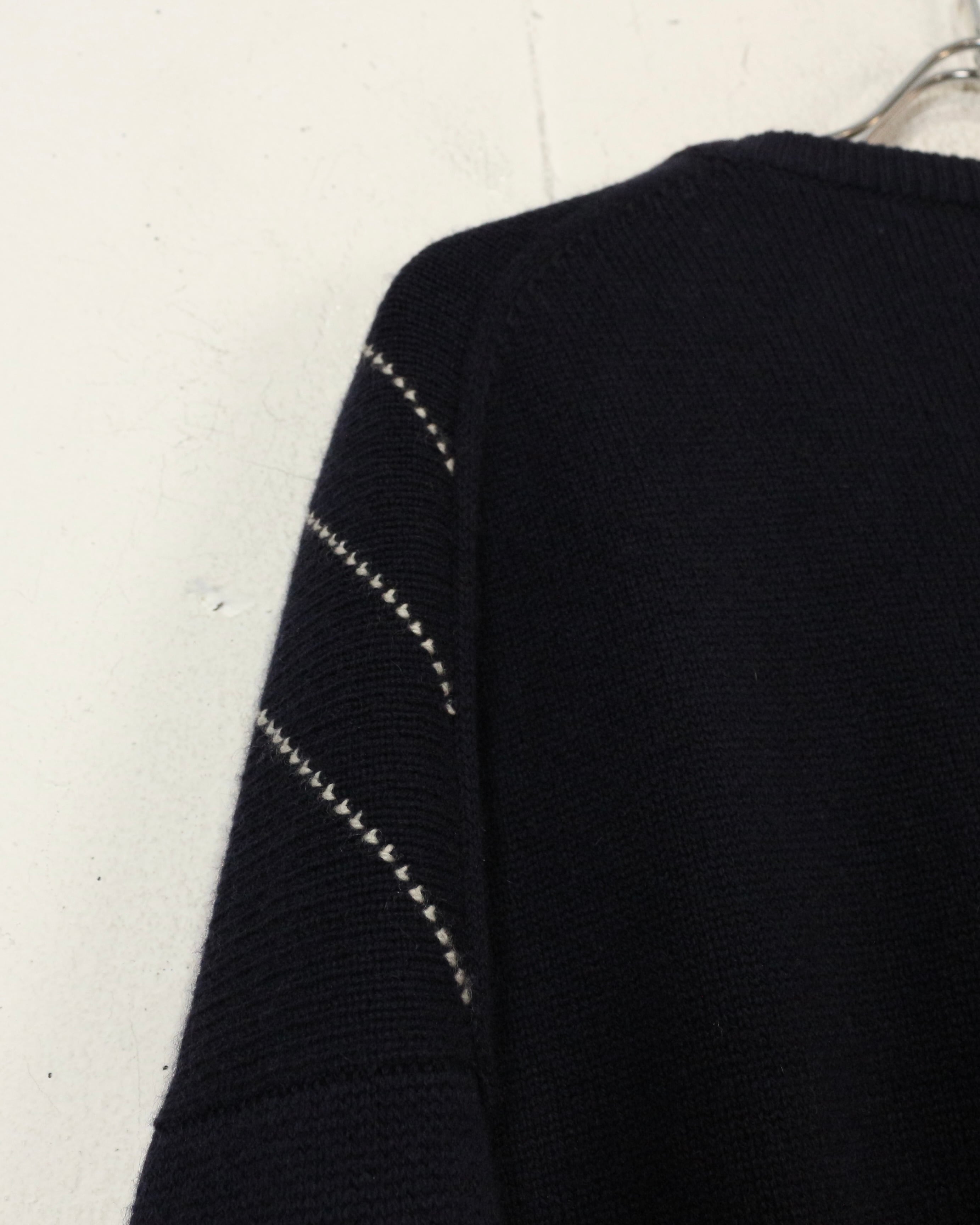 胸元から裾にかけて走るダイヤパターンと、繊細なライン使いが立体的な奥行きを演出。派手さはないものの、確かな存在感を放つデザインに仕上がっています。