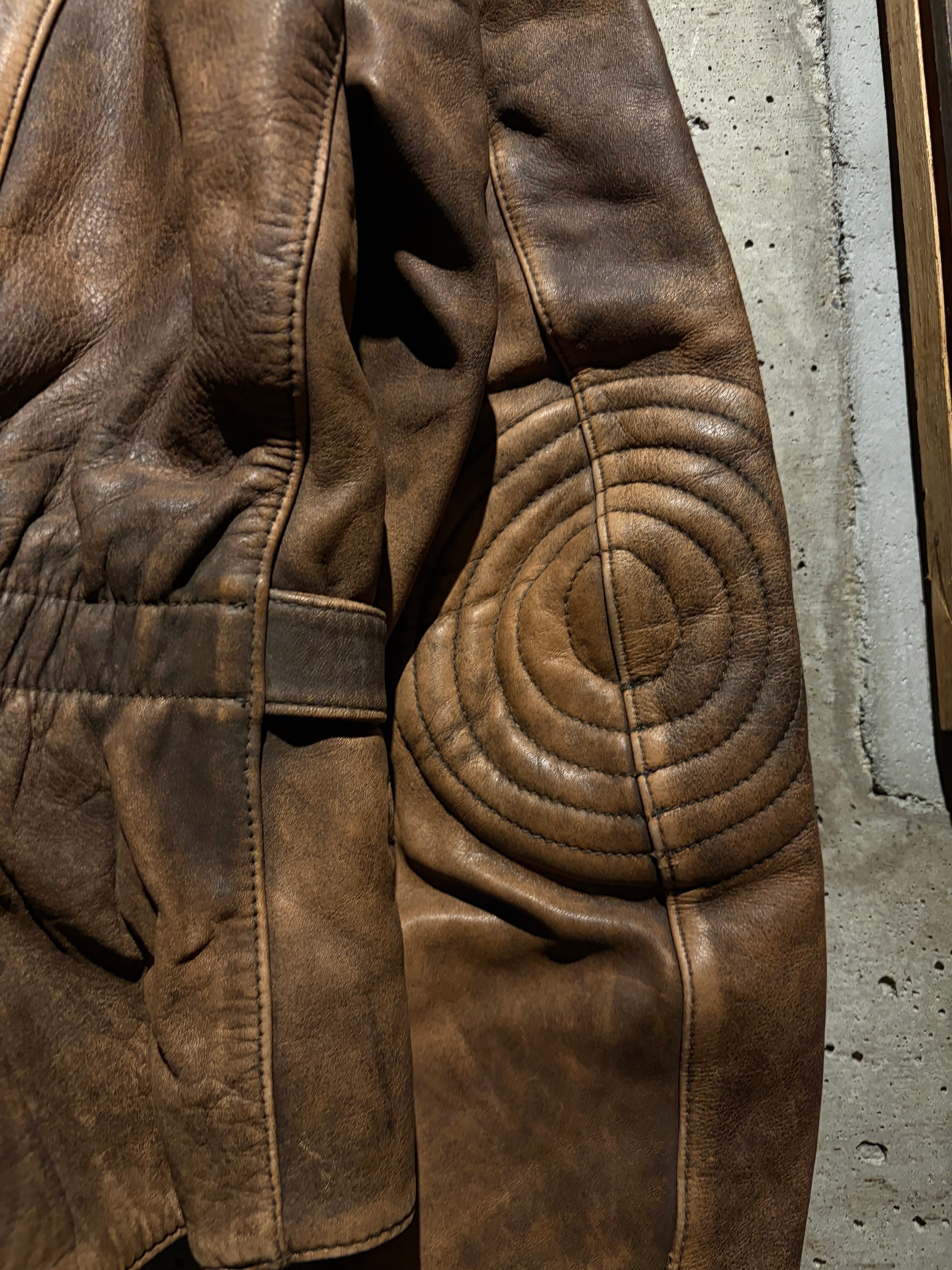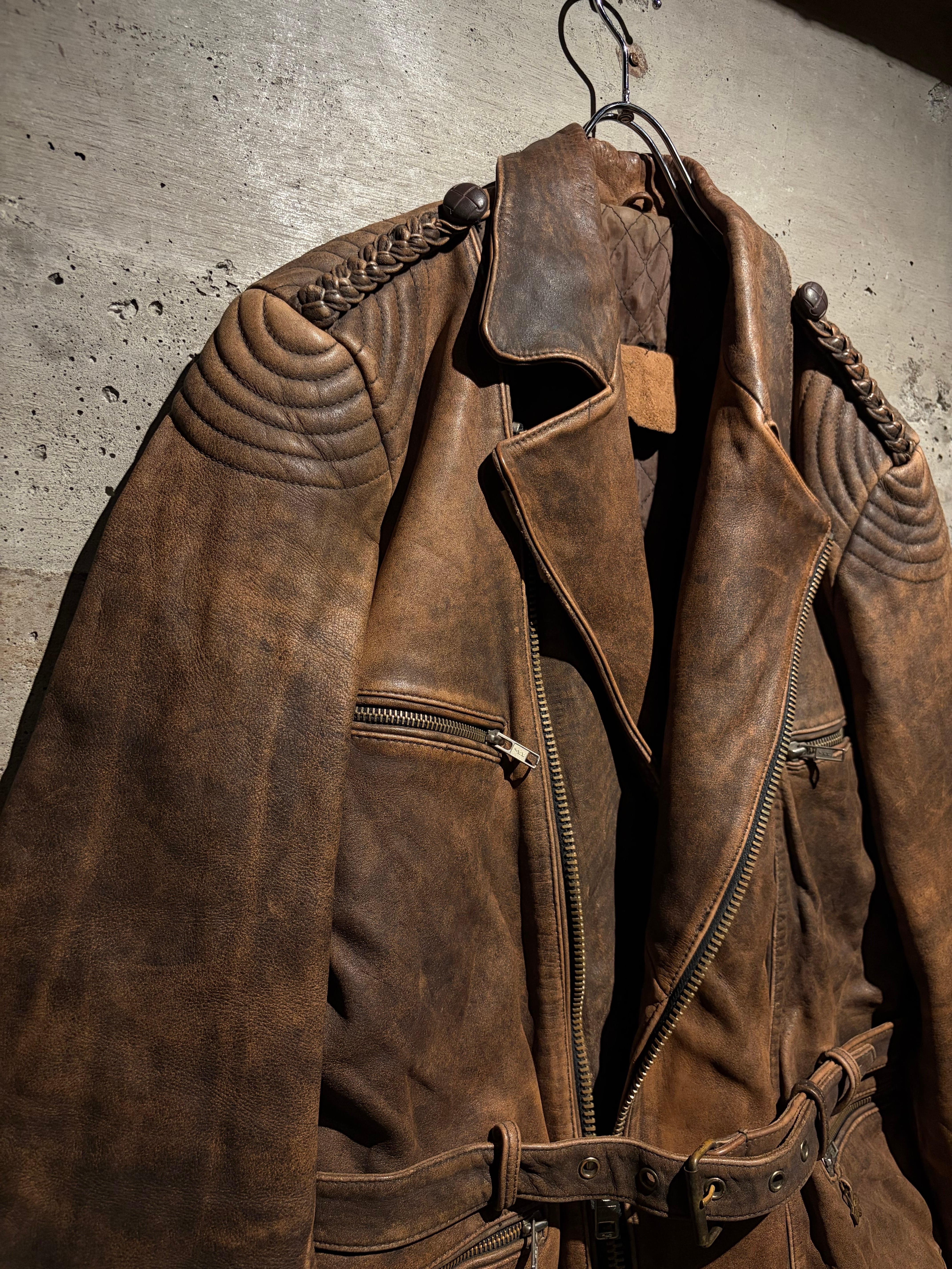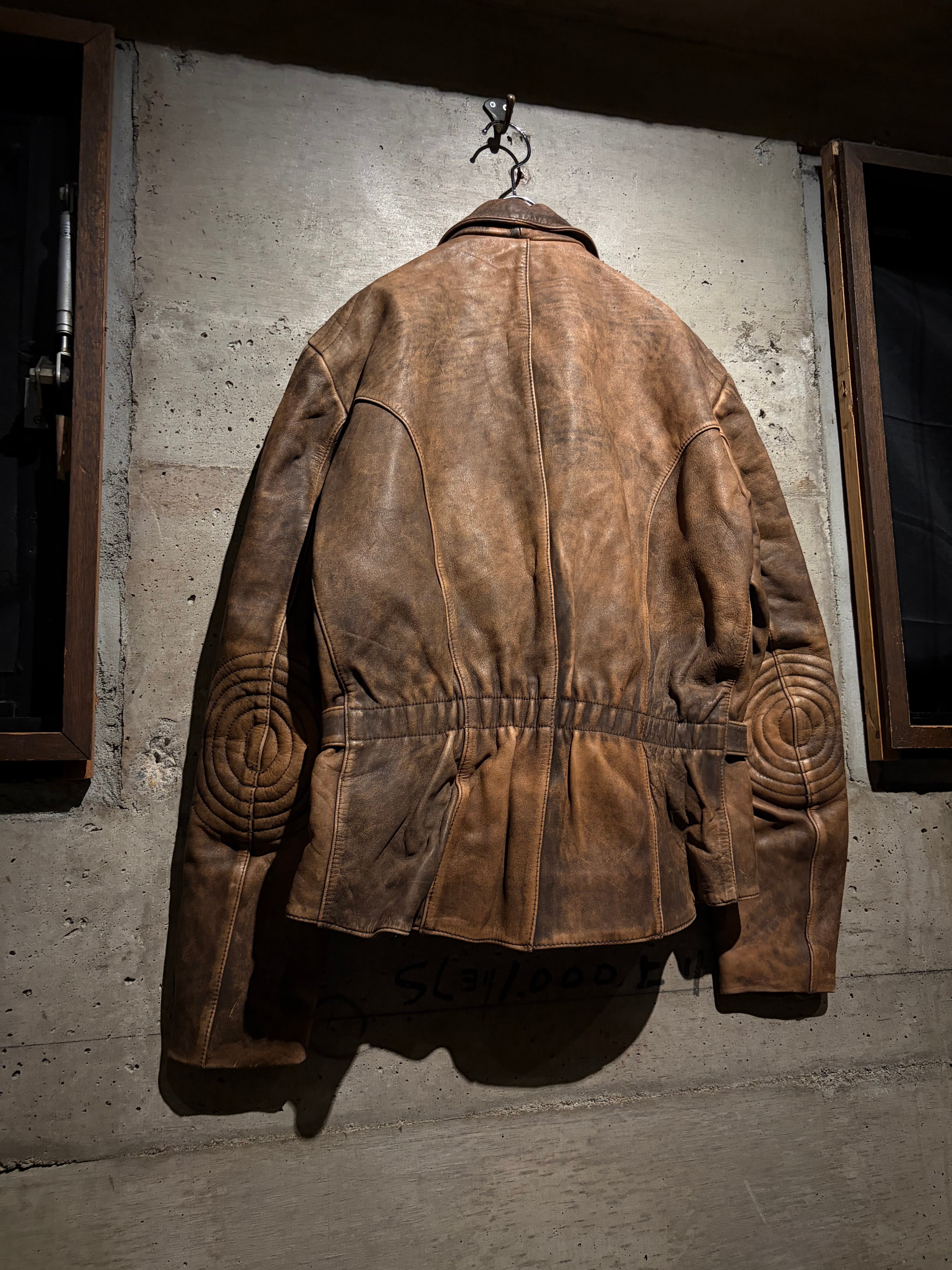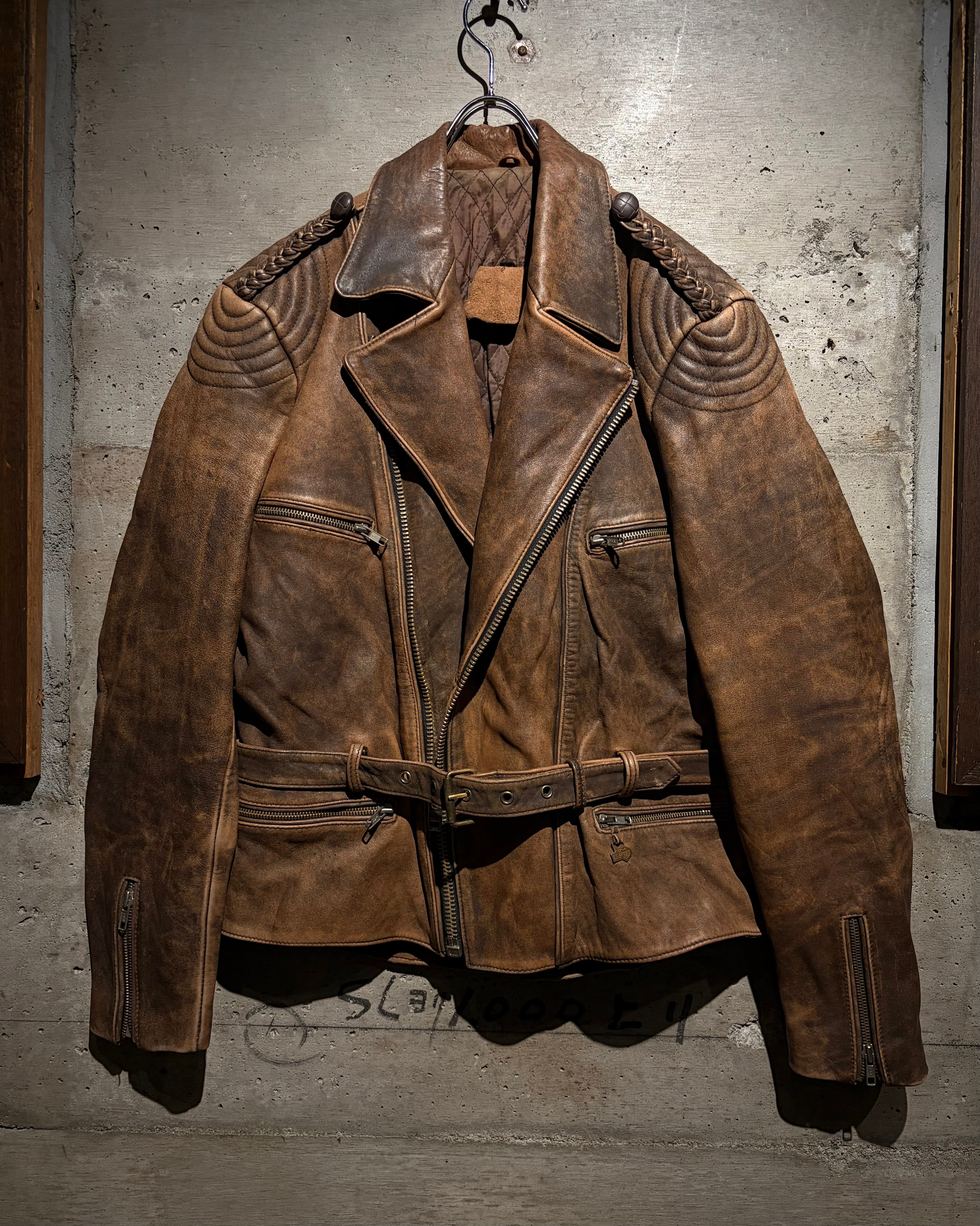肉厚でしなやかなリアルレザーを贅沢に使用し、長年着込まれたことによるエイジングが雰囲気を漂わせる1着。