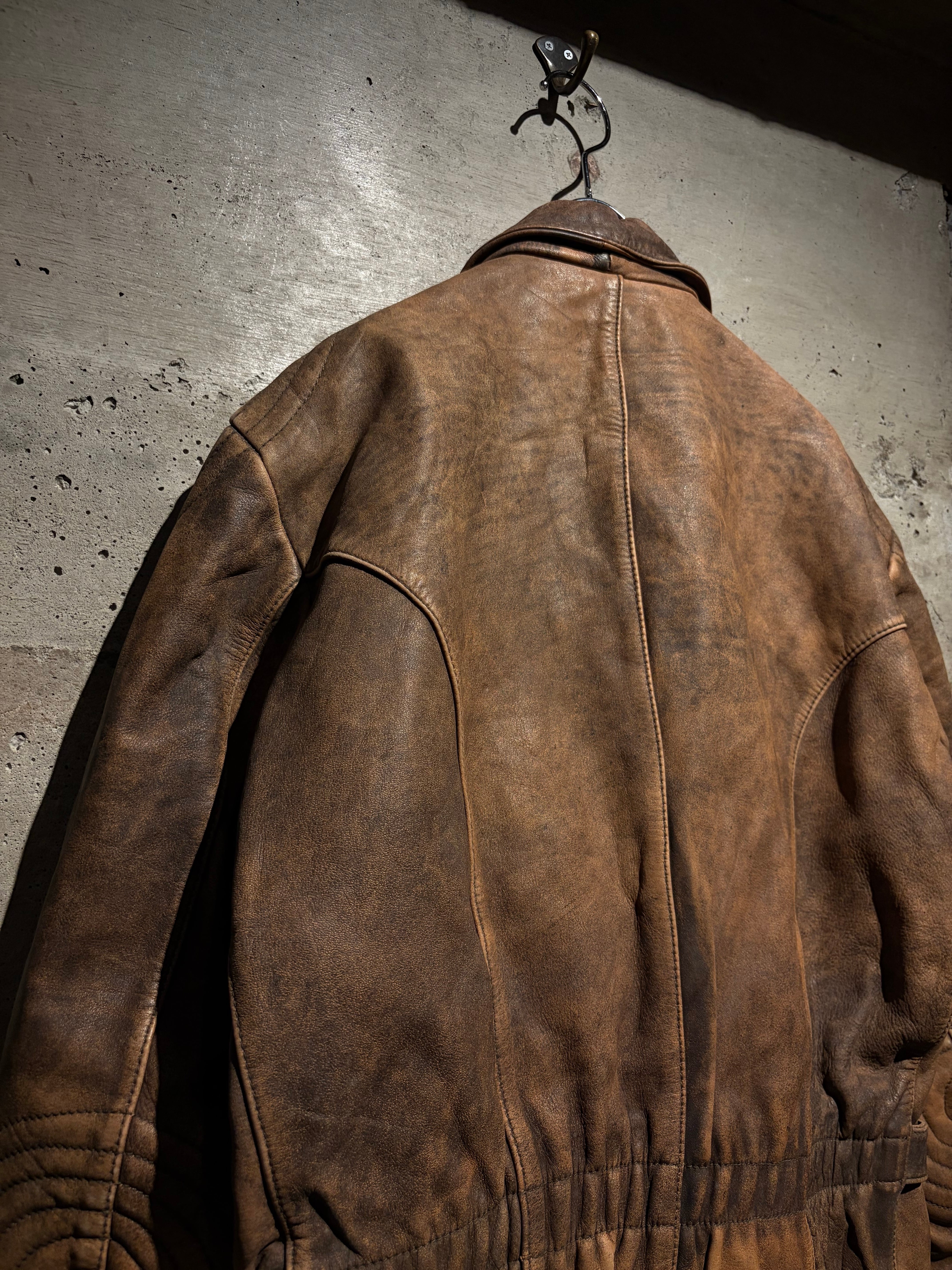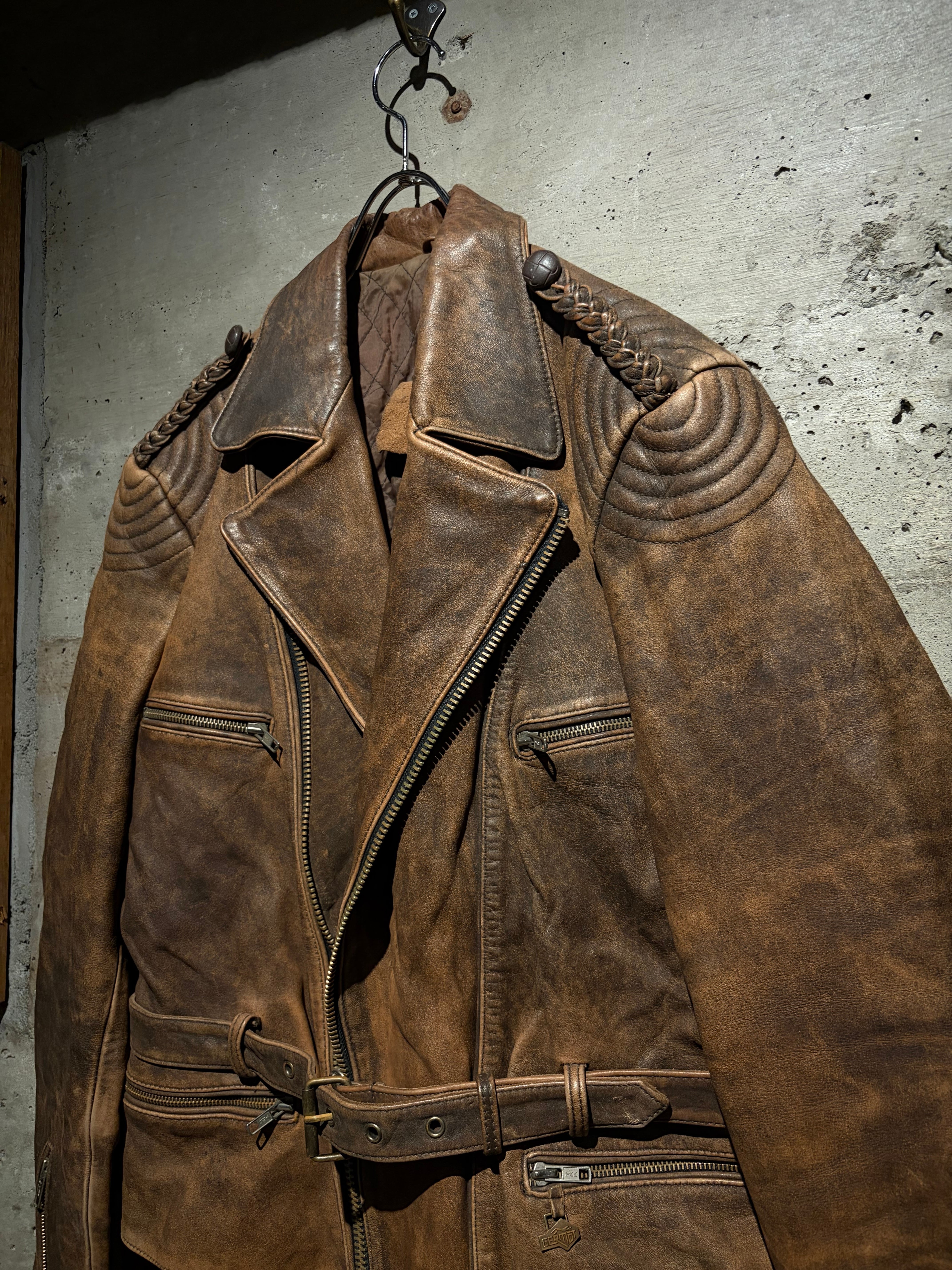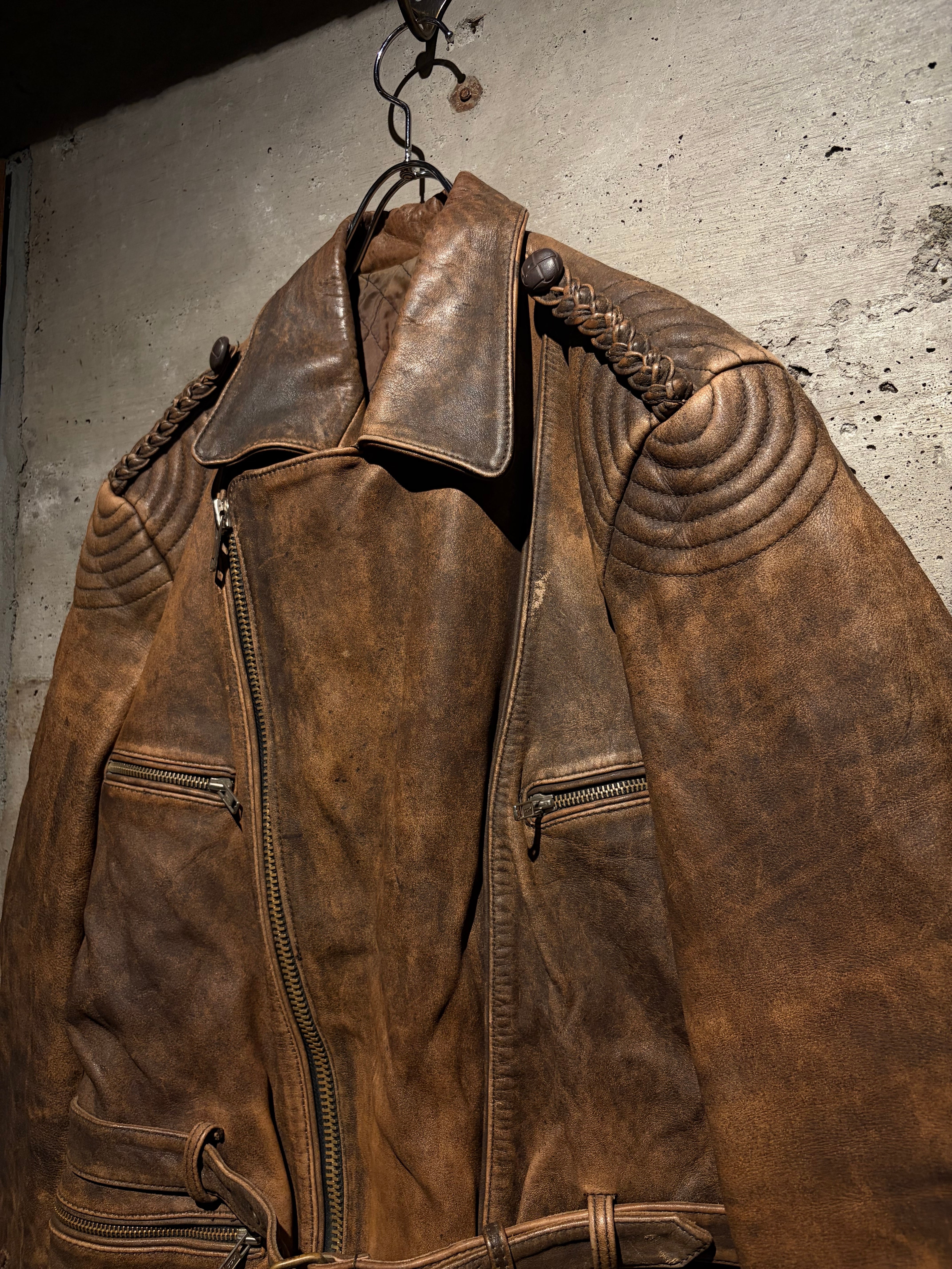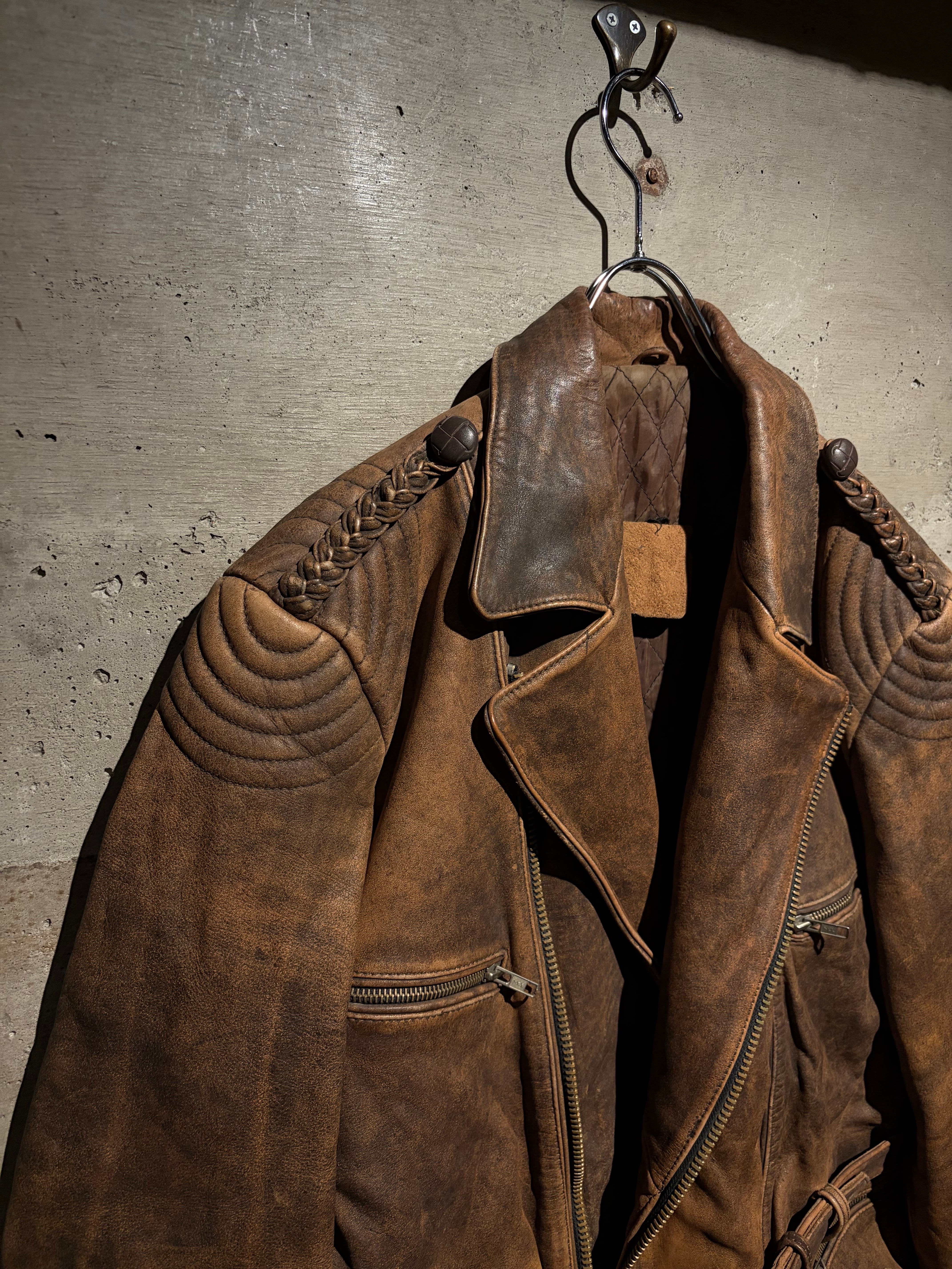 肉厚でしなやかなリアルレザーを贅沢に使用し、長年着込まれたことによるエイジングが雰囲気を漂わせる1着。