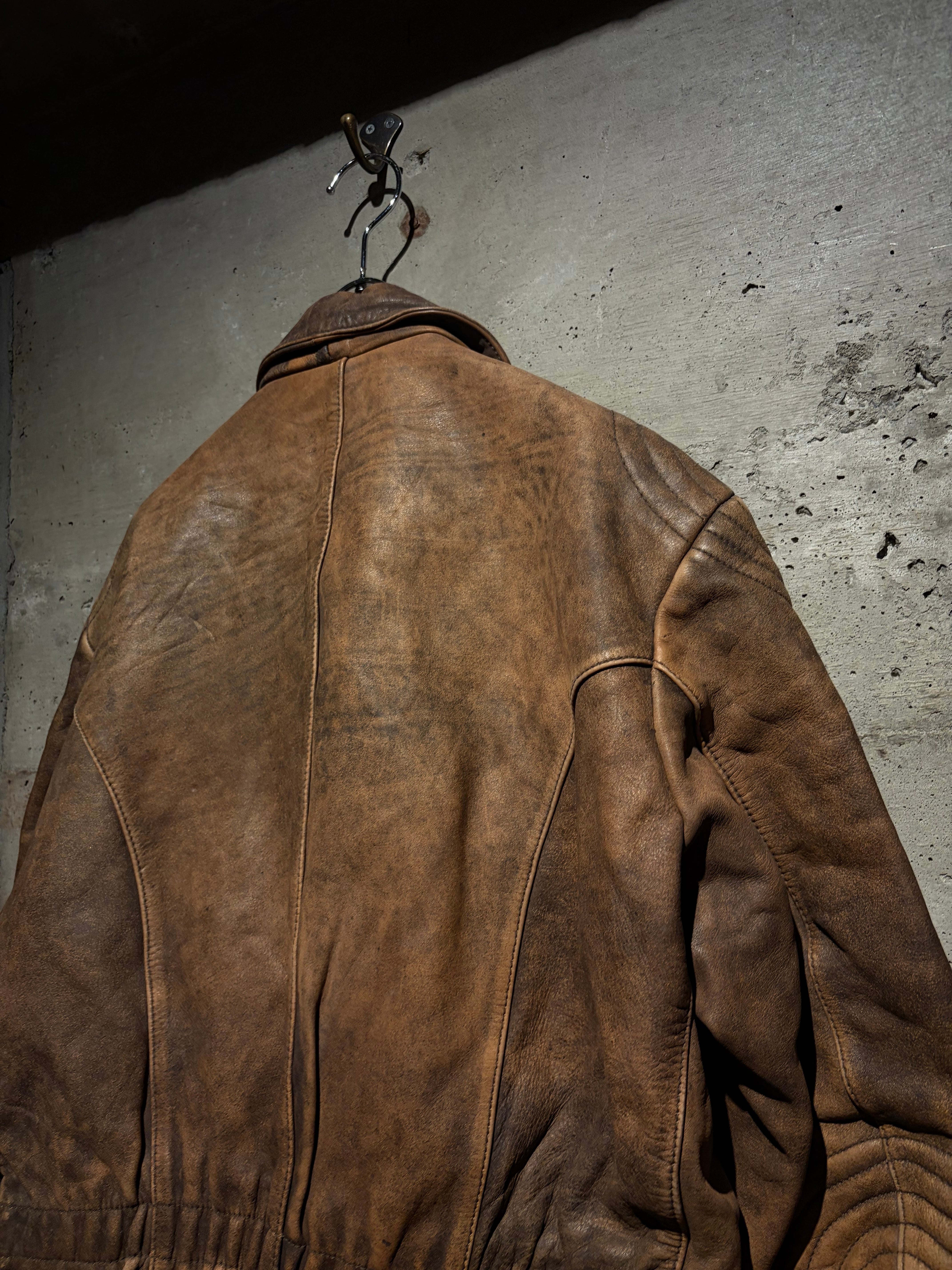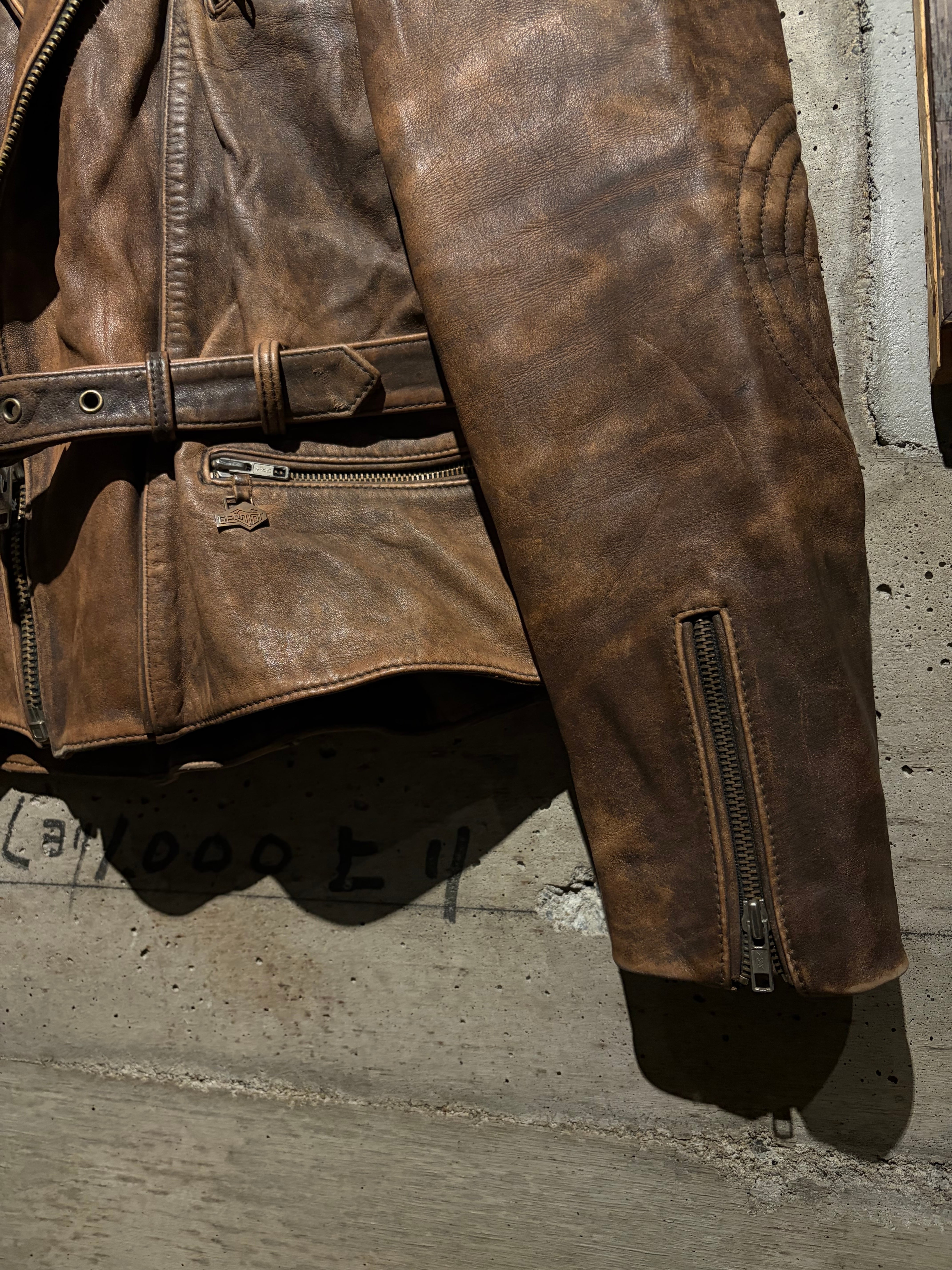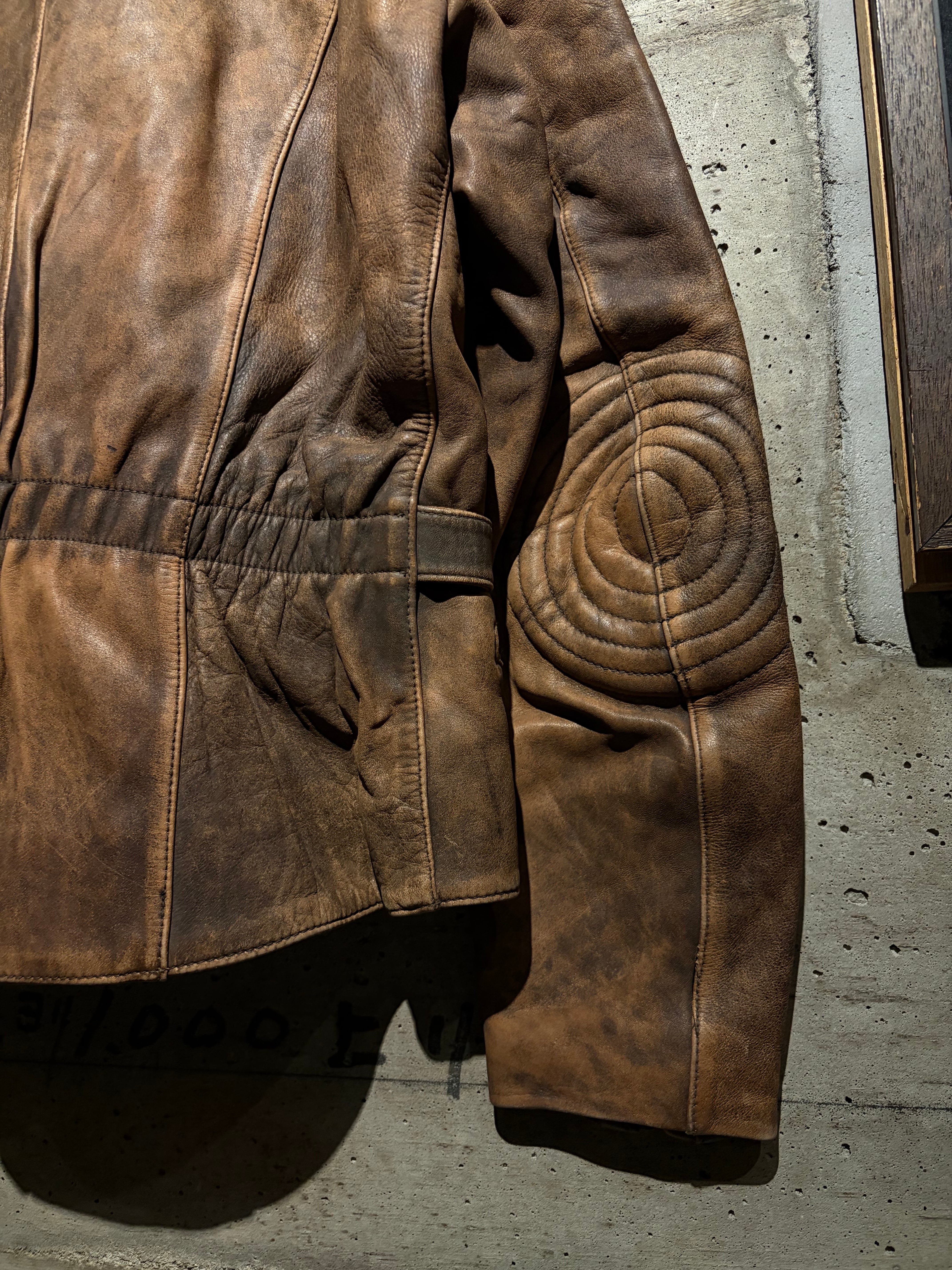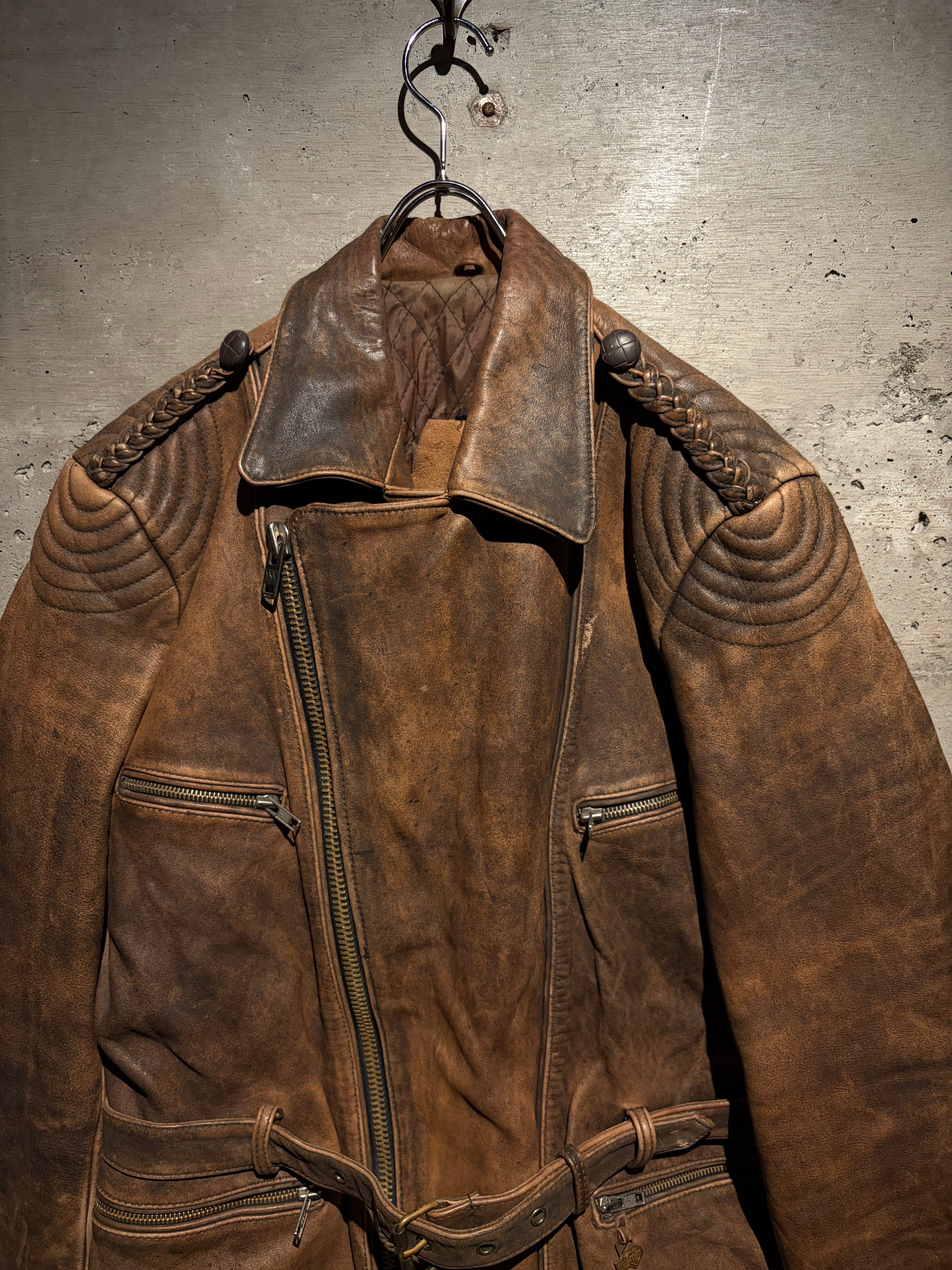 肉厚でしなやかなリアルレザーを贅沢に使用し、長年着込まれたことによるエイジングが雰囲気を漂わせる1着。
