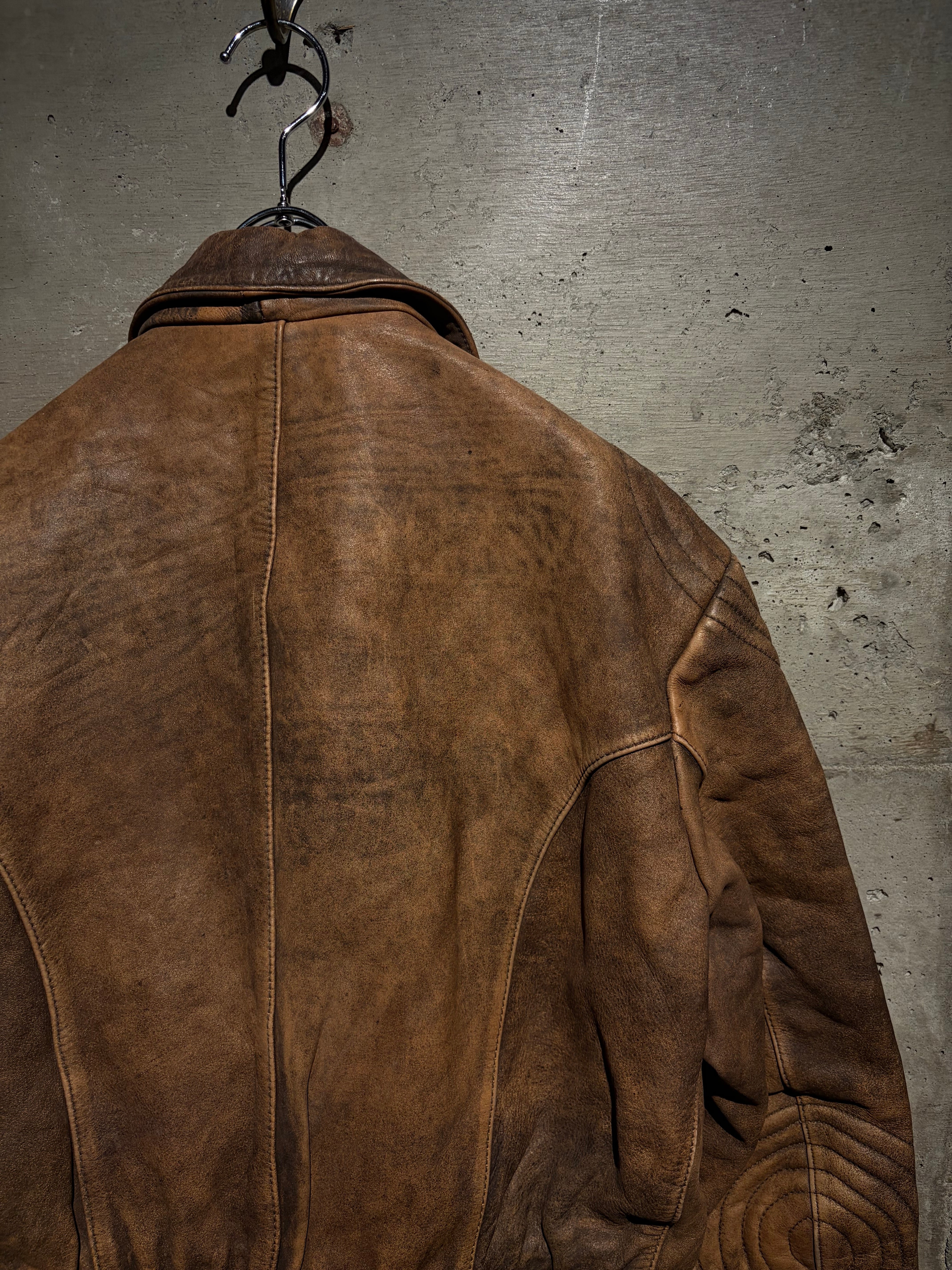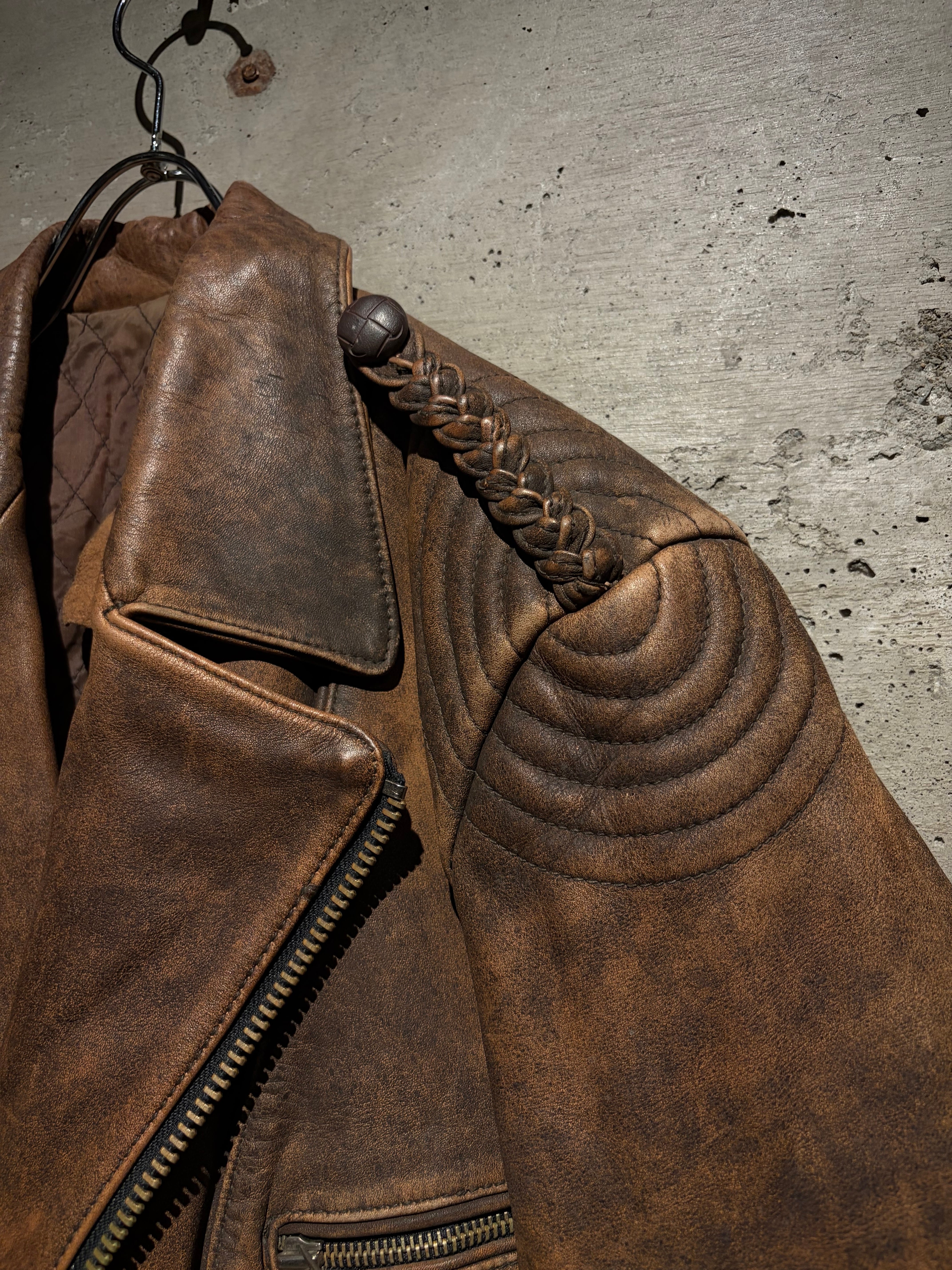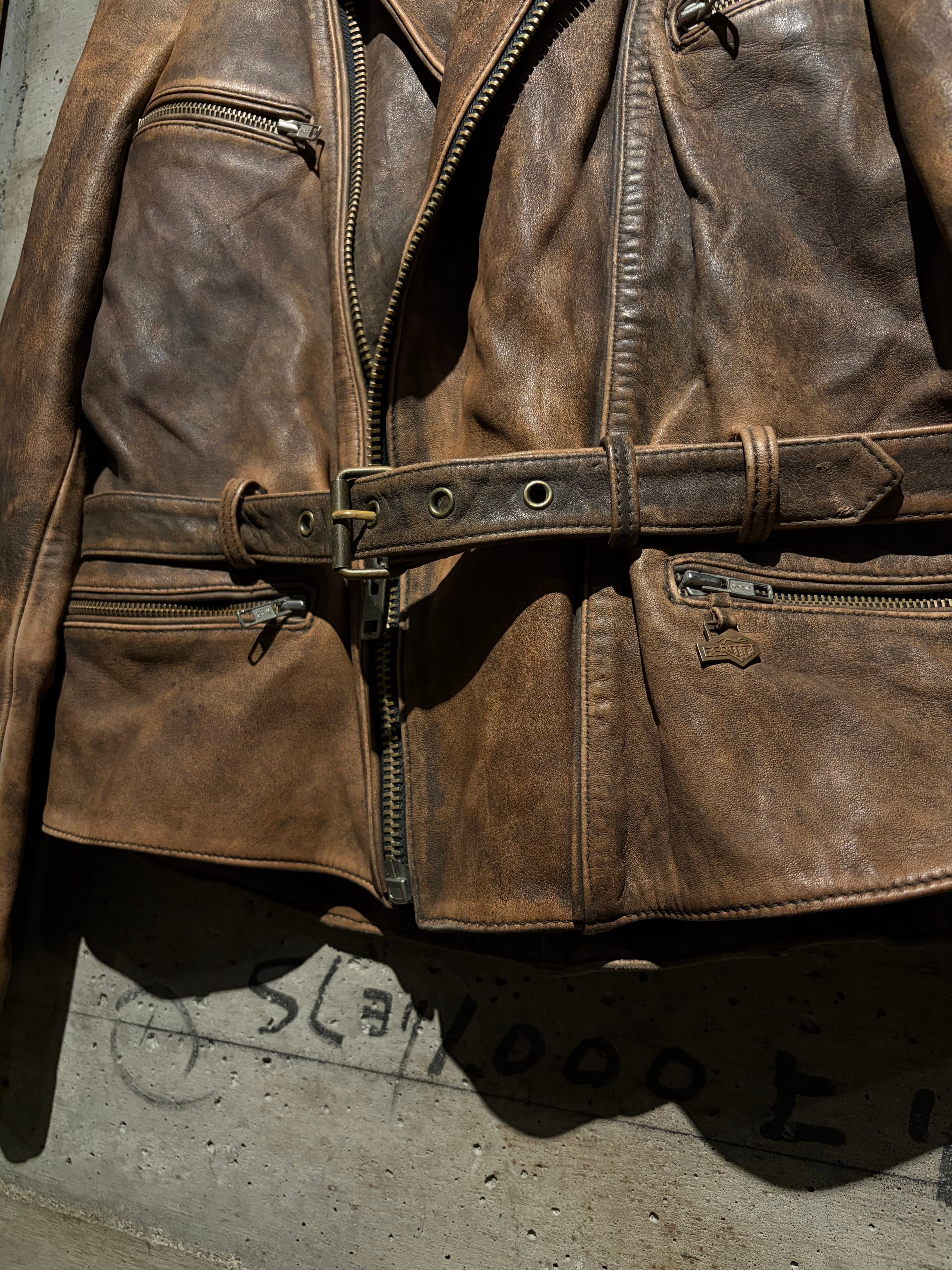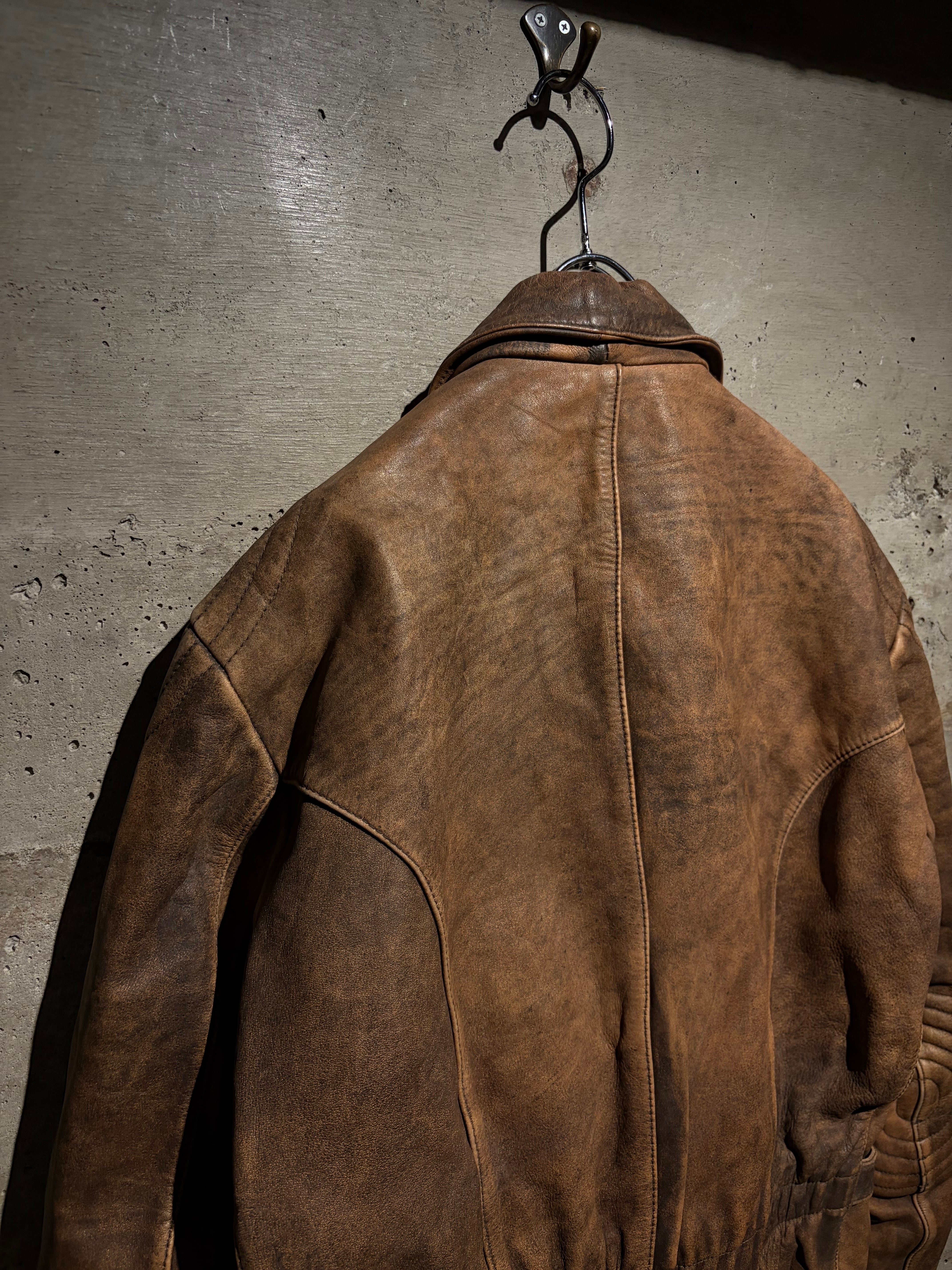 肉厚でしなやかなリアルレザーを贅沢に使用し、長年着込まれたことによるエイジングが雰囲気を漂わせる1着。