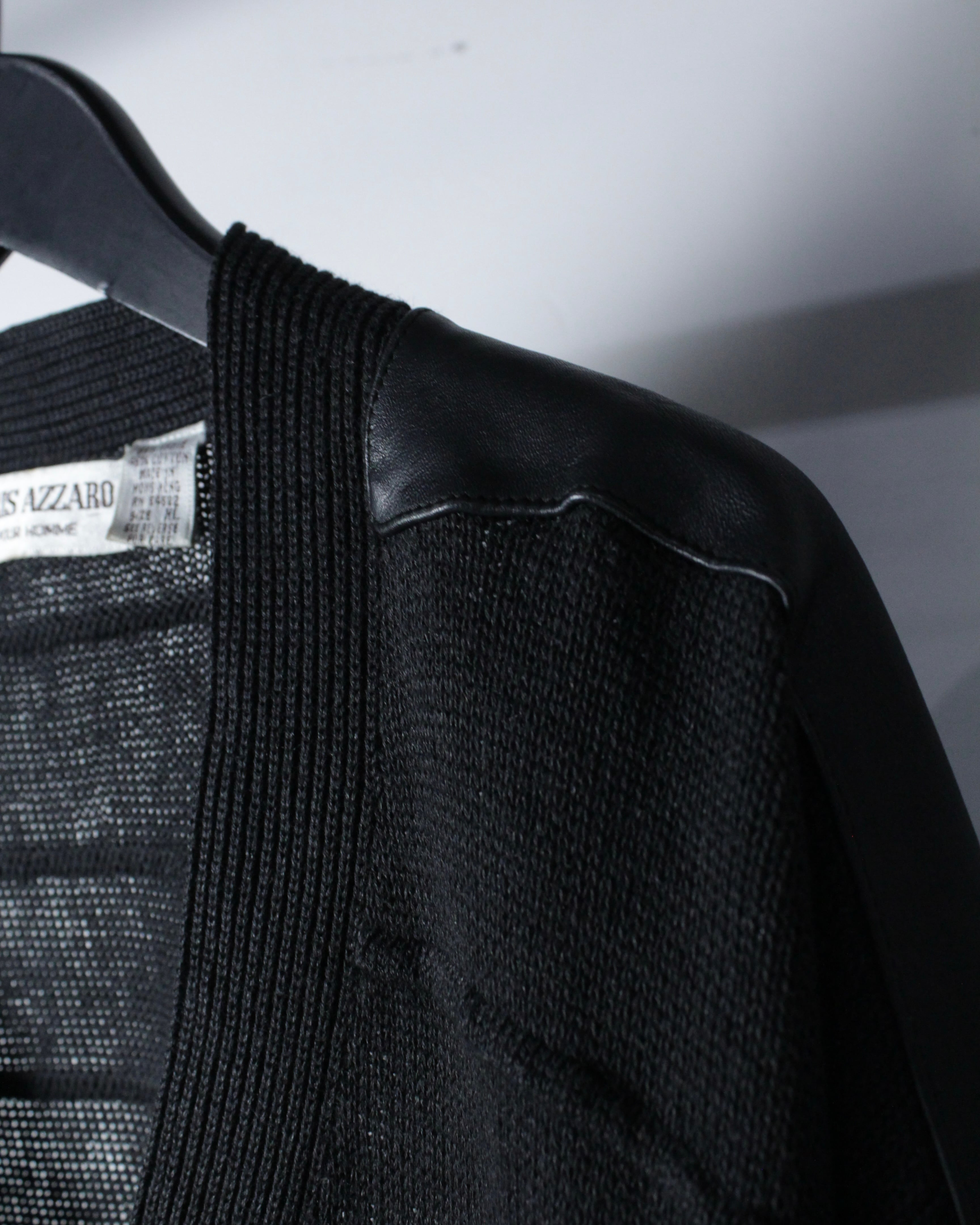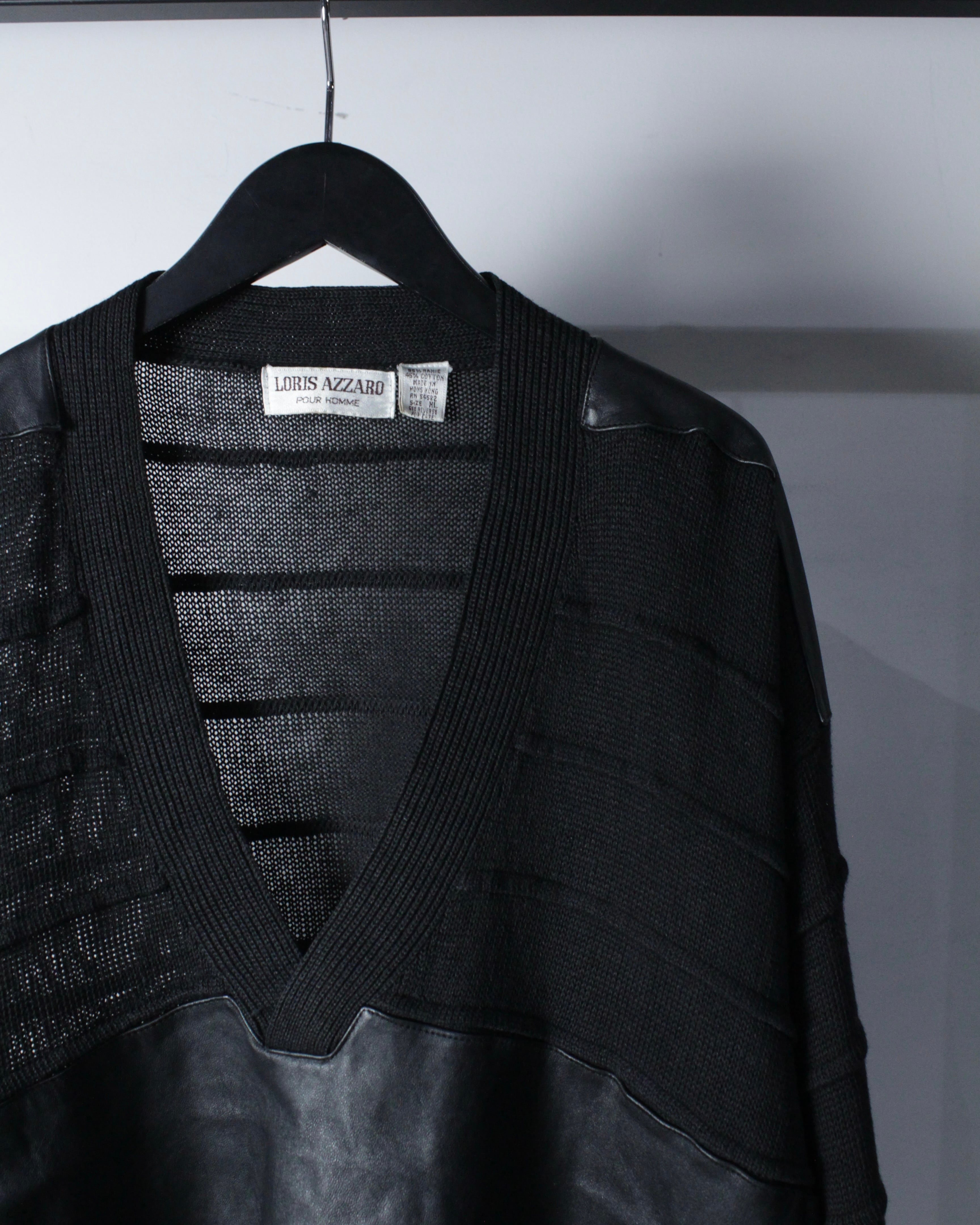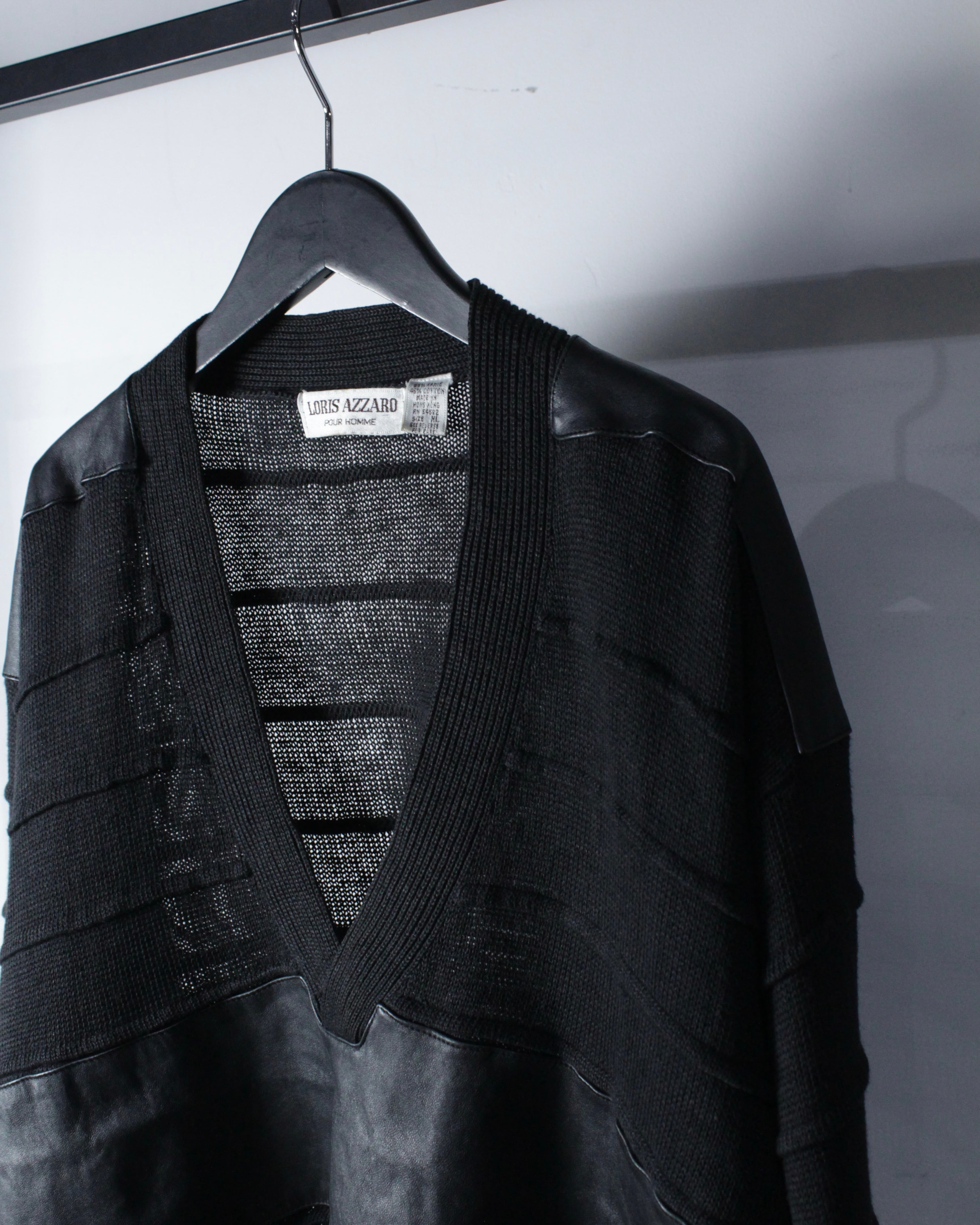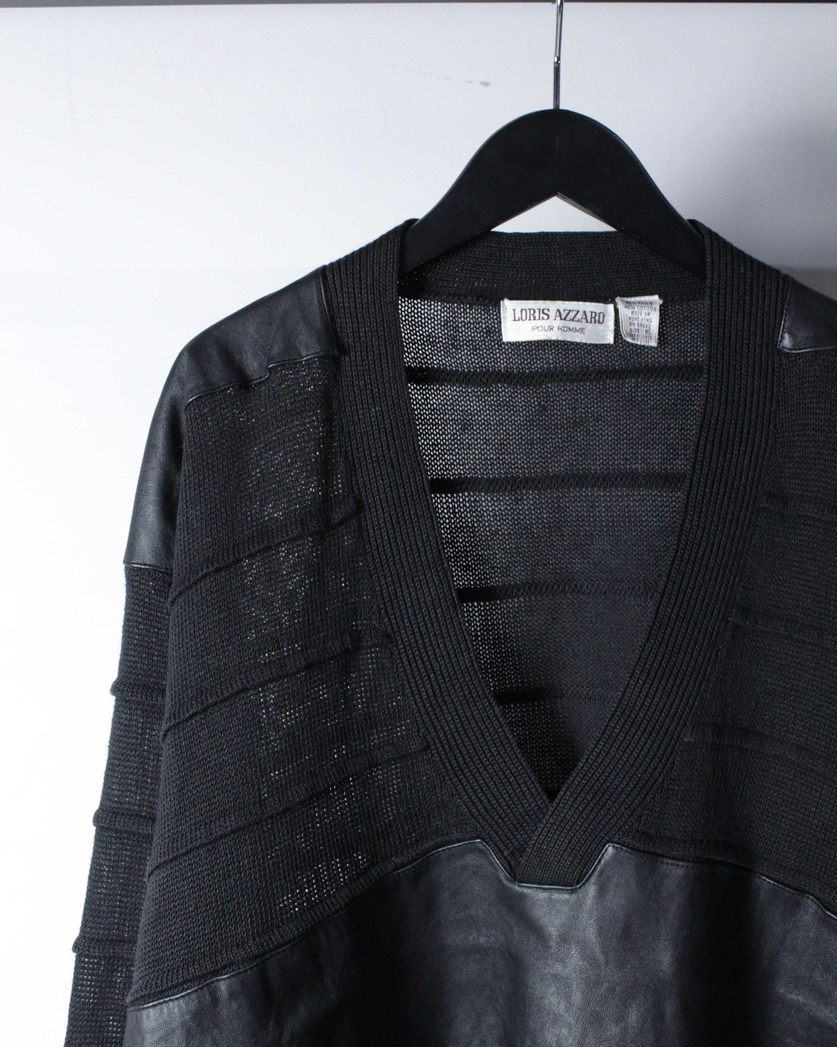 ボーダー状に立体感のあるニッティングが施されたボディに、フロントと肩部分へ滑らかなブラックレザーを切り替えた1着。