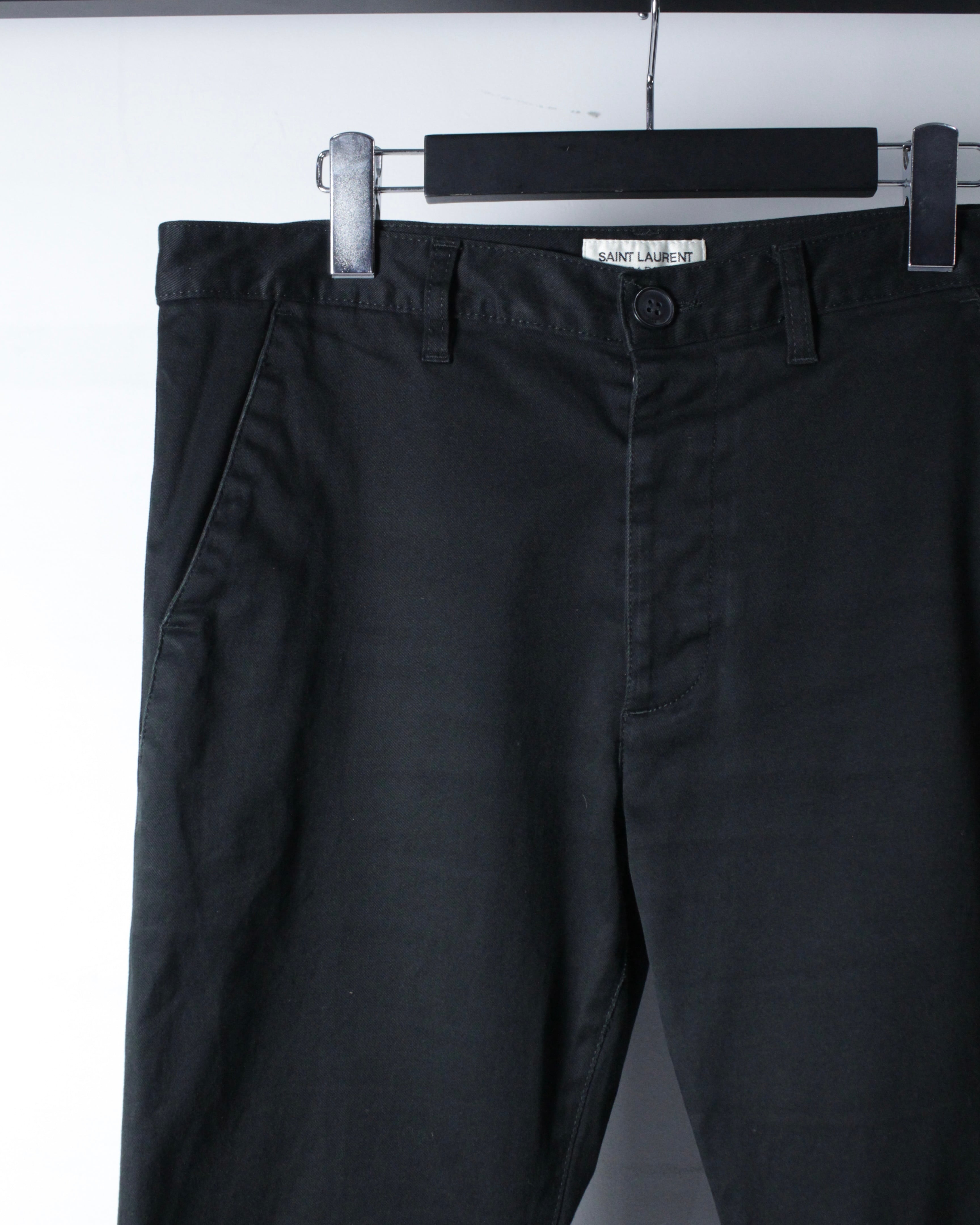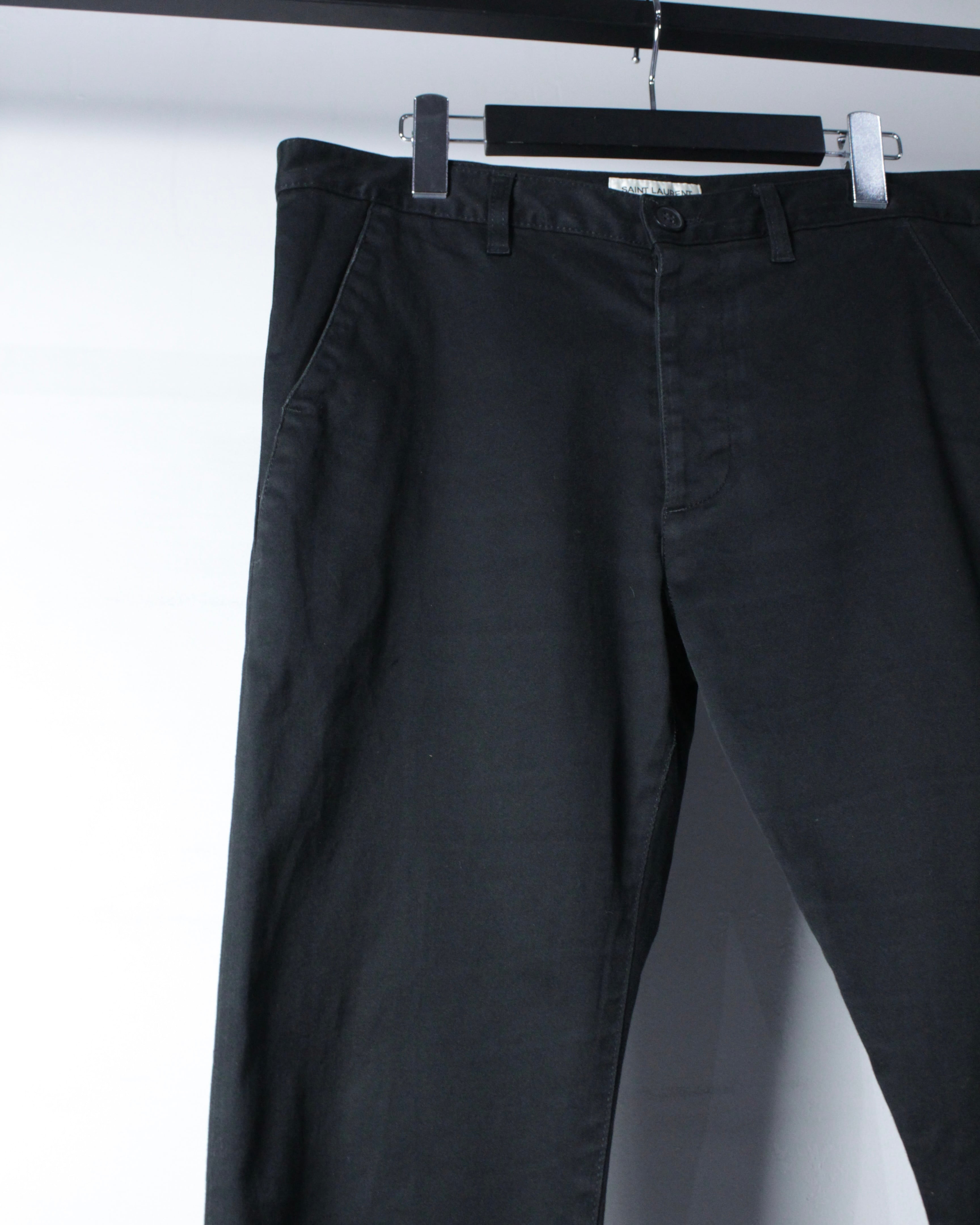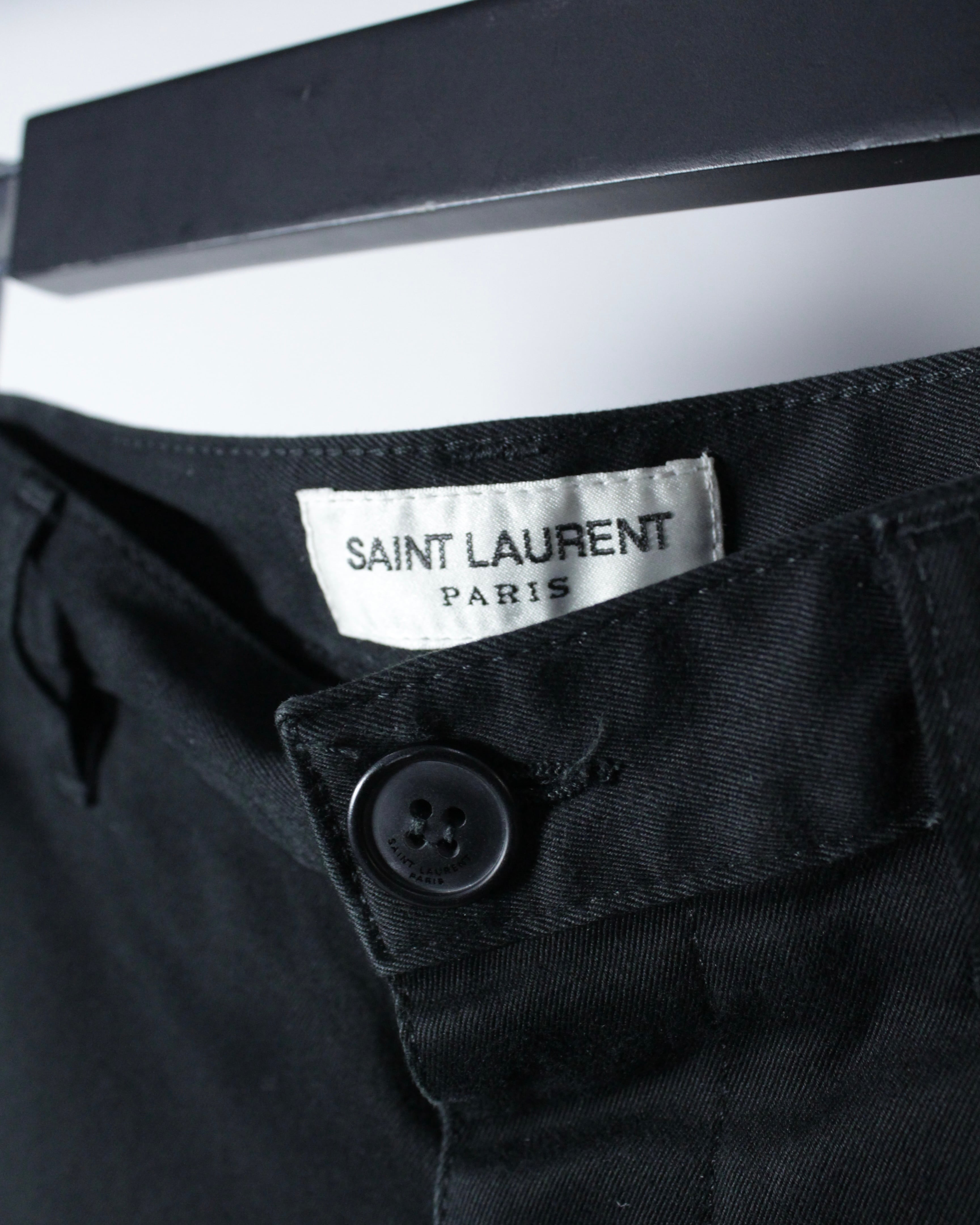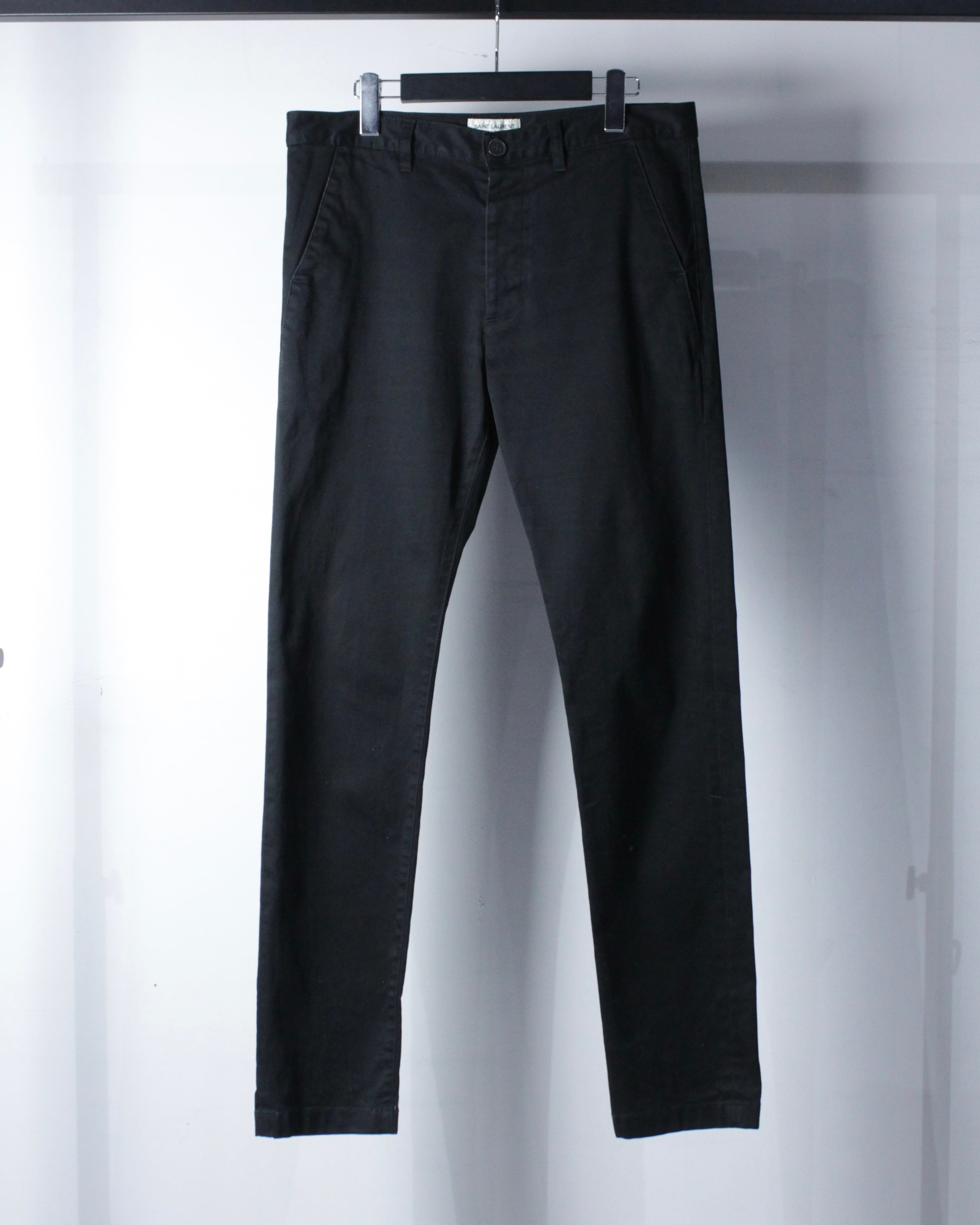 フランスを代表するラグジュアリーブランド、SAINT LAURENTより、極限までシンプルに仕上げられた、ミニマルなブラックスキニーパンツの逸品。