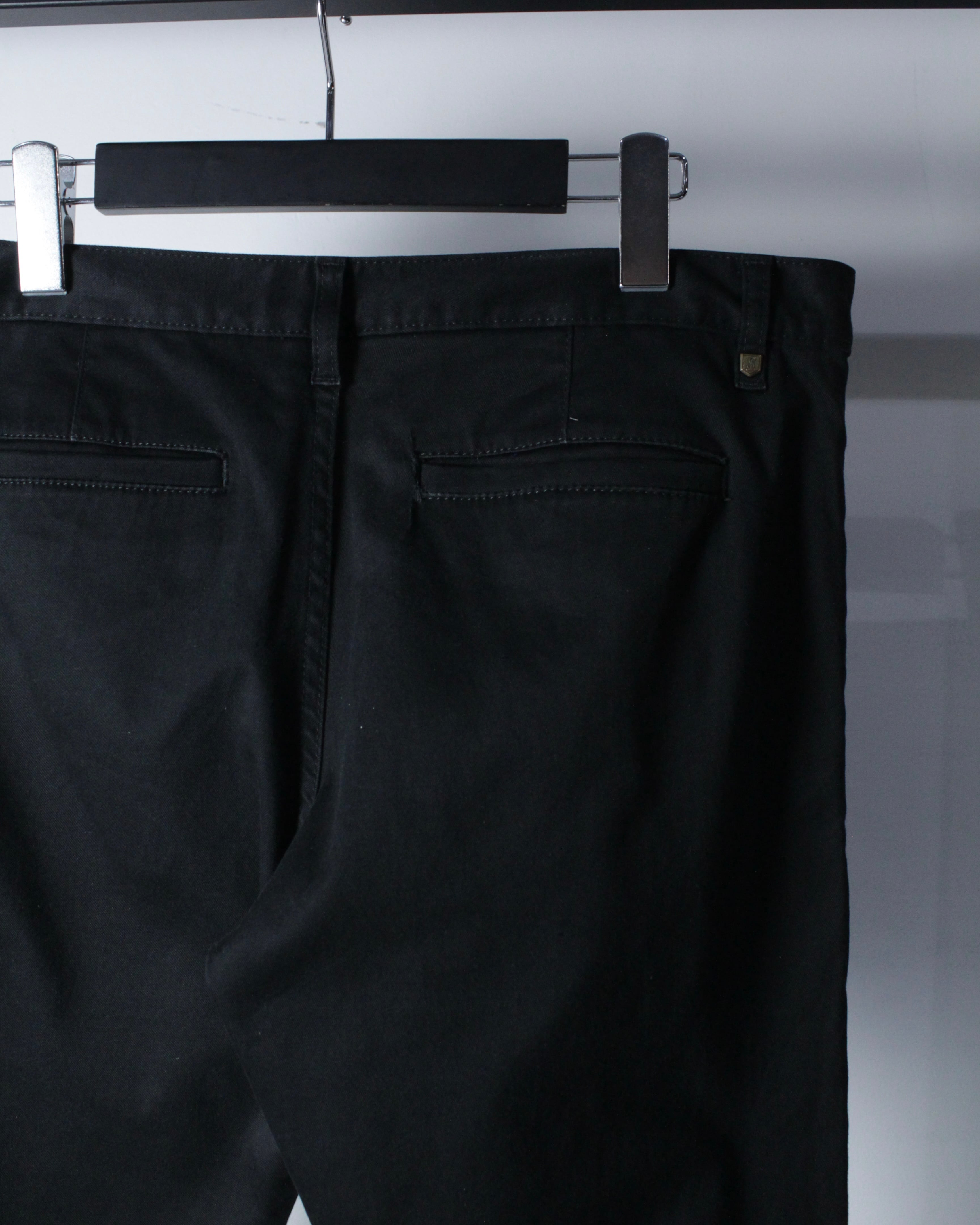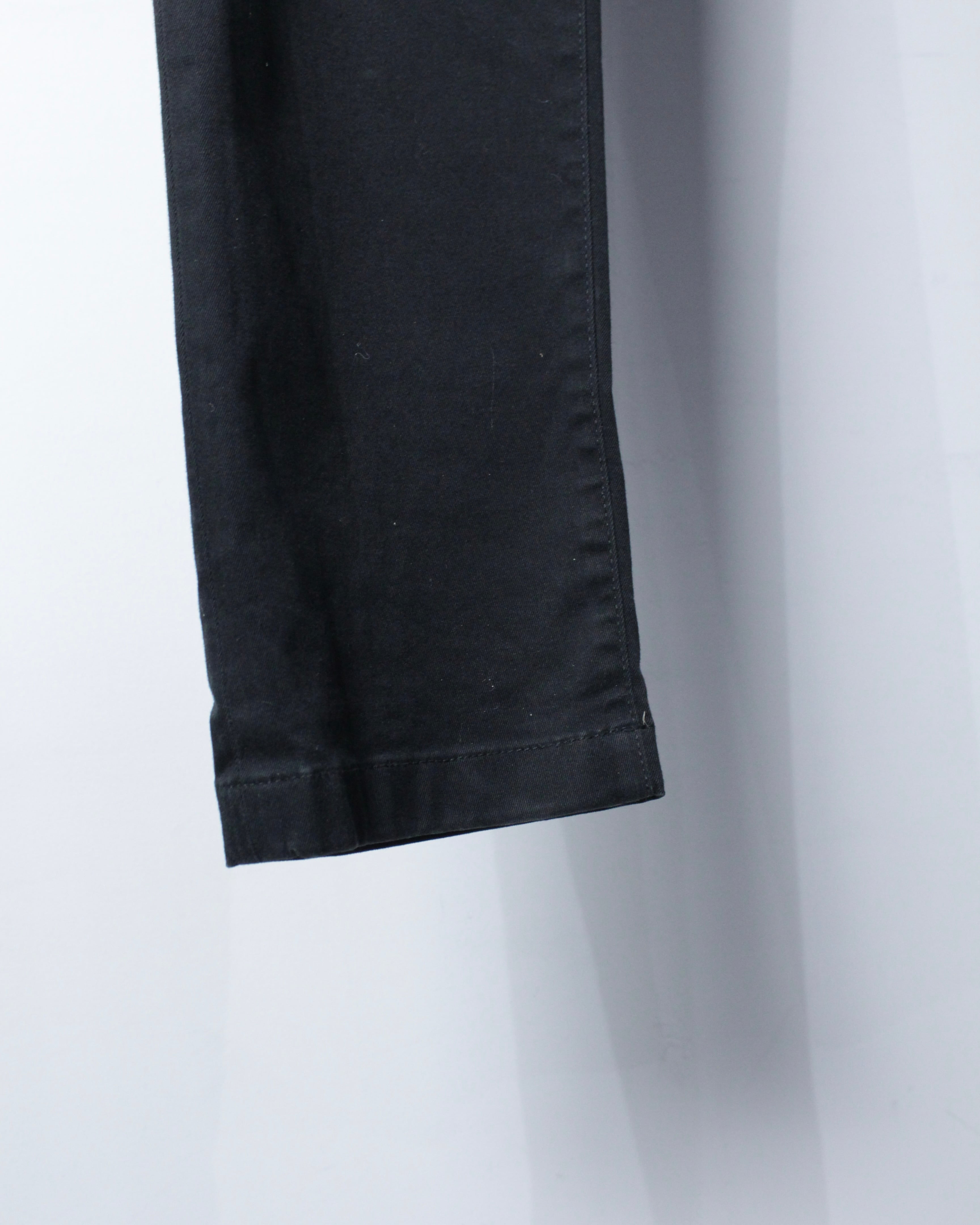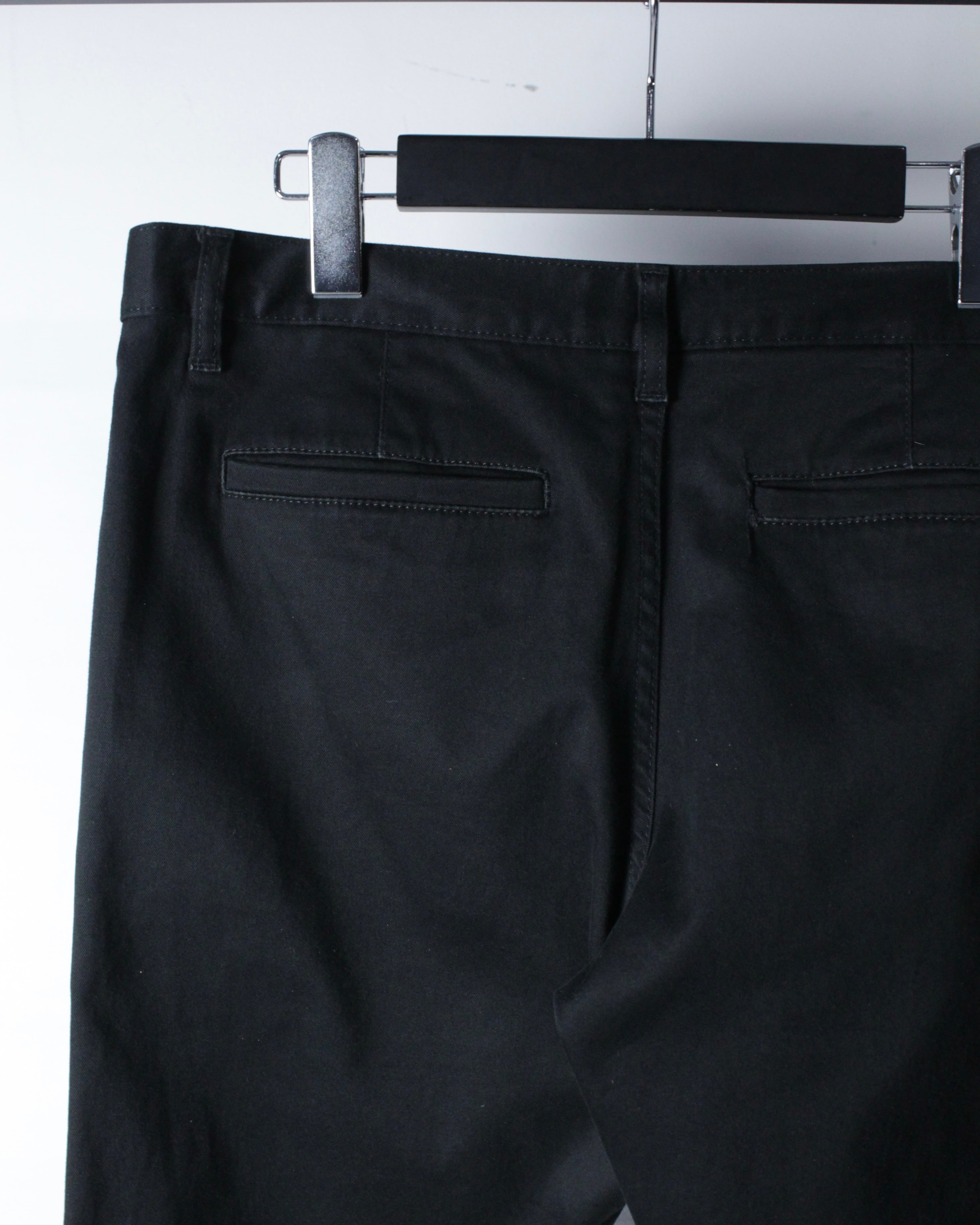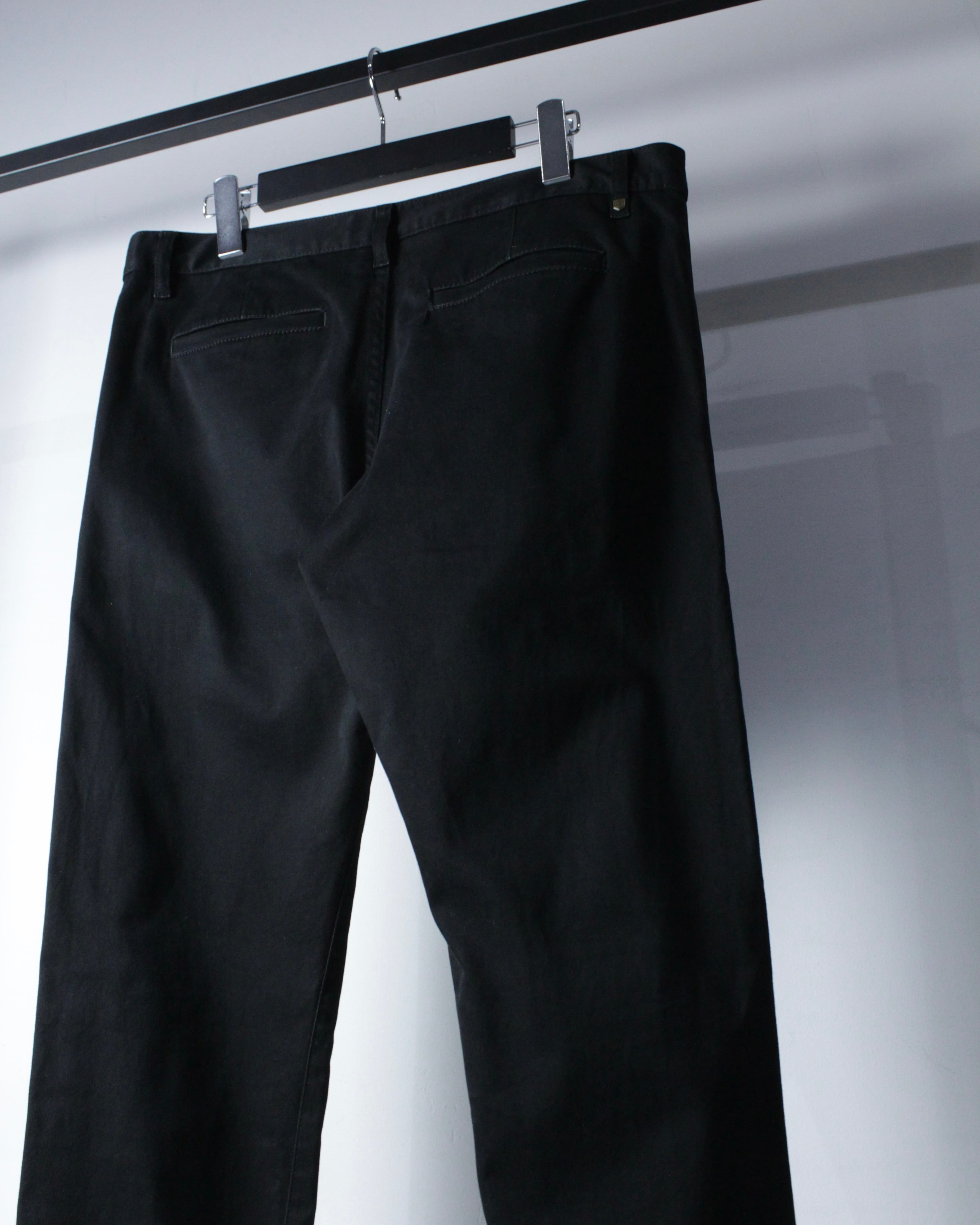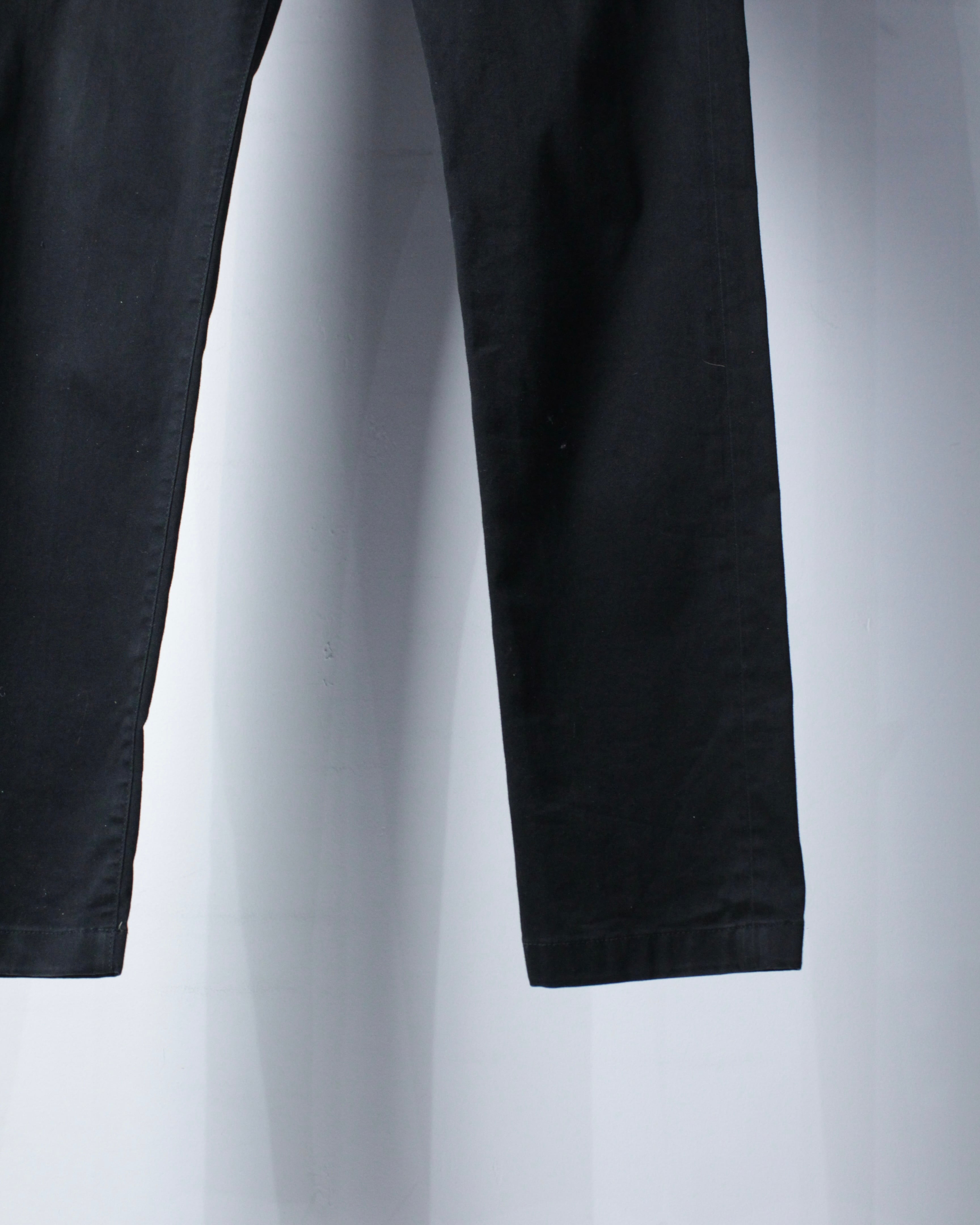 フロントはジップフライ仕様。スラントポケット、バックポケットとベーシックな構成ながら、計算されたパターンワークにより極めてシャープなラインを演出。