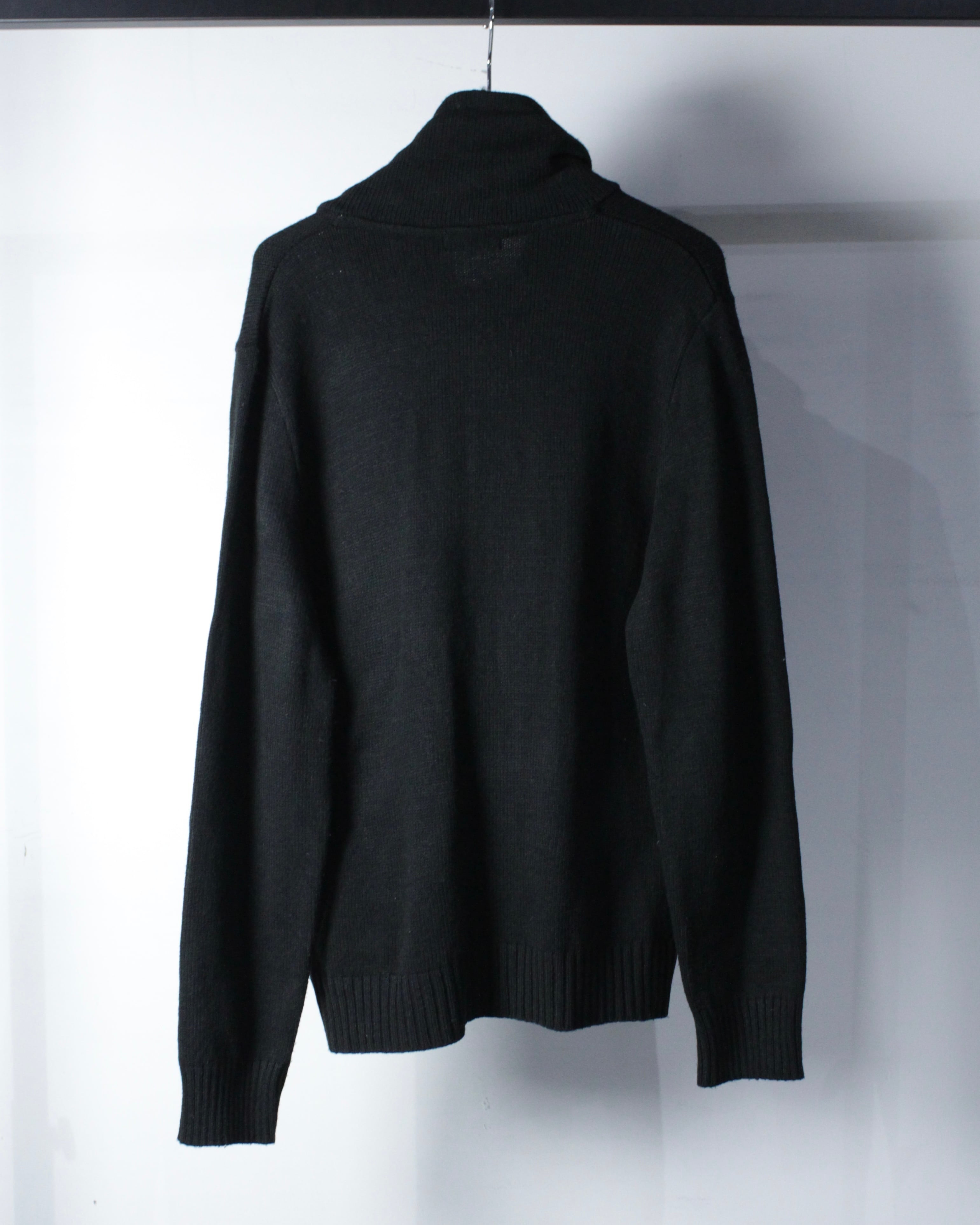 ミニマルなブラックをベースに、ライン使いで個性を演出したユーロヴィンテージのジップアップニット。