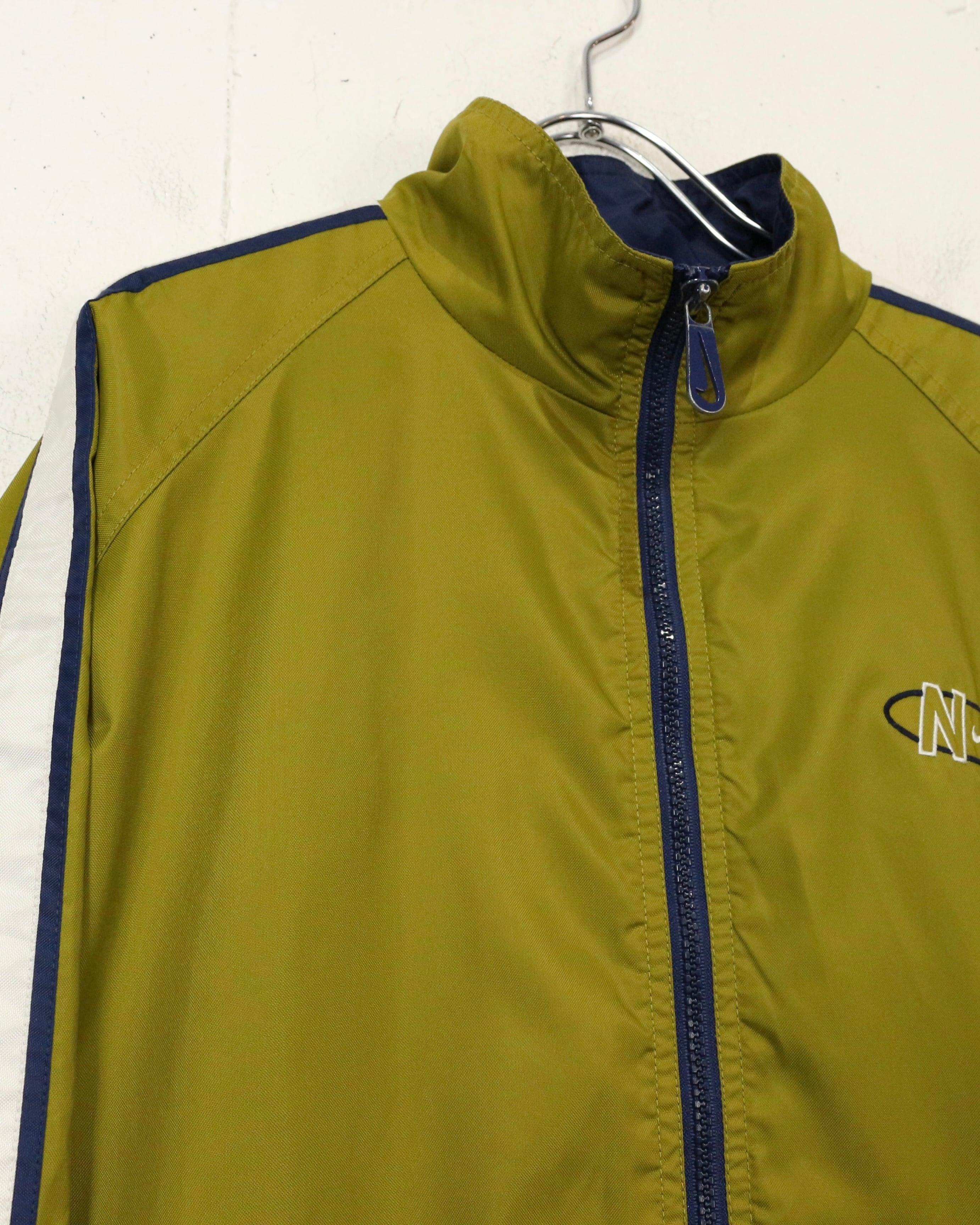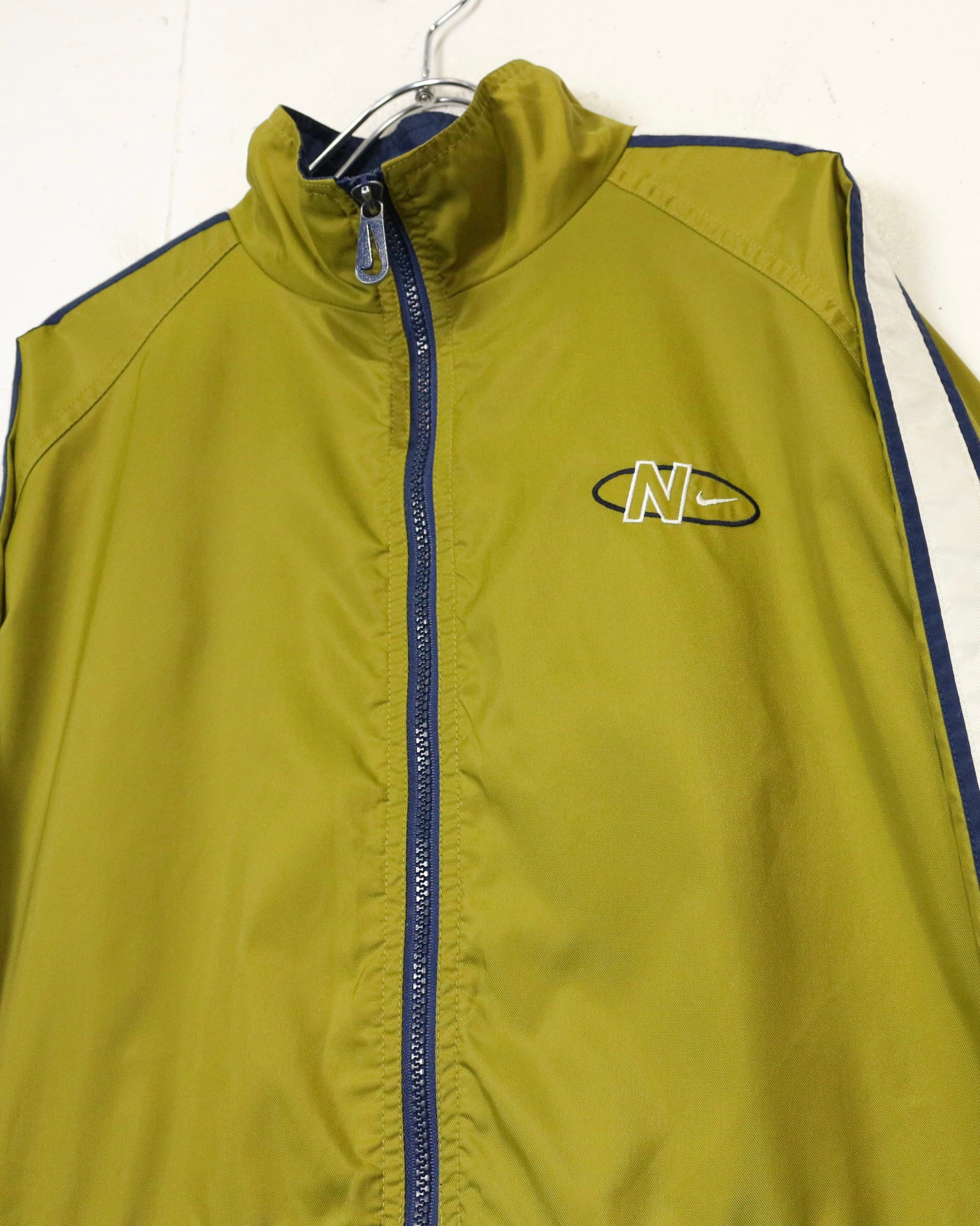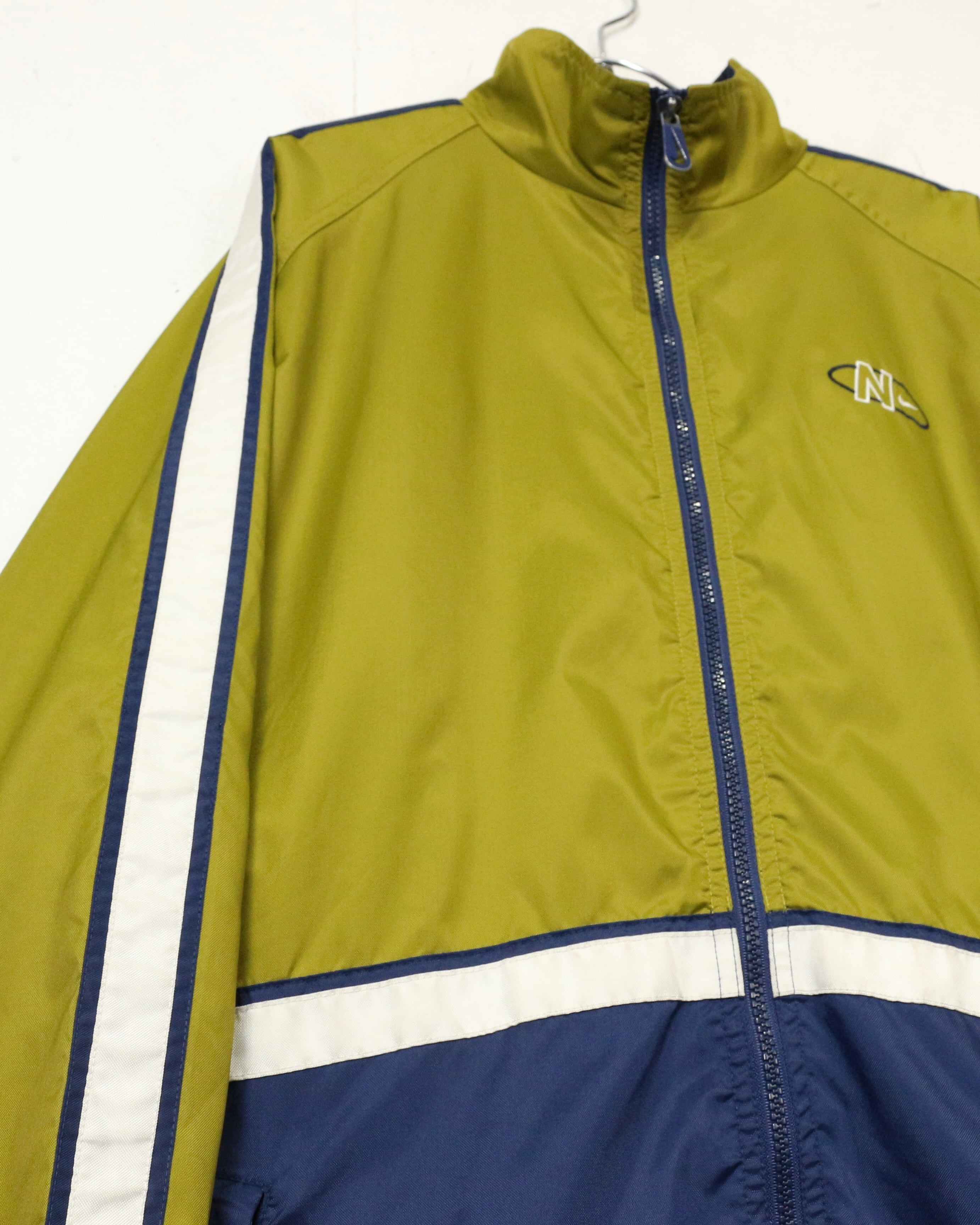 配色、ロゴバランス、シルエットの三拍子が揃った、90's“NIKE”のナイロントラックジャケットです。