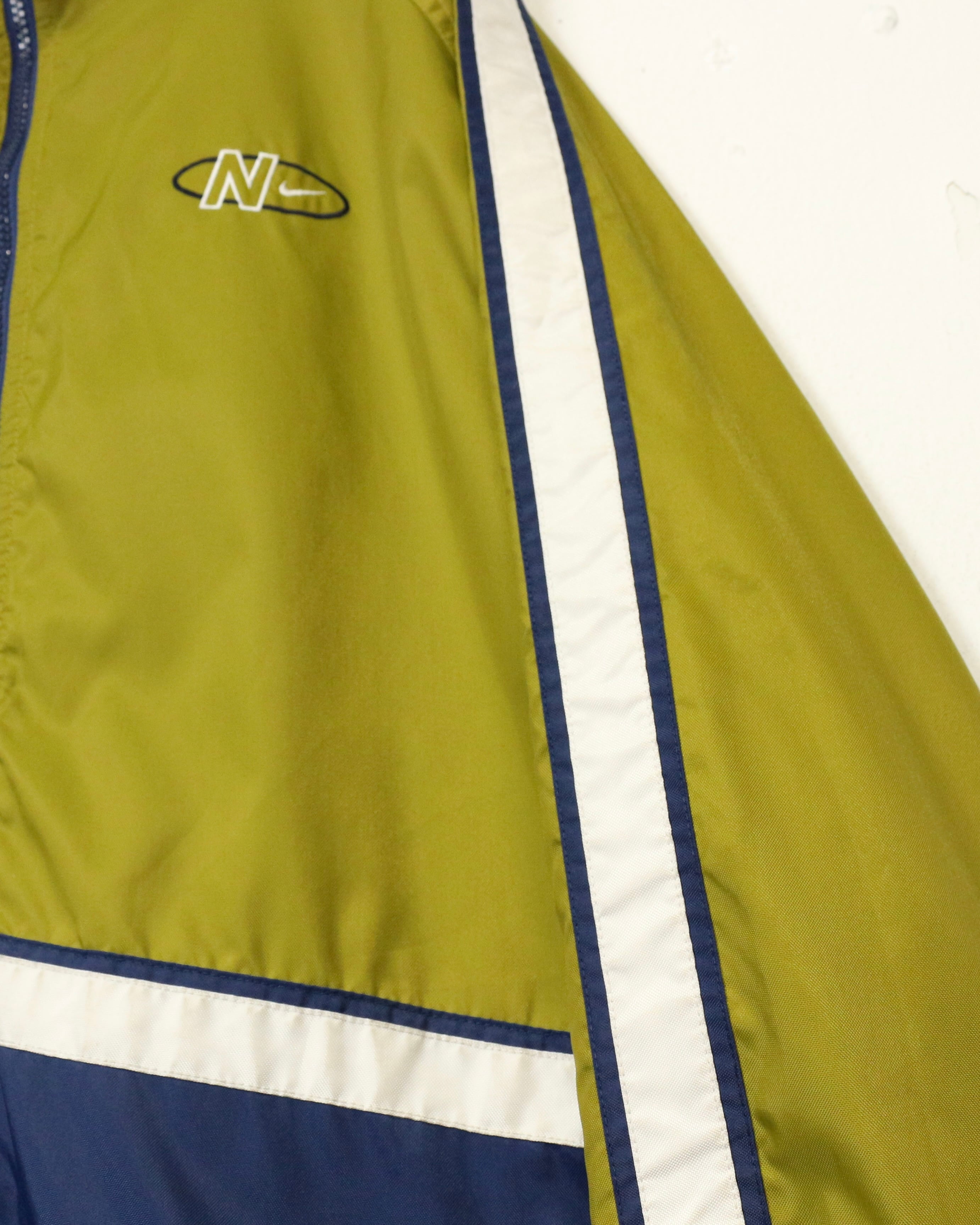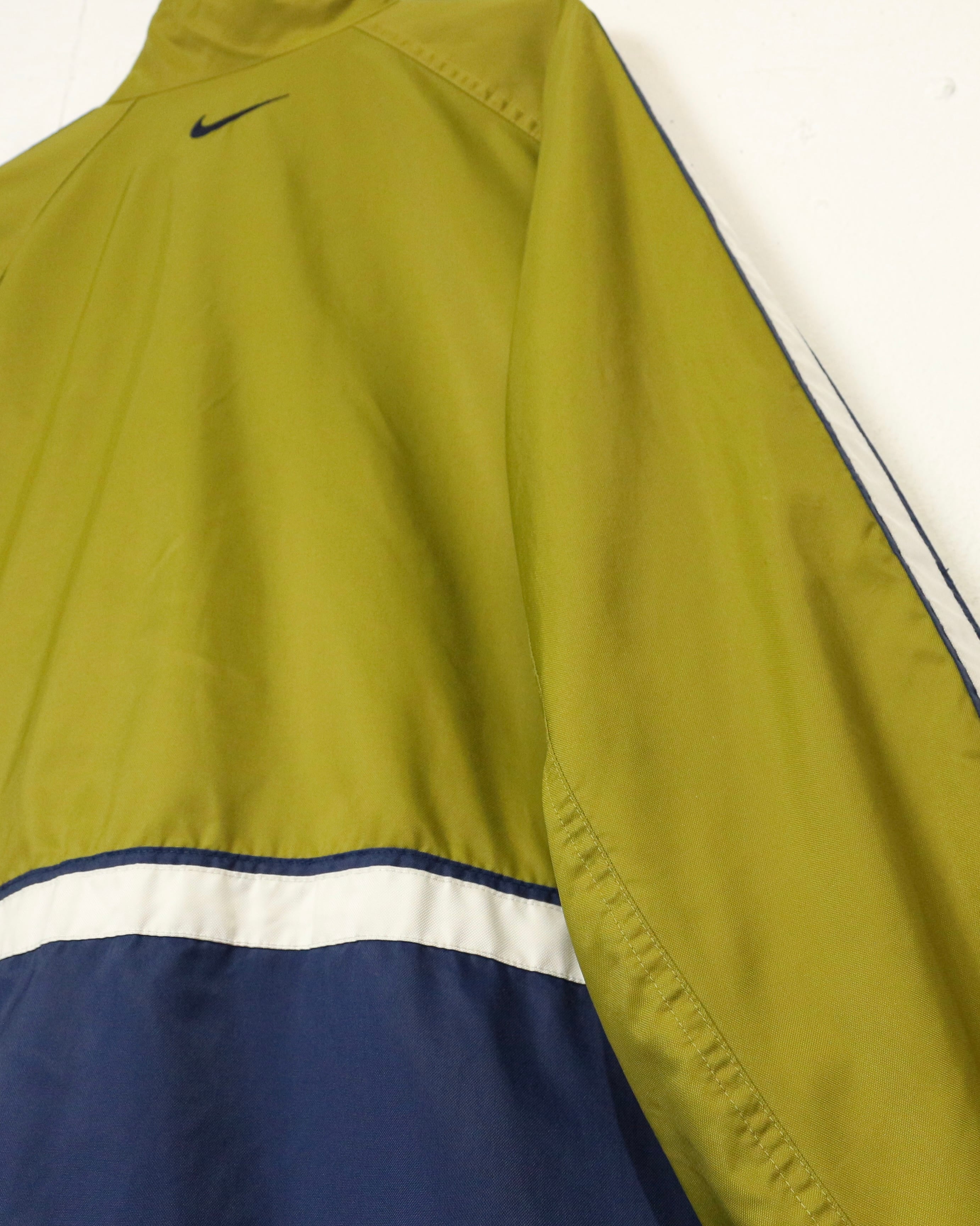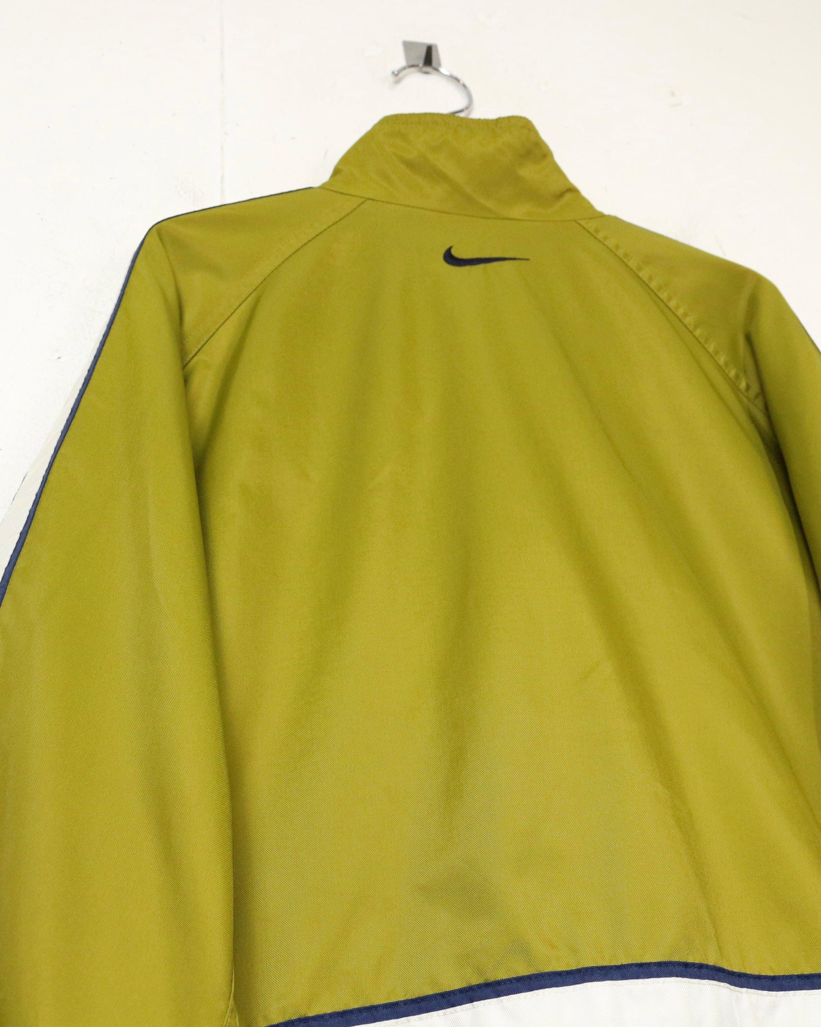 配色、ロゴバランス、シルエットの三拍子が揃った、90's“NIKE”のナイロントラックジャケットです。