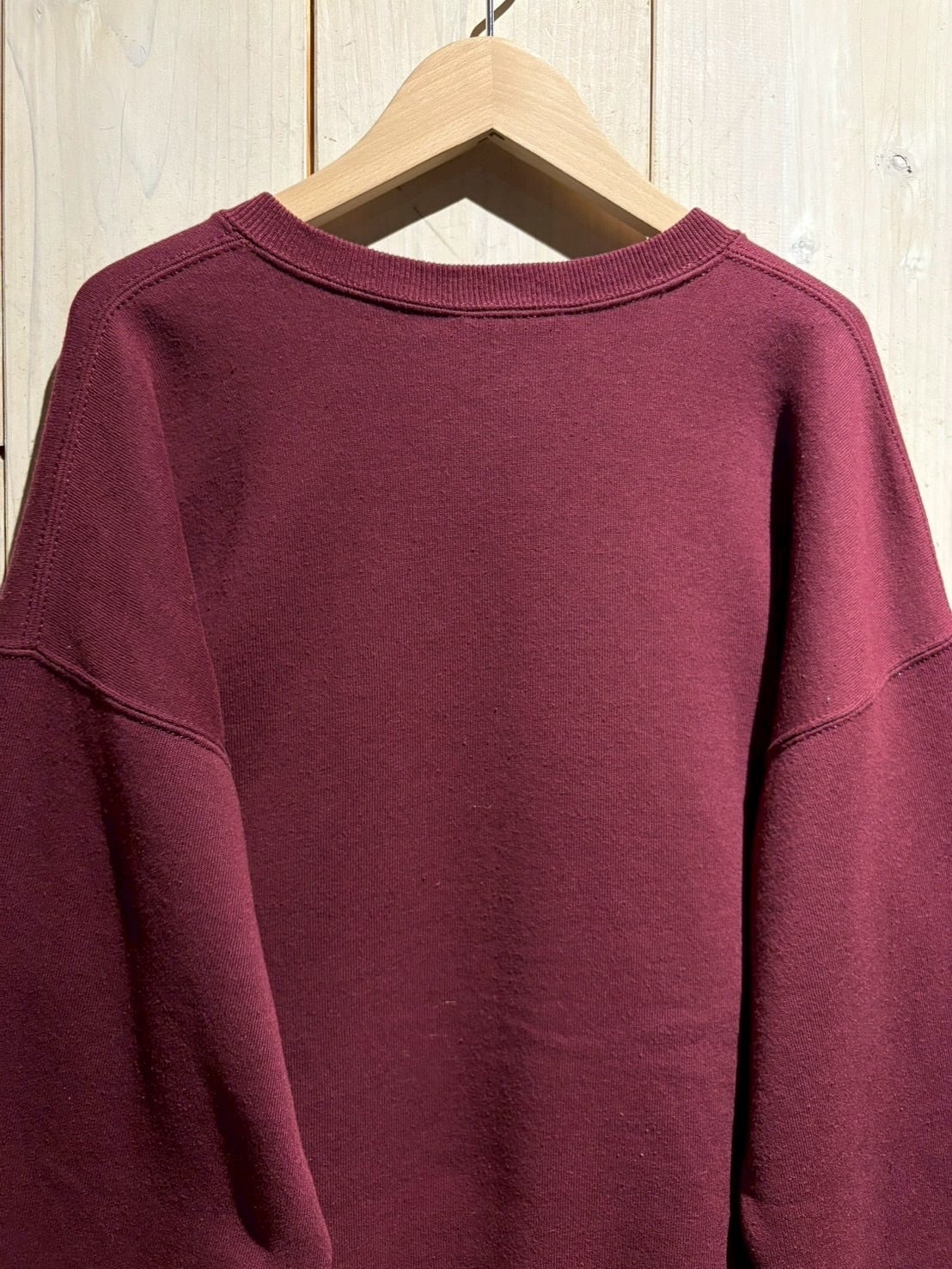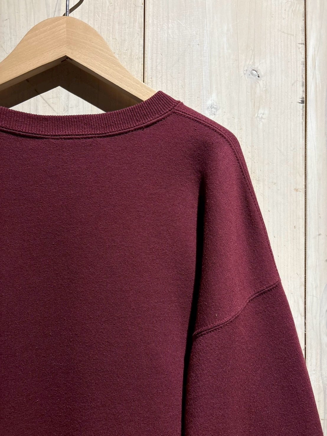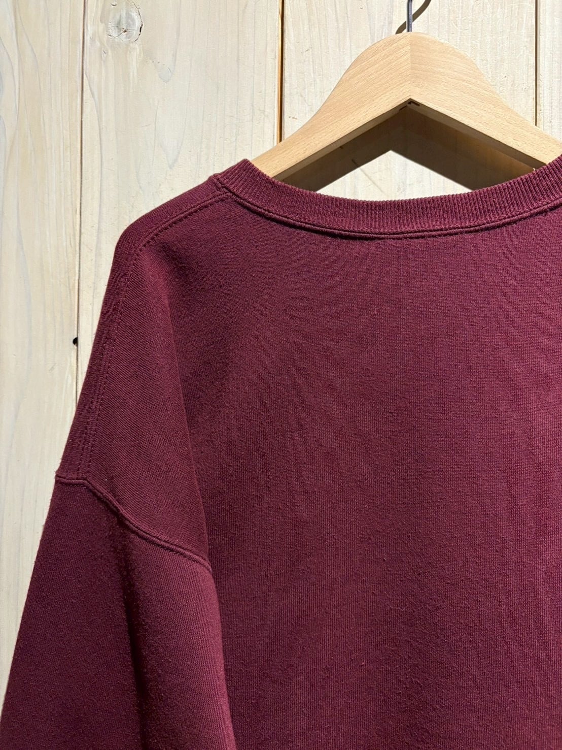 ヘビーウェイトのコットンブレンドボディを採用し、しっかりとした肉感とタフな生地感が魅力。カラーは深みのあるバーガンディ。落ち着きのあるトーンで、スタイリングに自然と馴染みつつ、デザインが抜け感を演出してくれるかと。