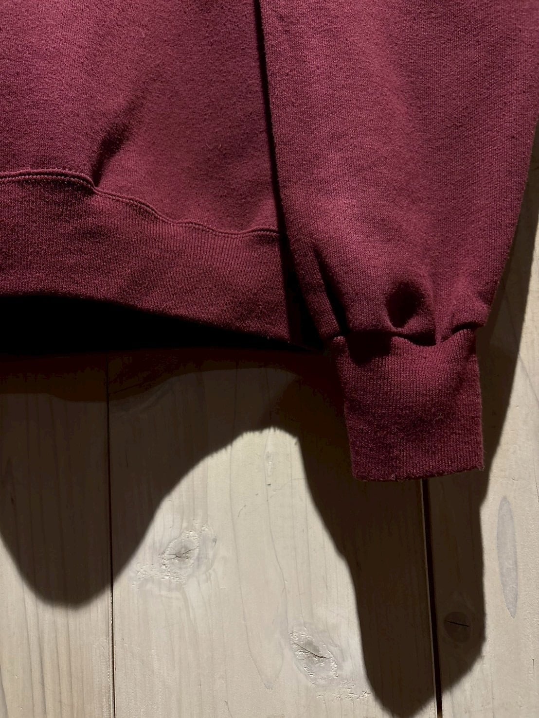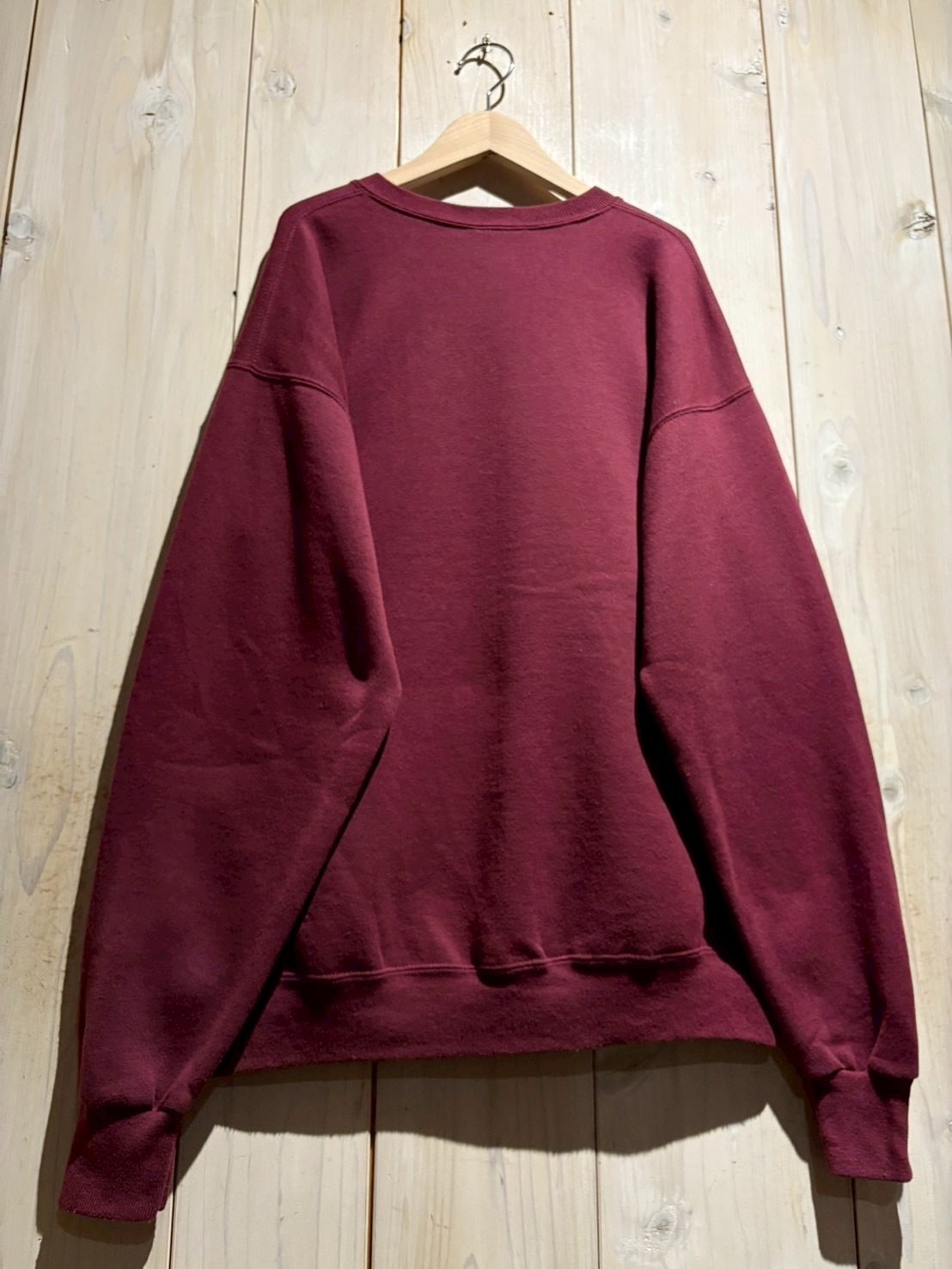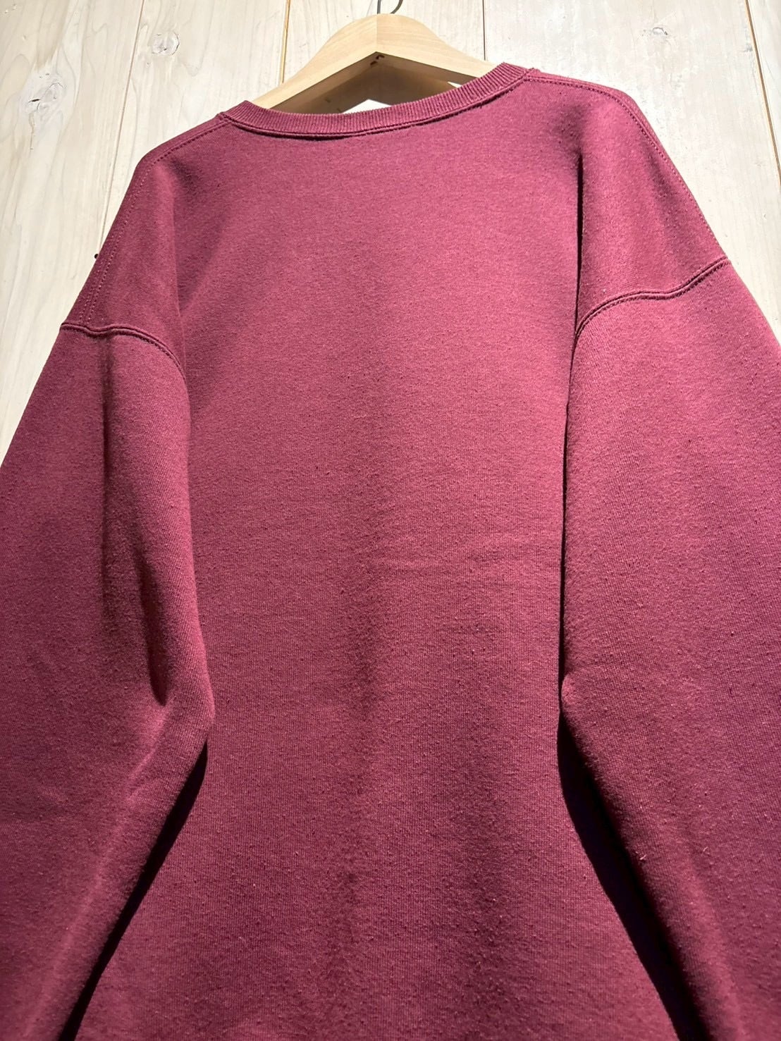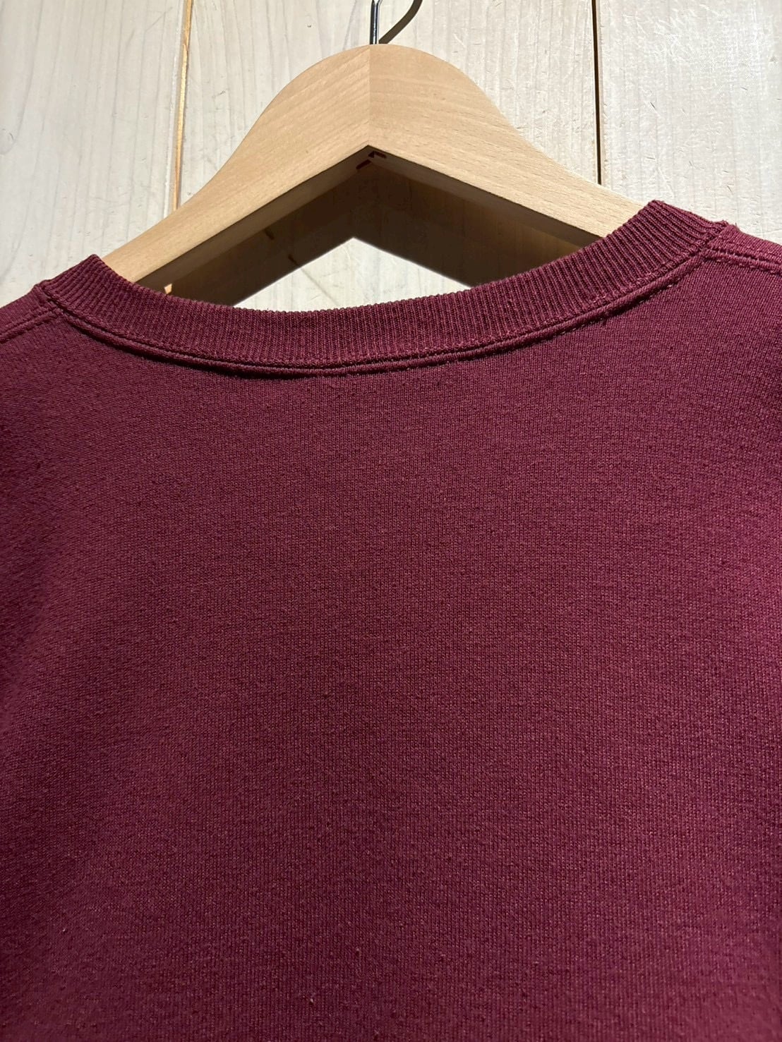ヘビーウェイトのコットンブレンドボディを採用し、しっかりとした肉感とタフな生地感が魅力。カラーは深みのあるバーガンディ。落ち着きのあるトーンで、スタイリングに自然と馴染みつつ、デザインが抜け感を演出してくれるかと。