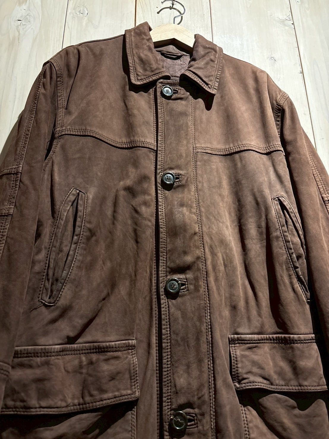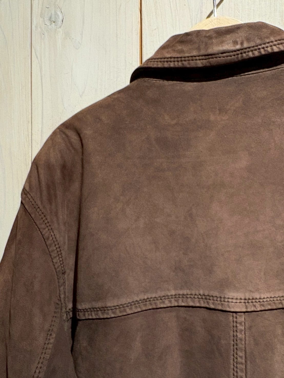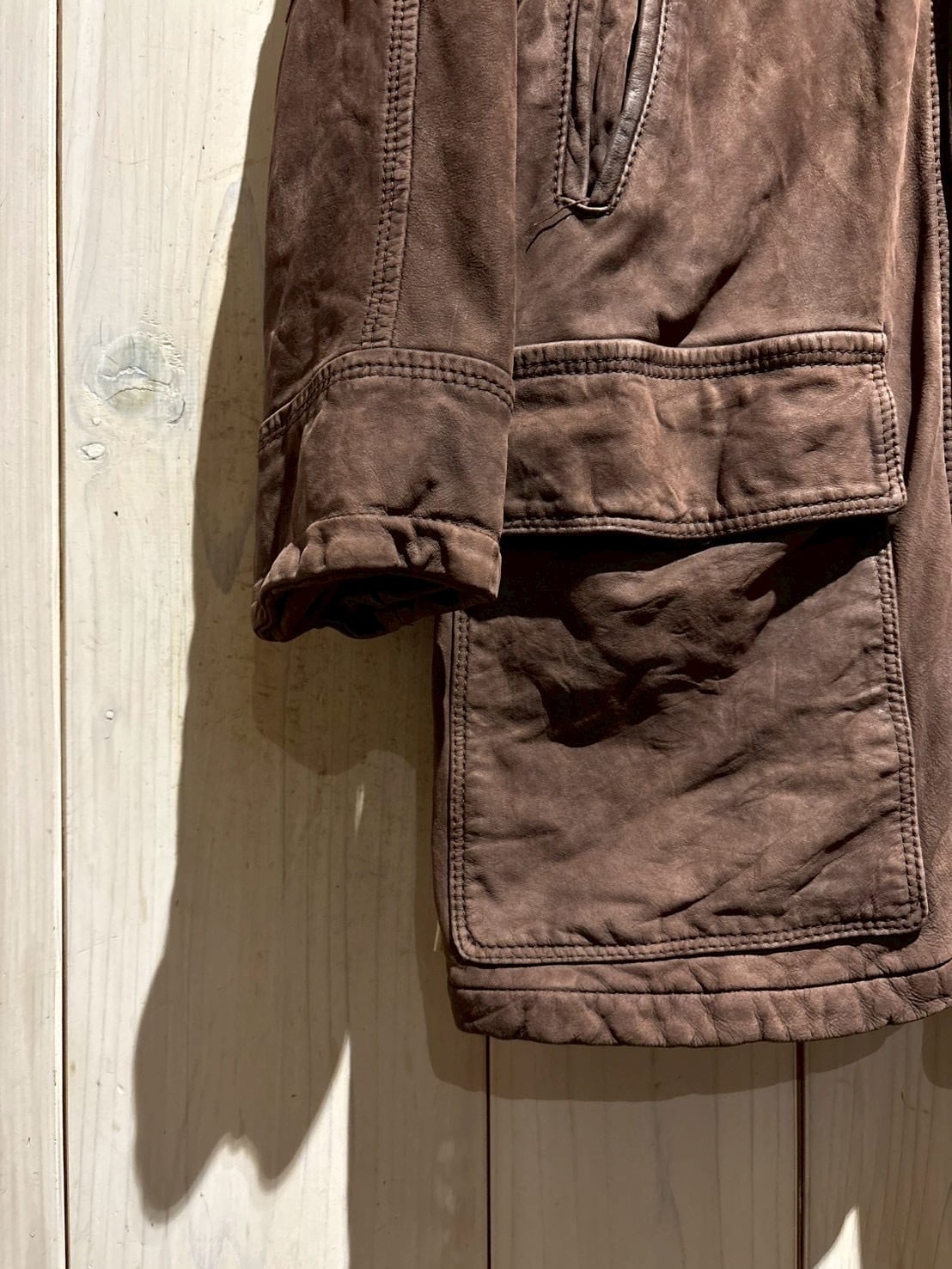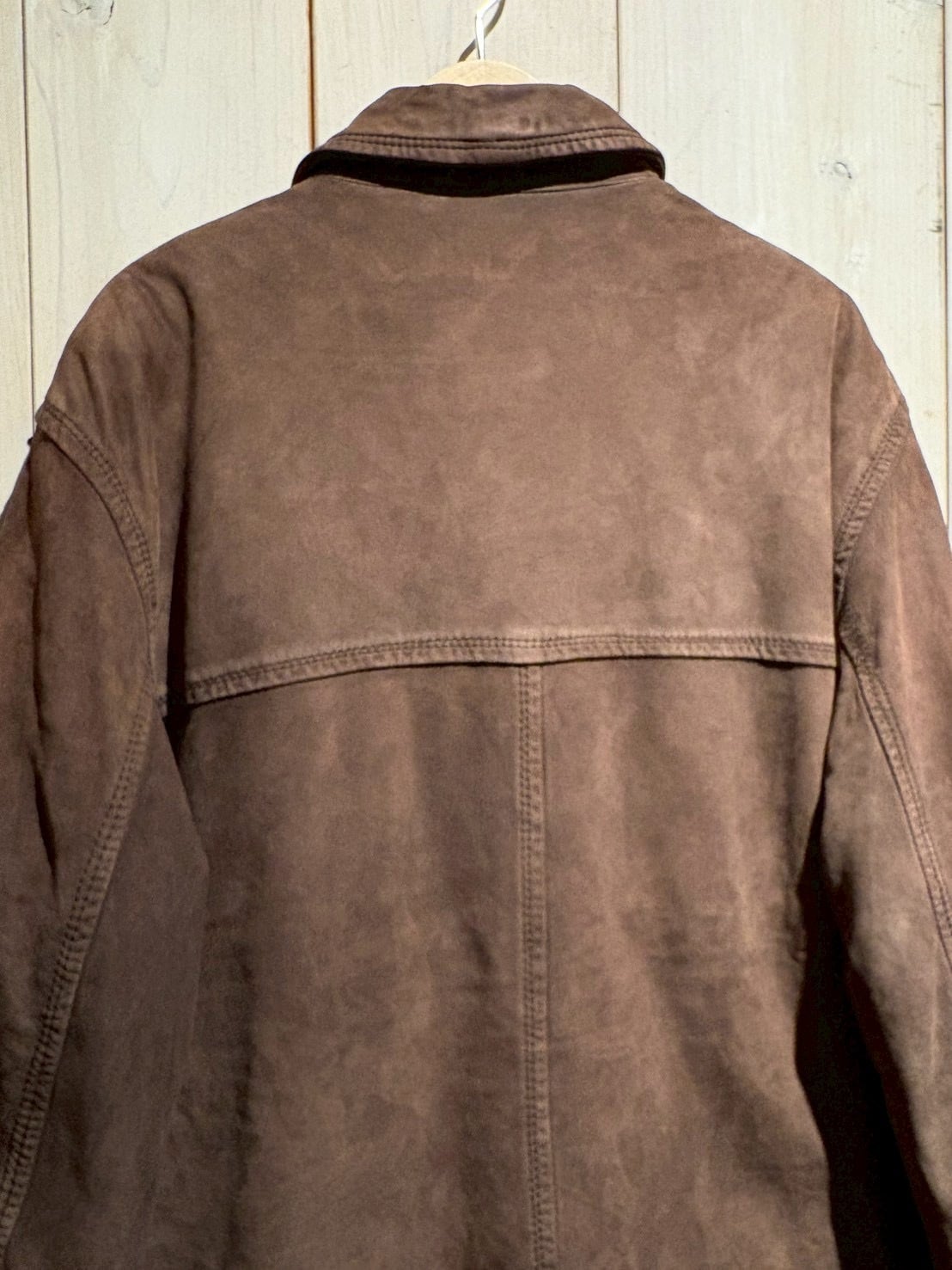 しっとりとした質感のスエードレザーを贅沢に使用し、無骨さがありながらどこか気品も漂わせる1着。