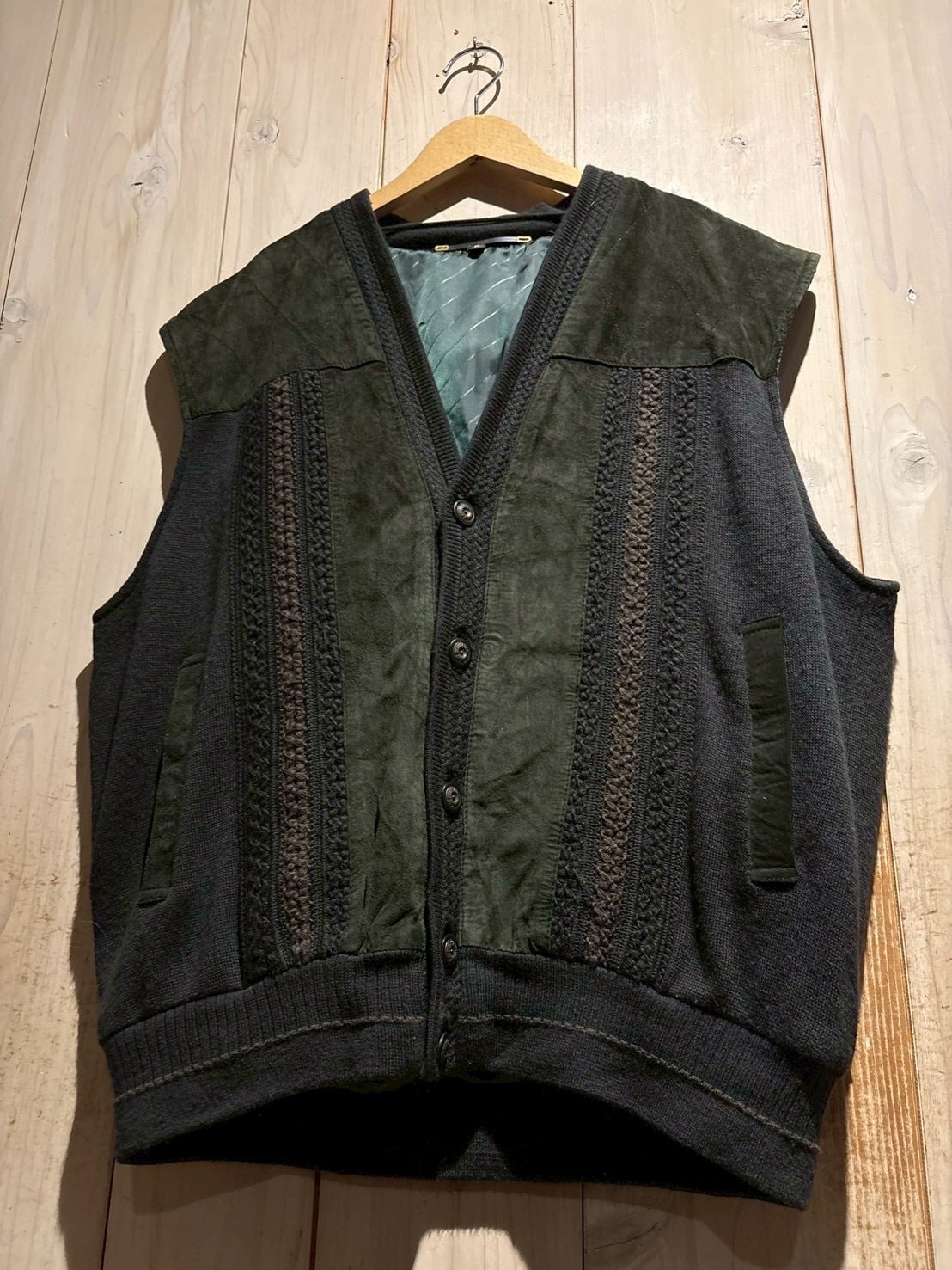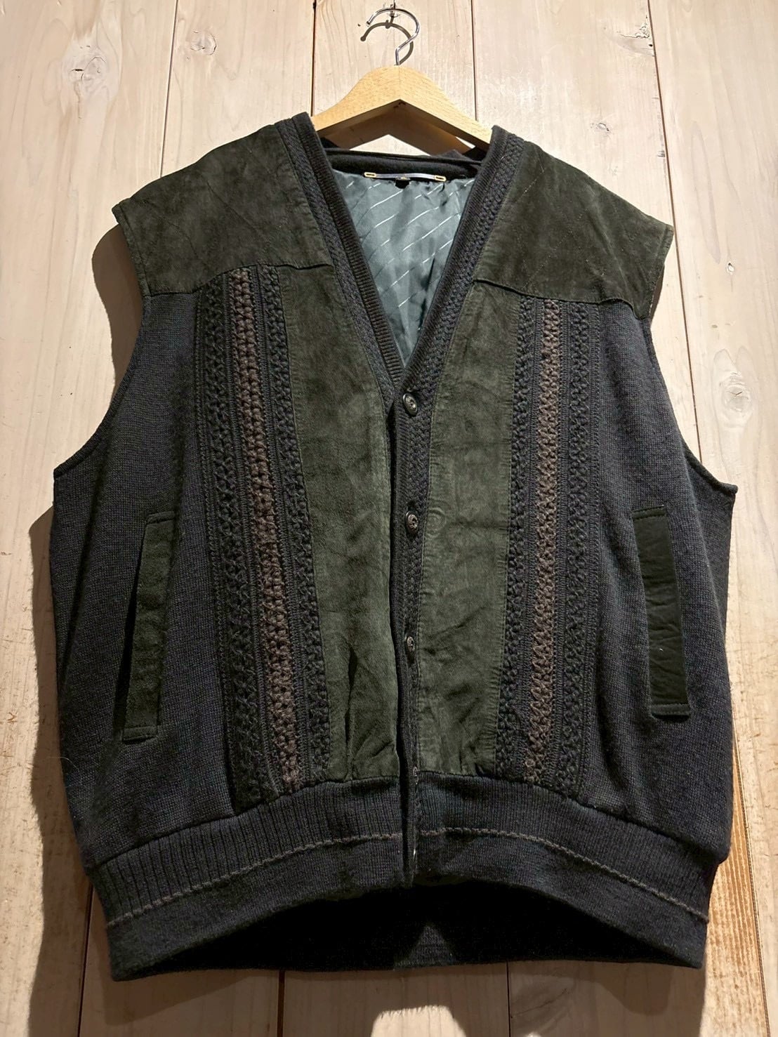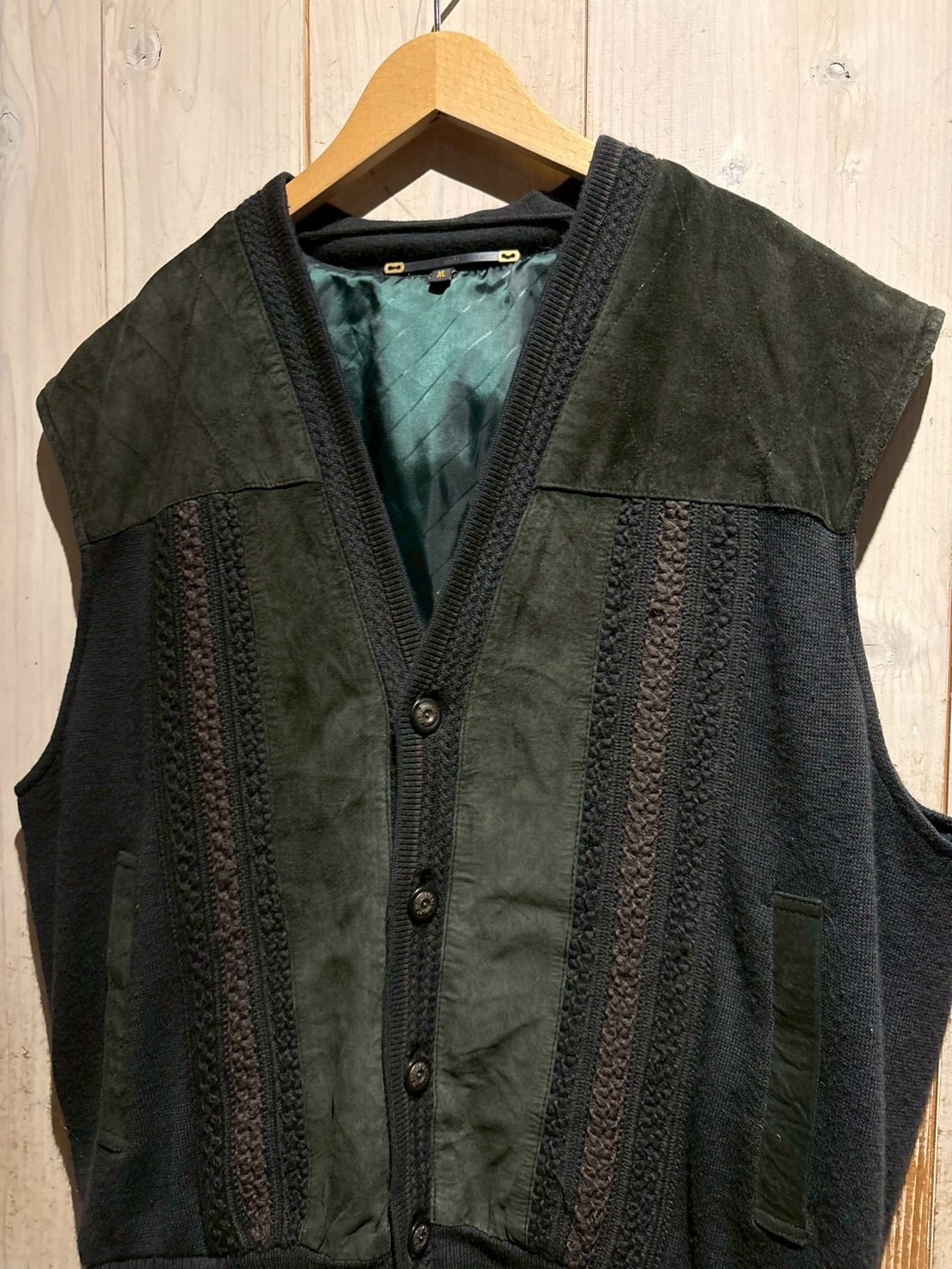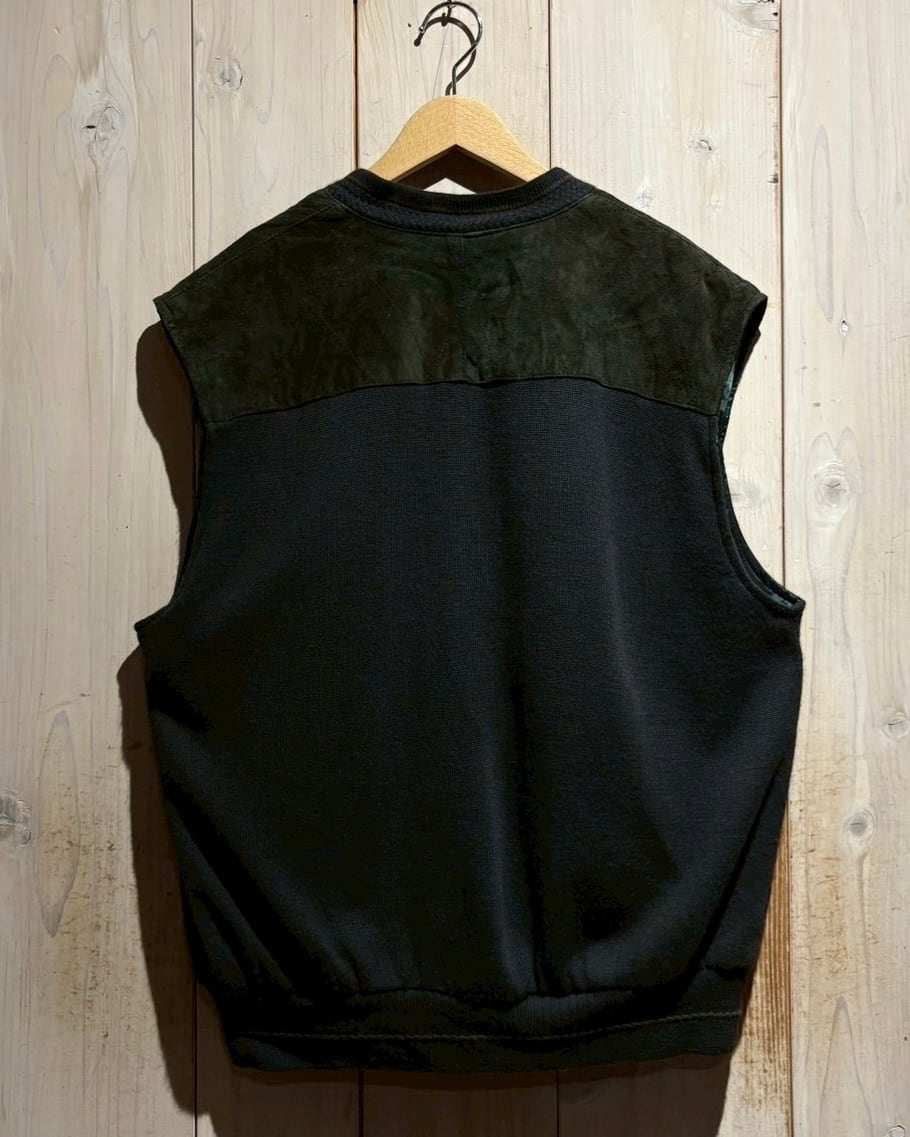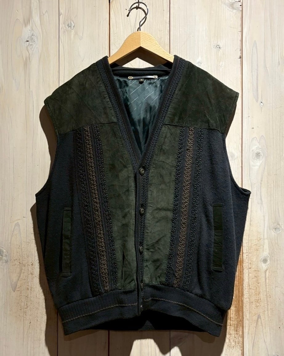 ニットの柔らかさとスエードの重厚さを兼ね備えた、異素材の掛け合わせが光るニットベストの逸品です。