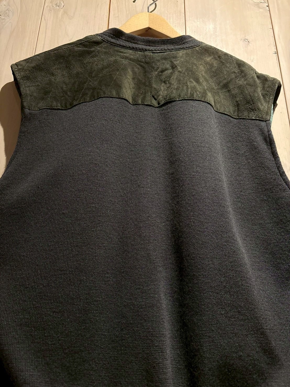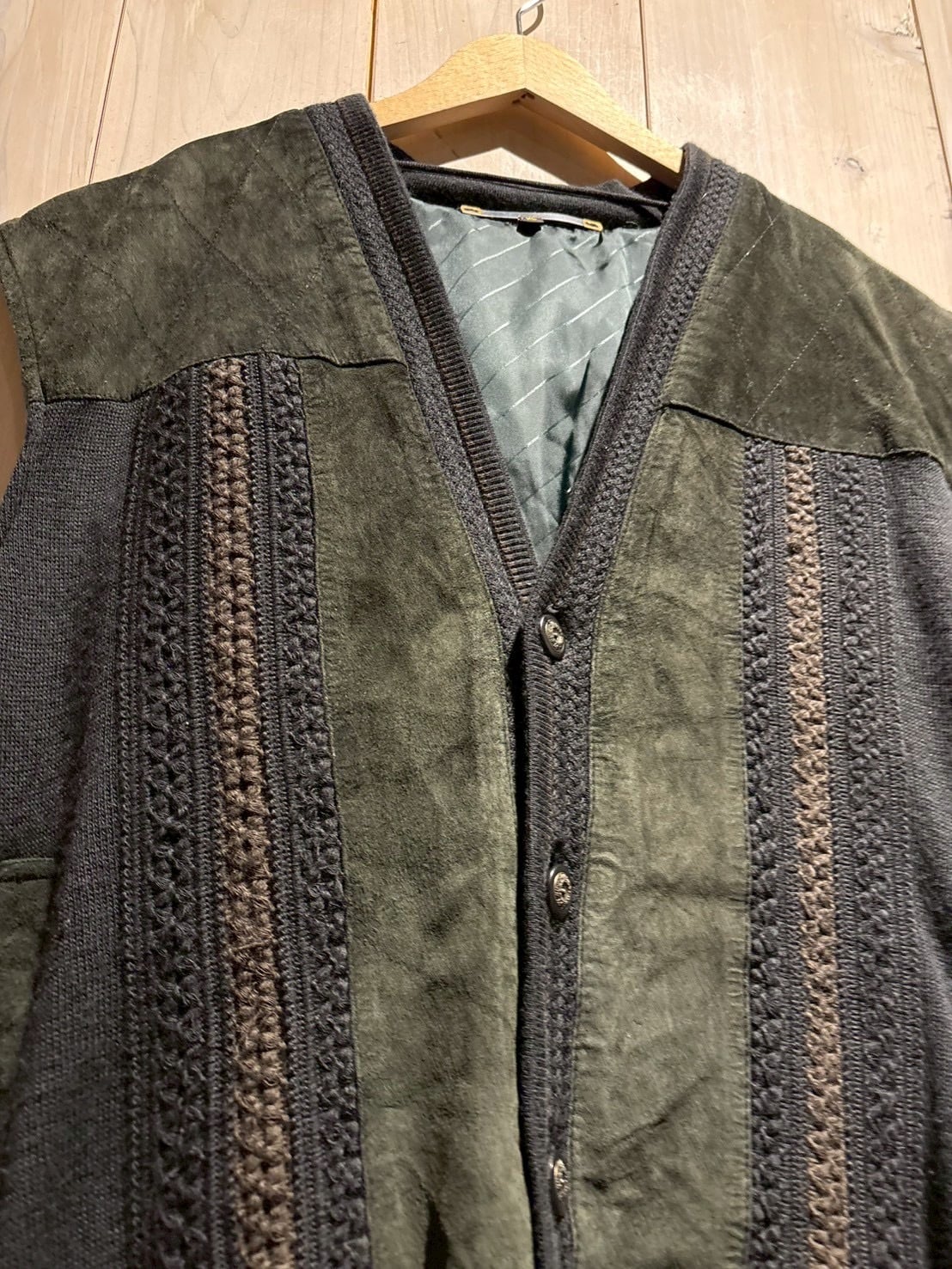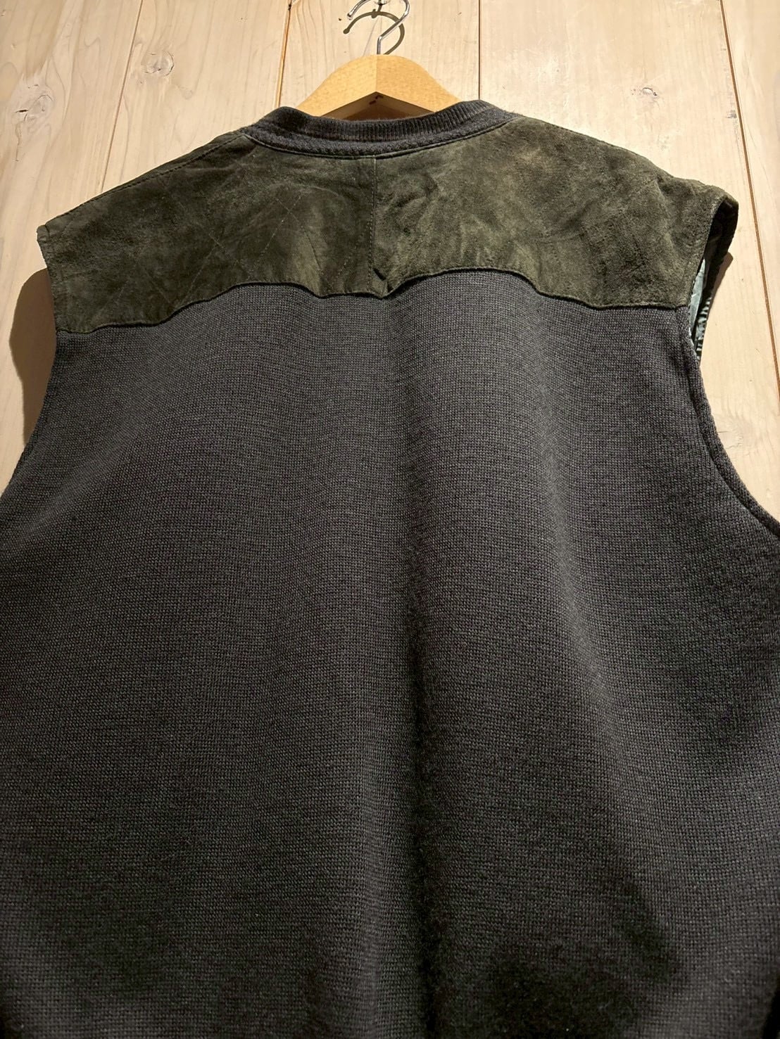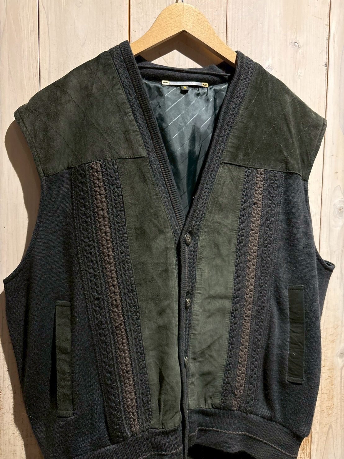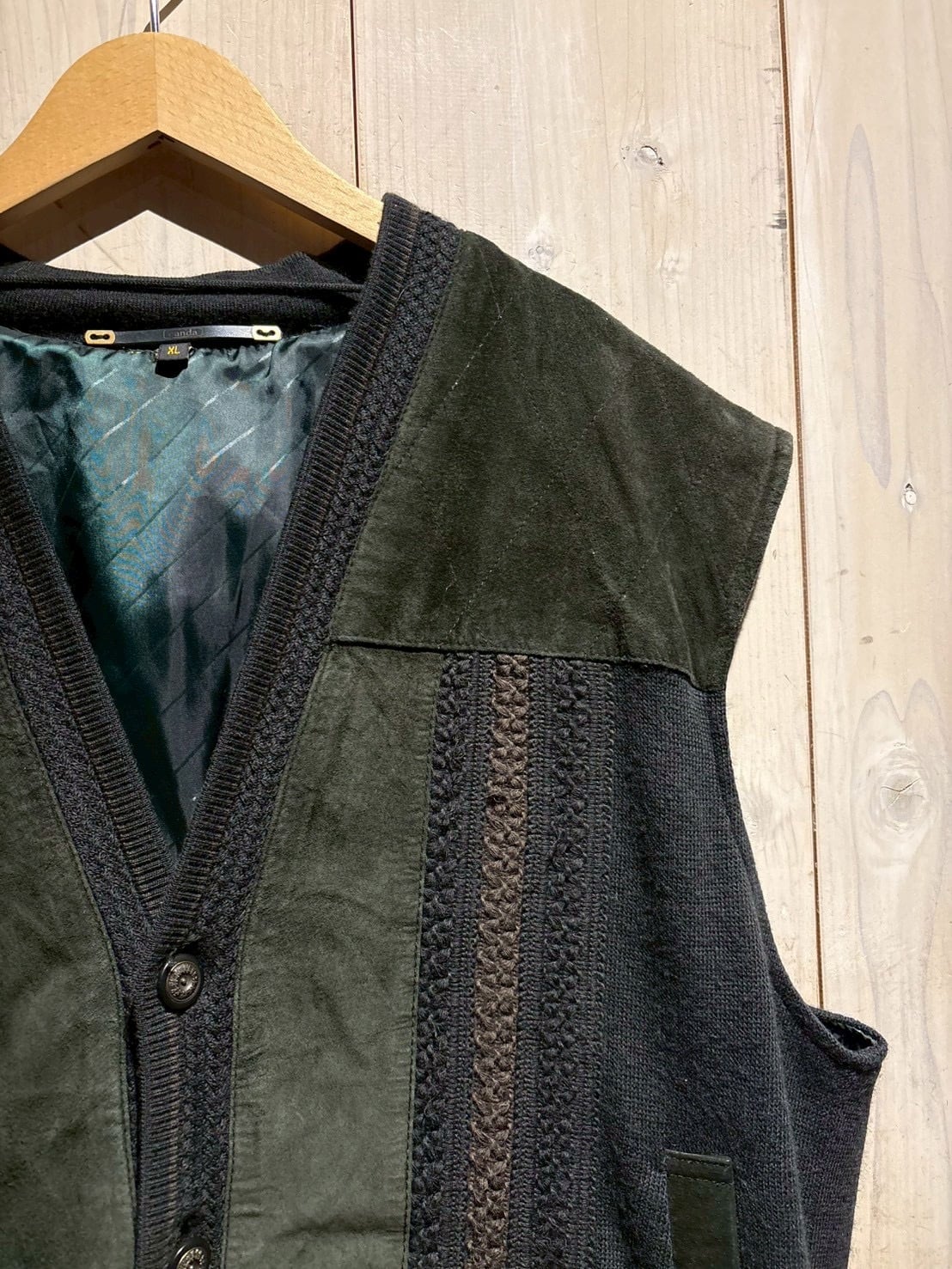 ニットの柔らかさとスエードの重厚さを兼ね備えた、異素材の掛け合わせが光るニットベストの逸品です。