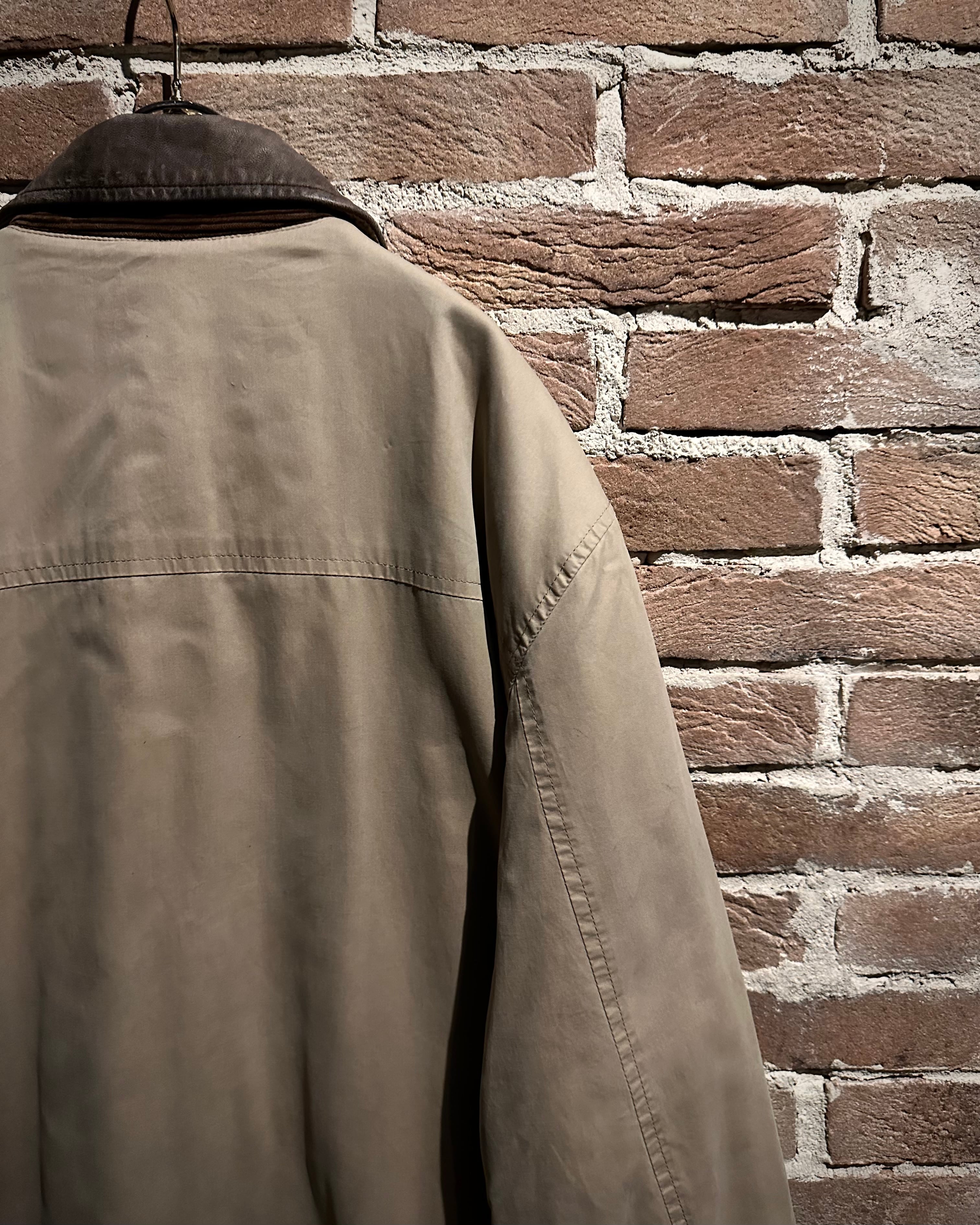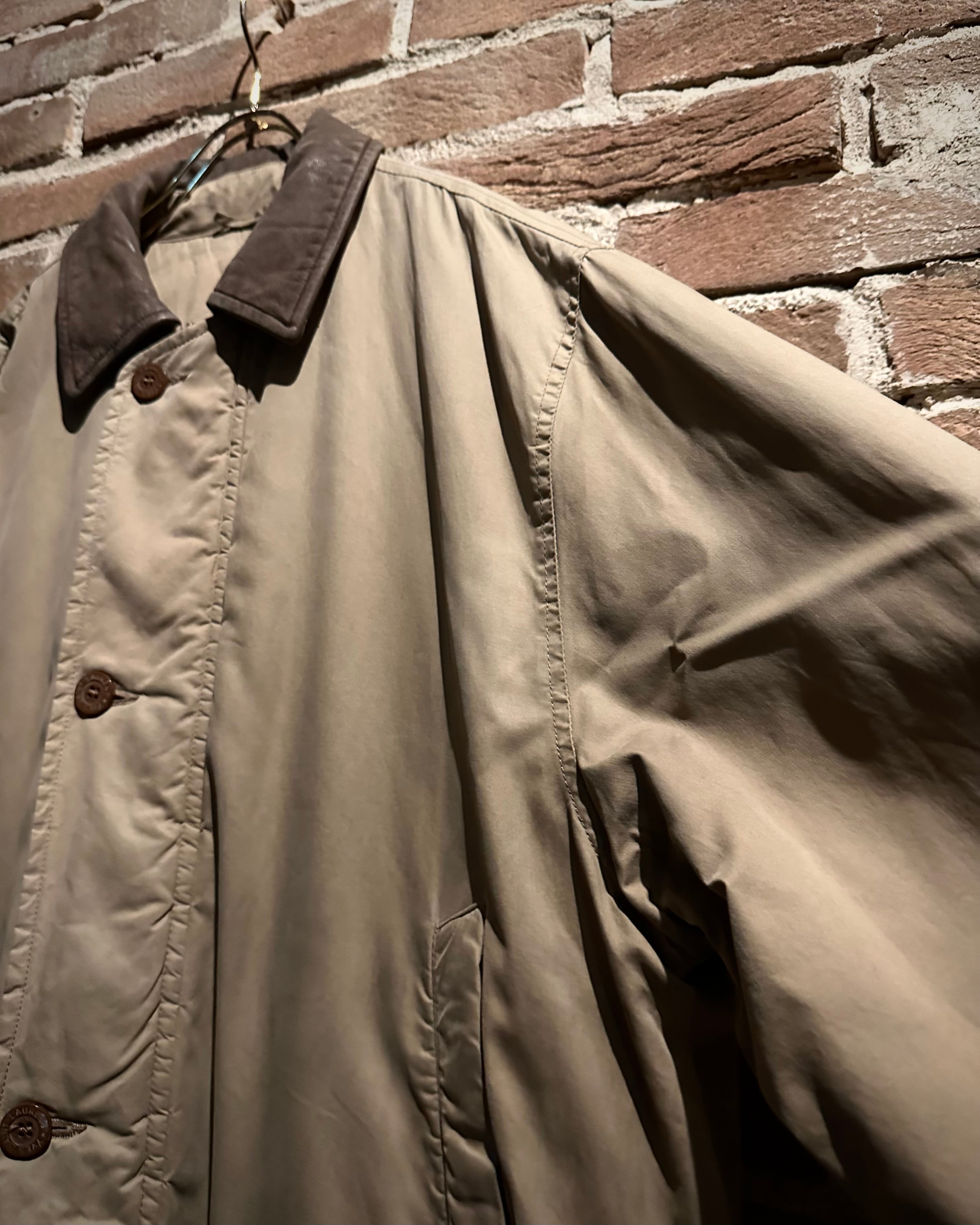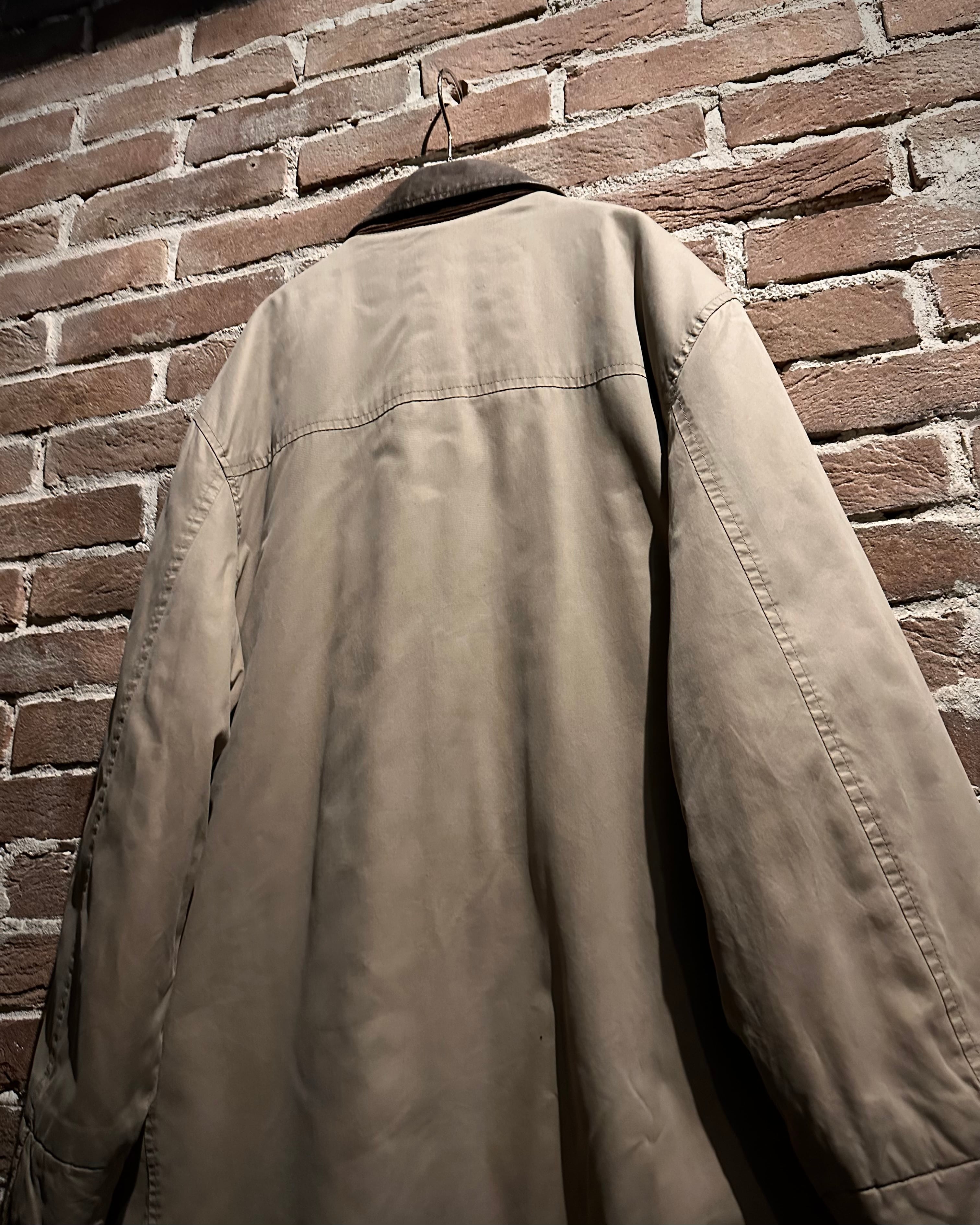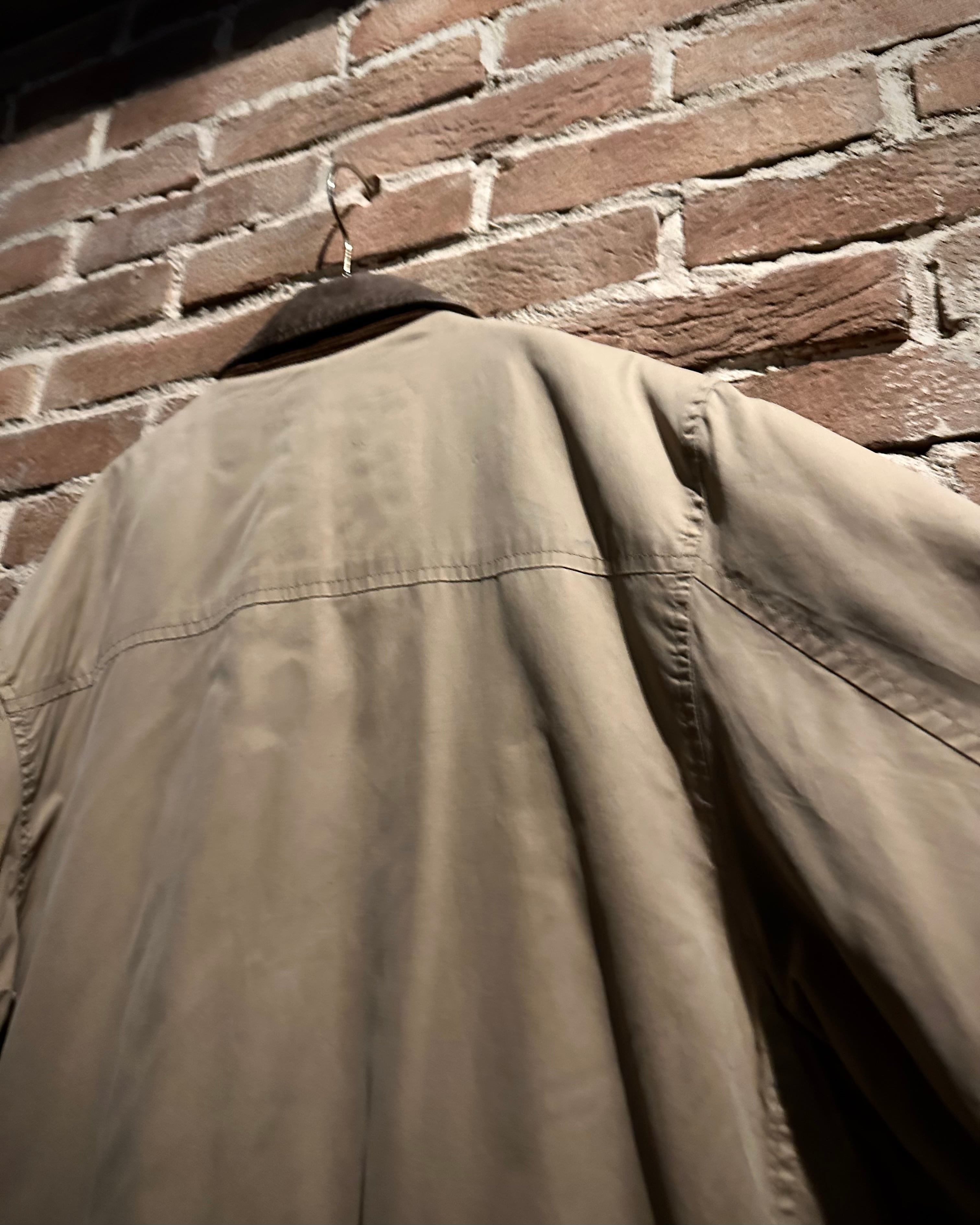 ベージュのコットンボディにコーティング加工を施し、しっとりとした独特の艶とハリを持たせた1着です。