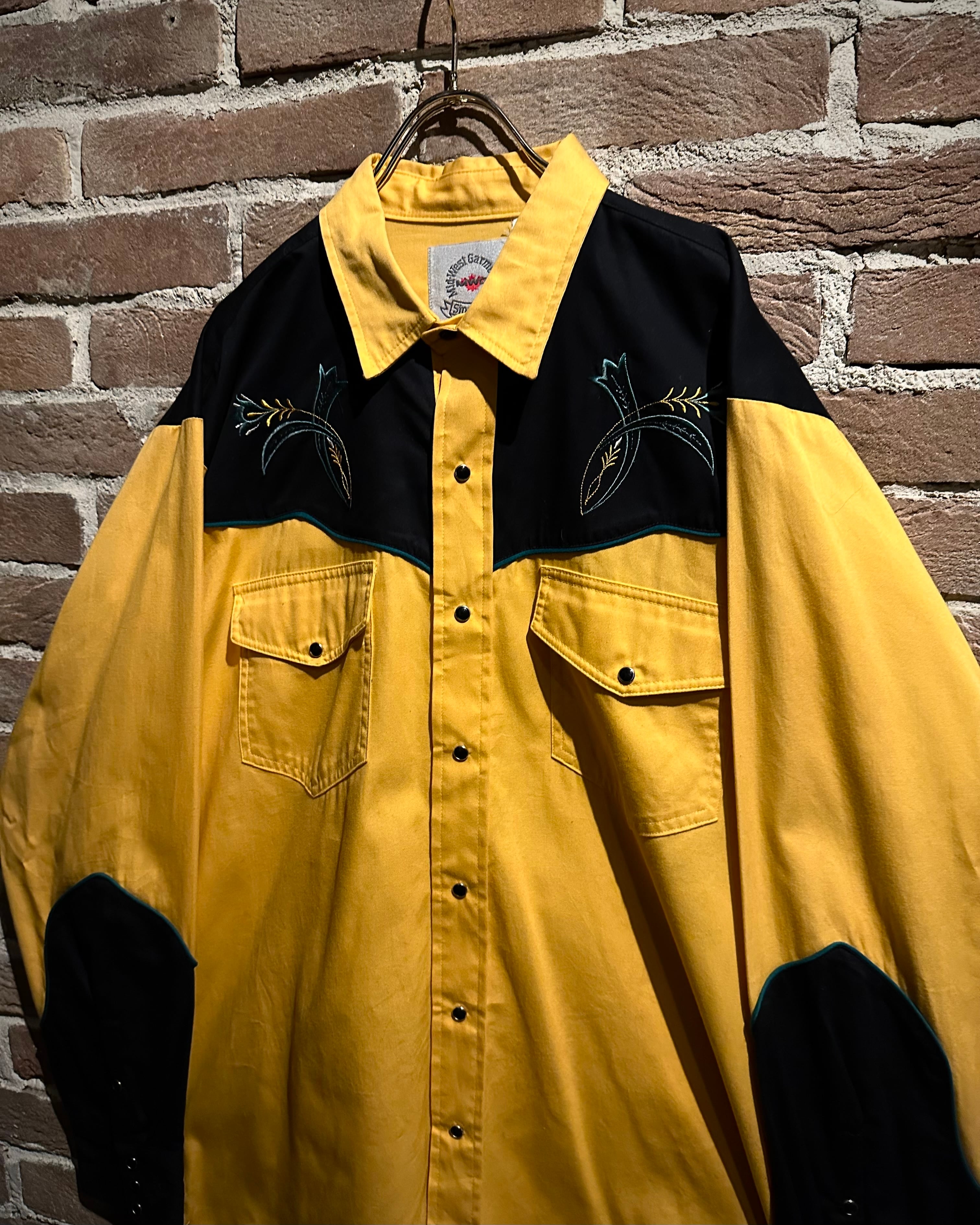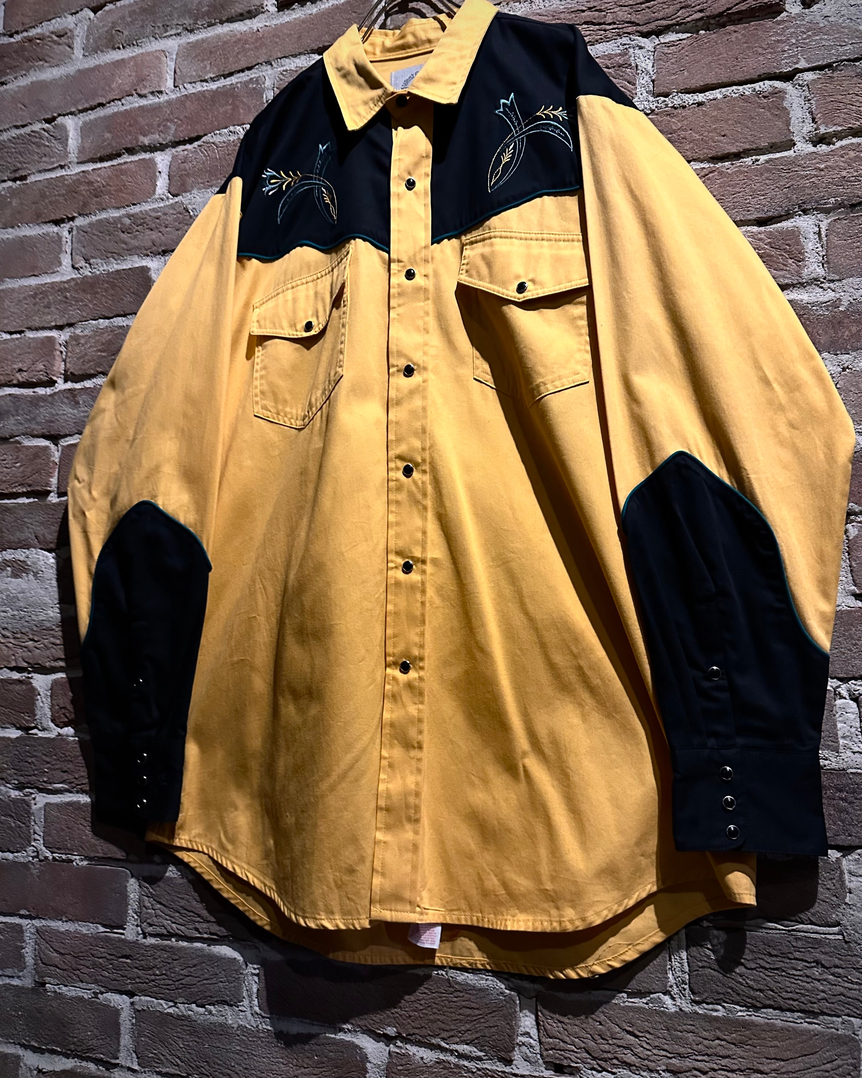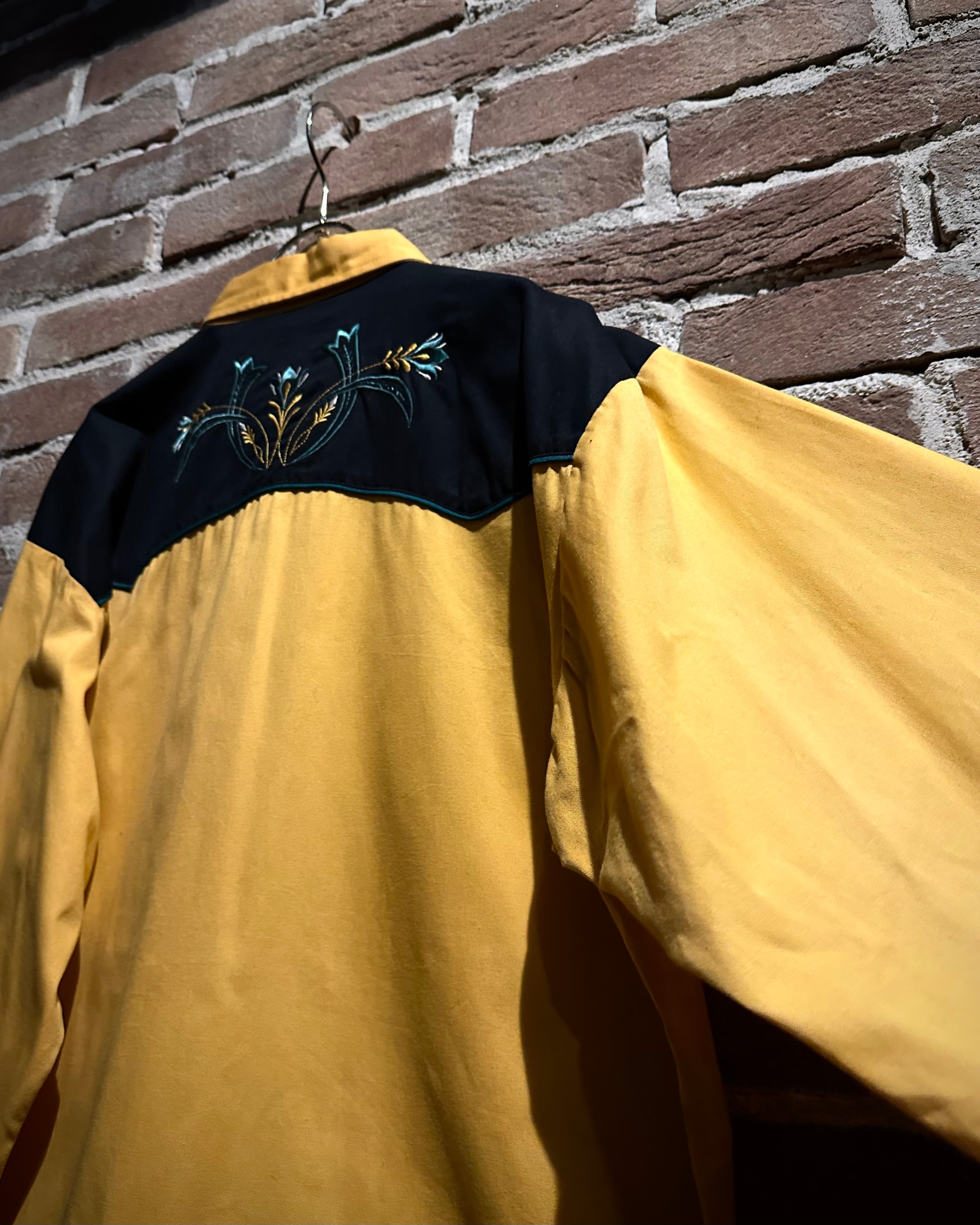 パールスナップボタン、フラップ付き両胸ポケット、カーブを描くウエスタンヨークなど王道ディテールも抜かりなし。ビビッドイエロー×ダークトーンのコントラストが効いた、どこかモードな佇まいに仕上がっています。