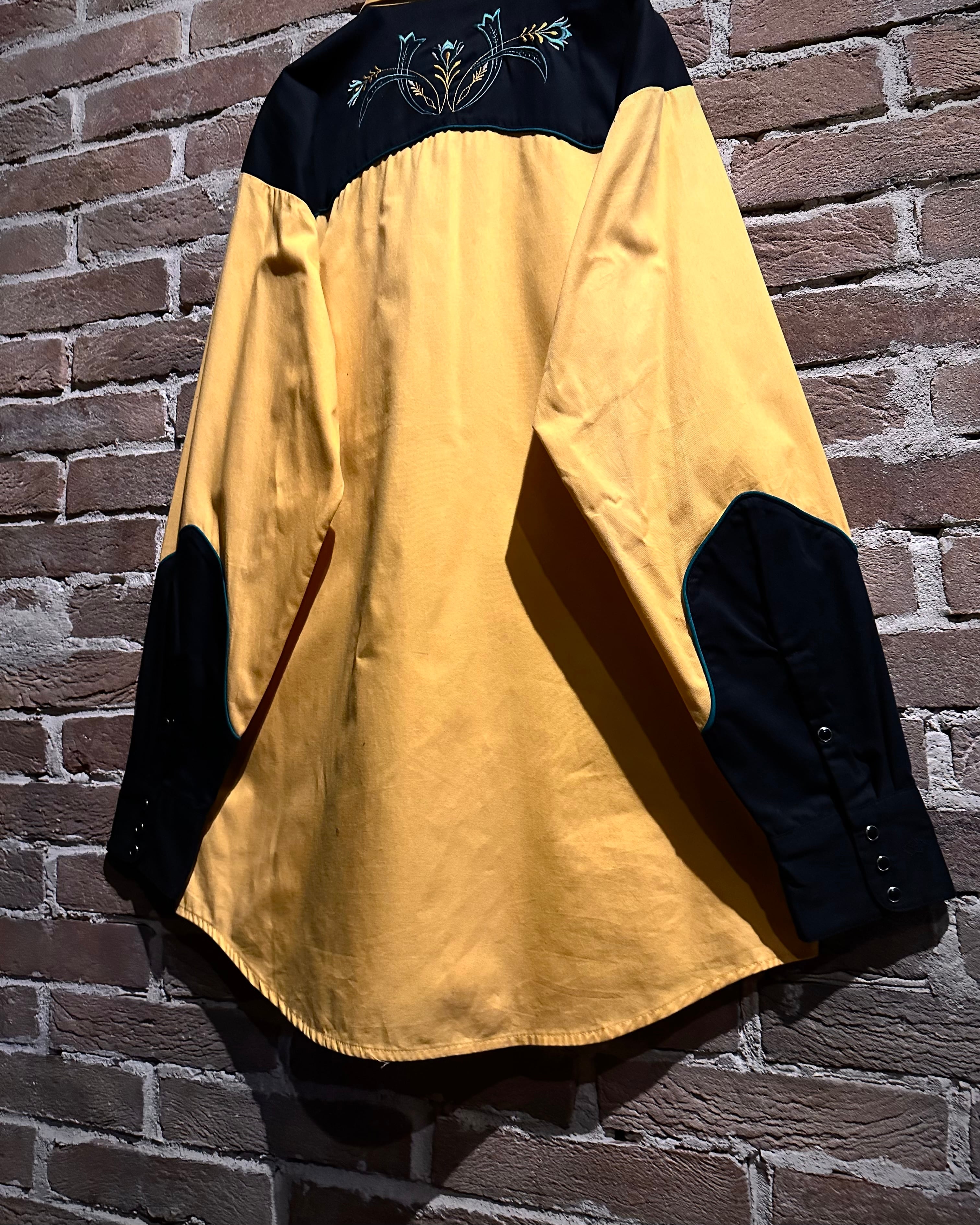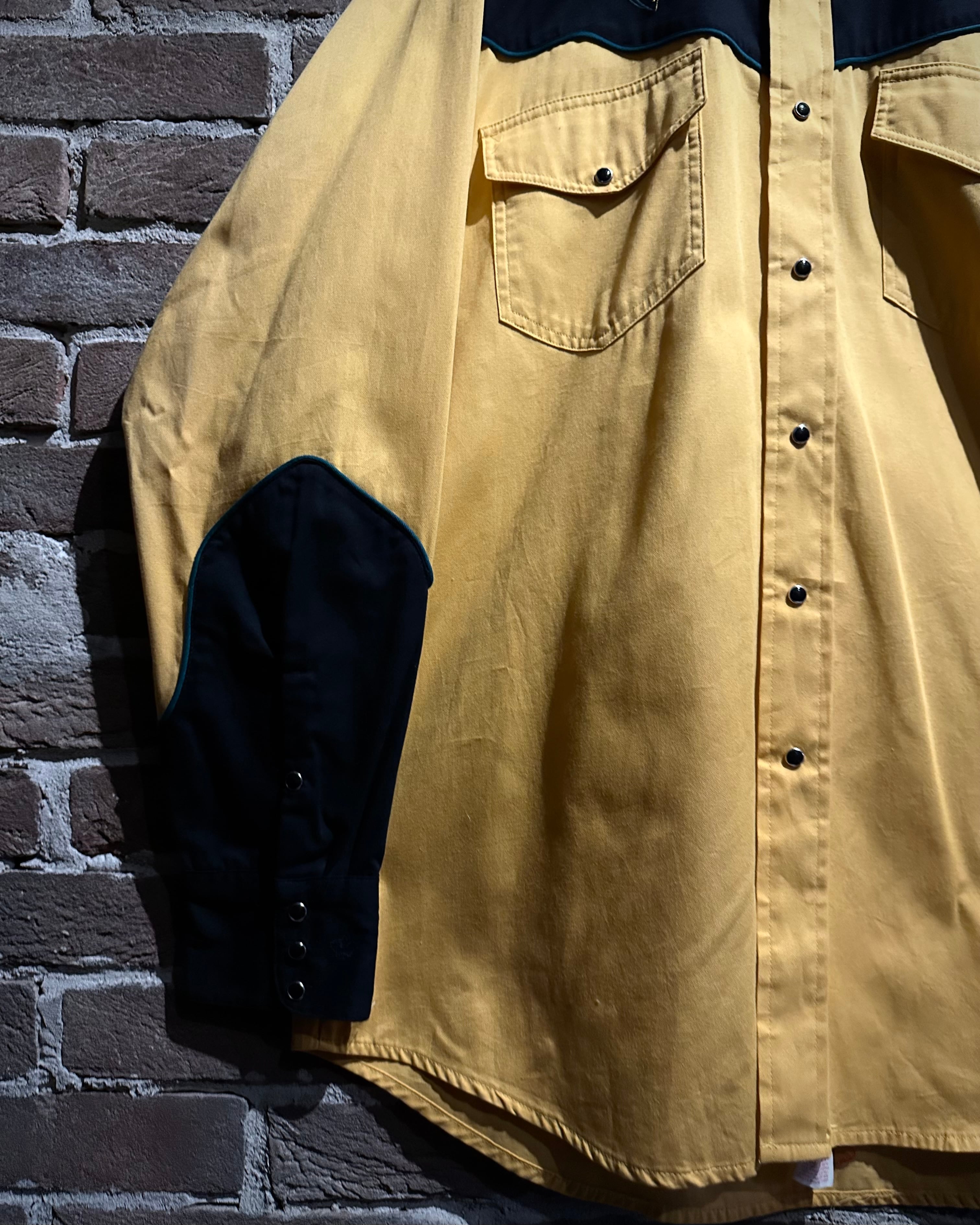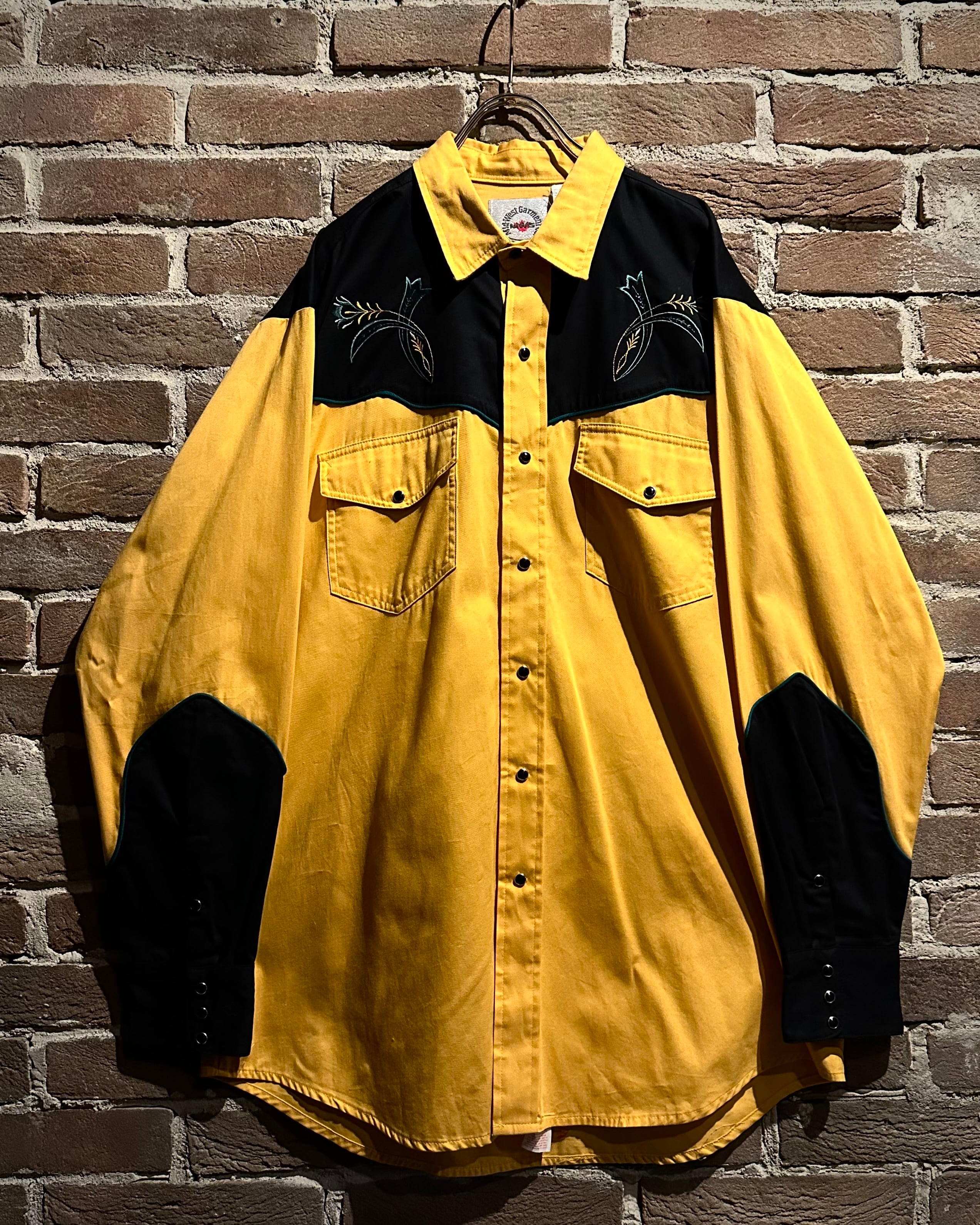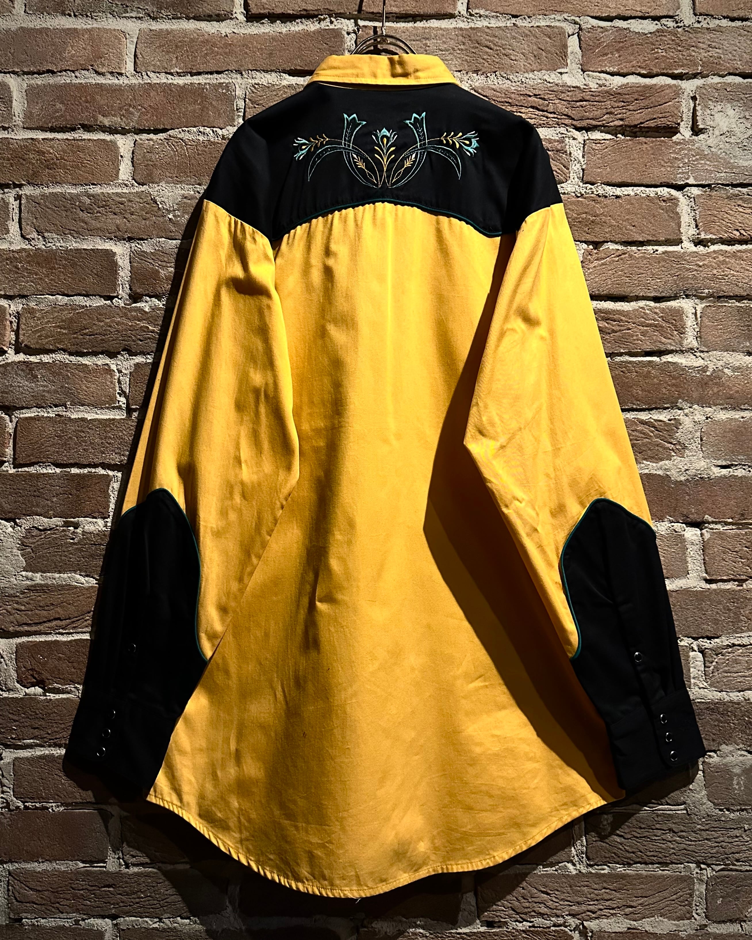 パールスナップボタン、フラップ付き両胸ポケット、カーブを描くウエスタンヨークなど王道ディテールも抜かりなし。ビビッドイエロー×ダークトーンのコントラストが効いた、どこかモードな佇まいに仕上がっています。