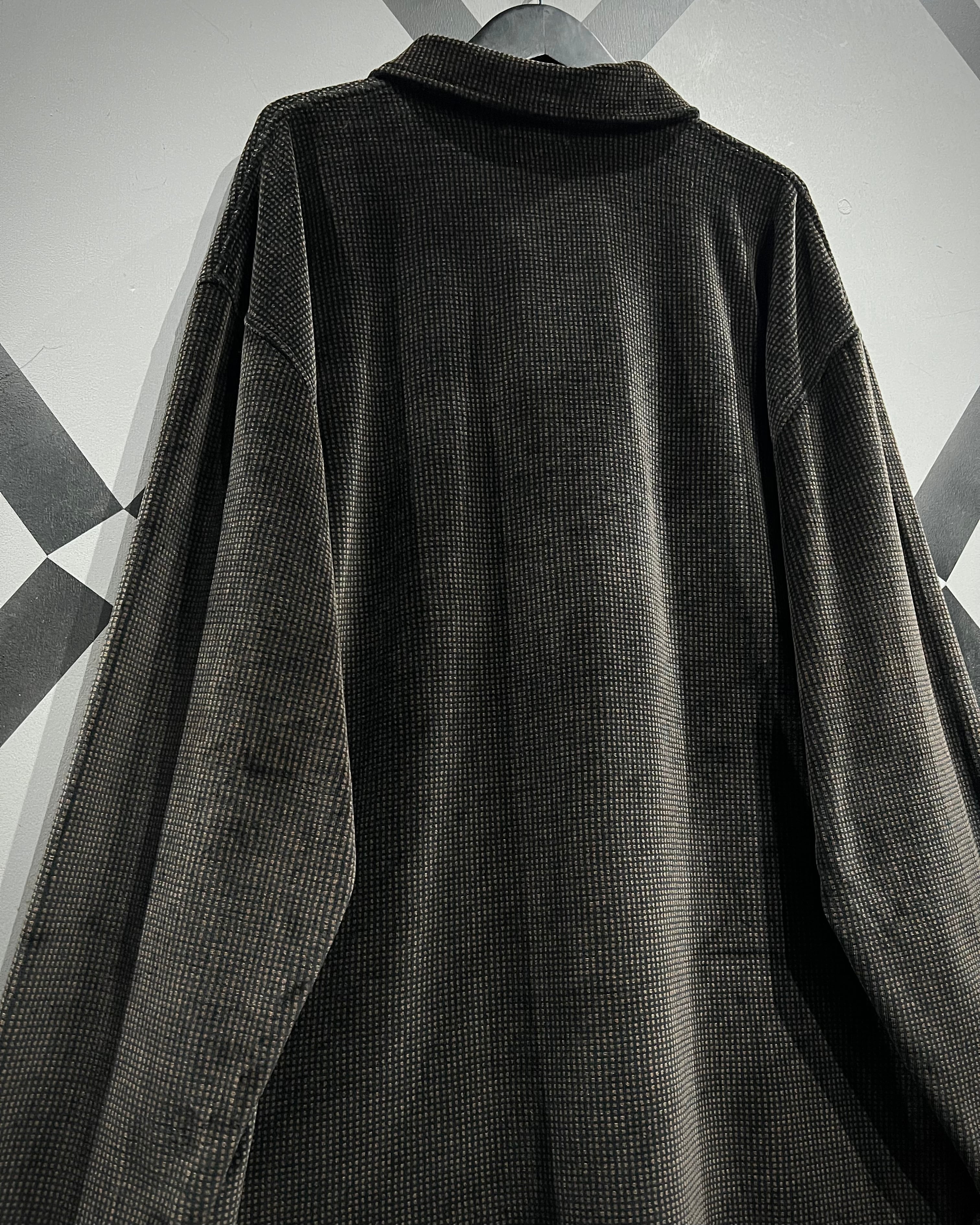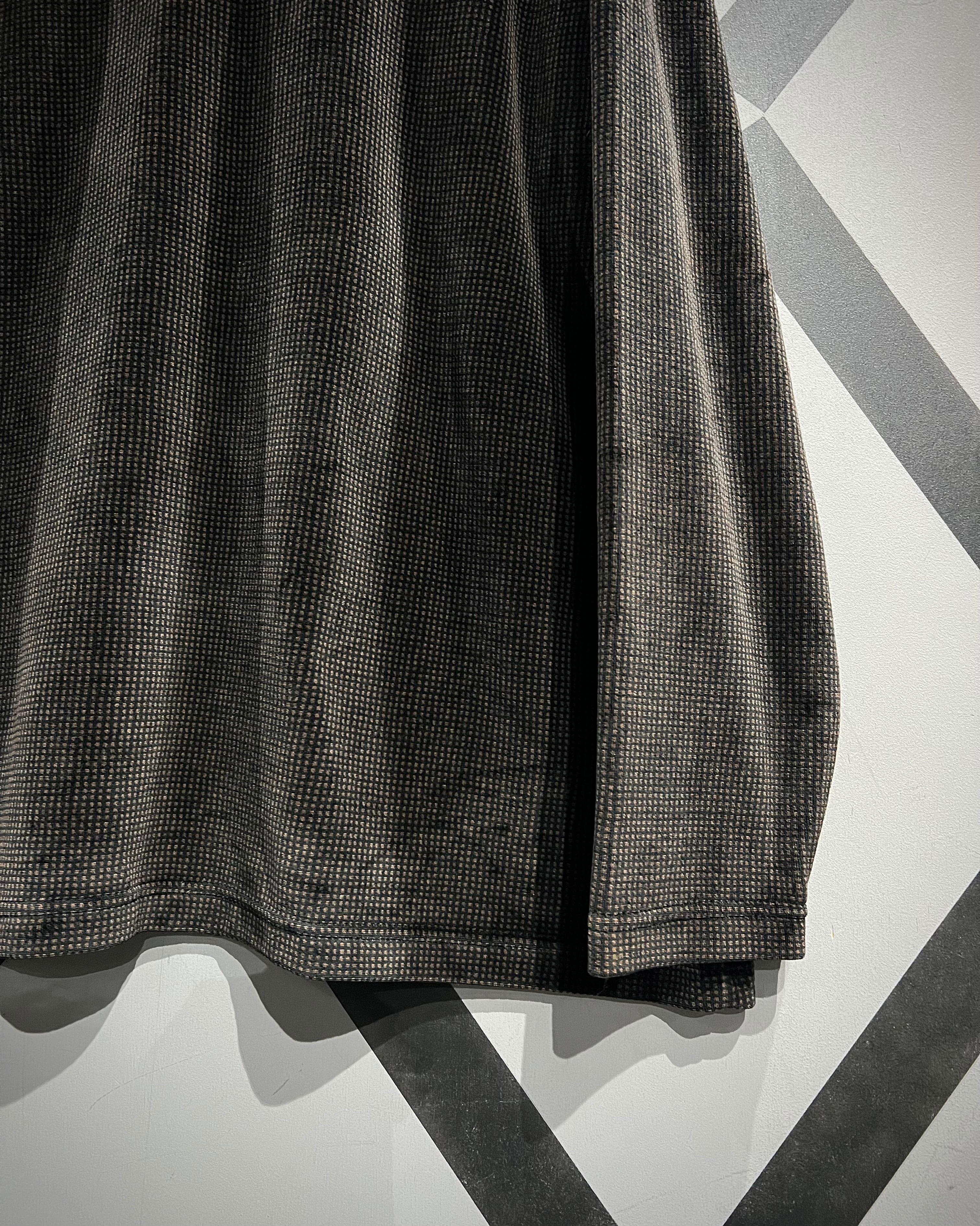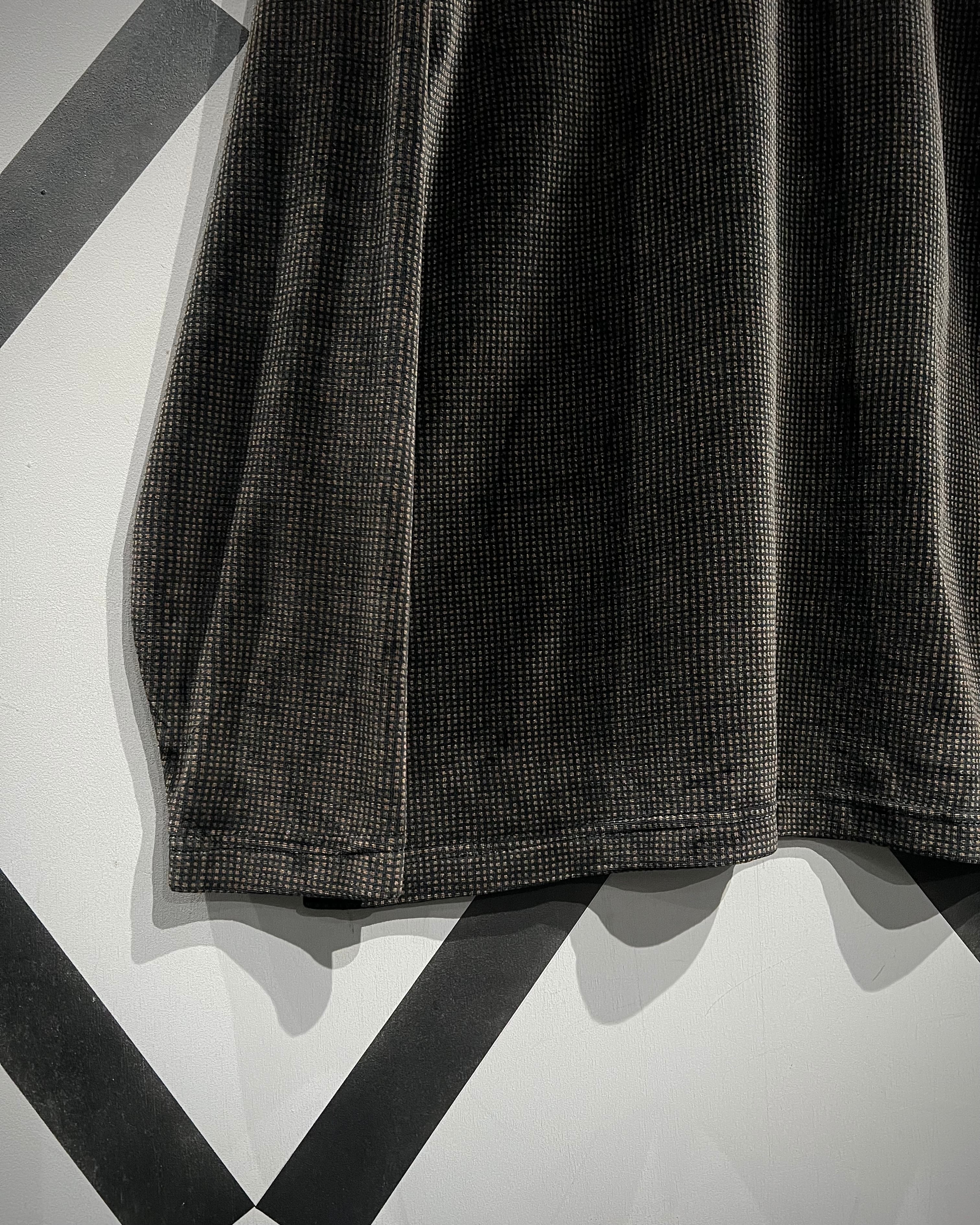 細かなブロックパターンを施したブラックベースのベロアに、ブラウンを重ねた奥行きある色味。光の当たり方で陰影が生まれる上品な質感が特徴です。
