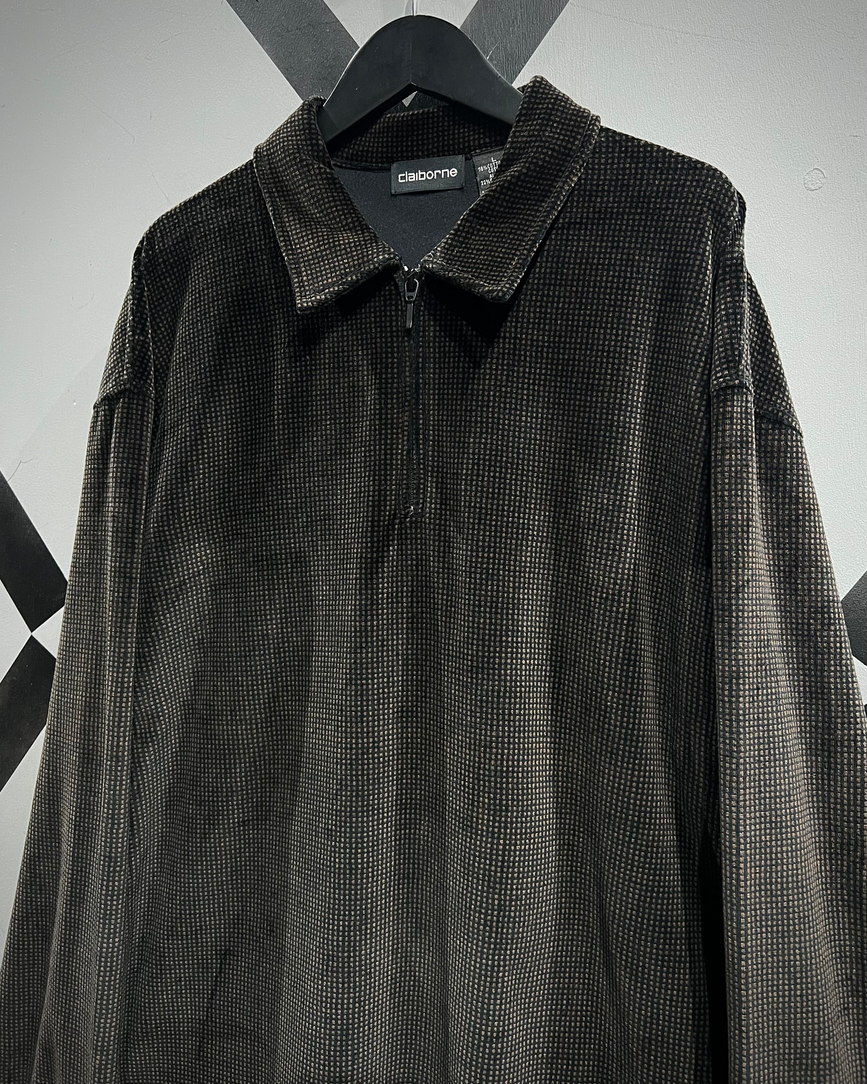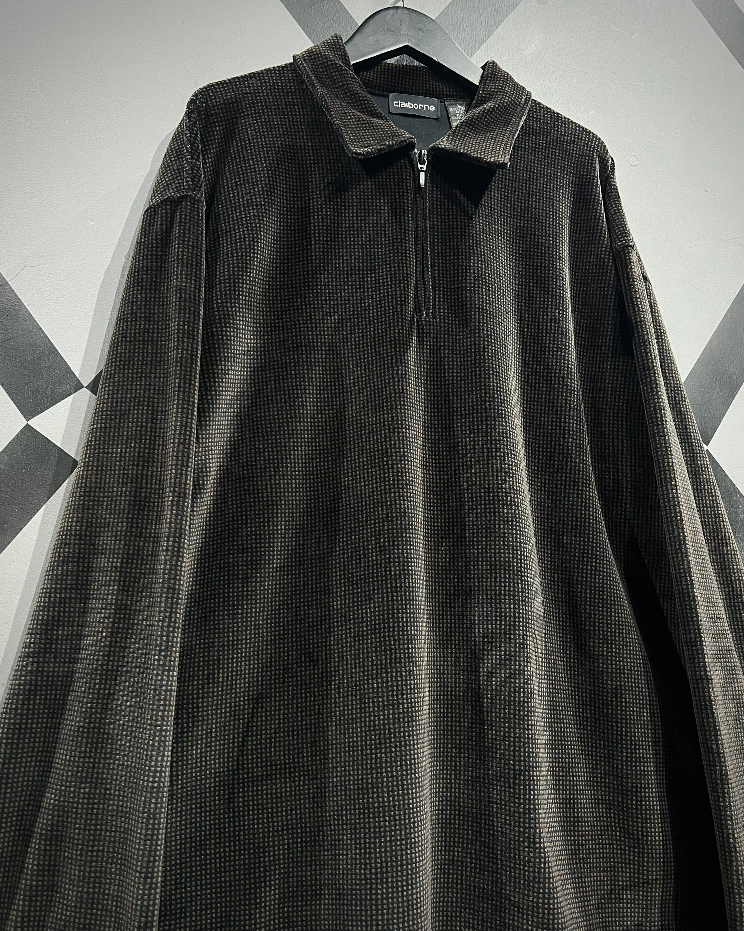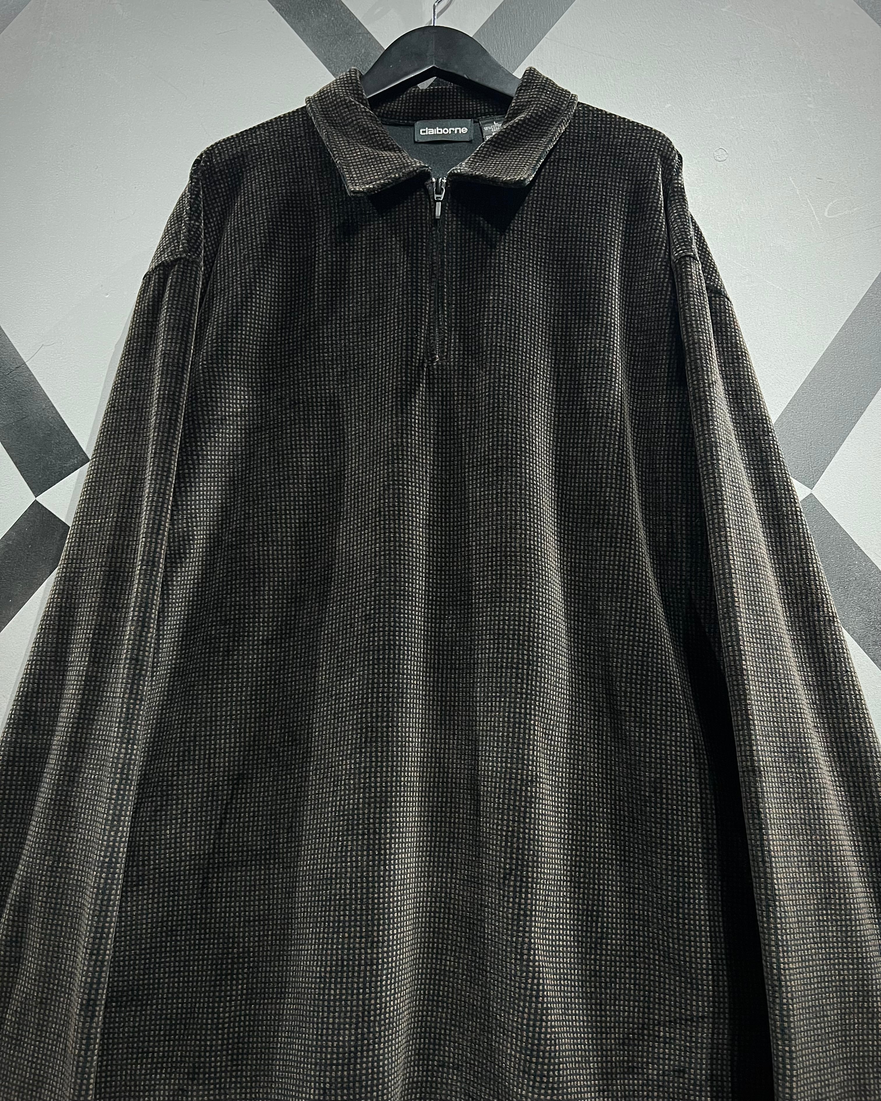 落ち着いた色気を纏う、ベロア素材のハーフジッププルオーバー。