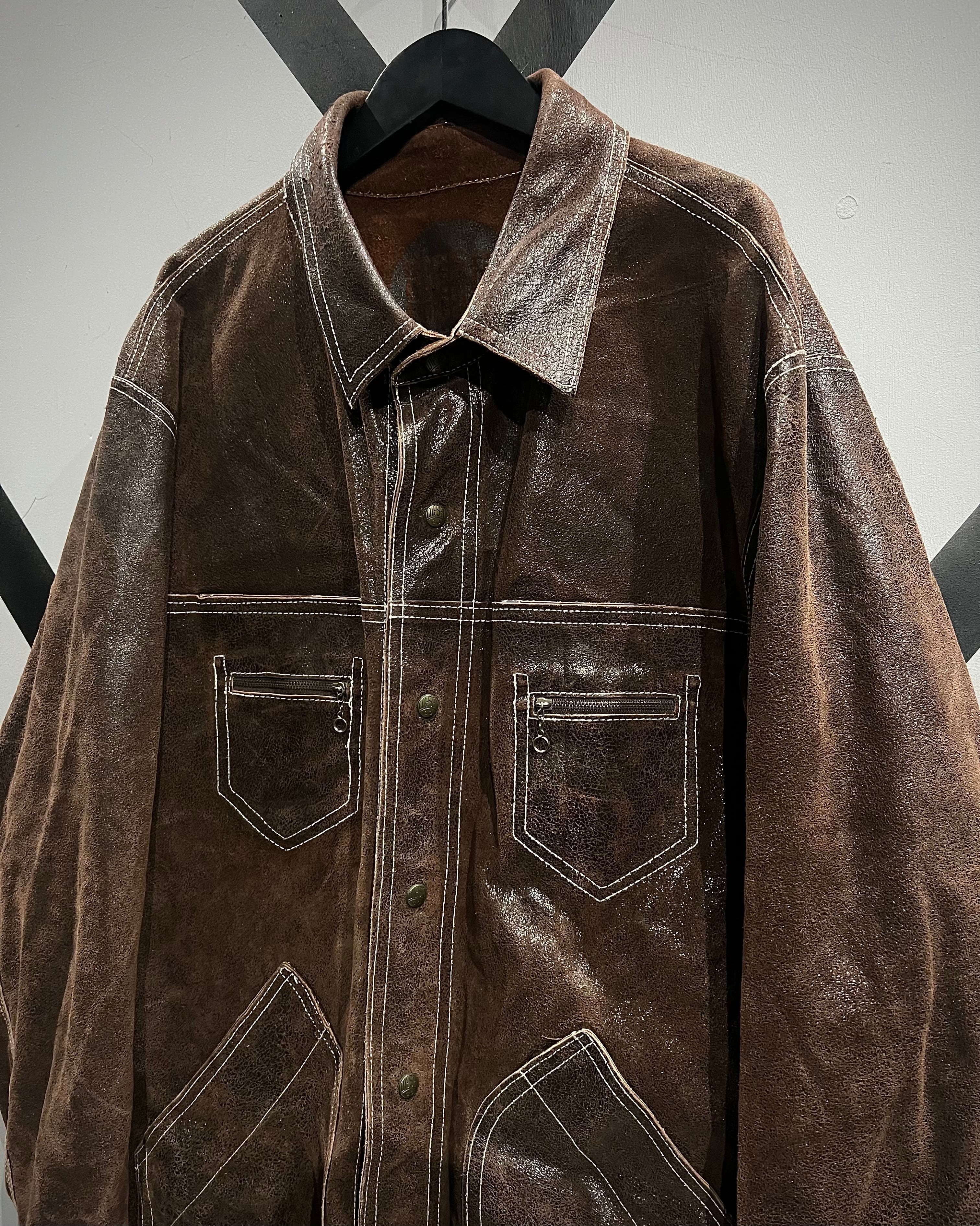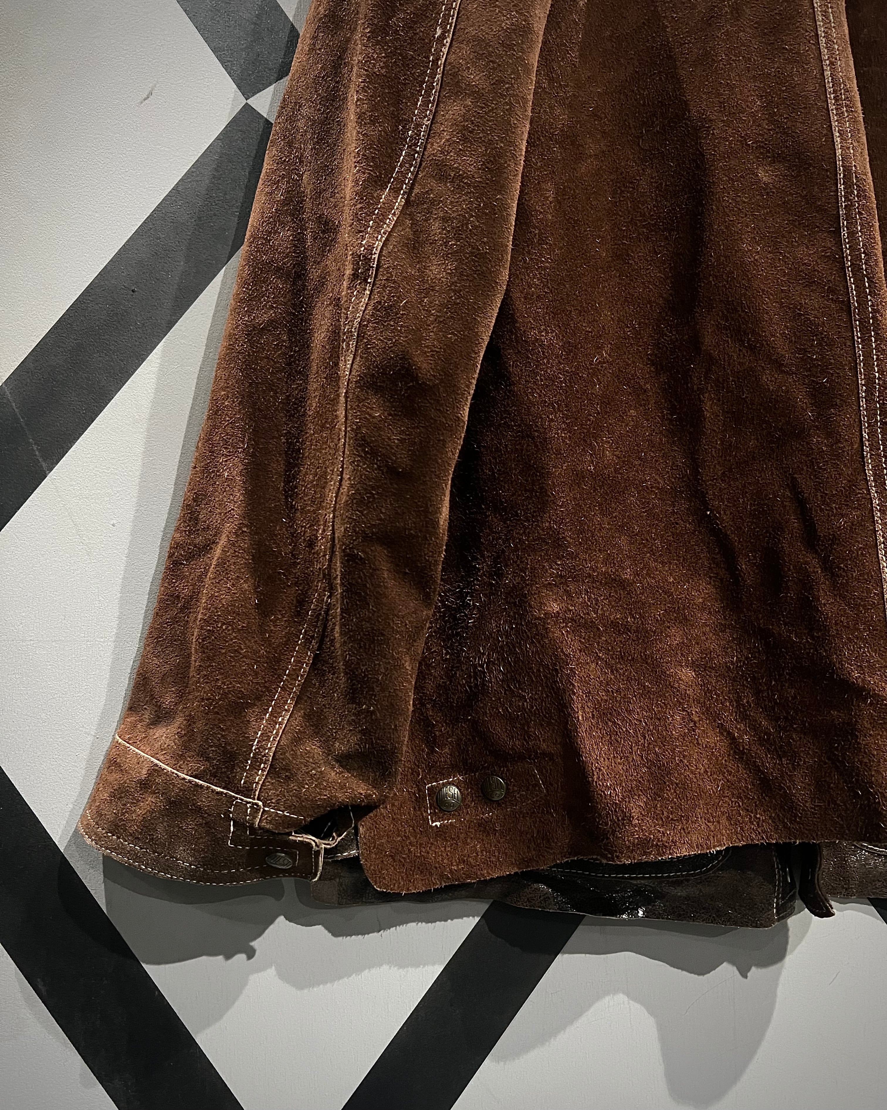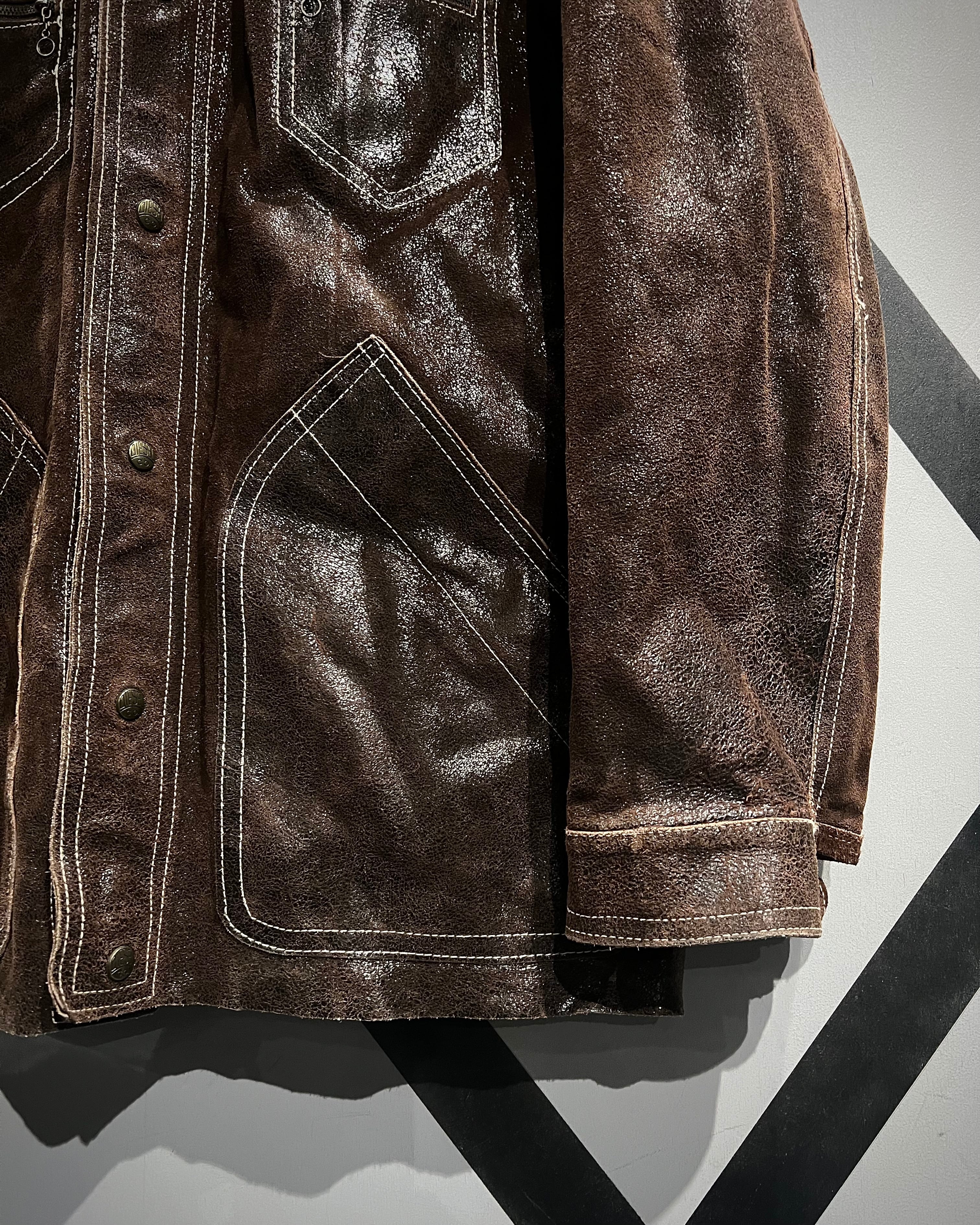 深みのあるブラウンレザーを採用し、起毛感のあるスエード面と艶のある革面、異なる表情を1着で楽しめる贅沢な仕様。素材の質感の違いが、着こなしに奥行きを与えてくれます。