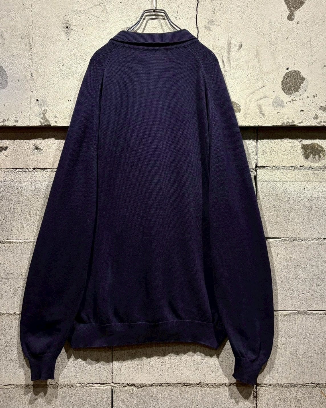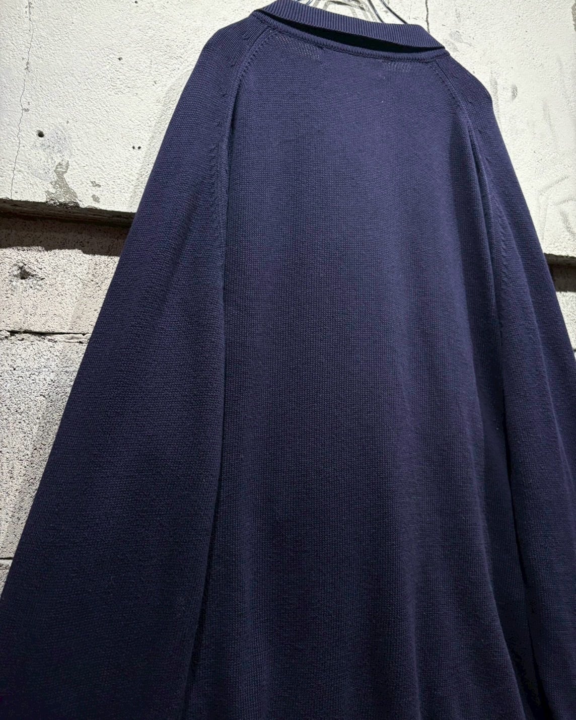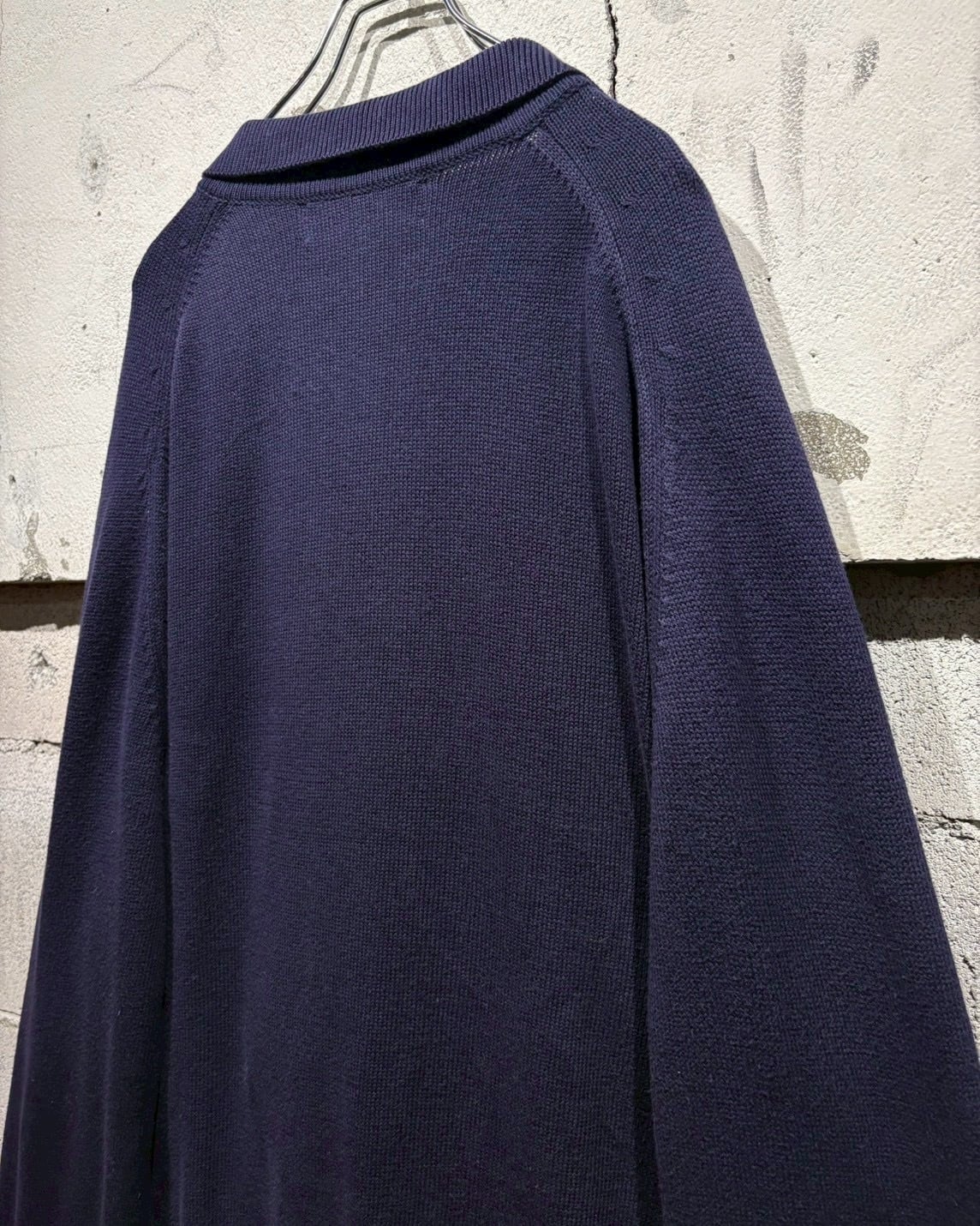 クラシックなポロカラーに3つボタンの前立て仕様。首元を開けた際の抜け感も美しく、ボタンを留めれば端正な印象に。ラグランスリーブを採用することで肩のラインは自然に落ち、丸みを帯びたシルエットを演出しています。