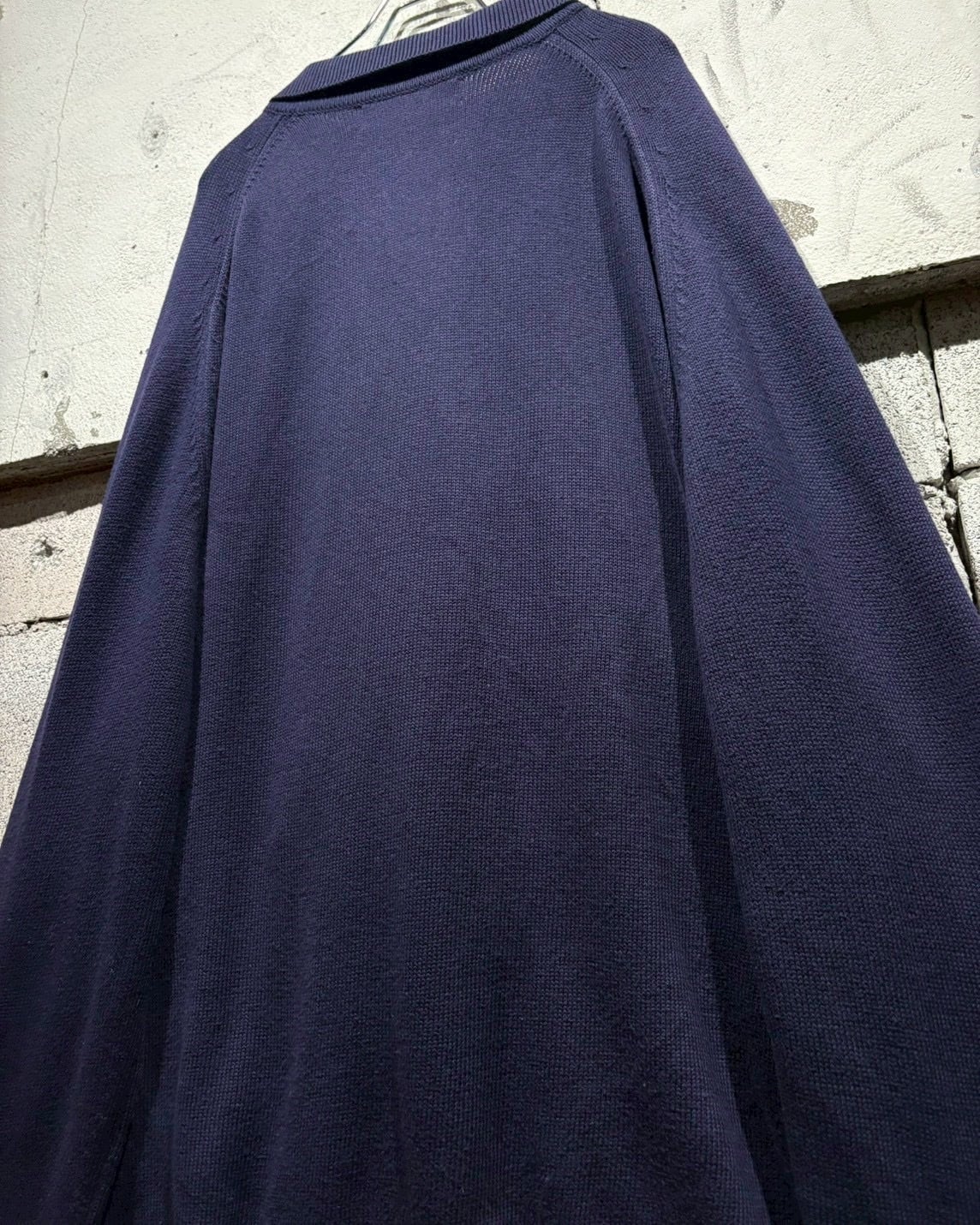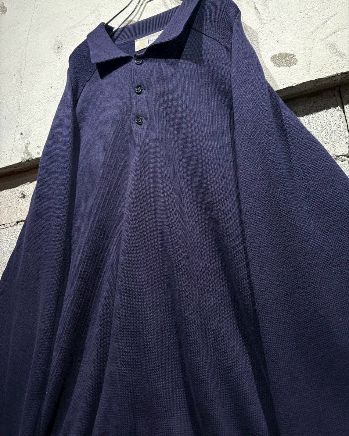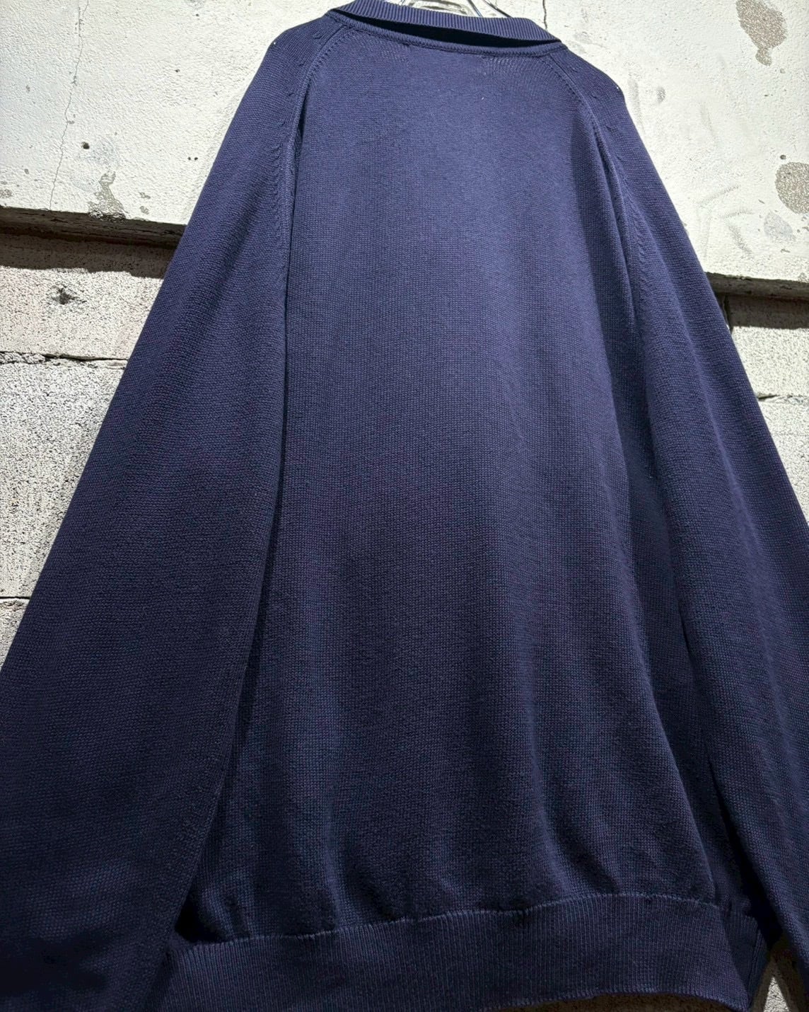 クラシックなポロカラーに3つボタンの前立て仕様。首元を開けた際の抜け感も美しく、ボタンを留めれば端正な印象に。ラグランスリーブを採用することで肩のラインは自然に落ち、丸みを帯びたシルエットを演出しています。