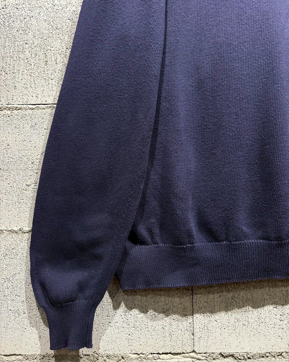 素材は100%ピュアコットン。滑らかで柔らかい肌触りながら、程よくコシのある編地で型崩れしにくいのも魅力。ニット特有の伸縮性によりストレスなく着用でき、季節の変わり目には一枚で、寒い時期にはインナーとしても活躍します。◎