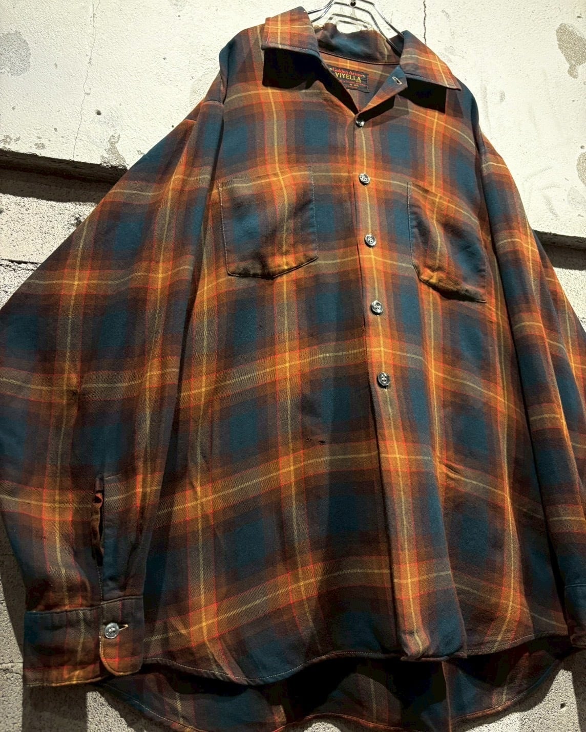 ビエラ社のファブリックを用いた、60's〜70'sヴィンテージのチェックシャツ。様々なブランドがこの生地を用いており、滑らかさと、しなやかな手触りが特徴。ヴィンテージ好きの皆様なら1着は手にしておきたいところですね。