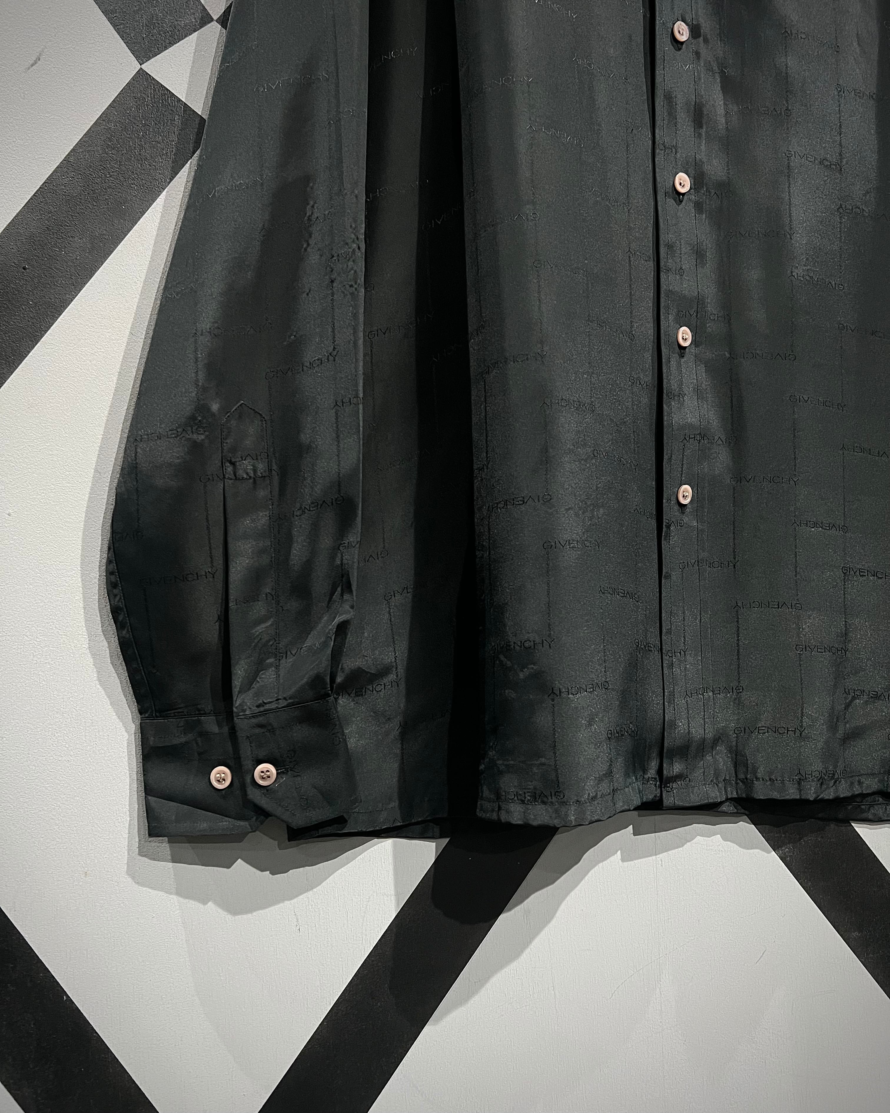 滑らかに流れるブラックサテンのボディに、ロゴを載せたサテンシャツの逸品。