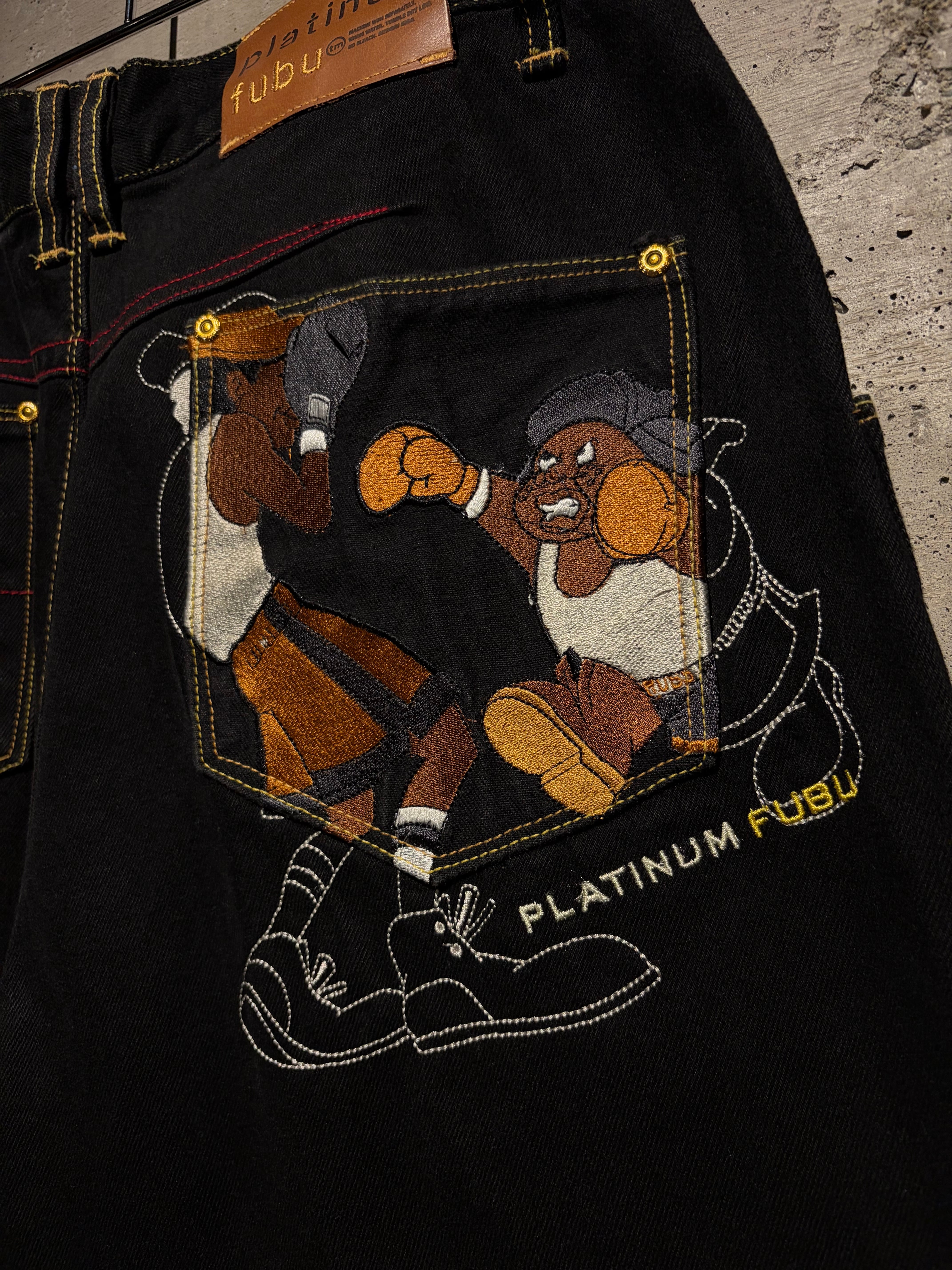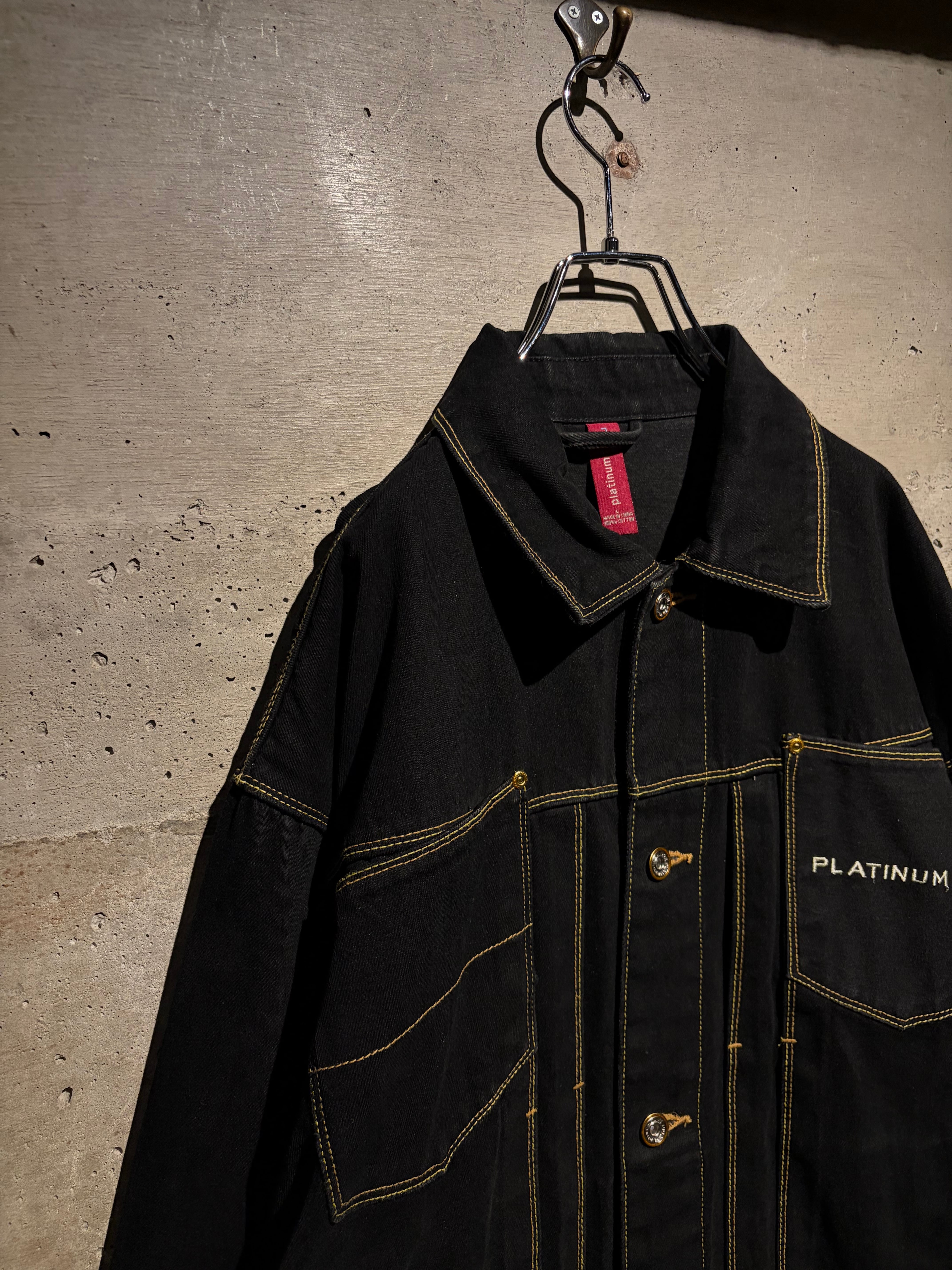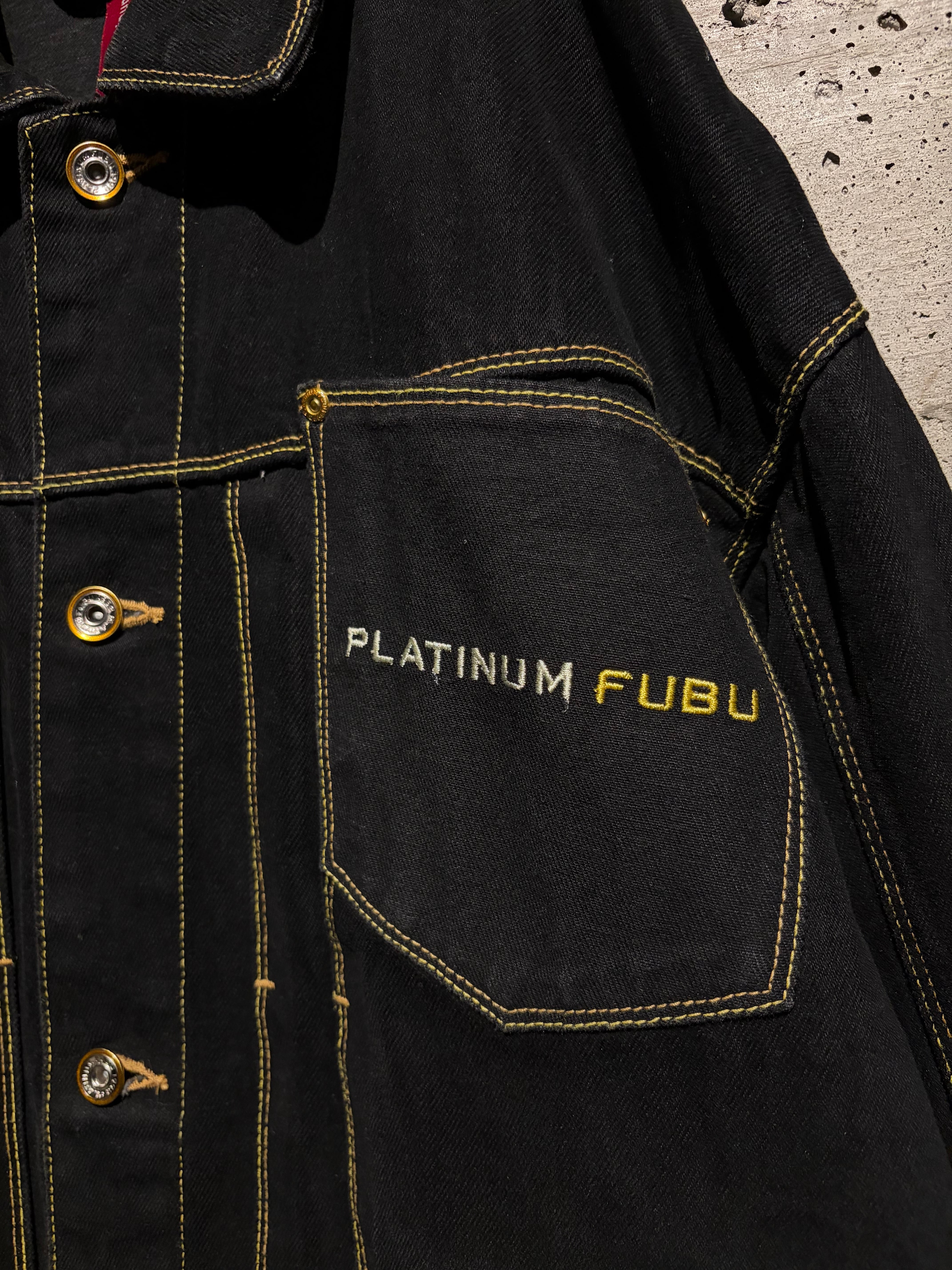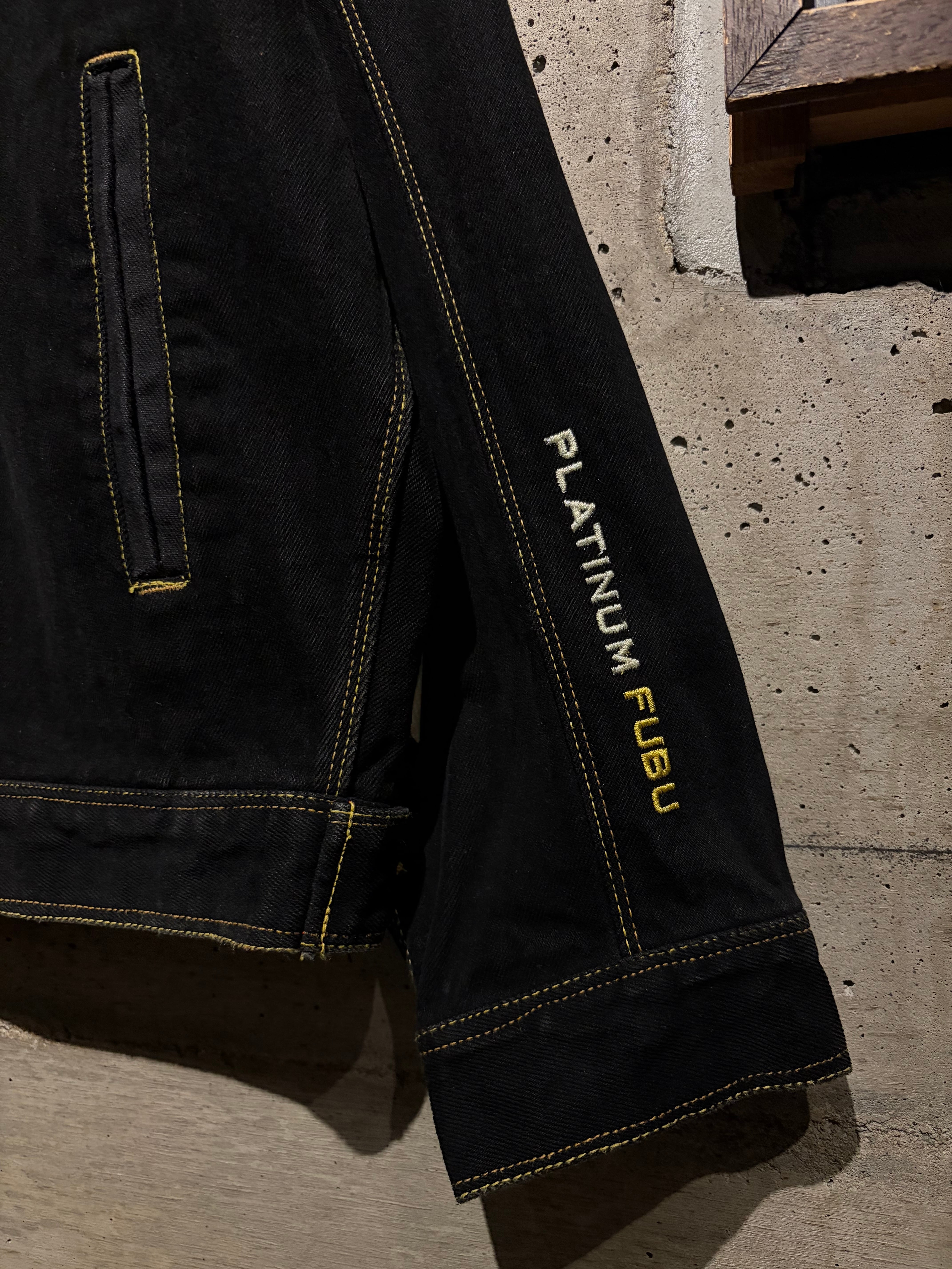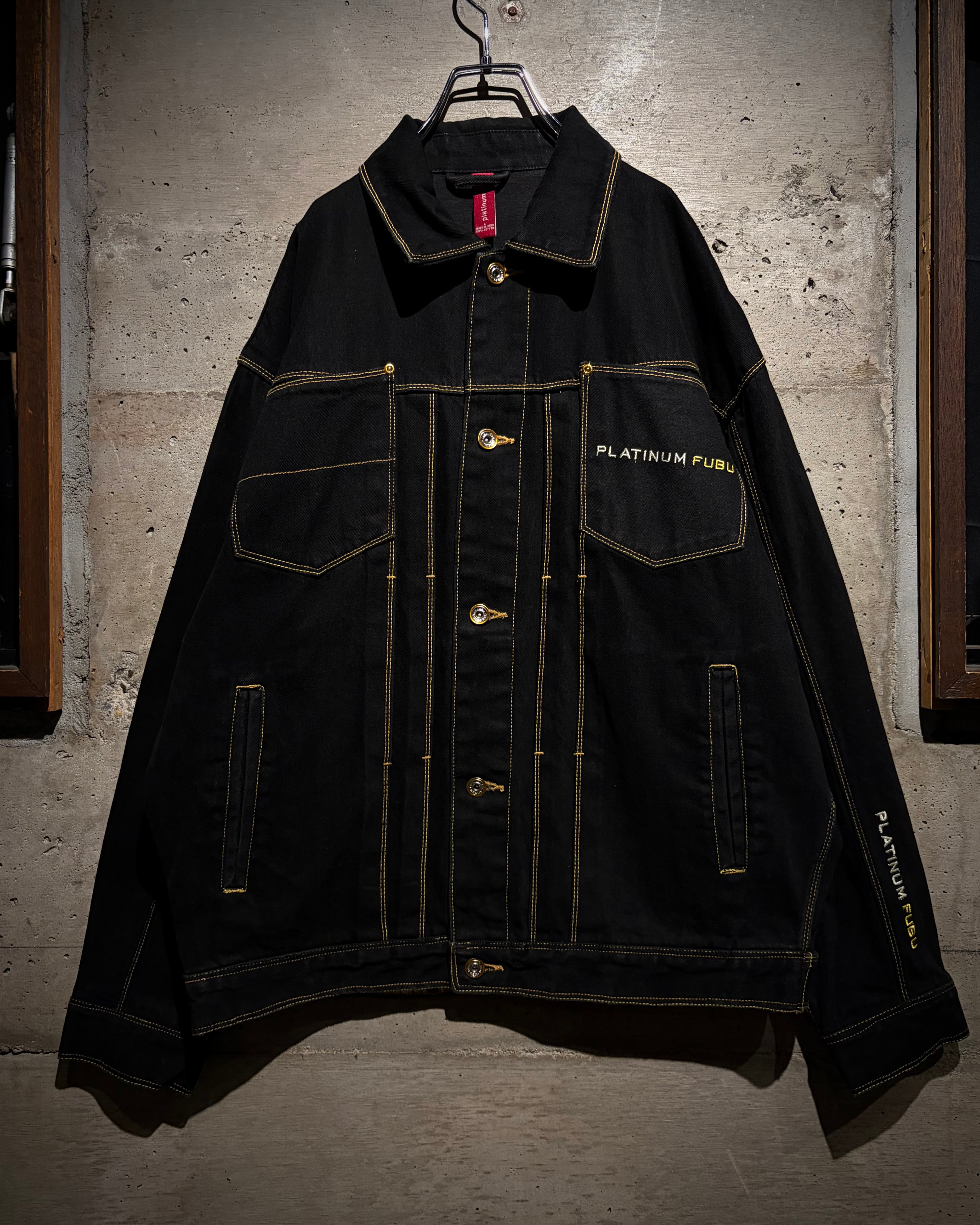 しっかりと色の残った、稀少な漆黒のデニムセットアップ。ファッション性、カルチャー性共に兼ね備えた、“PLATINUM FUBU”からのスペシャルな1着です。