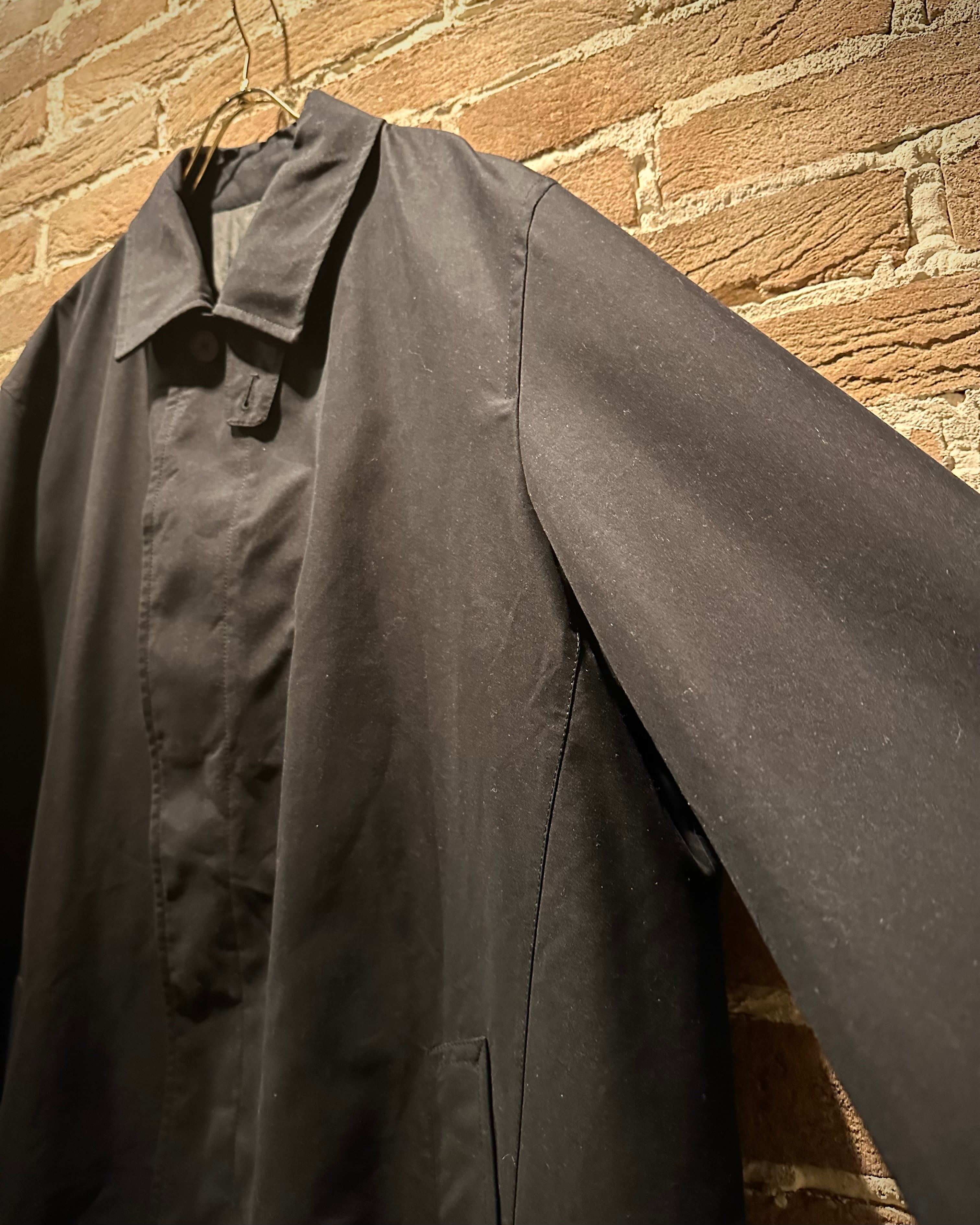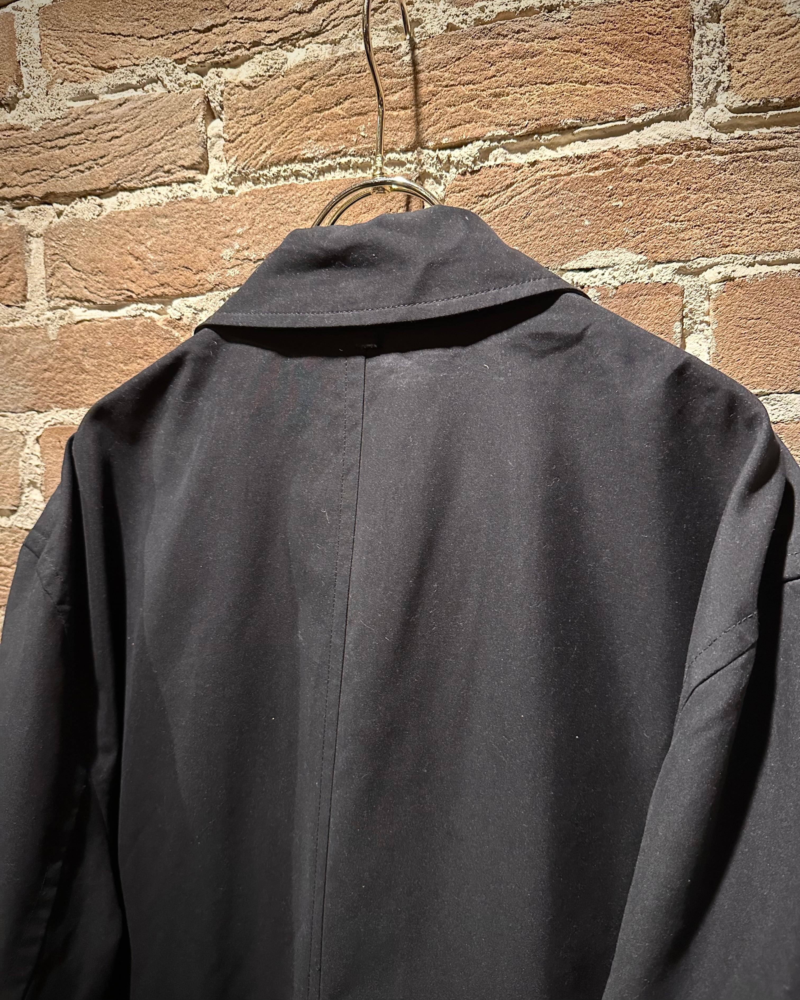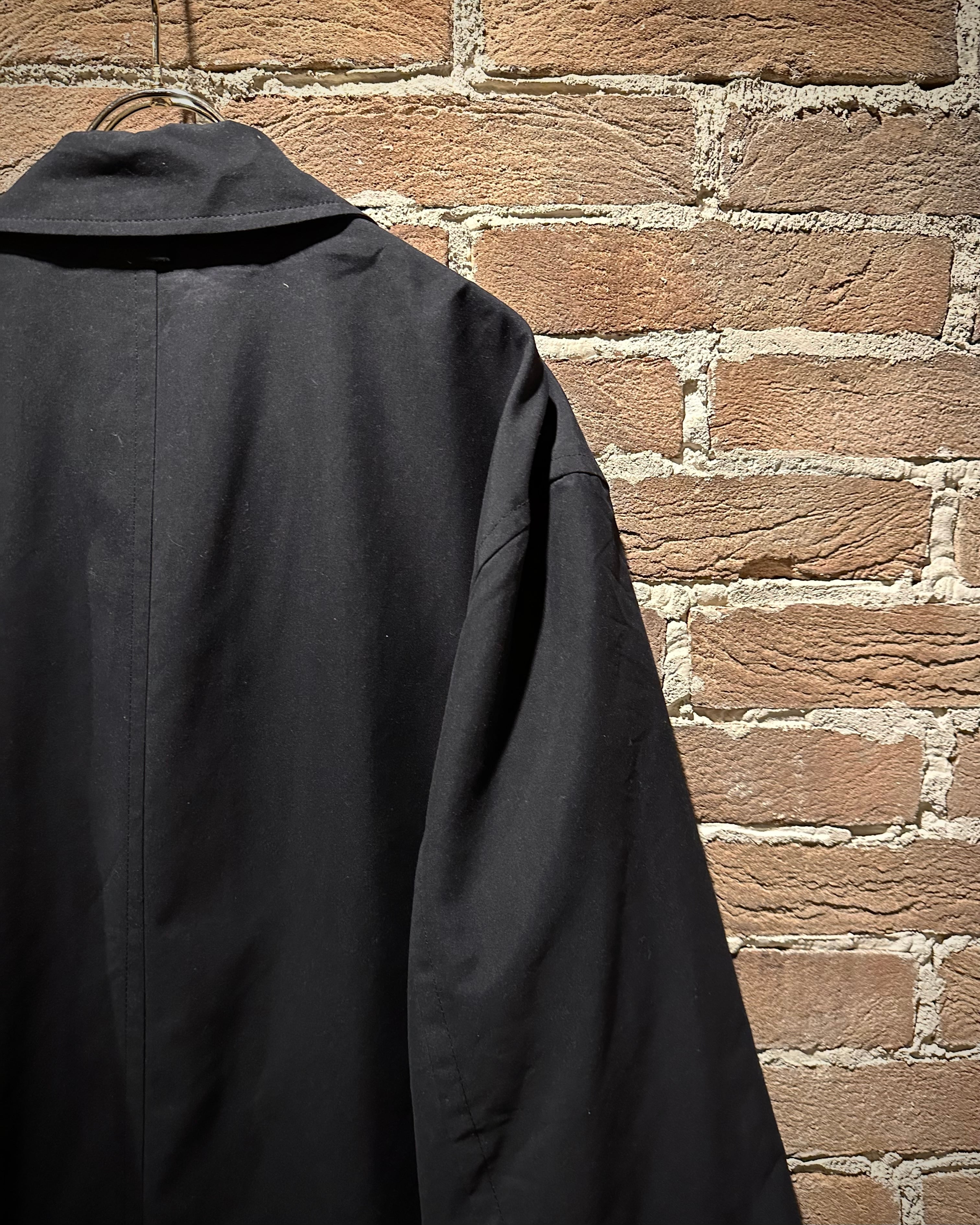 フロントは比翼仕立てでボタンを隠すことでよりクリーンな印象に。襟にはストラップを備え、スタンドカラーとしても着用可能。内側の丁寧なライニング処理など、見えない部分まで抜かりのない作り込みが光ります。
