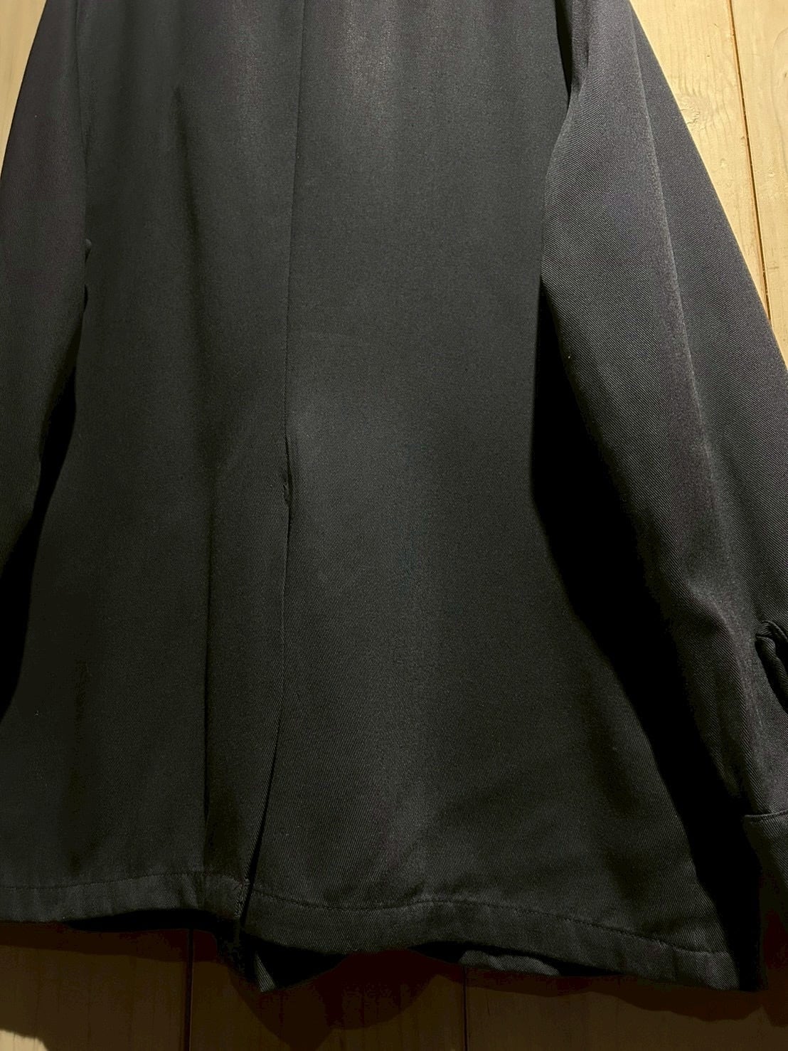 ポリエステル×レーヨン混紡による扱いやすさと耐久性を兼ね備え、軽やかな着心地と程よいドレープ感も魅力。春先のライトアウターとしてはもちろん、インナーを挟めばロングシーズン対応可能。