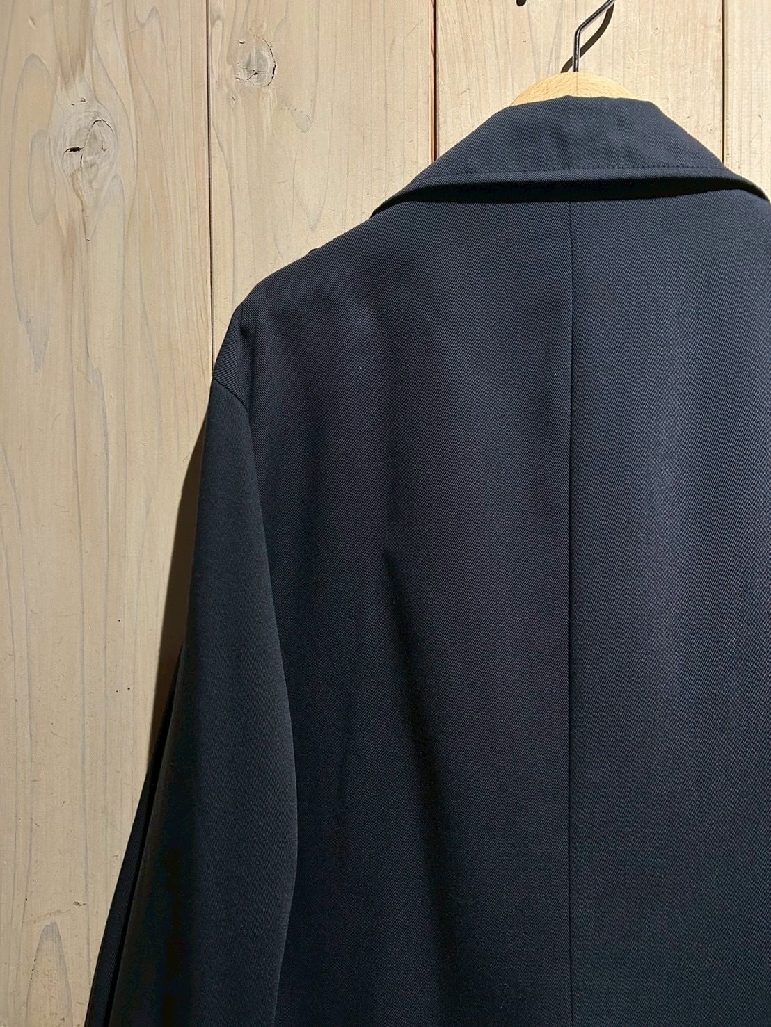 ハリとコシを感じるツイル織りのボディは、タフさとしなやかさを兼ね備えた上質なファブリック。程よく肉感のある生地が立体的なフォルムを生み、ネイビートーンの落ち着いた色味が雰囲気を演出します。