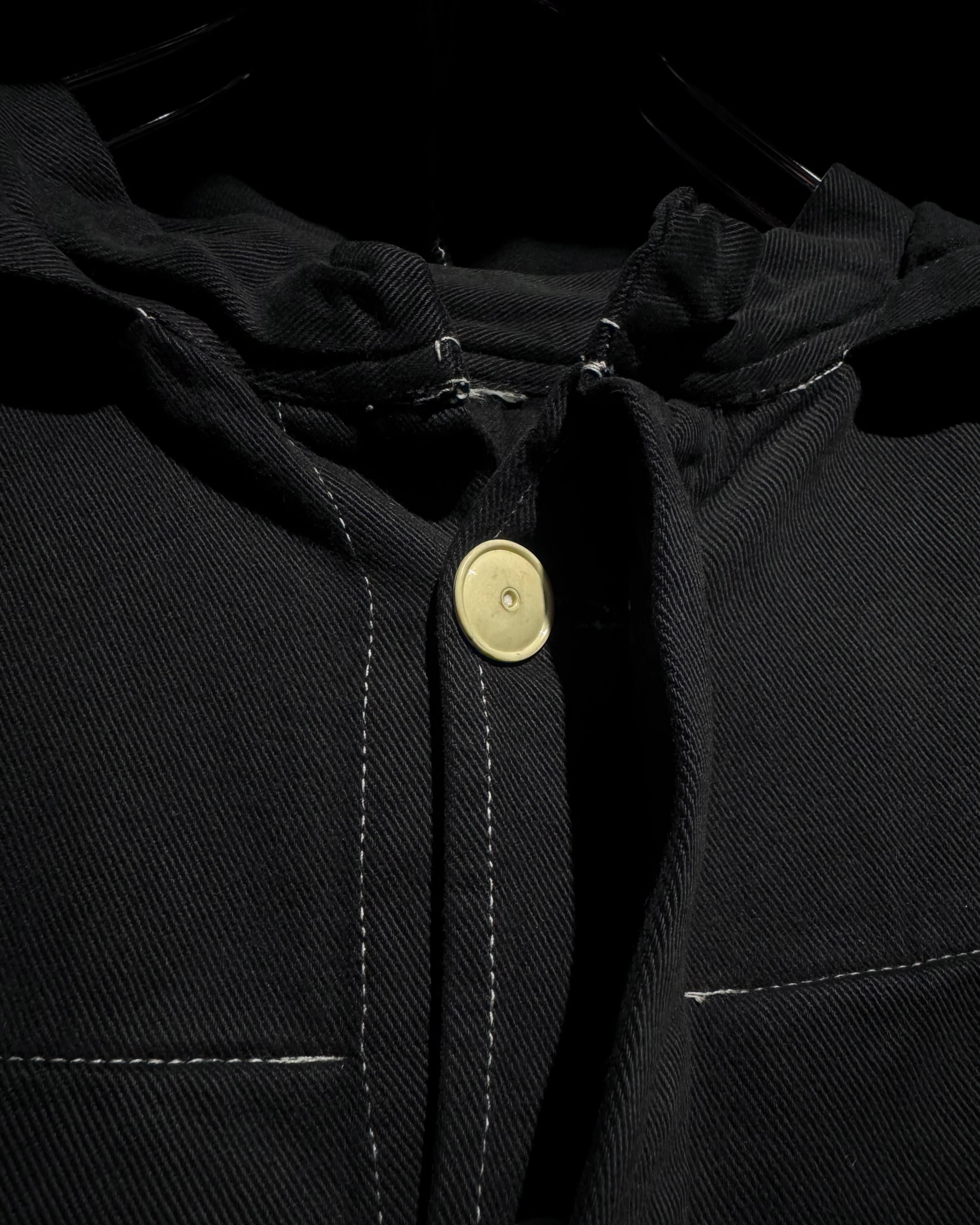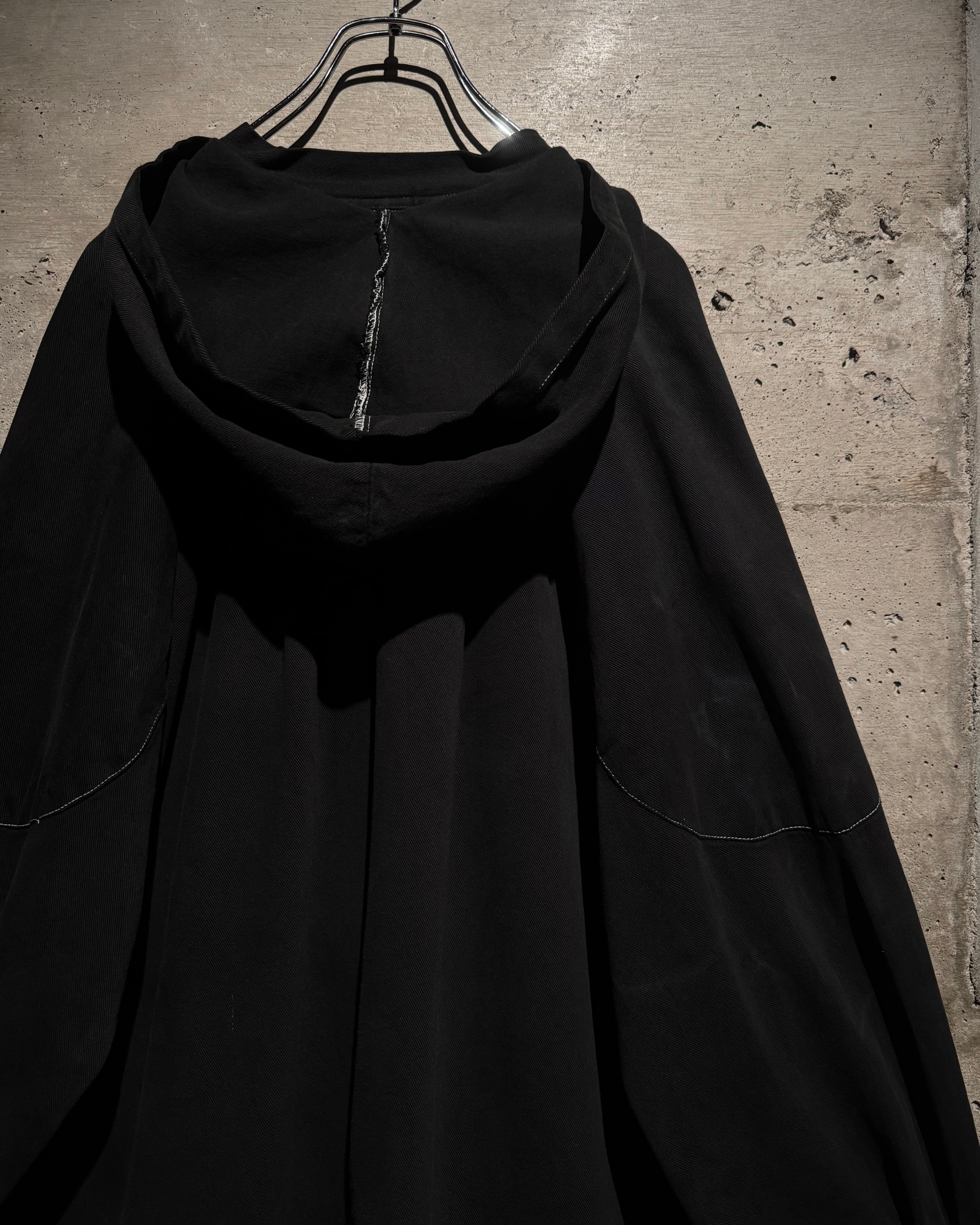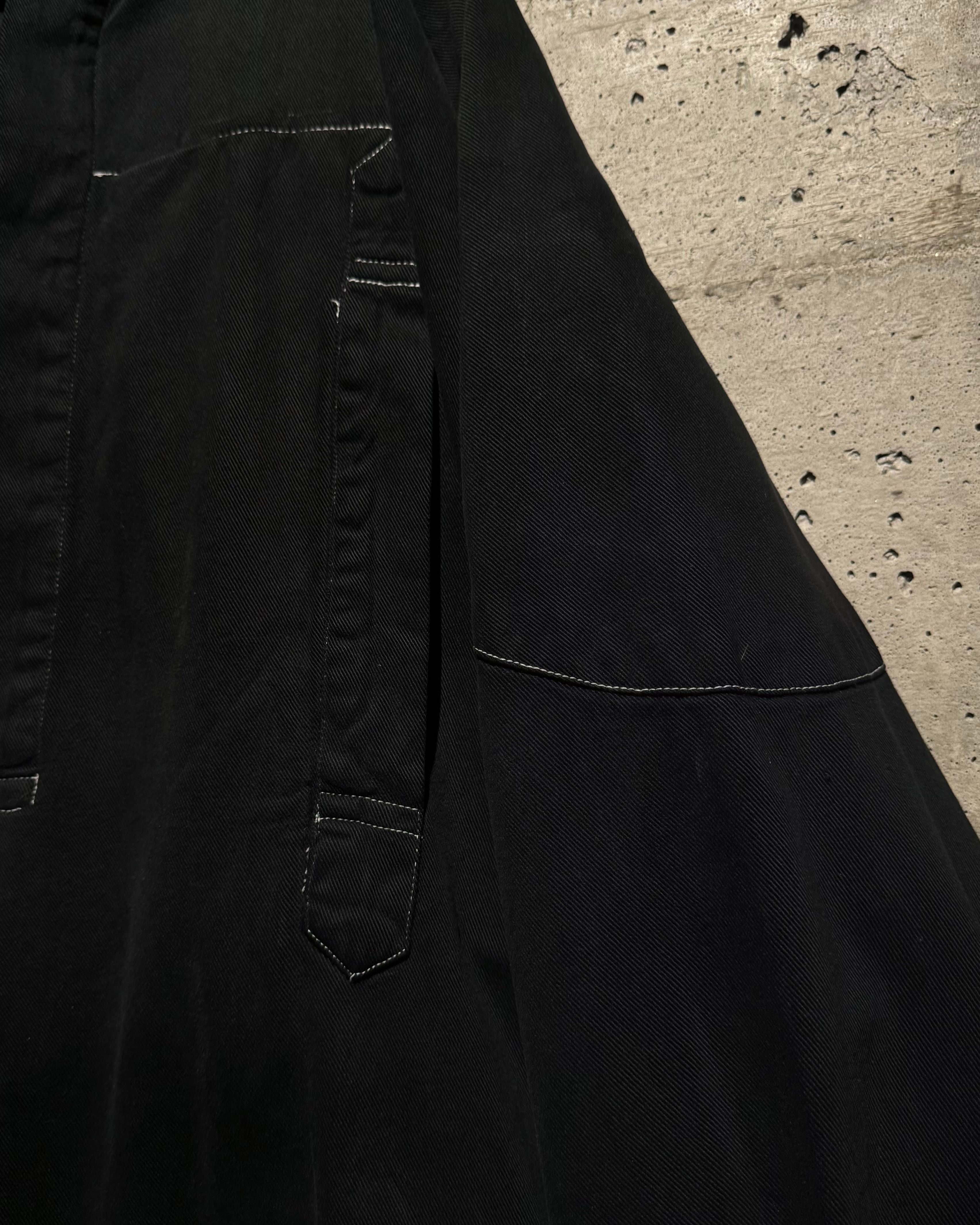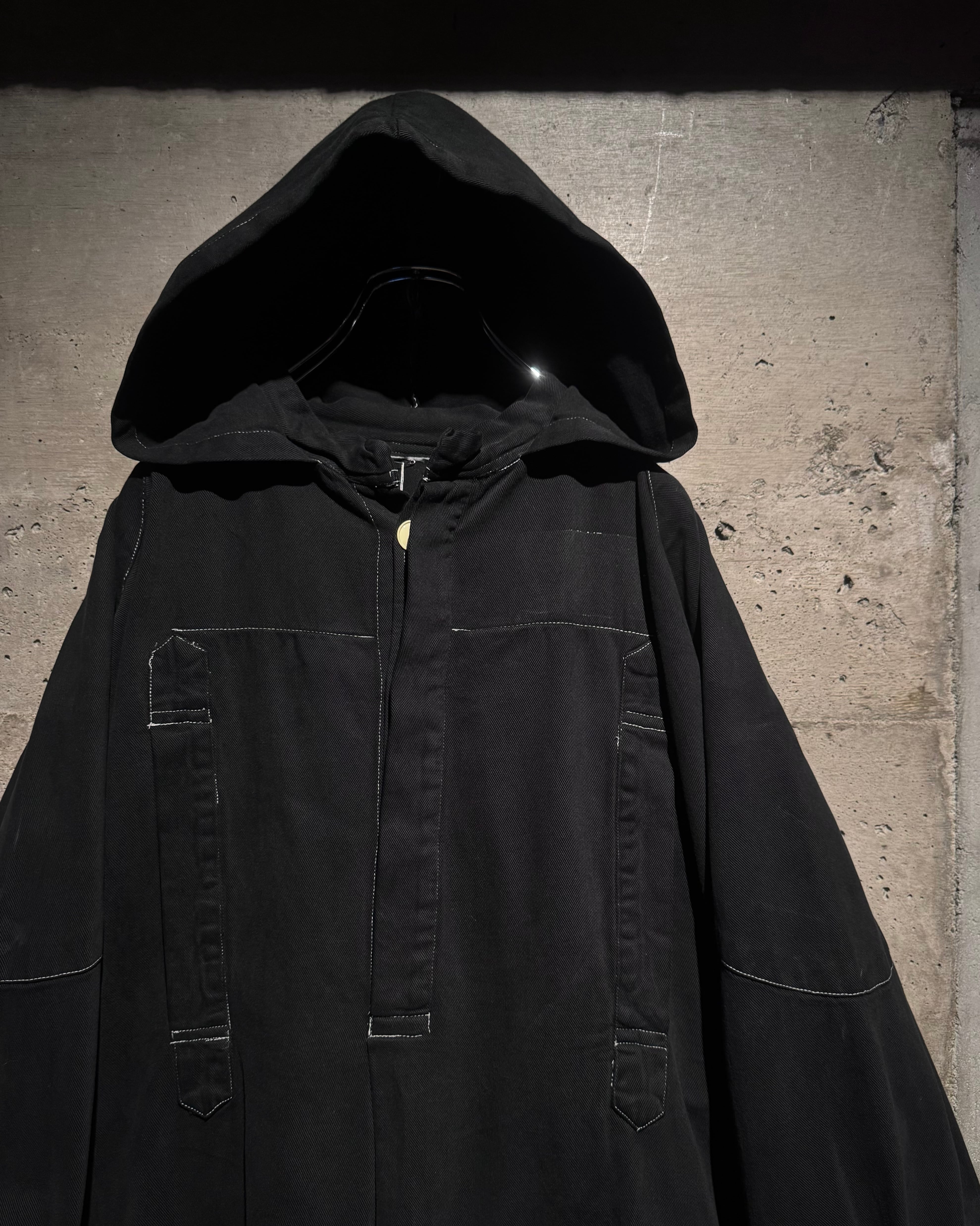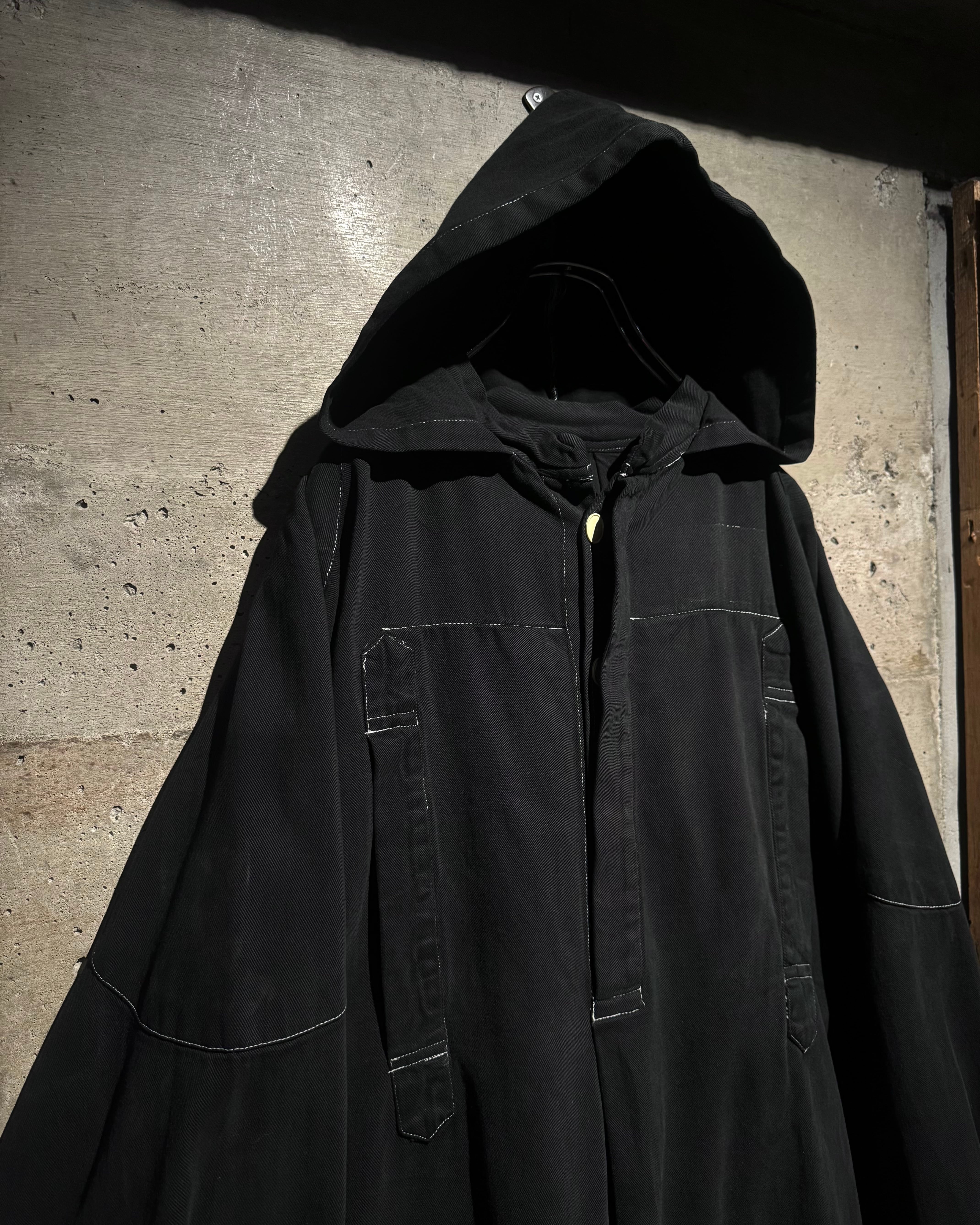 ガーメントダイによる無機質なブラックの佇まいが際立つ、オーバーシルエットのスモックコート。
