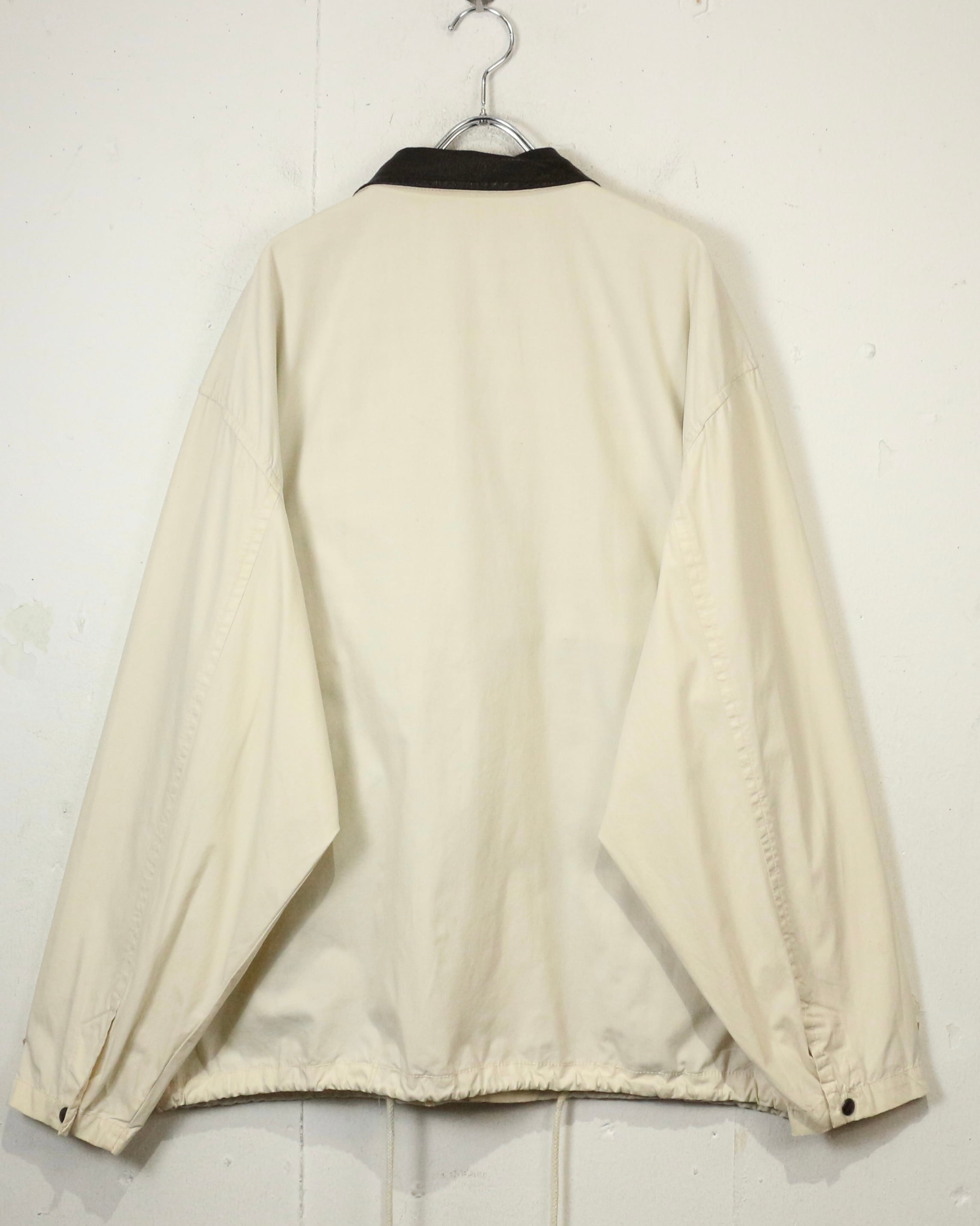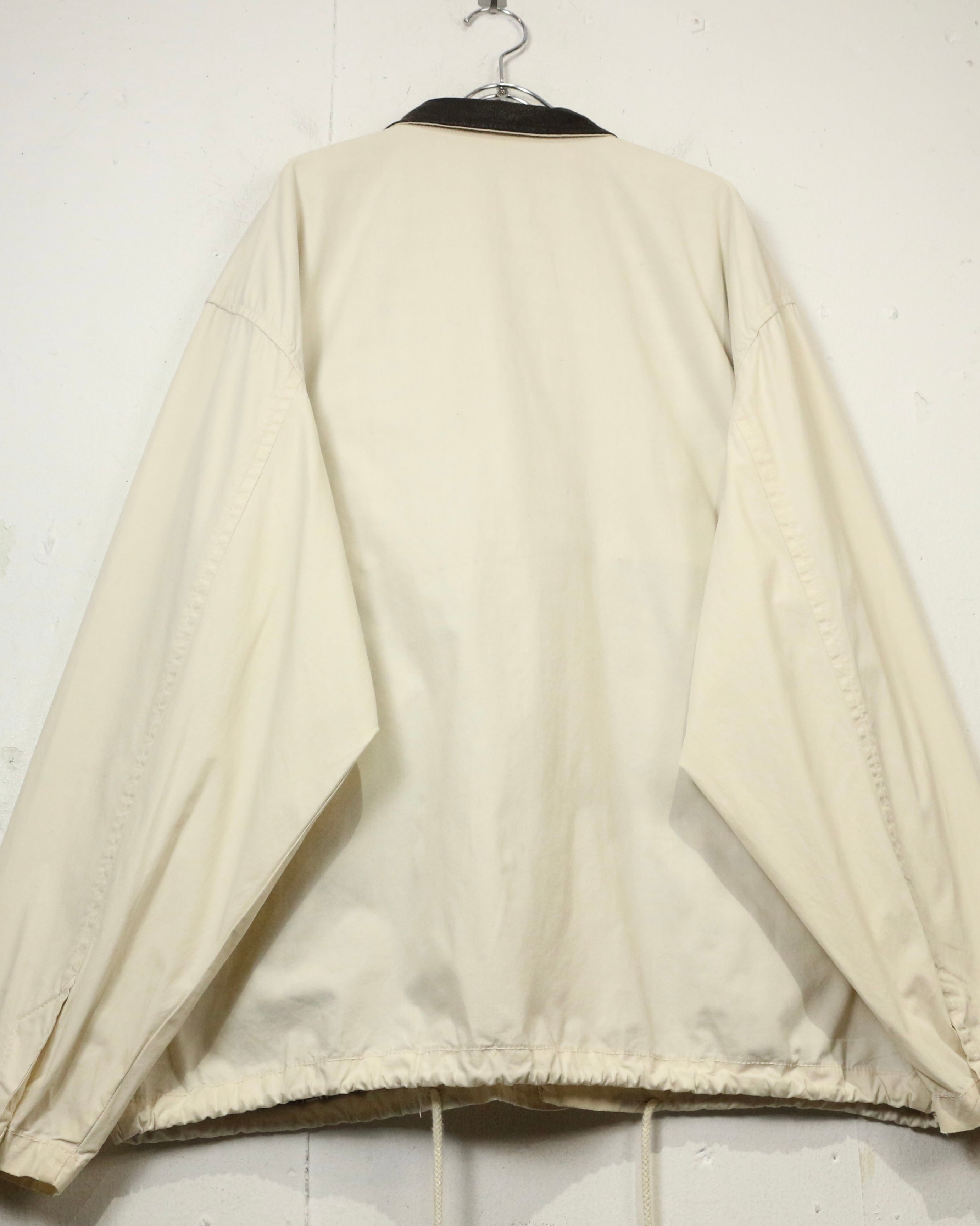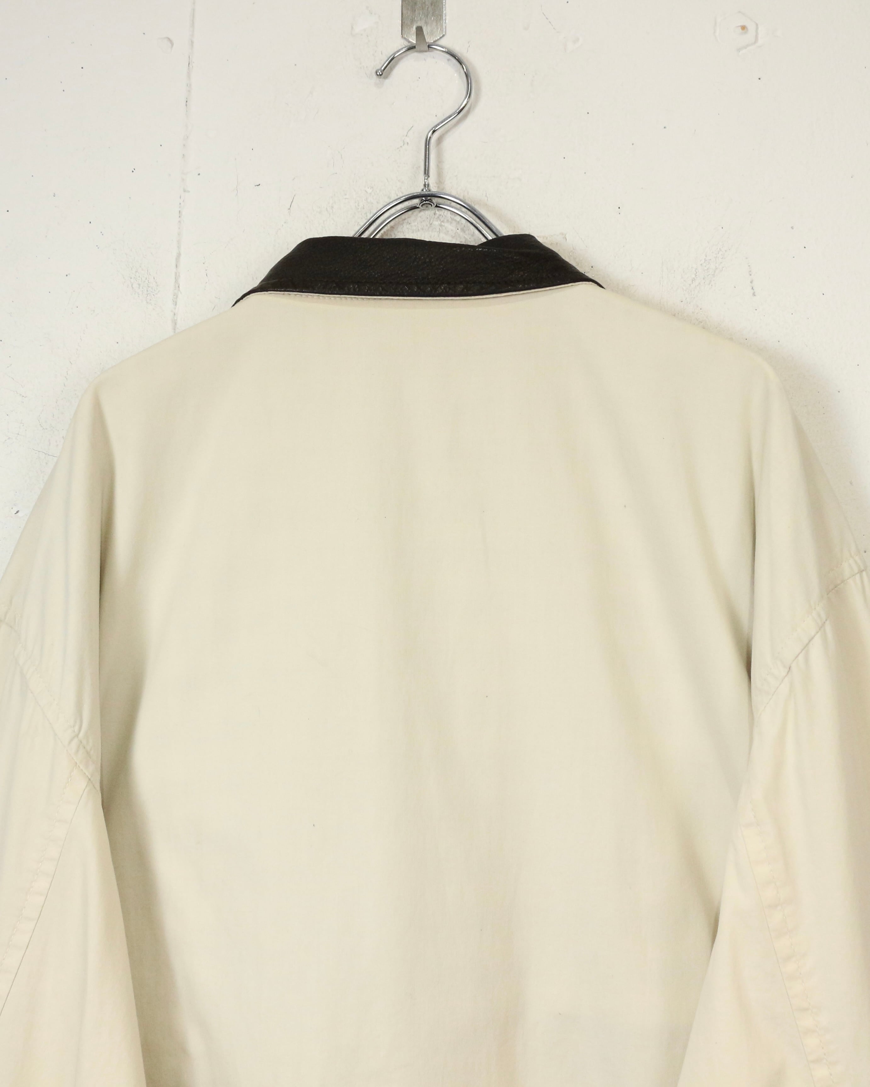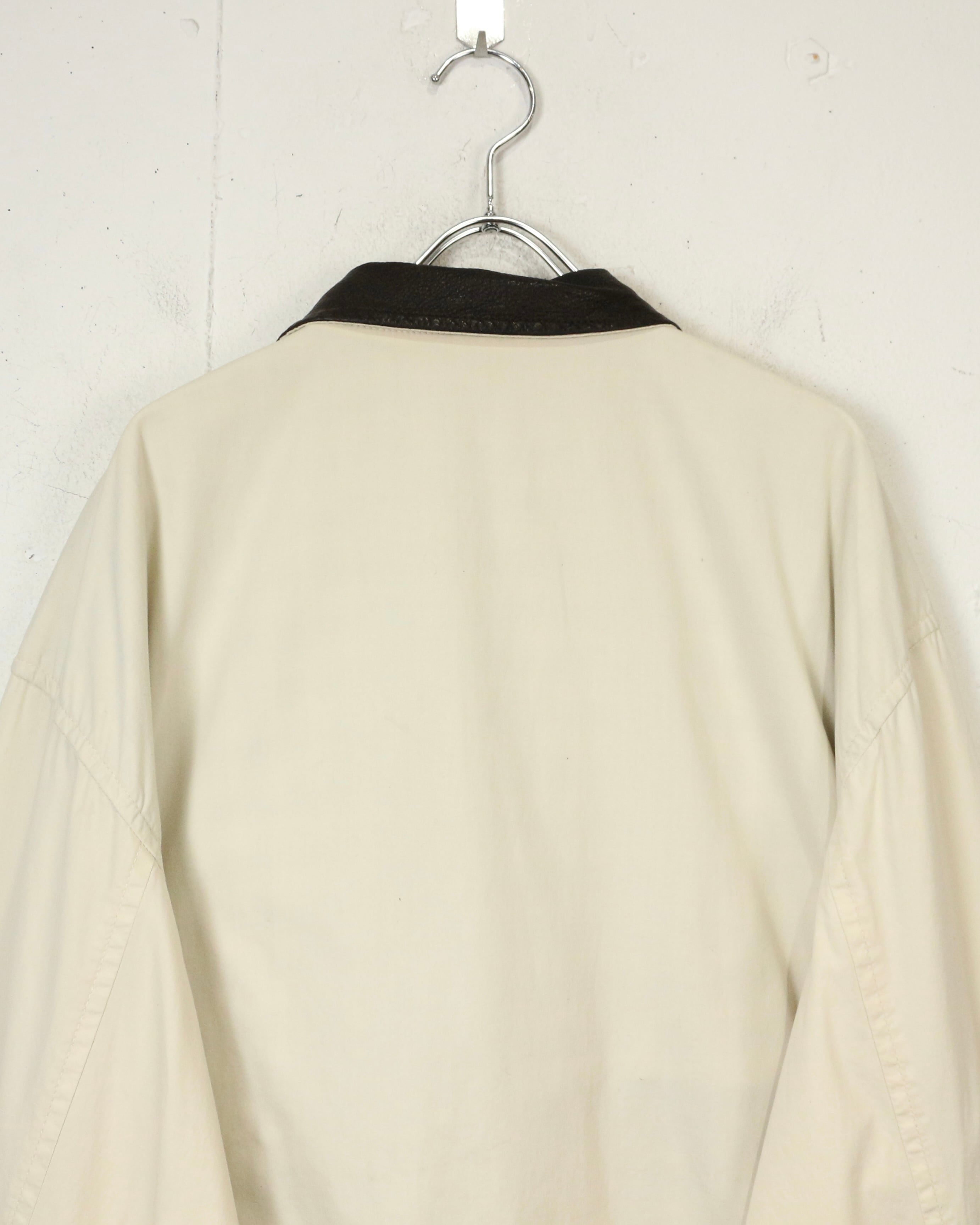 柔らかく滑らかなアイボリーカラーのコットンボディに、ダークブラウンのレザーカラーを切り替えたジャケット。
