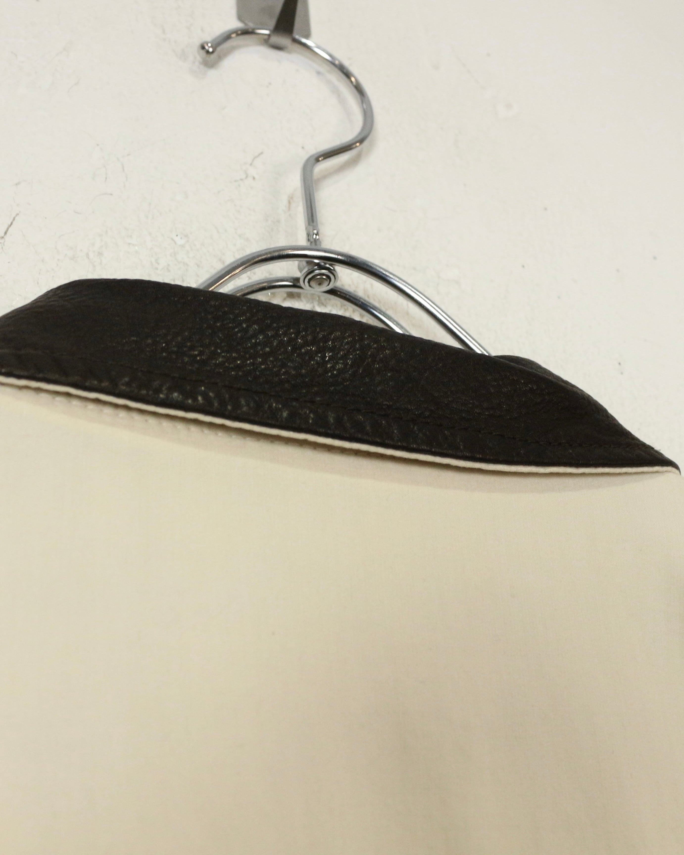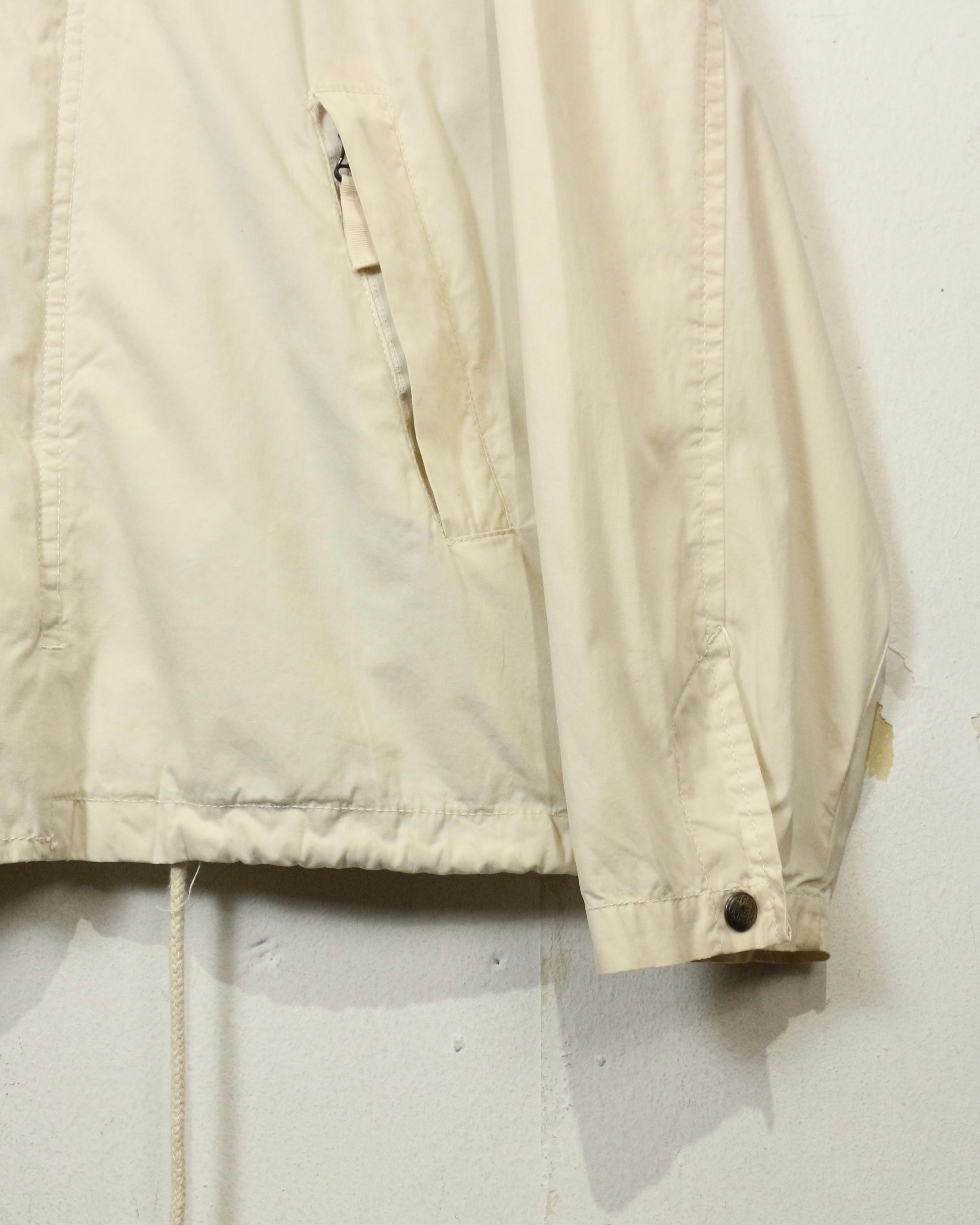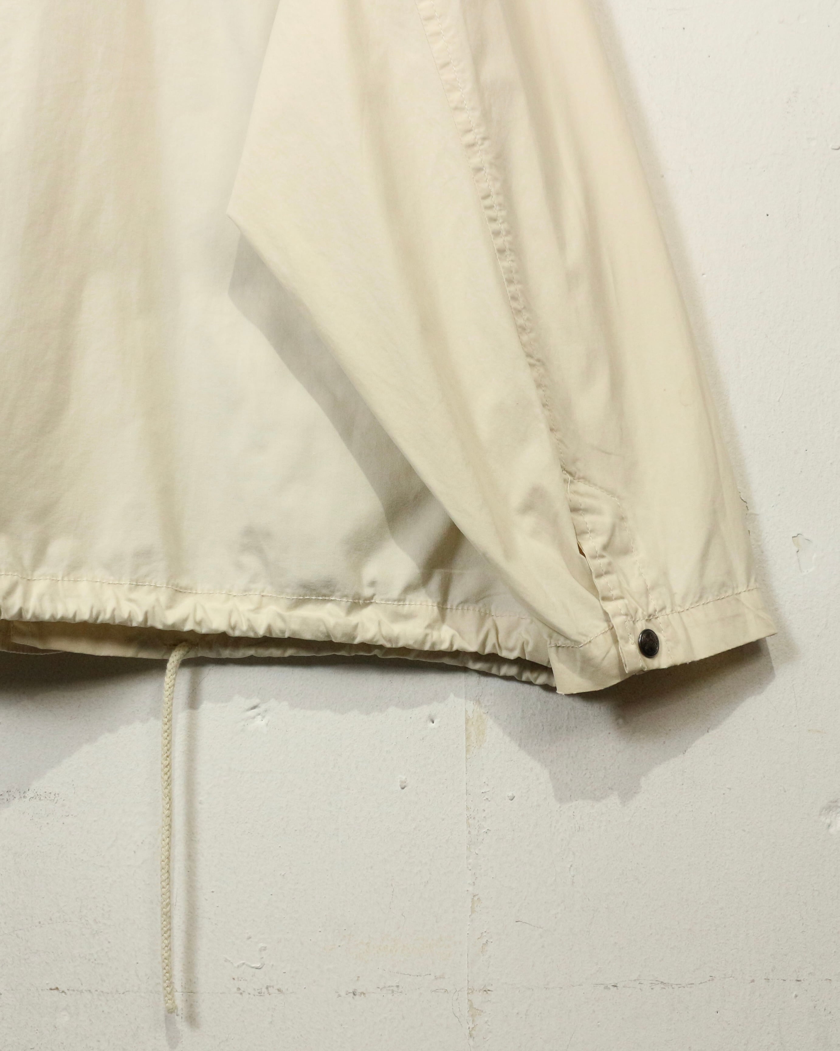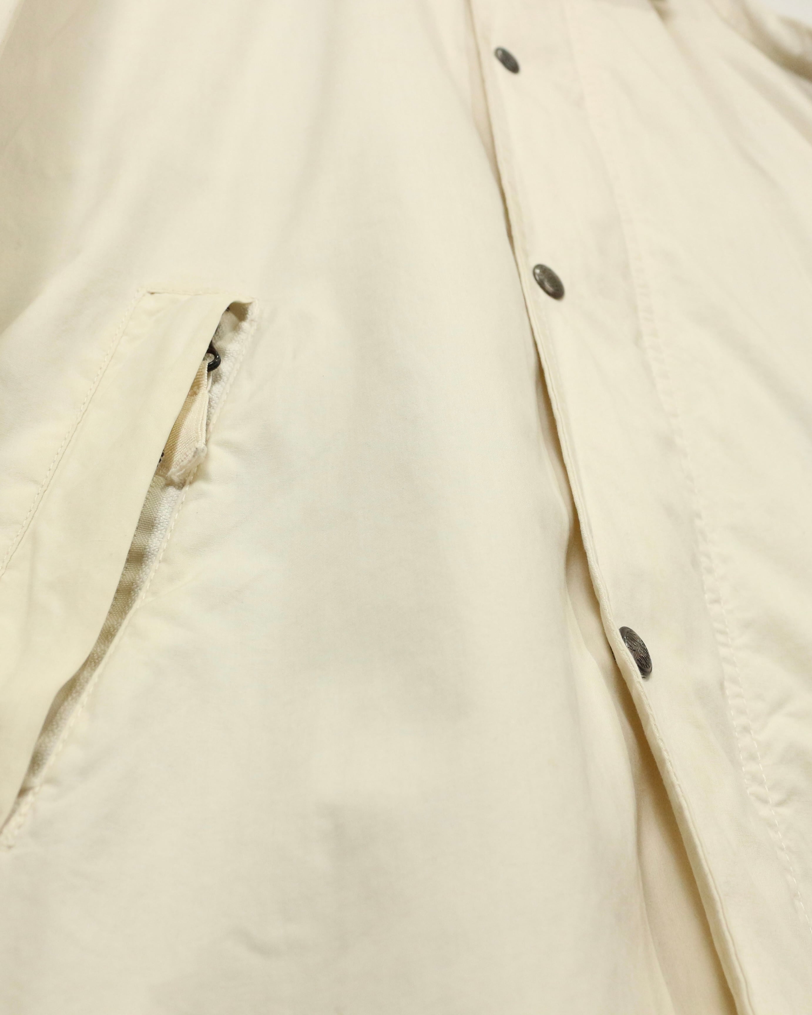 柔らかく滑らかなアイボリーカラーのコットンボディに、ダークブラウンのレザーカラーを切り替えたジャケット。