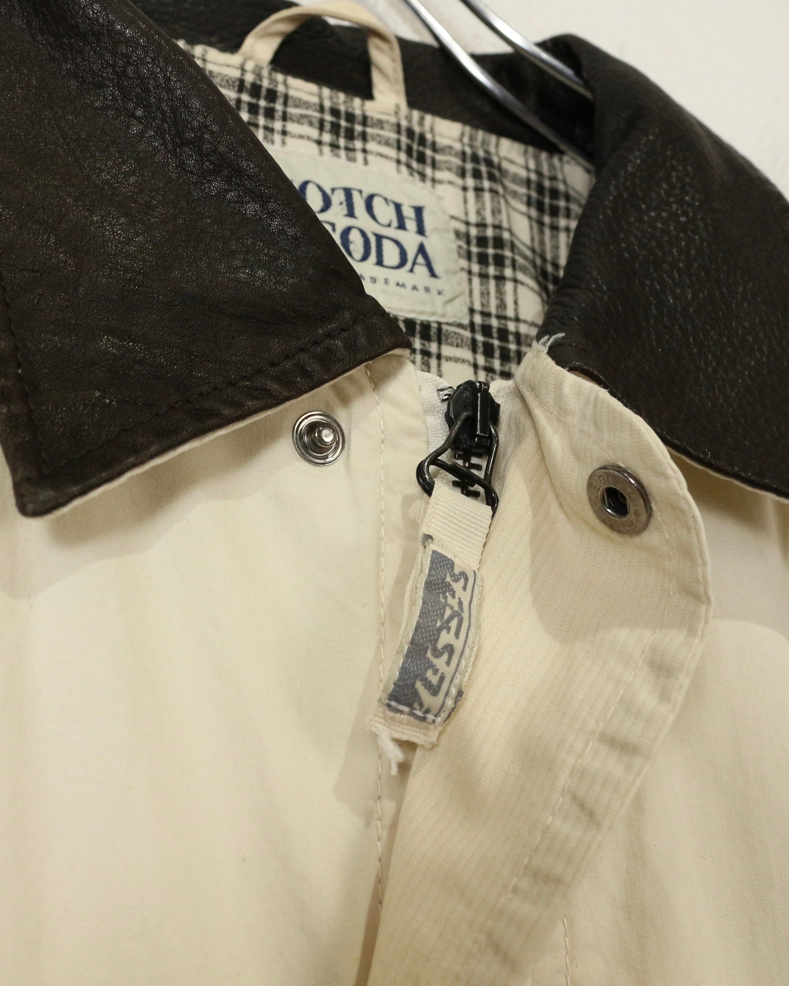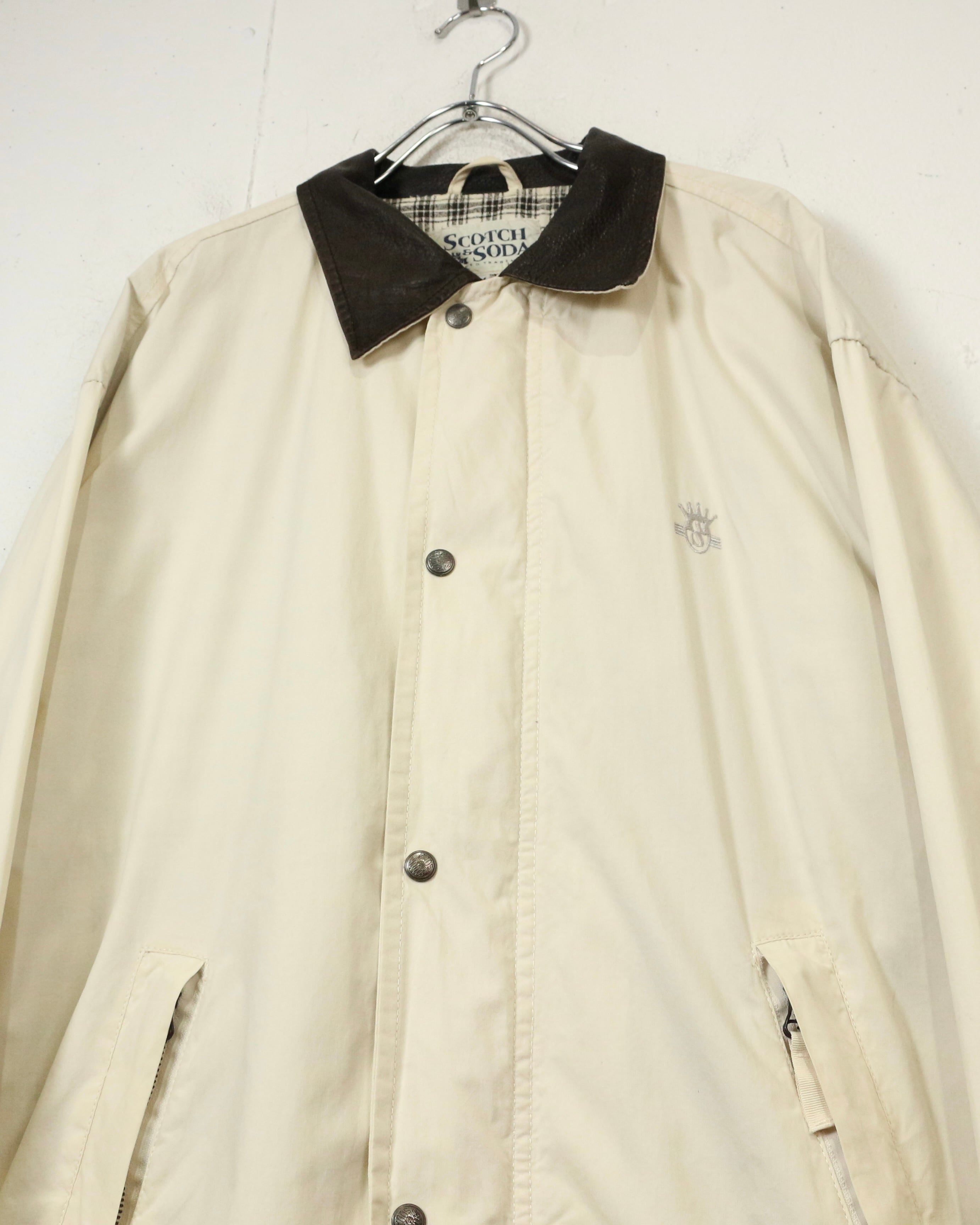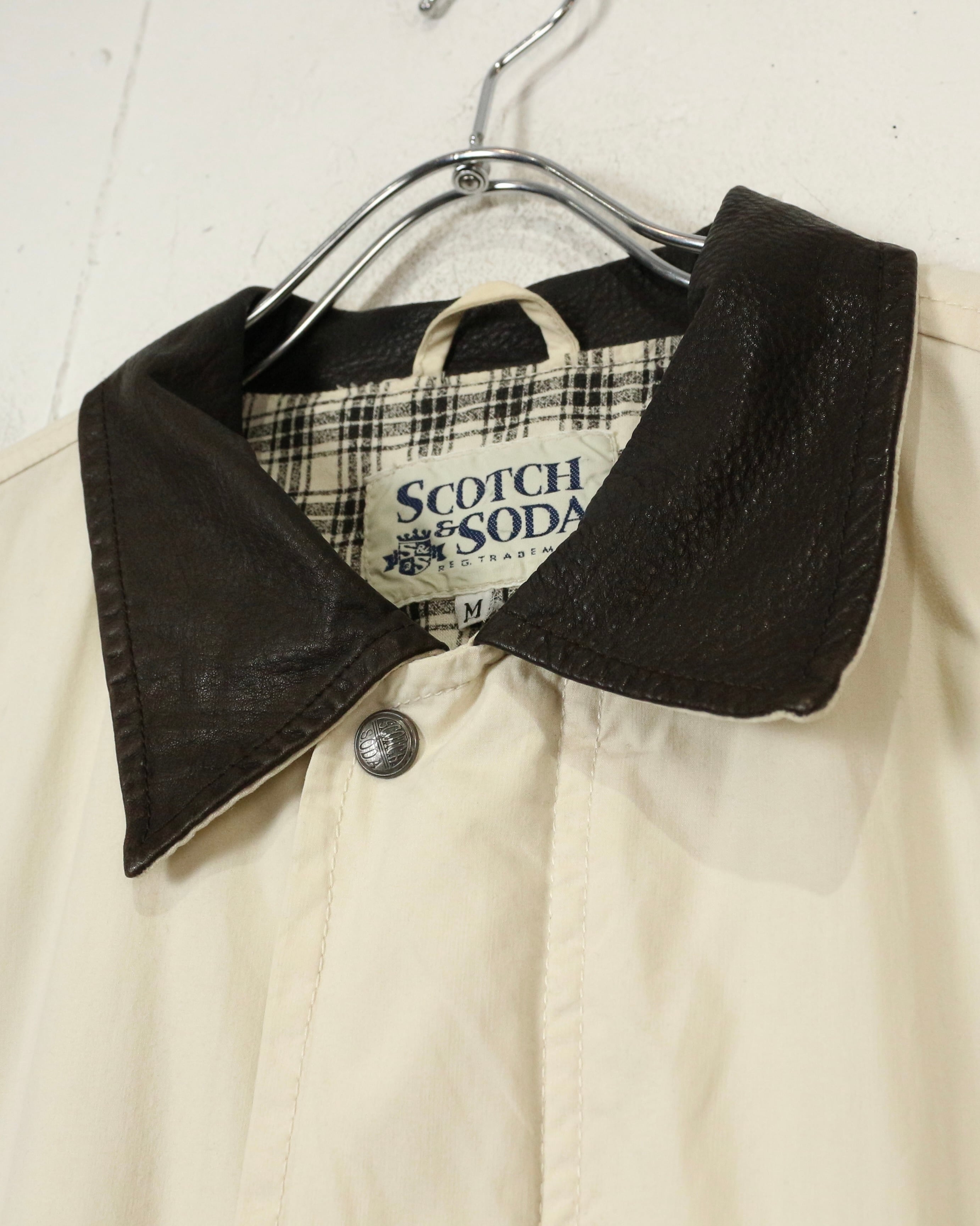 “SCOTCH & SODA”らしいバランス感覚と、レザー切り替えの上質なアクセントが効いたジャケットの逸品です。