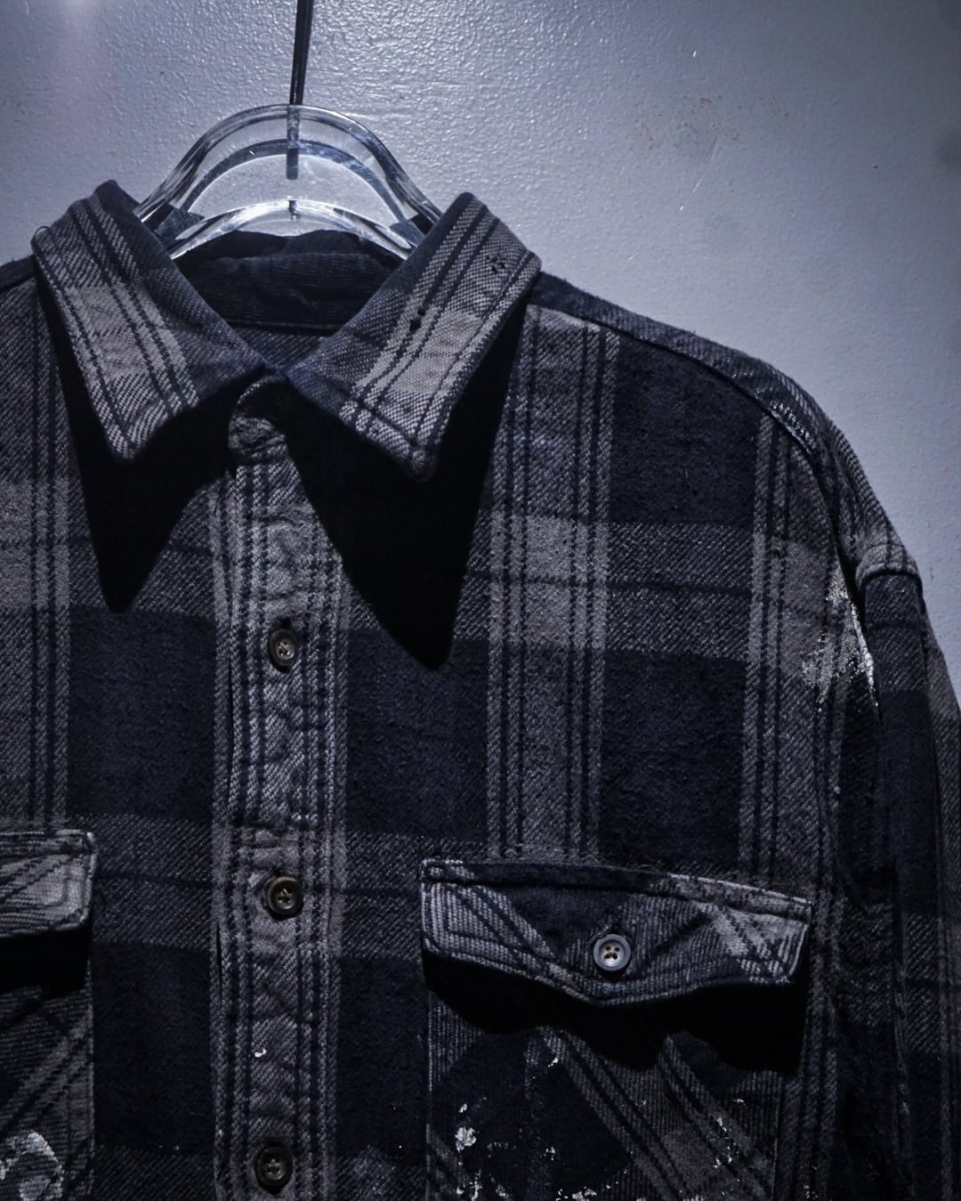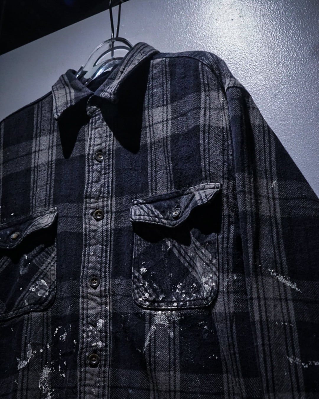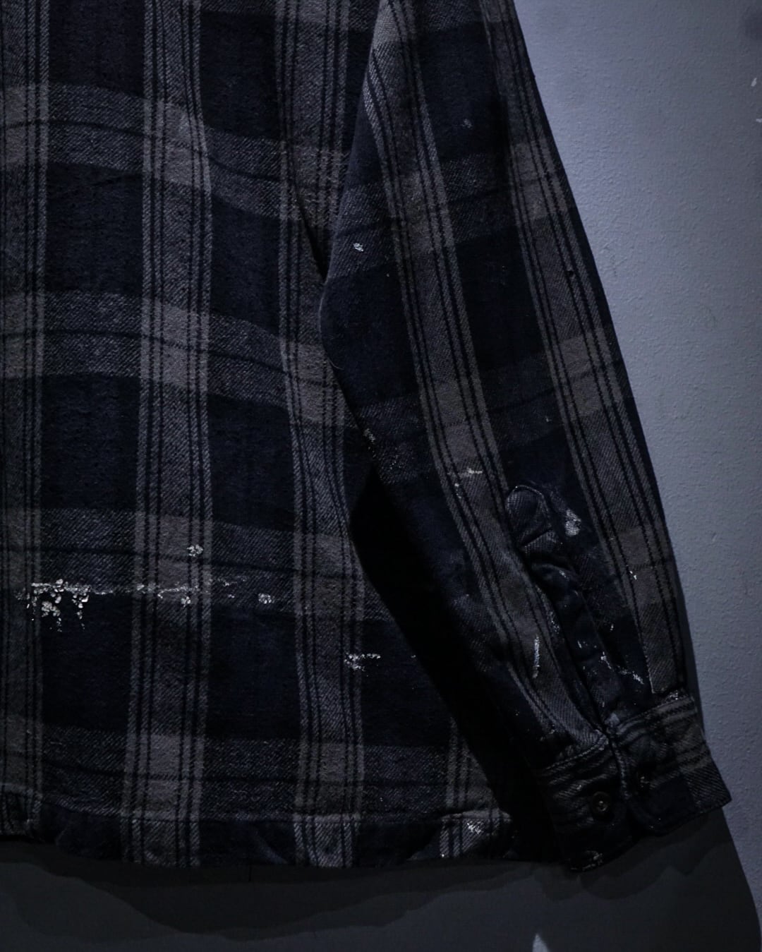 ワーク由来のタフなディテールを備えつつ、随所に見られるペイント飛びが、一点物としての圧倒的な説得力をプラス。計算では決して出せない「リアルなエイジング」が、スタイリングに深い奥行きを与えてくれます。