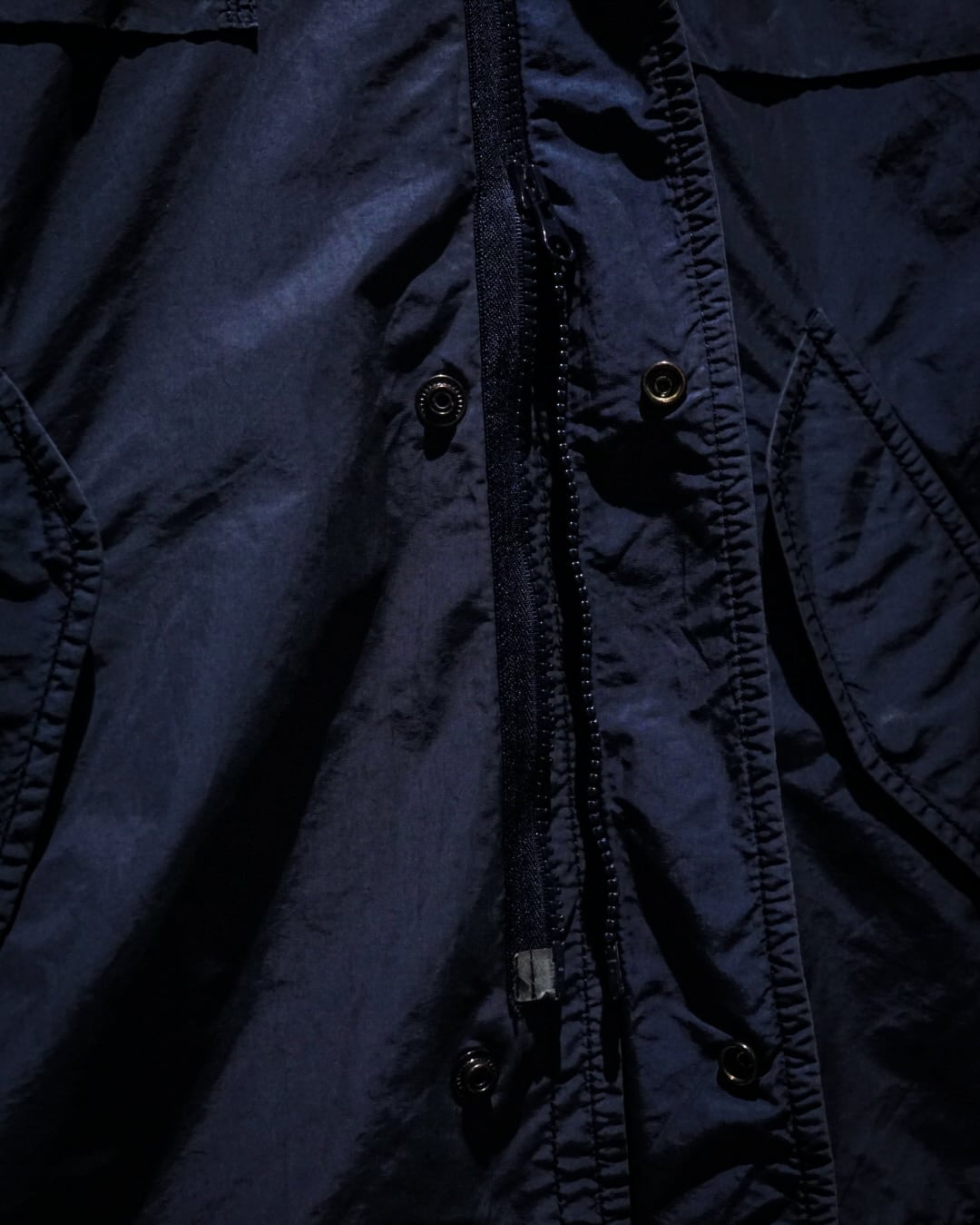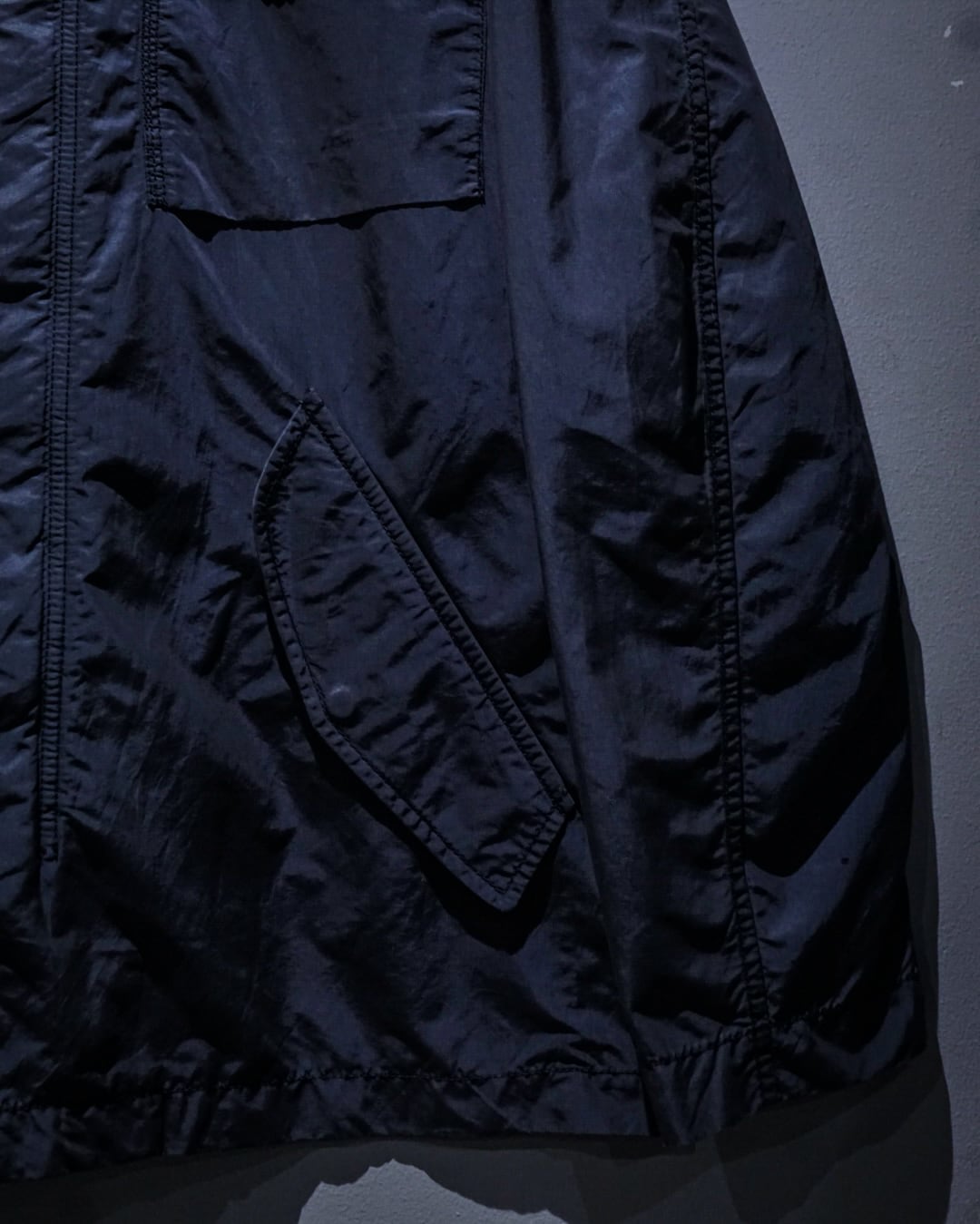 フロントはジップとスナップの比翼仕立て、各所に配された機能的なフラップポケットやシルエットを調節するアジャスターなど、隅々まで抜かりのない作り込み。